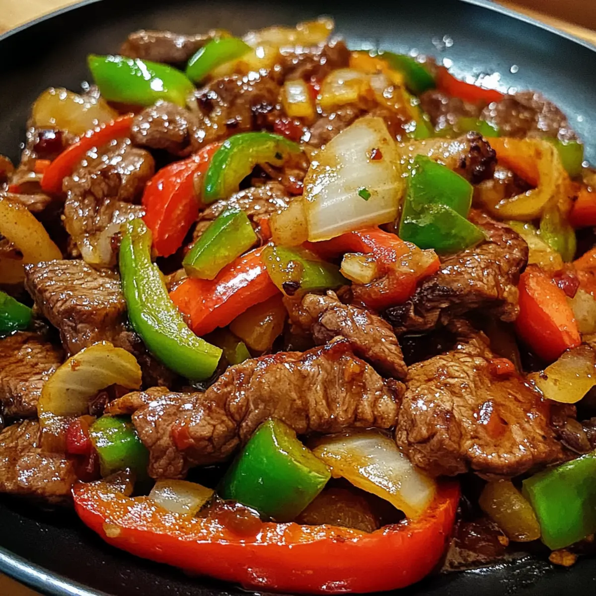 Dieses Paprika-Steak vereint zartes Rindfleisch und knackiges Gemüse, perfekt für ein schnelles Abendessen.