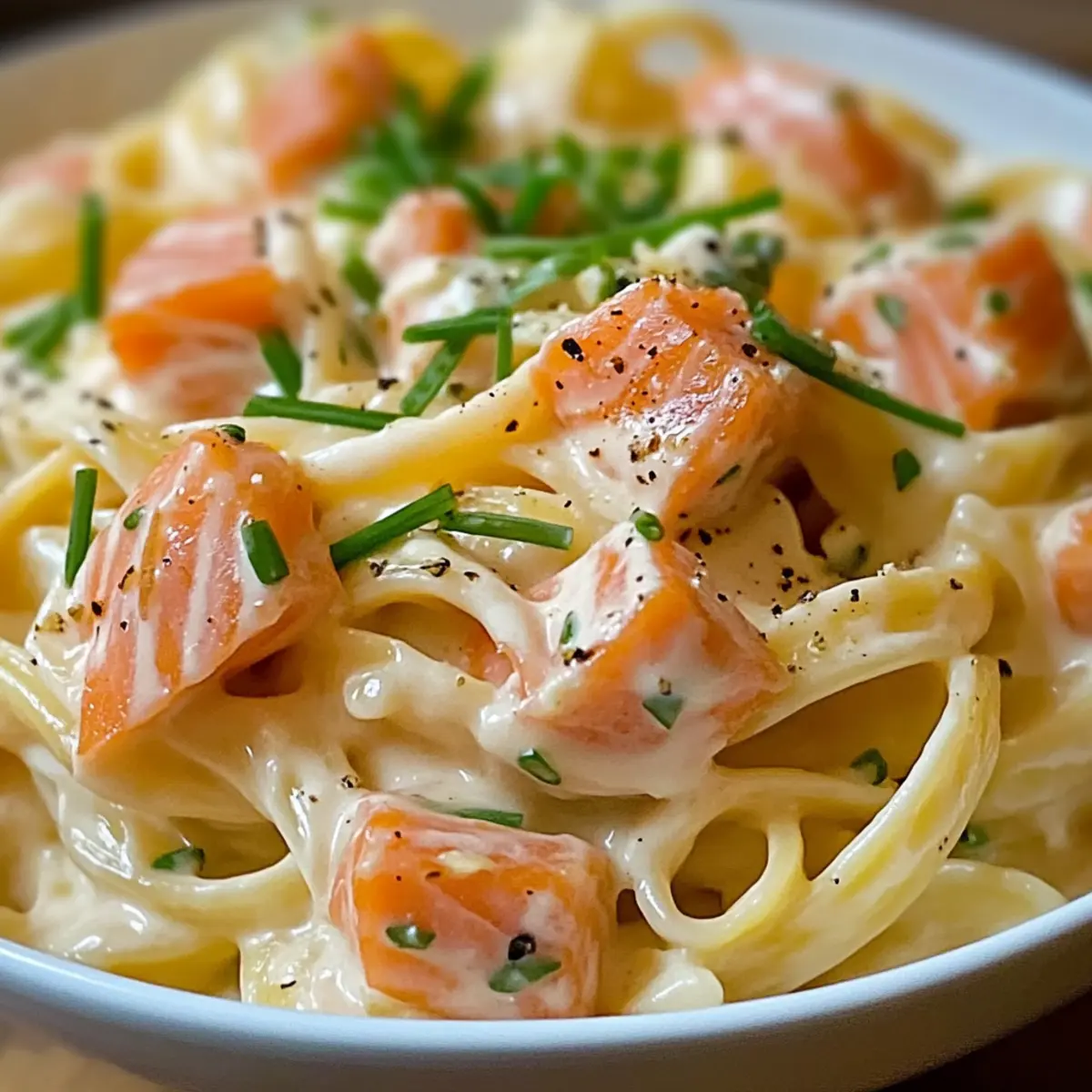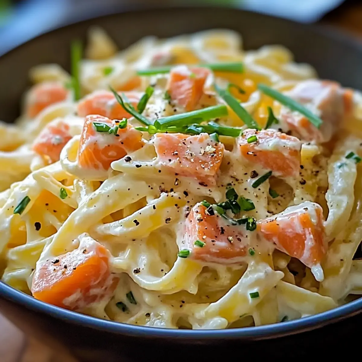 Es gibt diese Momente, in denen ich einfach nach einer schnellen, aber köstlichen Mahlzeit suche, die auch optisch eine Freude ist. Genau dann zaubere ich diese cremige Pasta mit Räucherlachs und Frischkäse. Innerhalb von nur 20 Minuten entsteht daraus ein Gericht, das nicht nur den Gaumen verwöhnt, sondern auch mit seiner samtigen Textur begeistert – perfekt für geschäftige Abende! Der entspannende Geschmack des rauchigen Lachses, kombiniert mit der Cremigkeit des Frischkäses, macht sie zum ultimativen Wohlfühlessen. Und für meine vegetarischen Freunde gibt es die leckere Variante mit geräuchertem Tofu. Neugierig, wie einfach Sie dieses Gericht zubereiten können? Lassen Sie uns gemeinsam loslegen! Warum sind cremige Nudeln so beliebt? Schnelligkeit: In nur 20 Minuten zaubern Sie ein köstliches Gericht, ideal für stressige Abende! Vielseitigkeit: Diese Rezeptur lässt sich leicht anpassen, vom geräucherten Tofu bis zu verschiedenen Gemüsesorten. Cremiger Genuss: Die Kombination aus Frischkäse und Sahne sorgt für eine samtige Textur, die zum Schwelgen einlädt. Optisches Highlight: Serviert in tiefen Tellern und garniert mit frischen Kräutern, ist diese Pasta auch ein Fest fürs Auge! Gesunde Wahl: Reich an Proteinen und gesunden Fetten, ist es eine nahrhafte Option, die gut schmeckt und gut für Sie ist. Teil eines kulinarischen Abenteuers: Kombinieren Sie italienische Pasta mit nordischen Aromen und erleben Sie einen aufregenden Geschmack! Zutaten für Pasta mit Räucherlachs und Frischkäse • Diese köstlichen Zutaten machen das Rezept unwiderstehlich! Für die Nudeln Nudeln – Wählen Sie Ihre Lieblingssorte, sei es Penne oder Spaghetti, um die perfekte Basis zu schaffen. Für die Sauce Frischkäse – Entscheiden Sie sich für eine hochwertige Marke für extra Cremigkeit und Geschmack. Sahne – Für eine luxuriöse Textur und zusätzliche Reichhaltigkeit in der Sauce. Zitronensaft – Frisch gepresst verleiht er der Sauce eine erfrischende Note, die die Aromen ausbalanciert. Für den Hauptbestandteil Räucherlachs – Sorgt für einen herzhaften Umami-Geschmack und kann durch geräucherten Tofu für eine vegetarische Option ersetzt werden. Für die Würze Salz und Pfeffer – Nach Geschmack hinzufügen, um die Aromen perfekt abzurunden. Für das Aroma (optional) Frühlingszwiebeln oder Dill – Frisch gehackt, bieten sie eine aromatische Note und ein schönes Farbenspiel. Diese Zutaten machen Ihre Pasta mit Räucherlachs und Frischkäse zu einem echten Genuss! Schritt-für-Schritt-Anleitung für Pasta mit Räucherlachs und Frischkäse Step 1: Nudeln kochen Kochen Sie die Nudeln in einem großen Topf mit kochendem, salzigem Wasser für ca. 8–10 Minuten, bis sie al dente sind. Rühren Sie gelegentlich um, damit die Pasta nicht zusammenklebt. Sobald sie fertig sind, gießen Sie die Nudeln in ein Sieb ab und lassen Sie sie kurz abtropfen, während Sie die Sauce vorbereiten. Step 2: Sauce zubereiten In einer großen Schüssel vermengen Sie den Frischkäse, die Sahne und den frisch gepressten Zitronensaft. Rühren Sie mit einem Schneebesen kräftig, bis die Mischung schön glatt und cremig ist. Fügen Sie eine Prise Salz und Pfeffer hinzu, um die Aromen richtig zur Geltung zu bringen. Step 3: Räucherlachs hinzufügen Schneiden Sie den Räucherlachs in kleine Stücke und heben Sie ihn vorsichtig unter die vorbereitete Sauce. Achten Sie darauf, den Lachs nicht zu zerreißen, damit die zarten Stücke in der Sauce bleiben. Die Kombination aus Räucherlachs und der cremigen Mischung verleiht Ihrer Pasta mit Räucherlachs und Frischkäse ihren charakteristischen Geschmack. Step 4: Nudeln mit der Sauce vermengen Geben Sie die abgetropften Nudeln in die Schüssel mit der Sauce und vermengen Sie alles gut. Benutzen Sie eine Zange oder einen Löffel, um sicherzustellen, dass die Sauce gleichmäßig an der gesamten Pasta haftet. Diese cremige Mischung umhüllt die Nudeln perfekt und sorgt für ein köstliches Esserlebnis. Step 5: Anrichten und garnieren Servieren Sie die Pasta mit Räucherlachs und Frischkäse in tiefen Tellern. Garnieren Sie das Gericht nach Belieben mit frisch gehackten Frühlingszwiebeln oder Dill, um ihm eine zusätzliche frische Note zu verleihen. Optional können Sie auch knusprige Breadcrumbs darüberstreuen, um eine interessante Textur zu schaffen. Aufbewahrung und Einfrieren von Pasta mit Räucherlachs und Frischkäse Raumtemperatur:: Diese Pasta sollte nicht länger als 2 Stunden bei Raumtemperatur stehen gelassen werden, um die Frische zu bewahren. Kühlschrank:: Bewahren Sie die Pasta in einem luftdichten Behälter im Kühlschrank auf. So bleibt sie bis zu 3 Tage frisch. Einfrieren:: Es wird empfohlen, die Pasta nicht einzufrieren, da die cremige Sauce und der Räucherlachs beim Auftauen ihre Textur verlieren können. Wiederaufwärmen:: Erhitzen Sie die Pasta vorsichtig in einer Pfanne bei niedriger Hitze und fügen Sie ggf. einen Schuss Sahne hinzu, um die Cremigkeit wiederherzustellen. Was passt zu Pasta mit Räucherlachs und Frischkäse? Genießen Sie ein köstliches Festmahl, das alle Sinne anspricht und Ihre Gäste verzaubert. Frischer Salat: Ein knackiger grüner Salat bietet einen erfrischenden Kontrast zur cremigen Pasta. Mit einem leichten Dressing zaubern Sie die perfekte Balance. Knuspriges Baguette: Das goldbraune, knusprige Baguette ist ideal, um die köstliche Sauce aufzusaugen. Es bringt zusätzliches Aroma und Textur auf den Tisch. Geröstetes Gemüse: Saisonales Gemüse wie Spargel oder Zucchini, leicht gewürzt und im Ofen geröstet, fügt gesunde Elemente hinzu und harmoniert hervorragend mit dem Lachs. Weißwein: Ein glas frischer, trockener Weißwein wie Sauvignon Blanc rundet das Ganze ab und hebt die Aromen des Gerichts hervor. Zitronensorbet: Zum Dessert bietet ein erfrischendes Zitronensorbet einen fruchtigen Abschluss nach der köstlichen Pasta, ideal für einen Abend voller Geschmack. Cremige Polenta: Servieren Sie die