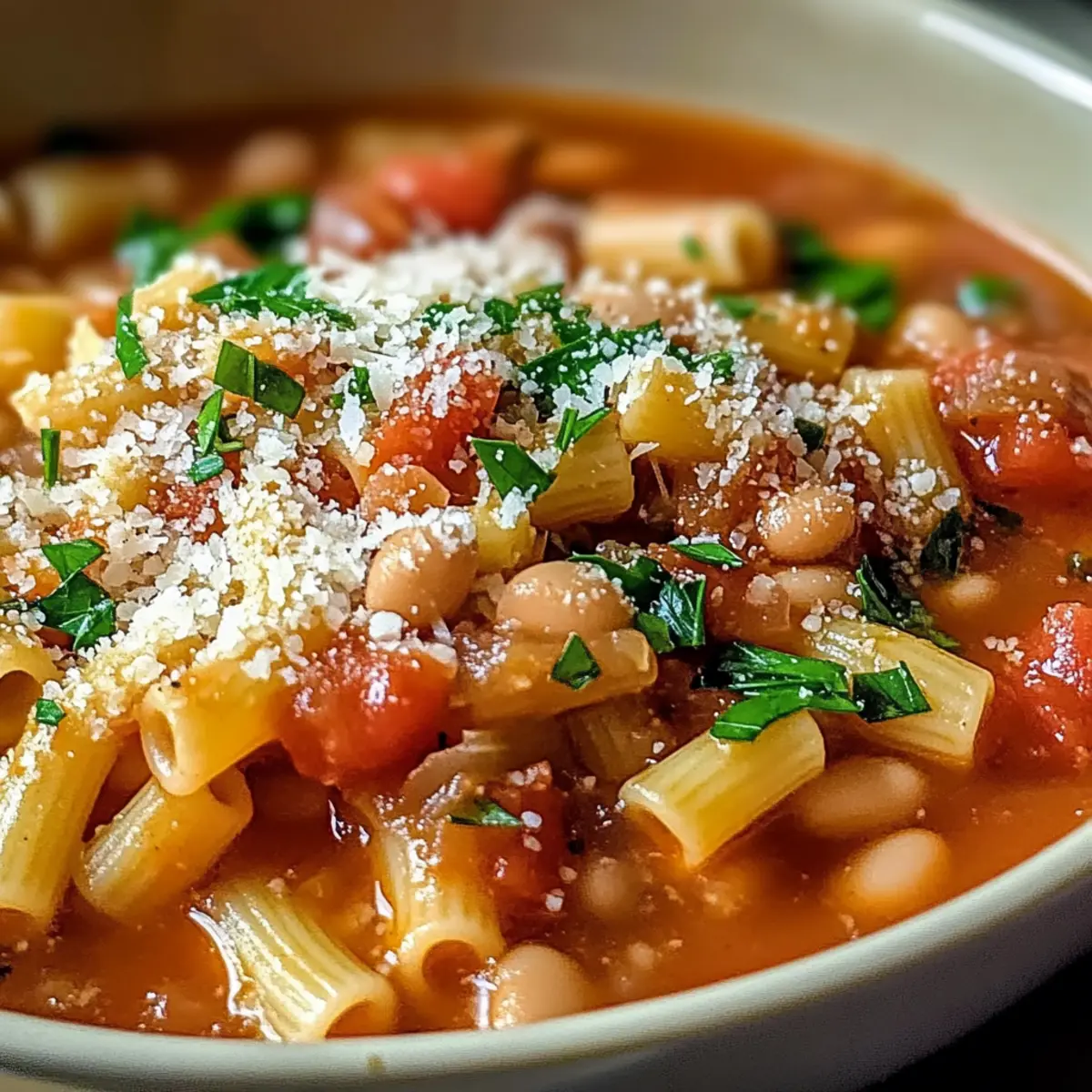 Lass die Suppe kurz ruhen und serviere sie dann in vorgewärmten Schalen. Garniere die Suppe nach Belieben mit frischer Petersilie und geriebenem Parmesan, wenn du magst. Deine Pasta und Bohnen-Suppe ist nun bereit, genossen zu werden – eine perfekte Kombi aus Herzhaftigkeit und Wärme!