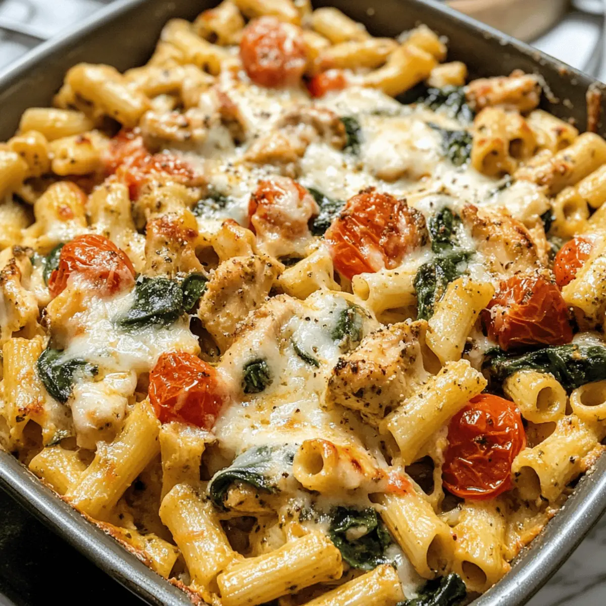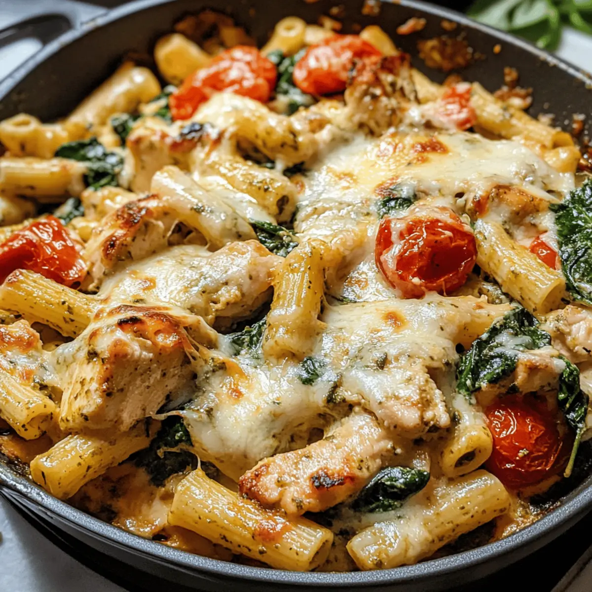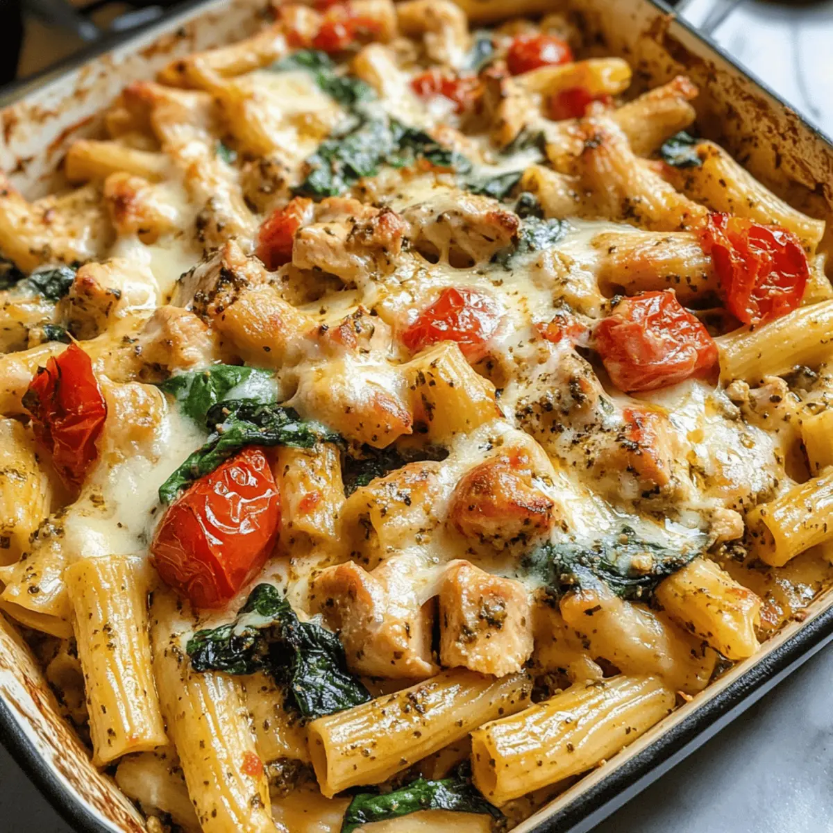 Genieße den köstlichen Pesto-Hühnchen-Pasta-Auflauf, der zartes Hühnchen, Spinat und geröstete Tomaten vereint. Ein einfaches und schmackhaftes Gericht für die ganze Familie.