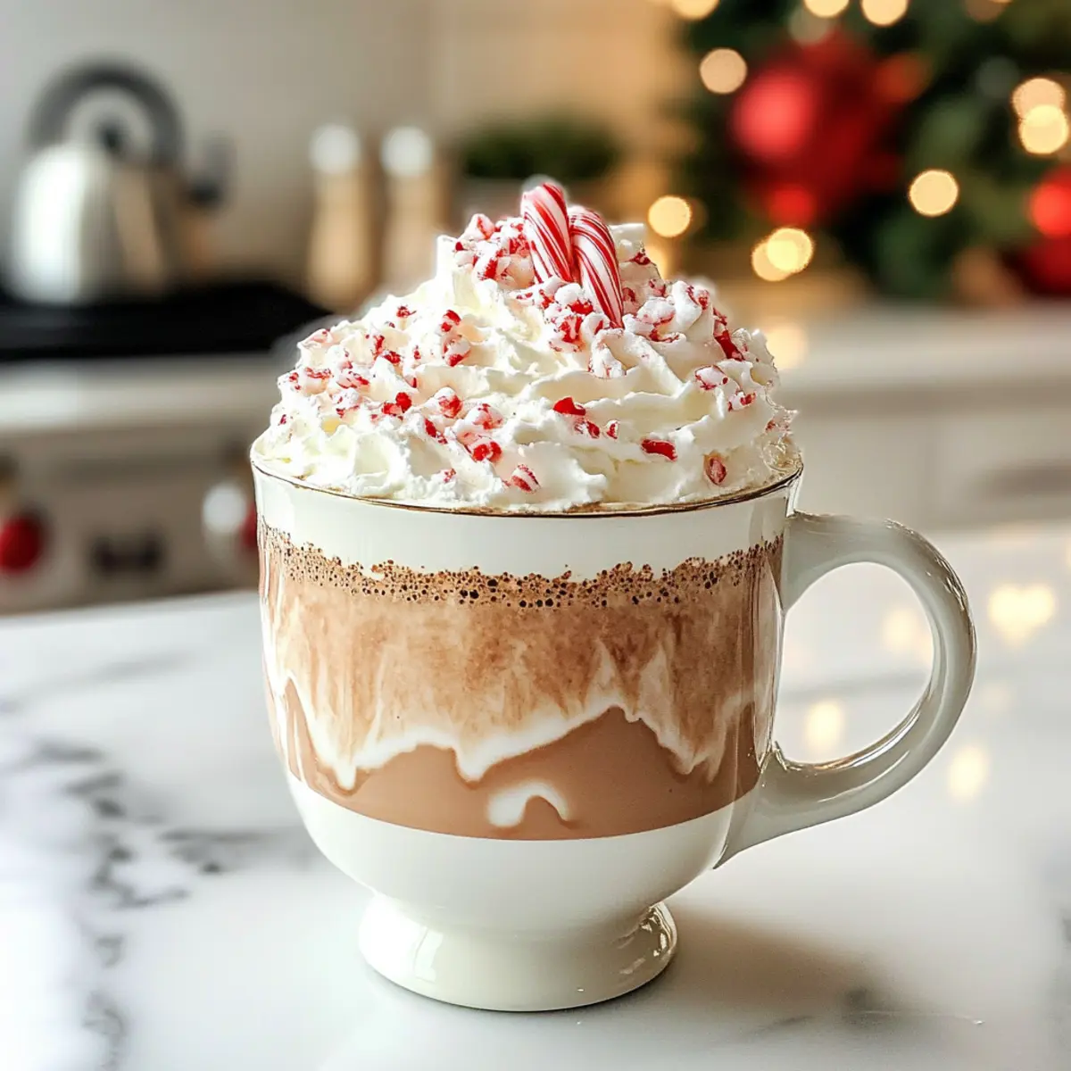 Es ist der perfekte Moment, um die kühle Luft mit einem warmen, köstlichen Getränk zu umarmen! In dieser festlichen Jahreszeit möchte ich euch einen besonderen Genuss vorstellen: die Pfefferminzmocha-Teelatte. Diese Zeichen des Wohlbefindens vereint die reichhaltige Schokolade, erfrischende Pfefferminze und eine cremige Textur, die das Herz erwärmt. Egal, ob ihr Gästen ein unvergessliches Getränk anbieten oder einfach nur selbst ein wenig Gemütlichkeit gönnen möchtet – dieses schnelle und einfache Rezept wird zum echten Star eurer Küchenkreationen. Mit Optionen für sowohl Milchprodukte als auch pflanzliche Alternativen ist diese Getränke-Genuss gar nicht mehr wegzudenken! Wer kann da schon widerstehen? Lasst uns gemeinsam in die Welt des festlichen Flairs eintauchen! Warum ist dieser Teegenuss so besonders? Einzigartiger Geschmack: Die Kombination aus schokoladigem Kakao und frischem Pfefferminzgeschmack macht diese Teelatte unwiderstehlich. Vielfältige Optionen: Egal, ob Ihr eine Milch- oder eine pflanzliche Alternative bevorzugt, dieses Rezept passt sich euren Vorlieben an. Einfache Zubereitung: Innerhalb von nur wenigen Minuten könnt Ihr dieses festliche Getränk zaubern. Perfekte Begleitung: Serviert die Pfefferminzmocha-Teelatte mit euren Lieblingskeksen für ein gemütliches Beisammensein. Küchenzauber: Überrascht Familie und Freunde mit einem selbstgemachten Café-Style Getränk, das die kühle Jahreszeit wärmt! Pfefferminzmocha-Teelatte Zutaten • Möchtet ihr die perfekte Pfefferminzmocha-Teelatte zubereiten? Hier sind die notwendigen Zutaten! Für den Tee Wasser – Basis zum Aufbrühen, wichtig für intensiven Pfefferminzgeschmack. Pfefferminztee – Hauptgeschmacksträger; frischer Tee ist besonders aromatisch. Für die Milchmischung Milch (milchhaltig oder pflanzlich) – Sorgt für eine cremige Textur; wählt Vollmilch für Reichhaltigkeit oder Mandelmilch für leichte Frische. Kakaopulver – Verleiht einen schokoladigen Geschmack ohne Zuckerzusatz; hochwertiges, ungesüßtes Kakaopulver ist ideal. Zucker oder Honig – Süßungsmittel zur Geschmacksbalance, passt die Menge nach Vorliebe an; roher Honig bietet eine natürliche Süße. Für das Topping (optional) Schlagsahne – Für eine extra Portion Cremigkeit und Genuss. Dekorationen – Frische Pfefferminzblätter, zerstoßene Zuckerstangen oder Schokoladenspäne machen eure Pfefferminzmocha-Teelatte festlicher und noch leckerer! Schritt-für-Schritt-Anleitung für die Pfefferminzmocha-Teelatte Step 1: Tee aufbrühen Bringt 1 Tasse Wasser zum Kochen und fügt 1 Teelöffel Pfefferminztee hinzu. Lasst den Tee für etwa 5 Minuten ziehen, damit sich das Aroma entfalten kann. Nach dem Ziehen den Tee durch ein Sieb in eine Tasse filtern, um die Teeblätter zu entfernen, und genießt die frische, duftende Basis für eure Pfefferminzmocha-Teelatte. Step 2: Kakaopulver und Süßungsmittel vermischen Fügt ½ Esslöffel Kakaopulver und 1-2 Teelöffel Zucker oder Honig in die Tasse mit dem Tee hinzu. Rührt die Mischung gut um, bis sich das Kakaopulver und der Süßstoff vollständig aufgelöst haben. Die warme Mischung wird jetzt schokoladig duften und einen leckeren Kontrast zur Pfefferminze bieten. Step 3: Milch erhitzen Erhitzt die gewünschte Menge Milch (entweder milchhaltige oder pflanzliche) in einem kleinen Topf bei mittlerer Hitze. Achtet darauf, dass die Milch heiß wird, aber nicht kocht. Dies dauert etwa 5 Minuten. Wenn ihr eine schaumige Textur möchtet, könnt ihr die Milch mit einem Handfrother oder dem Schneebesen aufschäumen. Step 4: Milch hinzufügen Gießt die heiße Milch vorsichtig in die Tasse mit der Tee-Kakao-Mischung. Während ihr die Milch hinzufügt, könnt ihr mit einem Löffel vorsichtig umrühren, damit sich die Aromen gut verbinden. Die Kombination aus der cremigen Milch und dem aromatischen Tee wird eure Pfefferminzmocha-Teelatte perfekt abrunden. Step 5: Toppings hinzufügen Verleiht eurer Pfefferminzmocha-Teelatte den letzten Schliff mit optionalen Toppings. Toppt sie mit Schlagsahne, frischen Pfefferminzblättern, zerstoßenen Zuckerstangen oder Schokoladenspänen. Diese festlichen Akzente sorgen nicht nur für ein ansprechendes Aussehen, sondern verstärken auch den köstlichen Geschmack des Getränks. Genießen! Variationen der Pfefferminzmocha-Teelatte Möchtet ihr euer Getränk noch spezieller gestalten? Hier sind einige kreative Ideen, um eure Pfefferminzmocha-Teelatte zu variieren! Milchalternative: Ersetzt die Milch durch Hafermilch für einen zusätzlichen nussigen Geschmack und eine tolle Cremigkeit. Hafermilch ist auch für Allergiker eine großartige Option! Zuckerersatz: Experimentiert mit verschiedenen Süßungsmitteln wie Agavendicksaft oder Kokosblütenzucker für neue Geschmacksnuancen. So kreiert ihr eure ganz persönliche Süße! Kakaokraft: Verwendet dunkles Kakaopulver für ein intensiveres Schokoladenerlebnis. Ideal für Schokoladenliebhaber, die es gerne etwas kräftiger mögen! Gewürzupdate: Fügt eine Prise Zimt oder Muskatnuss hinzu, um eure Teelatte ein wenig würziger zu machen. Diese warmen Gewürze passen perfekt zu den winterlichen Aromen! Eisige Variante: Bereitet die Pfefferminzmocha-Teelatte kalt als Eistee zu. Einfach die heiße Latte über Eiswürfel gießen und genießen – erfrischend und lecker! Schokolade boostern: Gebt Schokoladensirup oder Schokoladenstückchen in die Mischung für einen extra schokoladigen Kick. Ein wahres Fest für Schokoladenfans! Pfefferminz-Intensität: Experimentiert mit verschiedenen Pfefferminzsorten oder -extrakten für einen stärkeren mintigen Geschmack. So könnt ihr den Grad der Erfrischung genau nach eurem Geschmack anpassen! Vegetarische Kreation: Nutzt pflanzliche Sahne anstelle von Schlagsahne für ein leichtes, aber dennoch cremiges Finish. Genauso lecker und perfekt für alle, die auf Milchprodukte verzichten möchten! Egal, wie ihr es variieren möchtet, diese Vorschläge helfen euch, eine pers