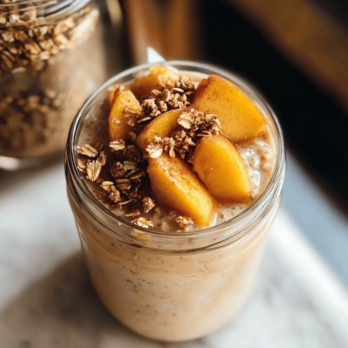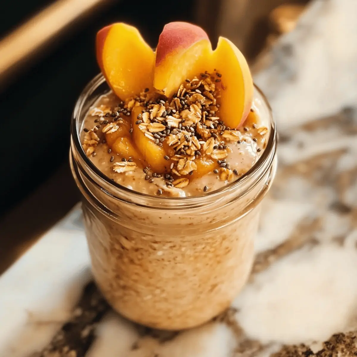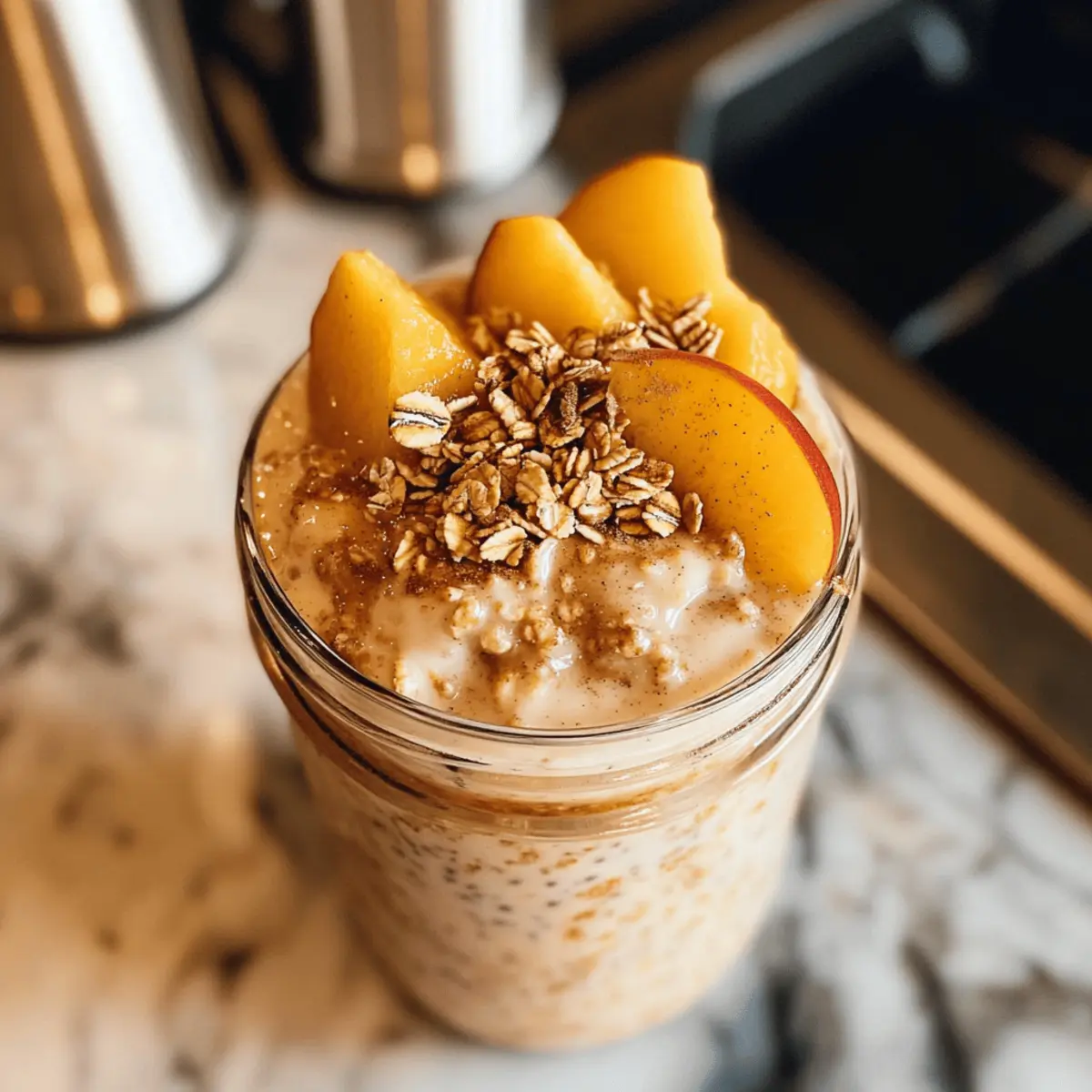 Als ich das erste Mal die Pfirsich-Cobbler-Übernacht-Haferflocken zubereitete, wurde ich von einem warmen Duft von Zimt und frischen Pfirsichen in eine wohltuende Erinnerung an den Sommer zurückversetzt. Diese cremigen, gesunden Haferflocken sind nicht nur ein schnelles Frühstück, sondern bieten auch einen köstlichen Start in den Tag, ohne dafür lange am Herd zu stehen. Dank der saftigen Pfirsiche und der nahrhaften Chia-Samen sind sie ein echter Energiespender, der den perfekten Schwung für einen produktiven Tag liefert. Mit nur wenigen Zutaten und ohne Kochen eignet sich dieses Rezept hervorragend für beschäftigte Morgenstunden. Und während ich meine Portion genieße, frage ich mich: Wie könnte diese leckere Kombination noch verfeinert werden? Warum sind diese Haferflocken ein Hit? Einfachheit: Die Zubereitung ist kinderleicht, du brauchst nur ein paar grundlegende Zutaten und keine Kochskills. Cremiger Genuss: Diese Haferflocken sind samtig und lecker, als ob du ein Stück Pfirsich-Cobbler zum Frühstück genießest. Gesunde Energie: Hoch in Ballaststoffen, versorgt dich dieses Frühstück mit dem nötigen Schwung für den Tag. Es ist eine wunderbare Wahl für gesundes und schnelles Frühstück! Vielseitigkeit: Ob mit Mandeln, Honig oder einem Schuss Joghurt – du kannst dieses Rezept ganz nach deinem Geschmack anpassen. Kein Kochen nötig: Einfach in ein Glas schichten und über Nacht im Kühlschrank lassen, was dir kostbare Zeit morgens spart. Probier auch die Variationen für zusätzliches Crunch, um noch mehr Geschmack zu erhalten! Pfirsich-Cobbler-Übernacht-Haferflocken Zutaten • Die folgenden Zutaten machen dein Frühstück zu einem cremigen Genuss! Für die Haferbasis: Rolled Oats – Sie bieten die Grundlage für eine gesunde, sättigende Mahlzeit. Du kannst sie durch Stahlhafer ersetzen, wenn du eine bissfestere Textur möchtest. Milk – Ist entscheidend für die Cremigkeit; wähle zwischen Kuhmilch oder pflanzlichen Alternativen wie Mandel-, Hafer- oder Kokosmilch. Verwende Mandelmilch für eine leichtere Option. Für die Süße und Aromen: Fresh Peach – Fügt natürliche Süße und Geschmack hinzu. Du kannst sie durch gefrorene oder abgetropfte Dosen-Pfirsiche ersetzen, wenn frische nicht verfügbar ist. Chia Seeds – Dienen zum Andicken der Mischung. Flachs-Samen sind ein guter Ersatz oder reduziere einfach die Milchmenge leicht. Vanilla Extract – Verbessert das Gesamtaroma; verwende reinen Vanilleextrakt für die besten Ergebnisse. Cinnamon – Fügt Wärme und Würze hinzu; erhöhe die Menge für einen intensiveren Geschmack. Maple Syrup or Honey – Dieser Süßstoff passt perfekt zu deinem Gericht. Für weniger Zucker kannst du einen Zuckerersatz verwenden oder die Menge verringern. Genieße die Pfirsich-Cobbler-Übernacht-Haferflocken und lass dich von ihrem Geschmack verzaubern! Schritt-für-Schritt-Anleitung für Pfirsich-Cobbler-Übernacht-Haferflocken Step 1: Zutaten vorbereiten Zuerst, wasche die frische Pfirsiche gründlich und schneide eine halbe Pfirsich in kleine, mundgerechte Stücke. Achte darauf, die Kerne zu entfernen, damit die Pfirsich-Cobbler-Übernacht-Haferflocken eine angenehme Konsistenz haben. Bereite alle weiteren Zutaten vor, damit du sie gleichmäßig mischen kannst. Step 2: Zutaten kombinieren Nimm ein Einmachglas oder eine Schüssel und gib dort die Haferflocken, die Milch, die Chiasamen, den Vanilleextrakt, den Zimt und den Ahornsirup oder Honig hinein. Rühre alles gut um, bis sich die Zutaten vollständig verbunden haben. Füge dann die gewürfelten Pfirsichstücke hinzu und mische sie vorsichtig unter. Step 3: Kühlen und ziehen lassen Sobald alle Zutaten gut vermischt sind, decke das Glas oder die Schüssel ab und stelle sie in den Kühlschrank. Lasse die Mischung mindestens vier Stunden oder besser noch über Nacht stehen. Dies ermöglicht es den Haferflocken, die Flüssigkeit aufzunehmen und die Pfirsich-Cobbler-Übernacht-Haferflocken besonders cremig zu machen. Step 4: Servieren Am Morgen, wenn du bereit bist, deine gesunden Pfirsich-Cobbler-Übernacht-Haferflocken zu genießen, nimm das Glas aus dem Kühlschrank. Rühre die Mischung gut um und füge nach Bedarf ein wenig zusätzliche Milch hinzu, um die Konsistenz anzupassen. Du kannst die Haferflocken dann mit Granola oder zerstoßenen Nüssen toppen und nach Belieben noch etwas Honig darüberträufeln. Tipps für die besten Pfirsich-Cobbler-Übernacht-Haferflocken Reife Pfirsiche verwenden: Das Geheimnis eines köstlichen Geschmacks liegt in der Wahl reifer Pfirsiche. Sie sind süßer und sorgen für eine bessere Textur. Zusätzliche Cremigkeit: Um die Pfirsich-Cobbler-Übernacht-Haferflocken noch cremiger zu machen, füge einen Löffel griechischen Joghurt oder Kokosnusscreme hinzu. Über Nacht ziehen lassen: Lass die Mischung mindestens vier Stunden, besser noch über Nacht im Kühlschrank ziehen. So erhalten die Haferflocken die perfekte Konsistenz. Überflüssige Flüssigkeit vermeiden: Sei beim Hinzufügen von Milch am Morgen vorsichtig; es ist besser, weniger Milch hinzuzufügen und nach Bedarf zu ergänzen. Variationen ausprobieren: Experimentiere mit verschiedenen Nüssen oder einem Hauch von Nussmus, um deiner Mischung ein zusätzliches Aroma und Textur zu verleihen. Perfekte Vorbereitung für Pfirsich-Cobbler-Übernacht-Haferflocken Die Pfirsich-Cobbler-Übernacht-Haferflocken sind ideal für die Planung deiner Mahlzeiten! Du kannst alle Zutaten bis zu 24 Stunden im Voraus vorbereiten, um deine Morgen zu entspannen. Beginne damit, die Pfirsiche klein zu schneiden und sie dann mit den Haferflocken, Milch, Chia-Samen, Vanilleextrakt, Zimt und Ahornsirup in einem Einmachglas zu mischen. Decke das Glas ab und stelle es in den Kühlschrank, damit die Mischung über Nacht ziehen kann. Für beste Qualität ist es wichtig, dass du die Haferflocken sofort nach dem Mischen kühlstellst, um ein Verklumpen zu vermeiden. Am Morgen musst du nur umrühren, eventuel