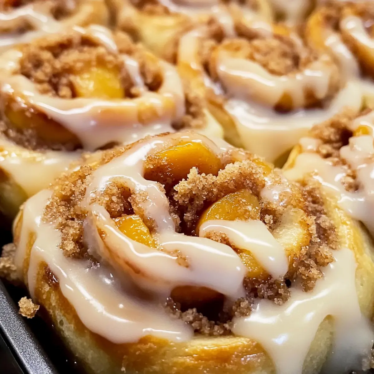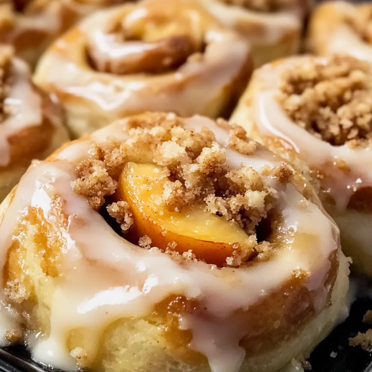 Ein warmer Duft von Zimt und frisch gebackenen Pfirsichen durchzieht die Küche, während die ersten Sonnenstrahlen den Tag begrüßen. Heute lade ich euch ein, eine köstliche Reise in die süßen Gefilde des Südens zu unternehmen – mit meinen Pfirsich-Cobbler-Zimtschnecken mit Streusel-Topping. Diese saftigen, fluffigen Rolle vereinen die knackigen Aromen reifer Pfirsiche und die wohlige Wärme von Zimt, perfekt für ein gemütliches Frühstück oder als verführerisches Dessert. Das Beste daran? Sie sind einfach zuzubereiten und werden garantiert zum Star auf jeder gedeckten Tafel. Neugierig, wie ihr diesen Genuss zaubern könnt? Lasst uns gleich loslegen! Warum sind diese Zimtschnecken besonders? Einzigartiger Geschmack: Die Kombination von saftigen Pfirsichen und würzigem Zimt bringt den perfekten Hauch von Süße. Einfachheit: Auch ohne viel Erfahrung in der Küche kannst du diese weltenklasse Zimtschnecken problemlos zubereiten. Vielseitigkeit: Ob zum Frühstück oder als Dessert, sie passen perfekt zu jedem Anlass und begeistern deine Gäste. Aromatischer Genuss: Der verführerische Duft beim Backen weckt Erinnerungen an den Süden und macht das Gaumenvergnügen perfekt. Bringe einen Hauch von Südstaaten-Flair in dein Zuhause! Pfirsich-Cobbler-Zimtschnecken Zutaten Für den Teig: • Allzweckmehl – sorgt für die Struktur des Teigs. Hinweis: Mit einer glutenfreien Mehlmischung ersetzen für eine glutenfreie Variante. • Zucker – bringt Süße in den Teig und die Zimtfüllung. Hinweis: Kann reduziert werden, wenn du es weniger süß magst. • Hefe – lässt den Teig aufgehen und sorgt für eine luftige Textur. Hinweis: Immer die Hefe aktivieren, um die besten Ergebnisse zu erzielen. • Salz – verbessert den Geschmack und kontrolliert die Hefefermentation. • Milch – hydratisiert den Teig; bei Raumtemperatur für optimales Gehen verwenden. • Butter – verleiht Reichhaltigkeit und Geschmack; kann durch Margarine ersetzt werden. Für die Füllung: • Pfirsiche – bieten eine saftige, fruchtige Füllung; verwende abgetropfte Dosenpfirsiche, wenn frische nicht verfügbar sind. • Zimt – bringt die warme Gewürznote in die Füllung und das Topping. Für das Streusel-Topping: • Mehl – sorgt für die Basis der Streusel. • Zucker – fügt Süße zu den Streuseln hinzu. • Butter – macht die Streusel knusprig und lecker. Für den Guß: • Frischkäse – sorgt für die cremige Glasur, die dem Gebäck einen zusätzlichen Geschmackskick gibt. • Puderzucker – süßt die Frischkäseglasur. Diese Pfirsich-Cobbler-Zimtschnecken mit Streusel-Topping werden dein Zuhause mit ihrem köstlichen Aroma erfüllen und nahezu jeden Gaumen erfreuen! Schritt-für-Schritt-Anleitung für Pfirsich-Cobbler-Zimtschnecken mit Streusel-Topping Step 1: Teig zubereiten Vermische in einer großen Schüssel das Allzweckmehl, den Zucker, die Hefe und das Salz. Erwärme parallel die Milch und die Butter bei niedriger Temperatur, bis sie schmelzen. Gieße die warme Flüssigkeit in die trockenen Zutaten und knete den Teig auf einer bemehlten Oberfläche etwa 5-7 Minuten lang, bis er glatt und elastisch ist. Step 2: Teig gehen lassen Lege den gekneteten Teig in eine leicht eingefettete Schüssel und decke ihn mit einem sauberen Küchentuch ab. Stelle die Schüssel an einen warmen Ort, um den Teig für etwa 1 Stunde gehen zu lassen, bis er sich in der Größe verdoppelt hat. Achte darauf, dass der Teig weich und luftig wirkt, wenn er bereit zum Weiterverarbeiten ist. Step 3: Füllung herstellen Während der Teig geht, mische den Zucker mit dem Zimt in einer kleinen Schüssel und stelle diese beiseite. Schneide die frischen Pfirsiche in kleine Stücke und gib sie in eine große Schüssel. Mische die Pfirsiche vorsichtig mit der Zimt-Zucker-Mischung, sodass sie gleichmäßig überzogen sind und bereit zur Verwendung in den Zimtschnecken sind. Step 4: Zimtschnecken formen Knete den gegangenen Teig auf einer bemehlten Oberfläche leicht durch, um die Luft herauszudrücken. Rolle den Teig mit einem Nudelholz auf etwa 30 x 40 cm aus. Verteile die vorbereiteten Pfirsiche gleichmäßig über die Teigfläche und streue die Zimt-Zucker-Mischung darüber. Rolle den Teig von einer langen Seite her auf und schneide ihn in 12 gleichmäßige Stücke. Step 5: Streusel-Topping zubereiten Vermische in einer Schüssel Mehl, Zucker und weiche Butter mit einer Gabel oder den Fingern, bis die Mischung krümelig aussieht. Die Streusel sollten sich leicht zusammenpressen lassen, bieten jedoch noch genug Struktur. Stelle die Streusel abgedeckt beiseite, während die Zimtschnecken backen. Step 6: Backen Lege die Zimtschnecken in eine gefettete Backform und lasse sie nochmals ca. 20 Minuten abgedeckt gehen. Heize den Ofen auf 175°C vor. Streue die vorbereiteten Streusel gleichmäßig über die Zimtschnecken und backe sie dann 25-30 Minuten lang, bis sie goldbraun sind und einen köstlichen Duft verbreiten. Step 7: Glasur zubereiten Während die Pfirsich-Cobbler-Zimtschnecken abkühlen, bereite die Glasur vor. Schlage in einer großen Schüssel den Frischkäse und den Puderzucker mit einem Handmixer glatt, bis die Masse cremig und gut vermischt ist. Warte, bis die Zimtschnecken leicht abgekühlt sind, bevor du die Glasur gleichmäßig darüber träufelst. Lagerungstipps für Pfirsich-Cobbler-Zimtschnecken Zimmertemperatur:: Die Pfirsich-Cobbler-Zimtschnecken können bis zu 3 Tage in einem luftdichten Behälter aufbewahrt werden, um ihre Frische zu bewahren. Kühlschrank:: Wenn du die Zimtschnecken länger aufbewahren möchtest, lege sie in einen luftdichten Behälter im Kühlschrank; sie bleiben dort bis zu einer Woche genießbar. Gefrierer:: Die Zimtschnecken können in einer gefrierfesten Tüte bis zu 3 Monate eingefroren werden. Achte darauf, sie gut zu verpacken, um Gefrierbrand zu vermeiden. Wiedererhitten:: Zum Aufwärmen die gefrorenen Zimtschnecken über Nacht im Kühlschrank auftauen lassen und dann im