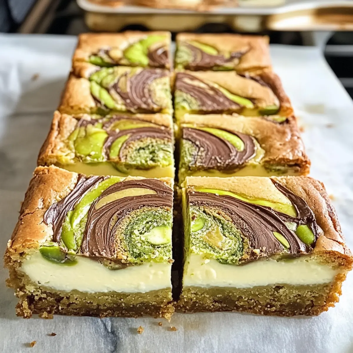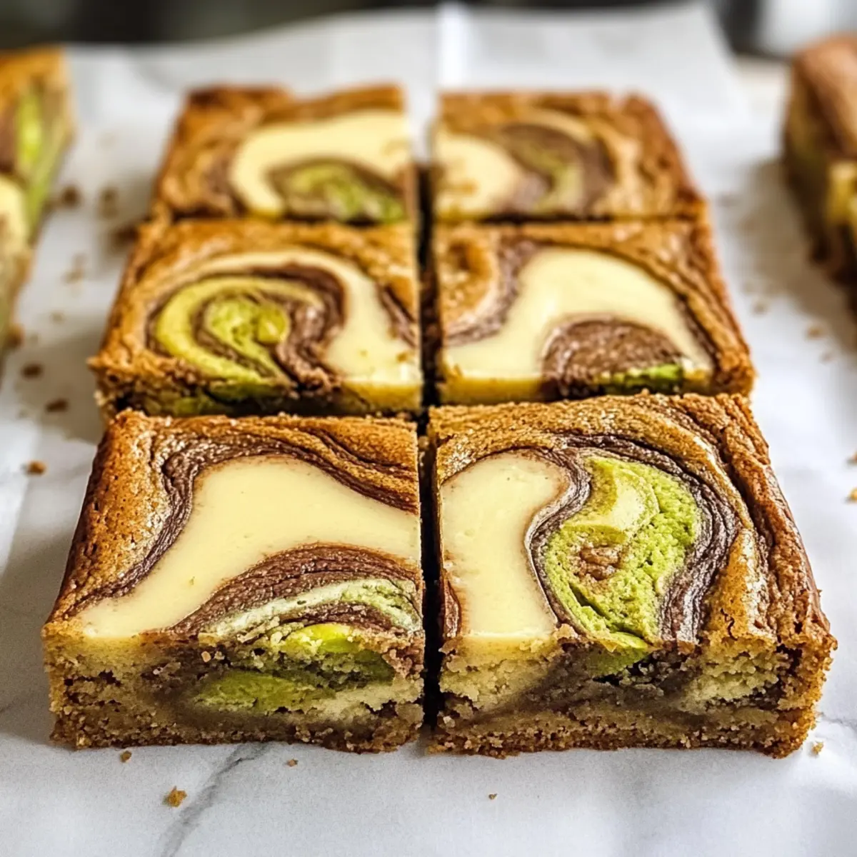 Es ist dieser besondere Moment, wenn der Duft von frisch gebackenem Gebäck durch die Küche zieht und Erinnerungen an festliche Zusammenkünfte weckt. Heute lade ich euch ein, ein wahrhaft luxuriöses Dessert zu kreieren: die Pistazien-Blondies mit einer cremigen Cheesecake-Schicht. Diese süßen Stückchen vereinen eine zarte, buttrige Blondie-Basis mit einem reichhaltigen Pistazienwirbel, der selbst den anspruchsvollsten Gaumen verzaubert. Perfekt für besondere Anlässe oder einfach zum Verwöhnen an einem gemütlichen Abend – diese Blondies werden garantiert zum Highlight deines Dessertbuffets! Sie sind ein wahrer Genuss, der den süßen Zahn erfreut, aber nicht überwältigt. Bist du bereit, mit mir in die Welt der Pistazien-Blondies einzutauchen? Warum wirst du diese Pistazien-Blondies lieben? Luxuriöse Aromen: Die Kombination aus cremigem Käsekuchen und nussigem Pistazienwirbel ergibt ein Geschmackserlebnis, das die Herzen höher schlagen lässt. Einfache Zubereitung: Mit nur wenigen Schritten und Zutaten kannst du ein edles Dessert zaubern, das deine Gäste beeindrucken wird. Vielseitigkeit: Diese Blondies sind perfekt für jede Gelegenheit, sei es ein festliches Dinner oder ein gemütlicher Filmabend. Anpassbare Varianten: Experimentiere mit verschiedenen Nüssen oder füge Schokoladenstückchen hinzu, um deinen eigenen Twist zu kreieren. Perfekte Textur: Die Kombination aus zähem Blondie und cremiger Cheesecake-Schicht sorgt für einen angenehmen Biss, der deine Geschmacksknospen verzaubert. Pistazien-Blondies Zutaten Für den Blondie-Teig: • Ungesalzene Butter – sorgt für eine reiche Basis; wenn nicht verfügbar, verwende gesalzene Butter, reduziere aber das zusätzliche Salz im Rezept. • Hellbrauner Zucker – bringt eine karamellartige Tiefe und Zähigkeit; dunkler Zucker kann den Pistaziengeschmack überwältigen. • Eier – sorgen für Struktur; achte darauf, dass sie Zimmertemperatur haben für bessere Einbindung. • Vanilleextrakt – verstärkt die Süße; kann durch Mandel-Extrakt ersetzt werden für einen anderen Geschmacksprofil. • Allzweckmehl – bindet die Zutaten, ohne die Blondies schwer zu machen; wichtig, nicht zu übermixen. Für die Cheesecake-Schicht: • Frischkäse – kreiert die cremige Mischung; verwende fettarmen Frischkäse, aber vermeide fettfreien, da er die Textur verändern kann. • Zucker – süßt die Cheesecake-Schicht und balanciert die Aromen. Keine direkten Ersatzmöglichkeiten für die Textur. • Eigelb – sorgt für die Geschmeidigkeit der Cheesecake-Schicht; nicht durch ein ganzes Ei ersetzen für denselben Effekt. Für den Pistazienwirbel: • Pistazienpaste – bringt den nussigen Geschmack; homemade Paste ist bevorzugt für Frische, während gekaufte in der Not funktioniert, aber möglicherweise weniger lebhaft ist. • Salz – balanciert die Süße und rundet den Geschmack ab; ist auch in Dessertrezepten unerlässlich. • Grüne Gel-Farbe (optional) – hellt den Pistazienwirbel visuell auf, beeinflusst jedoch nicht den Geschmack. Viel Spaß beim Zubereiten deiner Pistazien-Blondies! Schritt-für-Schritt-Anleitung für Pistazien-Blondies Step 1: Vorbereitung Heize den Ofen auf 175 °C (350 °F) vor und lege eine 20×20 cm (8×8 Zoll) Backform mit Backpapier aus, sodass etwas übersteht. Dies erleichtert das Herausnehmen der Blondies nach dem Backen. Step 2: Butter-Mischung Schmelze die ungesalzene Butter in einem kleinen Topf und lasse sie leicht abkühlen. Vermische die geschmolzene Butter anschließend mit dem hellbraunen Zucker in einer Schüssel, bis eine glatte Masse entsteht. Step 3: Nasse Zutaten kombinieren Füge die Eier und den Vanilleextrakt zu der Butter-Zucker-Mischung hinzu. Rühre die Zutaten vorsichtig zusammen, bis die Masse glänzend und homogen ist, ohne zu lange zu mixen. Step 4: Trockene Zutaten Streue das Salz und das Allzweckmehl in die Schüssel und rühre vorsichtig, bis alles gerade so miteinander vermischt ist. Achte darauf, nicht zu übermixen, um die zähe Textur der Pistazien-Blondies zu erhalten. Step 5: Grundmasse verteilen Gebe den Blondie-Teig gleichmäßig in die vorbereitete Backform und streiche die Oberfläche glatt. Achte darauf, dass die Verteilung gleichmäßig ist, damit die Blondies gleichmäßig backen. Step 6: Käsekuchen-Mischung Schlage in einer separaten Schüssel den Frischkäse und den Zucker mit einem Handmixer cremig. Füge das Eigelb und den Vanilleextrakt hinzu und vermische alles gut, bis die Mischung glatt und cremig ist. Step 7: Schichten Löffle die Käsekuchen-Mischung in Klecksen über den Blondie-Teig. Gebe danach kleine Portionen der Pistazienpaste auf die Käsekuchen-Schicht, ohne sie hinein zu drücken. Step 8: Wirbeln Nutze ein Messer oder einen Holzspiess, um die drei Schichten leicht miteinander zu vermengen. Ziehe sanft through die Mischung, um ein marmoriertes Muster zu erzeugen, und achte darauf, dass die Schichten erkennbar bleiben. Step 9: Backen Backe die Pistazien-Blondies für 30 bis 35 Minuten. Sie sind fertig, wenn die Ränder goldbraun sind und die Mitte leicht wackelig ist. Lass sie in der Form auf einem Kuchengitter abkühlen und stelle sie dann für mindestens eine Stunde in den Kühlschrank. Step 10: Schneiden Hebe die Blondies mit Hilfe des Backpapiers aus der Form und schneide sie mit einem sauberen, scharfen Messer in Stücke. So erhältst du saubere und ansprechende Schnitte für deine Pistazien-Blondies. Expertentipps für Pistazien-Blondies Zutaten zuerst temperieren: Achte darauf, dass alle Zutaten Zimmertemperatur haben, besonders die Eier und der Frischkäse, um eine gleichmäßige Konsistenz zu gewährleisten. Teig sanft vermengen: Vermeide es, den Teig zu stark zu mixen, nachdem das Mehl hinzugefügt wurde. Zu viel Rühren kann die Blondies zäh machen. Perfekte Swirl-Technik: Wenn du die Käsekuchenmischung und die Pistazienpaste einfügst, drücke sie nicht zu fest ein. Ein sanfter Wirbel erzeugt die besten Marmormus