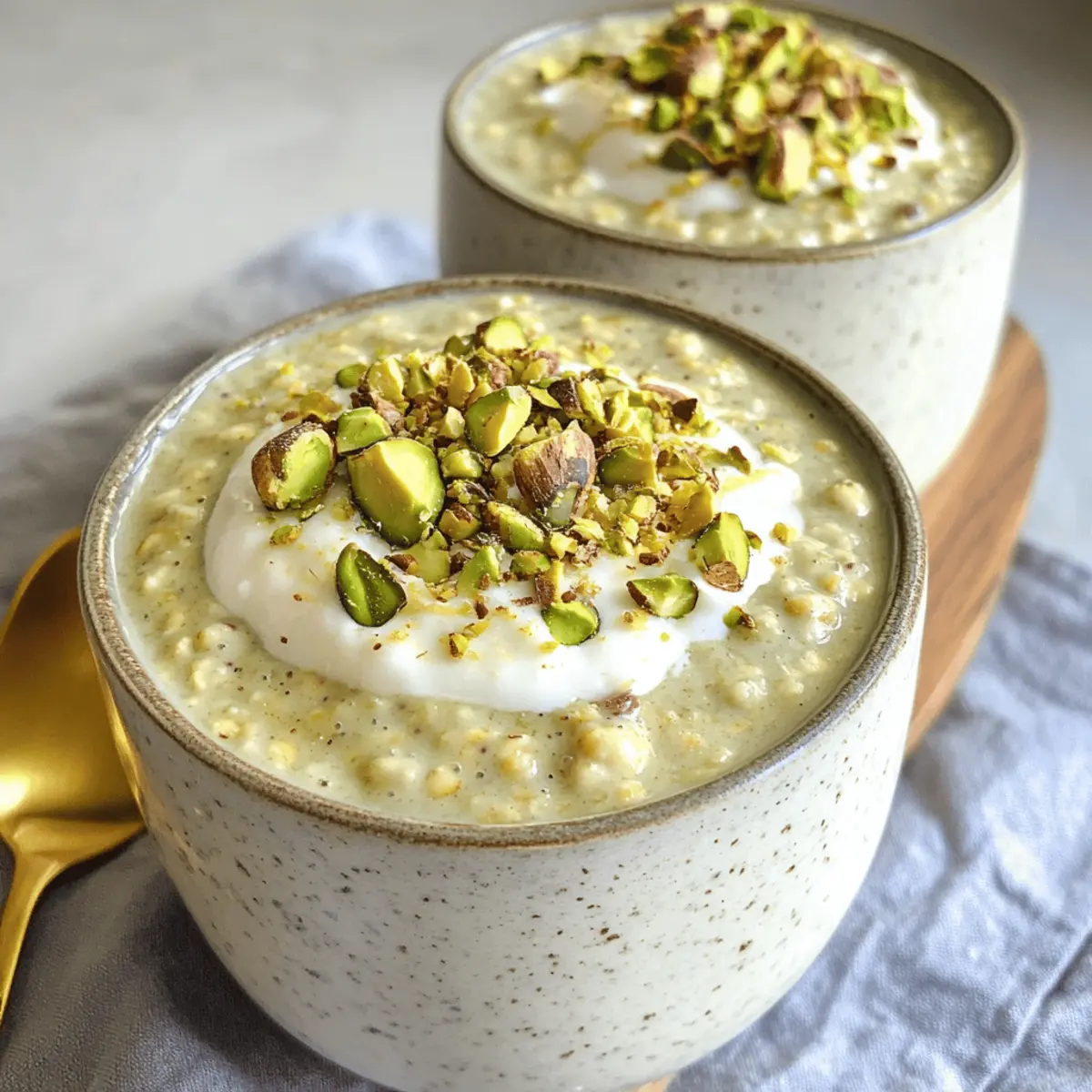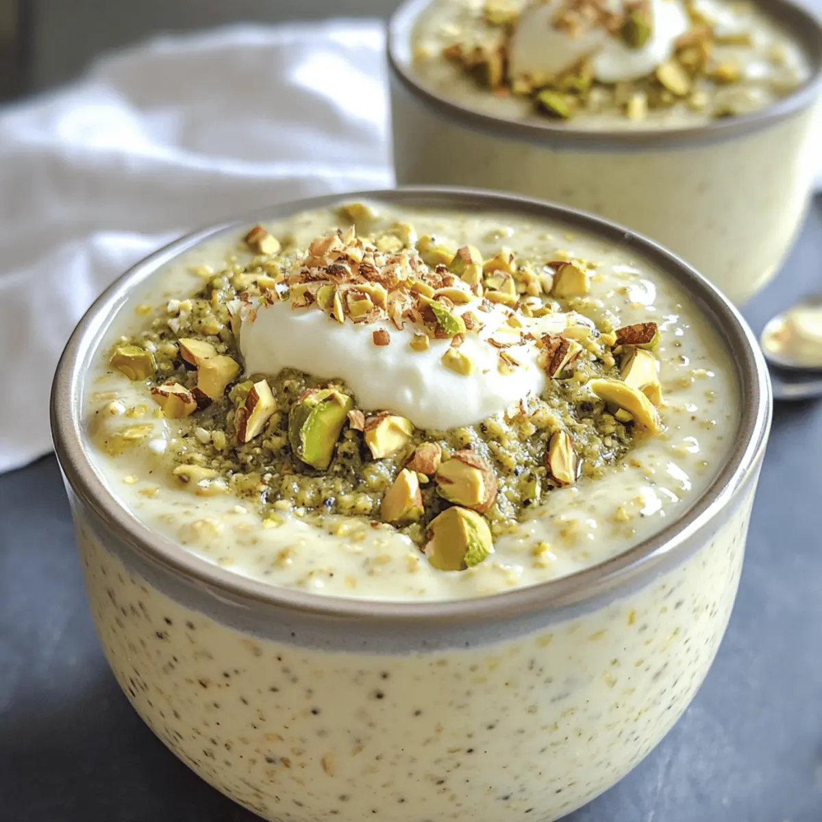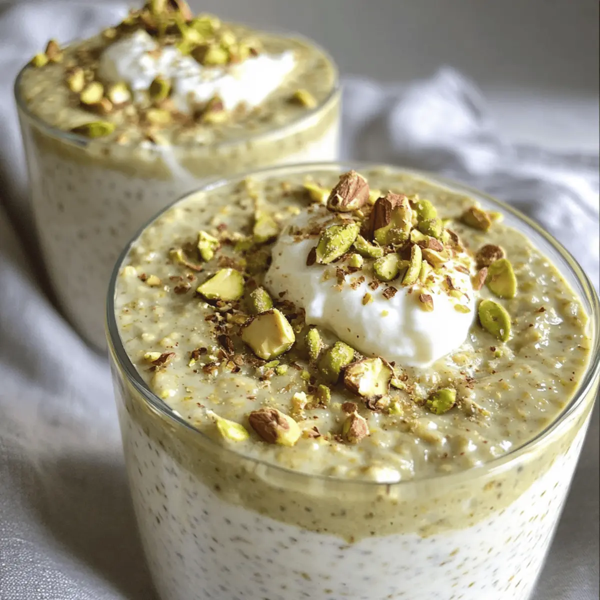 Die Sonne geht auf, und ich genieße den köstlichen Duft von Pistazien, der durch meine Küche zieht. Diese Pistazien Overnight Oats sind mehr als nur ein Frühstück – sie sind ein Traum für alle Liebhaber dieser nussigen Köstlichkeit! Mit einer cremigen Textur, die perfekt mit der pflanzlichen Joghurtkombination harmoniert, bieten sie einen gesunden und energiereichen Start in den Tag. Ideal für alle, die in der Hektik des Alltags schnell eine nahrhafte Mahlzeit zubereiten möchten, sind diese Oats nicht nur einfach zu machen, sondern auch vielseitig. Ihr könnt sie ganz nach Belieben mit saisonalen Früchten oder euren Lieblings-Toppings verfeinern. Seid ihr bereit, die perfekte Morgenroutine zu entdecken? Warum sind Pistazien Overnight Oats besonders? Unvergleichlicher Geschmack: Die Kombination aus nussigen Pistazien und cremigem Joghurt sorgt für ein Geschmackserlebnis, das Sie lieben werden. Einfache Zubereitung: In nur wenigen Minuten sind die Zutaten gemixt und bereit für die Nacht im Kühlschrank! Vielseitig: Ob mit frischen Beeren oder Zimt-Apfelstücken, die Variationsmöglichkeiten sind endlos. Gesundheitsbewusst: Reich an Ballaststoffen und gesunden Fetten, bieten sie nachhaltige Energie für den Tag. Perfekt für jede Gelegenheit: Ob zum Frühstück, Snack oder Dessert – sie sind immer ein Hit! Falls ihr nach weiteren köstlichen Rezepten sucht, probiert doch Bunter Kinder Nudelsalat oder Zarte Rinderbissen Mit für vielseitige Gerichte! Pistazien Overnight Oats Zutaten • Hinweis: Entdecken Sie die besten Zutaten für Ihre Pistazien Overnight Oats, die gesund und lecker sind! Für die Basis Rolled Oats – sorgen für eine weiche Textur, die Flüssigkeit gut aufnimmt; am besten eignen sich feine Haferflocken. Pflanzliche Milch – fügt Feuchtigkeit und Cremigkeit hinzu; Sie können Mandel- oder Hafermilch als Alternative verwenden. Pistazienpaste/-butter – liefert intensiven Pistaziengeschmack; nutzen Sie reine 100% Pistazienpaste für den besten Geschmack. Salz – verstärkt den Gesam Geschmack; unerlässlich zur Balance der Süße. Vanillepulver/-paste – sorgt für aromatische Süße; kann durch Vanilleextrakt ersetzt werden. Für die Nährstoffreichhaltigkeit Chiasamen – verbessern die Konsistenz und erhöhen die Nährstoffdichte; optional, aber empfohlen für zusätzliche Textur. Ahornsirup – natürlicher Süßstoff zur Geschmacksverstärkung; kann durch Agaven- oder Honigsirup ersetzt werden. Joghurt (z.B. Alpro Vanille Skyr) – sorgt für Cremigkeit und Eiweiß; jeder pflanzliche oder Milchjoghurt kann als Ersatz verwendet werden. Toppings (optional) Frisches Obst – bringen Farbe und Frische; perfekt sind Beeren oder geschnittene Früchte der Saison. Gehackte Pistazien – bieten zusätzlichen Crunch und verstärken den Pistaziengeschmack; einfach kurz vor dem Servieren darüberstreuen. Leicht geschlagene Pistaziencreme – sorgt für eine luxuriöse Garnitur; ideal für besondere Anlässe. Lassen Sie sich von diesen Zutaten inspirieren und bereiten Sie Ihre eigenen köstlichen Pistazien Overnight Oats zu! Schritt-für-Schritt-Anleitung für Pistazien Overnight Oats Schritt 1: Pistazienmilch mischen In einem kleinen Mixer die pflanzliche Milch und die Pistazienpaste geben. Mixen, bis die Mischung vollkommen glatt und cremig ist. Dies sorgt für eine gleichmäßige Verteilung des Pistaziengeschmacks in den Pistazien Overnight Oats. Insgesamt sollten Sie etwa 1–2 Minuten dafür einplanen. Schritt 2: Trockene Zutaten kombinieren In einer separaten Schüssel die Haferflocken, Chiasamen, Salz, Vanillepulver und den Ahornsirup gründlich vermengen. Diese trockenen Zutaten bilden die Basis für die Pistazien Overnight Oats und sorgen für eine köstliche Textur und Geschmack. Achten Sie darauf, dass alles gut vermischt ist, bevor Sie weitermachen. Schritt 3: Nasse und trockene Zutaten mischen Gießen Sie die vorbereitete Pistazienmilch über die trockenen Zutaten in der Schüssel. Rühren Sie kräftig um, bis alle Zutaten gleichmäßig feucht sind und keine trockenen Stellen mehr sichtbar sind. Dies hilft den Haferflocken, die Flüssigkeit gut aufzunehmen und die perfekte Konsistenz zu erreichen. Schritt 4: Über Nacht kühlen Die Mischung in einen luftdichten Behälter umfüllen und über Nacht in den Kühlschrank stellen. Lassen Sie die Pistazien Overnight Oats mindestens 6-8 Stunden ziehen, damit die Haferflocken weich werden und die Aromen sich gut entfalten. Während dieser Zeit quellen die Zutaten auf und verwandeln sich in ein cremiges Frühstück. Schritt 5: Toppings zubereiten Vor dem Servieren können Sie optional die Pistazien Overnight Oats mit Joghurt, leicht geschlagener Pistaziencreme und gehackten Pistazien garnieren. Bereiten Sie die Toppings frisch vor, um dem Gericht zusätzlichen Geschmack und Textur zu verleihen. Dies macht Ihr Frühstück besonders einladend und lecker. Lagerungstipps für Pistazien Overnight Oats Kühlschrank: Bewahren Sie Ihre Pistazien Overnight Oats in einem luftdichten Behälter auf, wo sie bis zu 2-3 Tage frisch bleiben. So bleiben die Aromen erhalten und die Konsistenz bleibt cremig. Zubereitung im Voraus: Wenn Sie planen, mehrere Portionen zuzubereiten, können Sie die Haferflocken-Mischung bis zu einer Woche im Kühlschrank aufbewahren. Das vereinfacht die morgendliche Zubereitung. Einfrieren: Für eine längere Lagerung können Sie die Kombination der Pistazien Overnight Oats bis zu 1 Monat im Gefrierfach aufbewahren. Achten Sie darauf, sie vor dem Servieren über Nacht im Kühlschrank aufzutauen. Wiedereinwärmen: Sollten Sie die Oats aufgewärmt genießen wollen, geben Sie einen Schuss pflanzliche Milch hinzu, um die gewünschte Konsistenz zu erreichen, und erwärmen Sie sie sanft in der Mikrowelle oder auf dem Herd. Was passt zu Pistazien Overnight Oats? Lassen Sie sich von einer harmonischen Kombination inspirieren, die Ihr Frühstück zu einem unvergesslichen Erlebnis macht. Frische Beeren: Bri