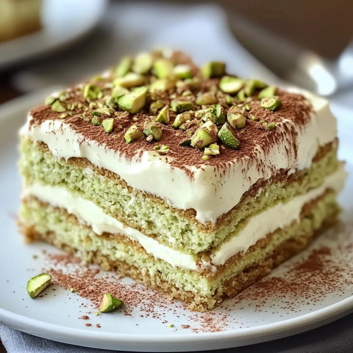 Es gibt Momente in der Küche, die einen kurzen Augenblick der Unsicherheit auslösen können, gerade wenn man eine neue Kreation wagt. Aber dann stehst du da und hältst ein Pistazien-Tiramisu in der Hand – und plötzlich ersetzst du alle Zweifel durch Freude! Dieses Rezept kombiniert die zarte, cremige Konsistenz eines klassischen Tiramisu mit der nussigen Aromenvielfalt der Pistazie, was es zu einem wahren Hingucker für jeden Anlass macht. Vor allem, dass du in weniger als 30 Minuten eine beeindruckende Nachspeise zaubern kannst, ist ein unschlagbarer Vorteil. Es ist nicht nur einfach zuzubereiten, sondern auch ein echter Publikumsmagnet, der deine Gäste verzaubern wird. Bist du bereit, deinem Dessertspiel eine köstliche Wendung zu geben? Warum wirst du dieses Rezept lieben? Einzigartiger Geschmack: Das Pistazien-Tiramisu vereint die klassischen Aromen des italienischen Desserts mit einer aufregenden Nussnote. Einfachheit: Die Zubereitung ist unkompliziert und ermöglicht es auch unerfahrenen Köchen, eindrucksvolle Ergebnisse zu erzielen. Schnelle Vorbereitung: Mit weniger als 30 Minuten Zubereitungszeit plus Kühlzeit ist es perfekt für spontane Anlässe oder wenn du Gäste beeindrucken möchtest. Visuelles Highlight: Die ansprechenden Schichten und die knackige Pistazien-Dekoration machen dieses Dessert nicht nur lecker, sondern auch zu einem Fest fürs Auge. Vielseitige Anpassungen: Du kannst ganz einfach mit verschiedenen Geschmäckern experimentieren, indem du zum Beispiel die Pistazien durch Mandeln oder Haselnüsse ersetzt. Wenn du nach ähnlichen Rezepten suchst, schau dir unser Schokoladen-Tiramisu an! Crowd-Pleasing: Ob Geburtstag, Feiertag oder einfaches Wochenende – dieses Dessert ist immer ein Hit und wird sicher für Gespräche sorgen. Pistazien-Tiramisu Zutaten Hinweis: Hier sind die notwendigen Zutaten für dein köstliches Pistazien-Tiramisu, das deine Gäste begeistern wird! Für die Creme Doppelrahm – sorgt für die reichhaltige und cremige Konsistenz des Tiramisu; vor dem Schlagen auf Zimmertemperatur bringen. Puderzucker – fügt eine angenehme Süße hinzu; kann alternativ durch normale Staubzucker ersetzt werden. Mascarpone-Käse – das Herzstück der Creme, bietet eine samtige Textur und intensiven Geschmack; unbedingt die Vollfett-Variante wählen. Pistaziencreme – gibt dem Tiramisu seine einzigartige Geschmacksnote; achte auf hochwertige Pistaziencreme für das beste Ergebnis. Für die Schichten Starker Kaffee – wird benötigt, um die Löffelbiskuits zu tränken, und verleiht ihnen einen kräftigen Kaffeegeschmack; Espresso ist besonders zu empfehlen. Savoiardi-Löffelbiskuits – bieten Struktur und nehmen die Aromen gut auf; Alternativen können verwendet werden, jedoch kann dies die Textur beeinflussen. Für die Garnitur Gehackte Pistazien – ergänzen das Tiramisu mit einem knackigen Biss und sehen toll aus; andere Nüsse können auch verwendet werden. Jetzt hast du alles, was du für dein perfektes Pistazien-Tiramisu benötigst! Viel Spaß beim Zubereiten! Schritt-für-Schritt-Anleitung für das Pistazien-Tiramisu Step 1: Doppelrahm und Puderzucker schlagen Beginne mit einer großen Schüssel und schlage den Doppelrahm zusammen mit dem Puderzucker, bis sich weiche Spitzen bilden. Dies sollte etwa 3-5 Minuten dauern. Achte darauf, dass der Rahm frisch und kalt ist, um die beste Konsistenz zu erreichen. Wenn die Mischung fluffig aussieht, stelle sie beiseite, während du die nächste Schicht vorbereitest. Step 2: Mascarpone und Pistaziencreme vermengen In einer separaten Schüssel den Mascarpone-Käse und die Pistaziencreme mit einem Handmixer auf mittlerer Stufe glatt rühren. Dies sollte rund 2-3 Minuten in Anspruch nehmen. Achte darauf, dass keine Klumpen zurückbleiben. Sobald die Mischung cremig ist, hebe den geschlagenen Doppelrahm vorsichtig unter, um die luftige Textur zu bewahren. Step 3: Savoiardi in Kaffee tränken Bereite währenddessen eine Schüssel mit starkem, abgekühltem Espresso vor. Tauche jede Savoiardi-Löffelbiskuit für 2-3 Sekunden auf jeder Seite in den Kaffee, bis sie gut durchtränkt sind, aber noch stabil bleiben. Übermäßiges Einweichen führt dazu, dass die Biskuits zerfallen, also sei vorsichtig. Leg die getränkten Löffelbiskuits auf ein Backblech. Step 4: Schichten des Tiramisu erstellen Beginne mit einer mittelgroßen Form (ca. 23 x 33 cm) und lege eine erste Schicht der eingeweichten Löffelbiskuits gleichmäßig am Boden aus. Danach verteile eine großzügige Schicht der Pistazien-Creme-Mischung darauf, die schön glatt gestrichen wird. Diese Kombination verleiht deinem Pistazien-Tiramisu die perfekte Basis. Step 5: Weitere Schichten hinzufügen Wiederhole den Vorgang, indem du erneut die eingetauchten Savoiardi auf die erste Schicht legst. Decke diese mit einer weiteren Schicht der Pistaziencreme ab und achte darauf, alles gleichmäßig zu verteilen. Beende den Schichtvorgang mit einer letzten Schicht der Pistaziencreme, die die gesamte Struktur stabil hält und köstlich aussieht. Step 6: Dekoration der Oberfläche Nimm einige zusätzliche Pistaziencreme und spritze damit dekorative Linien auf die oberste Schicht. Um eine hübsche Gestaltung zu erzeugen, ziehe mit einem Zahnstocher durch die Linien. Dies verleiht deinem Pistazien-Tiramisu ein elegantes Finish und macht es noch ansprechender für die Gäste. Step 7: Kühlen für beste Ergebnisse Decke das Tiramisu mit Frischhaltefolie ab und stelle es für mindestens 4 Stunden, besser noch über Nacht, in den Kühlschrank. Diese Ruhezeit lässt die Aromen wunderbar fusionieren und sorgt dafür, dass das Tiramisu schön fest wird. Zeige Geduld, während die Magie wirkt! Step 8: Servieren und Garnierung Vor dem Servieren nimm das Tiramisu aus dem Kühlschrank und lasse es etwa 20 Minuten bei Raumtemperatur stehen, um die Aromen zu intensivieren. Bestreue die Oberfläche mit gehackten Pistazien für zusätzlichen Crunch und eine schöne Präsentation.