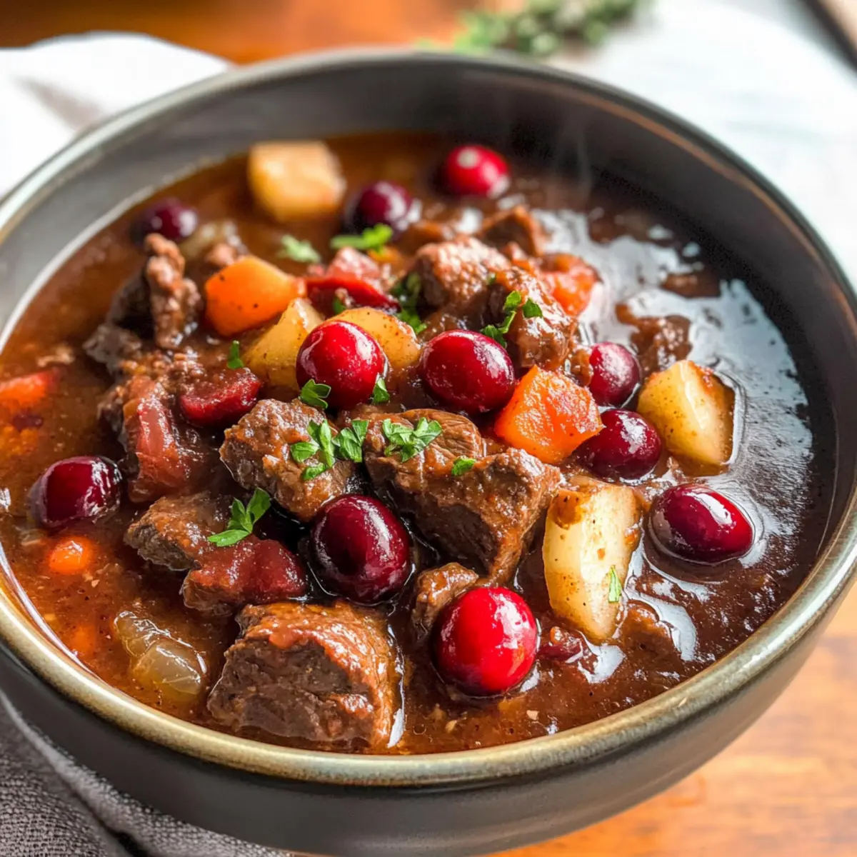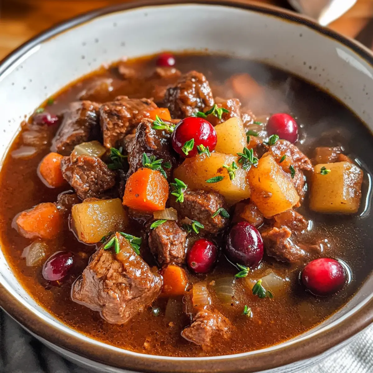 Der Duft von frischem Eintopf im Haus hat etwas Magisches, das Erinnerungen an warme Herbstabende weckt. Heute lade ich euch ein, einen Preiselbeer-Apfel-Rindfleisch-Eintopf zuzubereiten, der genau das perfekte Wohlfühlessen für kühle Tage ist. Mit zartem Rindfleisch, saftigen Äpfeln und der spritzigen Note von Cranberries wird dieses Gericht nicht nur euren Gaumen erfreuen, sondern ist auch eine schnelle Lösung für ein herzhaftes Familienessen. Besonders toll ist, dass ihr das Rezept sowohl auf dem Herd als auch im Instant Pot zubereiten könnt – so bleibt ihr flexibel! Seid ihr bereit, in die Welt des herbstlichen Genusses einzutauchen? Warum ist dieser Eintopf so besonders? Wohlfühlfaktor: Dieser Preiselbeer-Apfel-Rindfleisch-Eintopf sorgt sofort für Gemütlichkeit. Der köstliche Duft erfüllt euer Zuhause und weckt Erinnerungen an gemütliche Abende. Vielseitige Zubereitung: Egal ob auf dem Herd oder im Instant Pot, ihr habt die Freiheit, die Methode zu wählen, die am besten zu eurem Zeitplan passt. Herbstliche Aromen: Die Kombination aus Rindfleisch, Äpfeln und Cranberries bringt die Essenz des Herbstes in euren Topf. Schnelles Familienessen: Perfekt für einen stressfreien Wochentag – der Eintopf lässt sich einfach vorbereiten und schafft einen herzhaften Genuss für die ganze Familie. Gesunde Zutaten: Mit einer Vielzahl an frischen Gemüse und fruchtigen Aromen ist dieser Eintopf nicht nur lecker, sondern auch nährstoffreich. Für eine glutenfreie Variante lasst einfach das Mehl weg! Genießt dieses Rezept, das in eurer Küche zum neuen Lieblingsgericht werden könnte! Preiselbeer-Apfel-Rindfleisch-Eintopf Zutaten Hinweis: Dieser Preiselbeer-Apfel-Rindfleisch-Eintopf vereint herzhafte und fruchtige Aromen, die sich perfekt für eure gemütlichen Herbstabende eignen. Für das Fleisch • Rindfleisch (Chuck Roast) – Das Hauptprotein, das Tiefe und Reichhaltigkeit bietet; kann durch Rindfleisch für Eintöpfe ersetzt werden. • Olivenöl – Zum Anbraten des Rindfleisches und Sautieren von Gemüse; kann durch Pflanzenöl oder Butter ersetzt werden. Für die Brühe • Tomatenmark – Verleiht dem Eintopf Umami und Farbe; keine direkte Substitution notwendig. • Rotwein oder Rotweinessig – Verstärkt den Geschmack; Wein fügt Tiefe hinzu, während Essig Säure beiträgt, alternativ kann auch Balsamico-Essig verwendet werden. • Rinderbrühe – Bildet die Basis des Eintopfs, die alle Geschmäcker vereint; für eine leichtere Variante kann Gemüsebrühe verwendet werden. • Worcestershire-Sauce – Fügt komplexe salzige und herzhafte Tiefe hinzu; Sojasauce kann als Ersatz genutzt werden. Für das Gemüse • Zwiebel – Sorgt für Süße und Aroma, gewürfelt für gleichmäßiges Garen; Schalotten sind eine milde Alternative. • Sellerie – Bietet Knackigkeit und Leichtigkeit, dünn geschnitten; Karotten können als Ersatz verwendet werden. • Knoblauch – Sorgt für aromatische und herzhafte Noten; die Menge kann nach Vorliebe angepasst werden. • Karotten – Fügen Süße und Farbe hinzu, grob gewürfelt; andere Wurzelgemüse wie Pastinaken können ebenfalls verwendet werden. • Yukon Gold Kartoffeln – Trägt zur Cremigkeit bei; sie müssen nicht geschält werden, um Textur zu erhalten. • Lorbeerblätter – Verstärken den Geschmack; vor dem Servieren entfernen; kein direkter Ersatz, aber eine Prise getrockneter Thymian kann verwendet werden. Für die fruchtigen Noten • Granny Smith Apfel – Verleiht eine spritzige Note zur Geschmacksbalance; kann auch gegen spritzige Birnen getauscht werden, aber die Süße anpassen. • Cranberries – Fügen Säure und Farbe hinzu; gefrorene Cranberries sind akzeptabel; kein Ersatz notwendig. • Apfelwein – Bringt Süße und Säure ein, zur Verstärkung des Apfelgeschmacks; kann durch Apfelsaft ersetzt werden, wobei der Zuckergehalt an anderer Stelle im Rezept reduziert wird. Für die Aromatisierung • Frische Salbei – Liefert Erdigkeit; fein gehackt für die Infusion; kann durch getrockneten Salbei ersetzt werden, wobei etwa 1/3 der Menge verwendet wird. • Frische Petersilie – Für Garnierung und Frische; kann durch Schnittlauch ersetzt werden. Genießt die Zubereitung und lasst euch von dem wunderbar wärmenden Geschmack des Preiselbeer-Apfel-Rindfleisch-Eintopfs verzaubern! Schritt-für-Schritt-Anleitung für Preiselbeer-Apfel-Rindfleisch-Eintopf Step 1: Rindfleisch anbraten Erhitze in einem großen Schmortopf das Olivenöl bei mittlerer Hitze. Füge das gewürzte Rindfleisch hinzu und brate es rundherum für etwa 10 Minuten an, bis es schön braun ist. Achte darauf, dass das Fleisch nicht zu dicht im Topf liegt, um gleichmäßiges Anbraten zu gewährleisten. Step 2: Tomatenmark hinzufügen Rühre das Tomatenmark unter das angebratene Rindfleisch und lasse es für 2 Minuten anbraten, bis es leicht bräunt. Dies wird dem Preiselbeer-Apfel-Rindfleisch-Eintopf eine tiefere Geschmacksebene verleihen, während sich die Aromen weiter entfalten. Step 3: Ablöschen Gieße den Rotwein in den Topf und lasse ihn für weitere 2 Minuten kochen. Dabei kratzen die Küchenutensilien den Boden des Topfes ab, um die köstlichen Rückstände aufzulösen. Dies verstärkt den Geschmack des Eintopfs und sorgt für eine reichhaltige Brühe. Step 4: Gemüse sautieren Füge die gewürfelte Zwiebel, den dünn geschnittenen Sellerie und den gehackten Knoblauch hinzu. Brate alles bei mittlerer Hitze 3-4 Minuten lang, bis die Zwiebel glasig und weich ist. Diese aromatische Mischung bildet die Basis für den herzhaften Preiselbeer-Apfel-Rindfleisch-Eintopf. Step 5: Zutaten kombinieren Gib nun die restlichen Zutaten, einschließlich der Kartoffeln, Karotten, Äpfel, Worcestershire-Sauce, Apfelwein und Brühe, in den Topf. Bringe alles zum Kochen, reduziere dann die Hitze und lasse es für 1 Stunde sanft köcheln, bis das Rindfleisch zart ist und die Aromen gut durchgezogen sind. Step 6: Eintopf vollenden Rühre die frischen 
