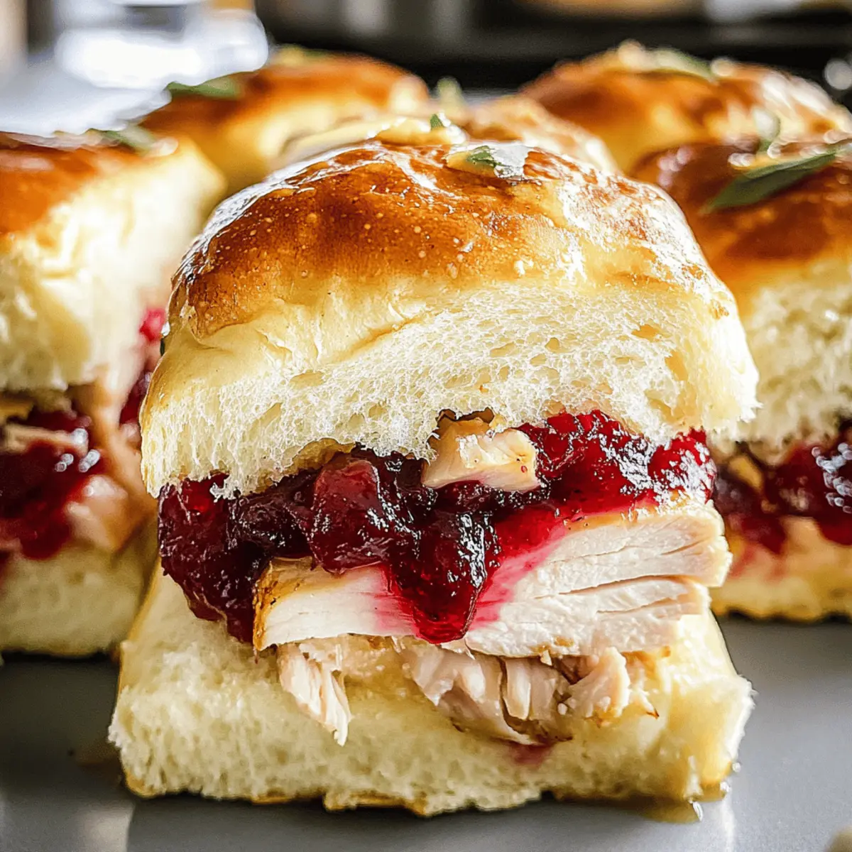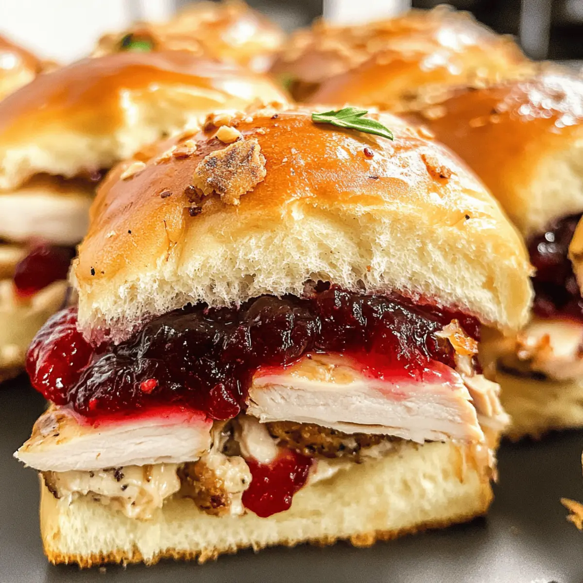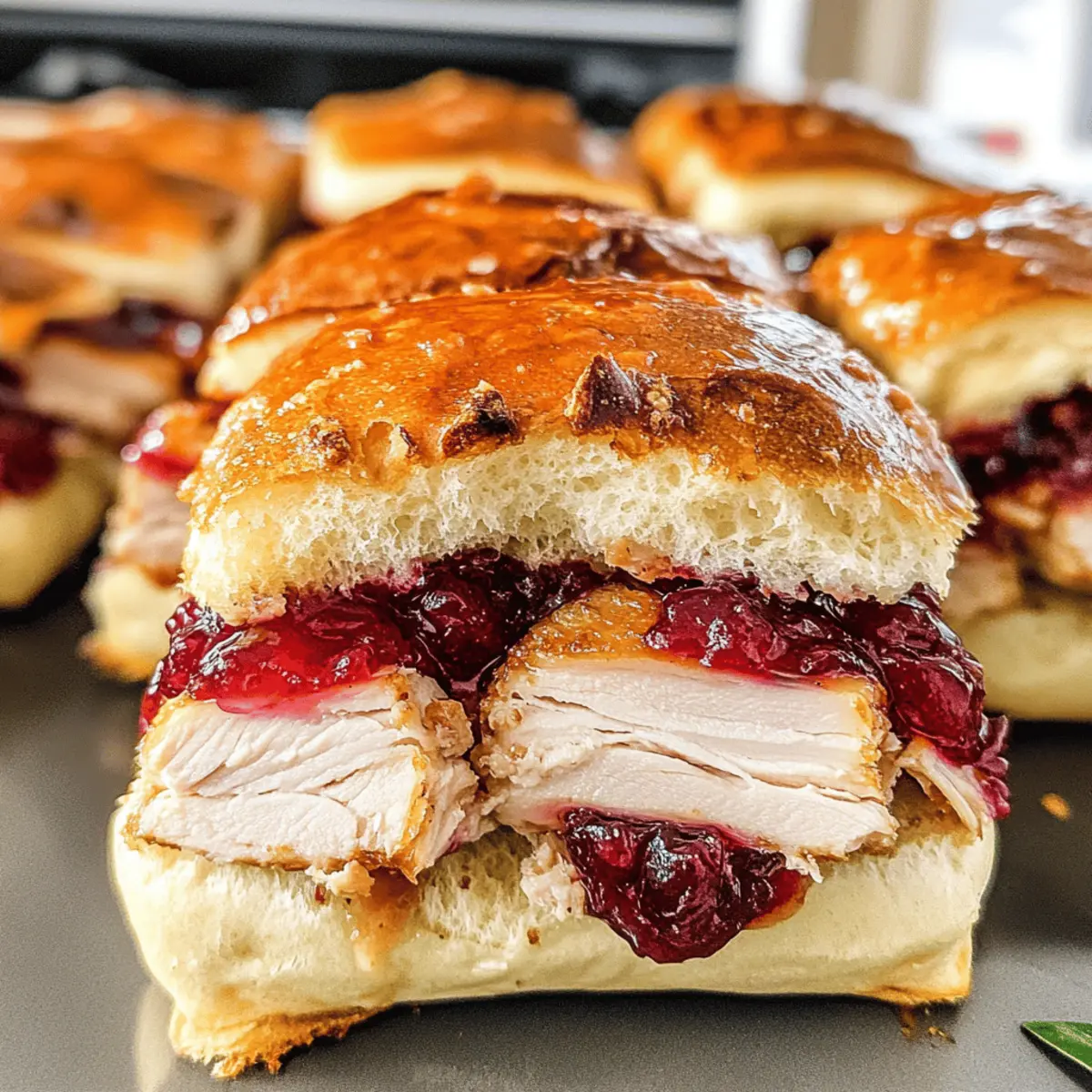 Als die erste kalte Brise das Ende des Herbstes ankündigte, wusste ich, dass es Zeit war für diese unverwechselbaren PREISELBEER-TRUTHAHN-SLIDER. Diese kleinen, aber feinen Häppchen vereinen zarten Putenschinken, süße Preiselbeersauce und schmelzenden Havarti-Käse, alles eingekuschelt zwischen zarten Hawaiian Rolls. Sie sind nicht nur schneller zuzubereiten, sondern auch die perfekte Lösung, um übrig gebliebenen Truthahn kreativ zu verwenden – ideal für gemütliche Feiertagsfeiern. Und der goldene, knusprige Belag, der beim Backen entsteht? Ein Garant für köstliche Komplimente! Neugierig, wie einfach und lecker das Rezept wirklich ist? Lass uns gleich in die Zubereitung eintauchen! Warum sind Preiselbeer-Trutahn-Slider einzigartig? Einfachheit, die überzeugt: Die Zubereitung dieser Slider erfordert nur grundlegende Kochfähigkeiten, sodass jeder glänzen kann. Vielseitigkeit in der Anwendung: Ob für Feiertagsfeiern oder als kreative Verwendung von Resten – diese Häppchen passen immer! Reichhaltiger Geschmack: Die Kombination aus köstlichem Truthahn, süßer Preiselbeersauce und schmelzendem Käse bietet ein Geschmackserlebnis, das Freunde und Familie begeistert. Perfekte Textur: Die Kombination von fluffy Hawaiian Rolls und dem knusprigen Belag sorgt für ein unvergleichliches Mundgefühl. Und wenn du nach weiteren Ideen zur Beilage suchst, schau dir unbedingt Butternusskürbisreis oder einfache Füllung an, um das Festmahl zu vervollständigen! Preiselbeer-Trutahn-Slider Zutaten • Diese Zutaten machen deine Feier unvergesslich! Hawaiian Rolls: Weiche Basis für die Slider – können auch durch andere sanfte Brötchen ersetzt werden. Deli-Truthahn: Liefert das Hauptprotein – ideal für die Verwendung von übrig gebliebenem Truthahn nach den Feiertagen. Preiselbeersauce: Fügt Süße und Feuchtigkeit hinzu – sowohl die geleeartige als auch die ganze Beeren-Variante sind köstlich. Havarti- oder Provolonekäse: Schmilzt wunderbar und sorgt für reichen Geschmack – Alternativen sind Münster oder Mozzarella. Ungesalzene Butter: Sorgt für zusätzlichen Geschmack und einen goldenen Belag beim Backen. Worcestershire-Sauce: Vertieft den Geschmack. Dijon-Senf: Bringt eine milde Würze und Säure mit sich. Zwiebelpulver: Trägt zu den herzhaften Aromen bei – frische Zwiebeln können genutzt werden, verändern jedoch die Textur. Mohnsamen: Fügen Knusprigkeit und optische Attraktivität hinzu – können auch weggelassen werden. Frische Schnittlauch: Bringt Frische und Farbe – kann durch Frühlingszwiebeln ersetzt werden. Mit diesen Zutaten bist du bestens gerüstet, um köstliche Preiselbeer-Trutahn-Slider zu kreieren, die nicht nur beeindrucken, sondern auch wunderbar schmecken! Schritt-für-Schritt-Anleitung für Preiselbeer-Trutahn-Slider Schritt 1: Ofen vorheizen Heize den Ofen auf 180°C vor und bereite eine Auflaufform mit etwas Kochspray vor, damit die Slider nicht haften bleiben. Es ist wichtig, dass der Ofen die richtige Temperatur erreicht, um eine gleichmäßige Bräunung und das Schmelzen des Käses zu gewährleisten. Schritt 2: Brötchen vorbereiten Schneide die Hawaiian Rolls in der Mitte durch und lege die unteren Hälften in die vorbereitete Backform. Achte darauf, dass die Brötchen gut nebeneinander liegen, um einen stabilen Untergrund für die restlichen Zutaten zu schaffen. Schritt 3: Truthahn schichten Verteile die Deli-Truthahnscheiben gleichmäßig über die unteren Brötchenhälften. Das Fleisch sollte großzügig aufgetragen werden, sodass jeder Bissen dieser Preiselbeer-Trutahn-Slider den köstlichen Geschmack des Truthahns verkörpert. Schritt 4: Preiselbeersauce auftragen Verteile die Preiselbeersauce gleichmäßig über die Truthahnschicht. Die süße Sauce sorgt für eine wunderbare Feuchtigkeit und ergänzt den herzhaften Geschmack des Truthahns. Achte darauf, dass jede Scheibe gut bedeckt ist. Schritt 5: Käse hinzufügen Lege die Käsescheiben gleichmäßig über die Preiselbeerschicht. Haferti oder Provolone eignen sich hervorragend, da sie schön schmelzen. Visuell solltest du sicherstellen, dass der Käse die gesamte Fläche abdeckt, um ein cremiges Aroma zu erzielen. Schritt 6: Oberhälften der Brötchen auflegen Setze die oberen Hälften der Hawaiian Rolls vorsichtig auf die Käseschicht. Drücke sie leicht nach unten, damit alles gut zusammenhält und später beim Backen schön verbunden wird. Schritt 7: Buttertopping vorbereiten Vermische in einer Schüssel die geschmolzene Butter, Worcestershire-Sauce, Dijon-Senf, Zwiebelpulver, Mohnsamen und frischen Schnittlauch. Diese Mischung sorgt für ein aromatisches und verführerisches Topping. Schritt 8: Topping auftragen Pinsel die Buttermischung großzügig über die Oberseiten der Brötchen, sodass sie gleichmäßig bedeckt sind. Dies wird den Goldton und die knusprige Textur verleihen, auf die wir bei den Preiselbeer-Trutahn-Slidern abzielen. Schritt 9: Backen Decke die Auflaufform mit Aluminiumfolie ab und backe die Slider für 15 bis 18 Minuten. So werden sie durchgehend warm und der Käse beginnt zu schmelzen. Nach Ablauf der Zeit solltest du sehen, dass die Brötchen anfangen, an den Rändern leicht weich zu werden. Schritt 10: Bräunen der Oberseite Entferne die Folie und backe die Slider weitere 3 bis 5 Minuten, bis die Oberseiten goldbraun sind und der Käse schön geschmolzen aussieht. Dies verleiht den Preiselbeer-Trutahn-Slidern den perfekten knusprigen Belag. Schritt 11: Servieren Nimm die Slider aus dem Ofen und serviere sie sofort, solange sie heiß und frisch sind. Der Duft wird deine Gäste direkt anziehen, und diese Mini-Sandwiches sind perfekt für jede festliche Feier! Aufbewahrungstipps für Preiselbeer-Trutahn-Slider Zimmertemperatur: Halte die Slider nicht länger als 2 Stunden bei Zimmertemperatur, um die Frische zu garantieren und das Wachstum von Bakterien zu vermeiden. Kühlschrank: Bewahre übrig gebliebene Preiselbeer-Trutahn-Slider in einem luftdich