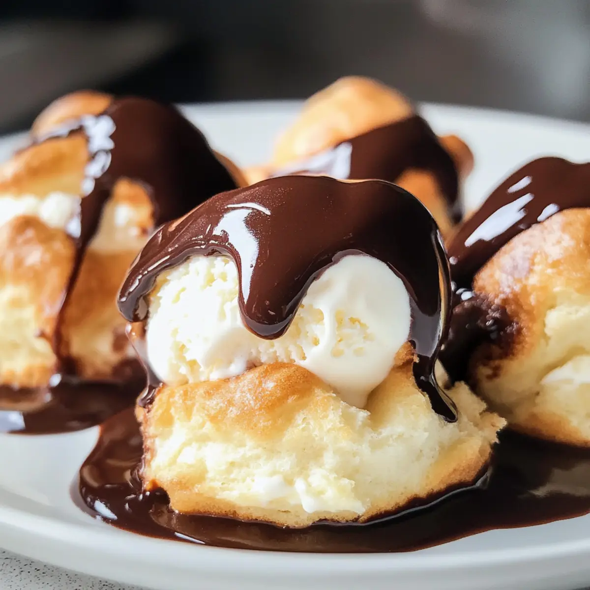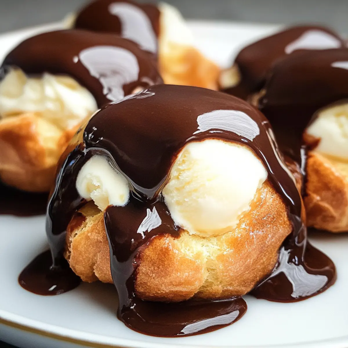 Profiteroles mit Schokolade sind eine köstliche Gaumenfreude und ein Meisterwerk der französischen Patisserie.