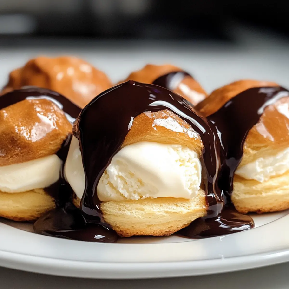 Dieses cremige Icedessert fügt eine samtige Süße hinzu, die die schokoladigen Aromen in den Profiteroles wunderbar unterstreicht.