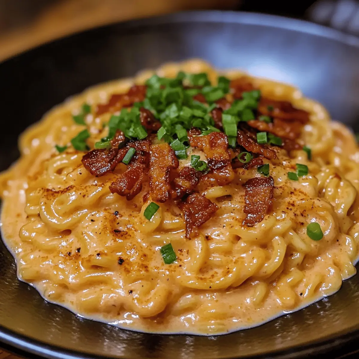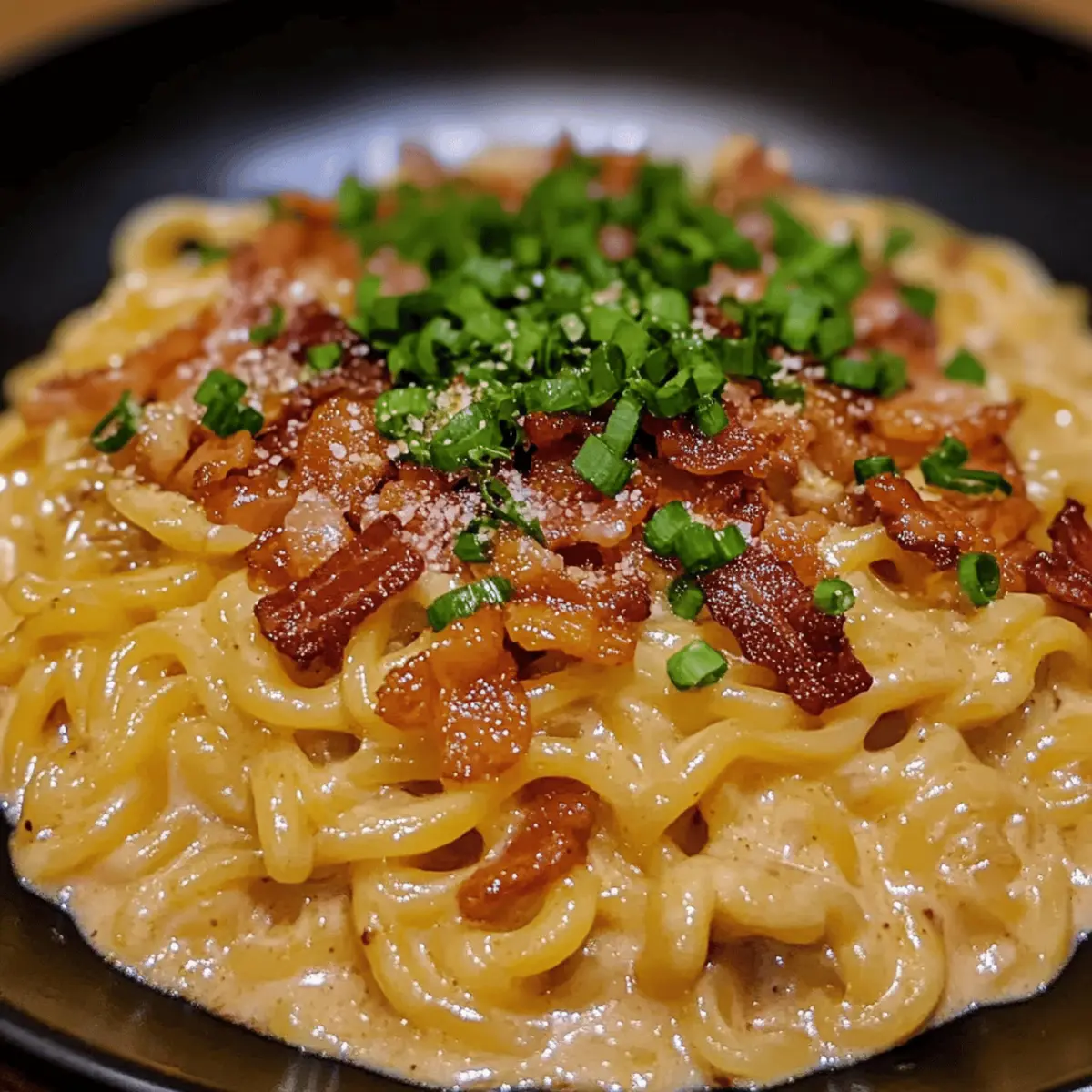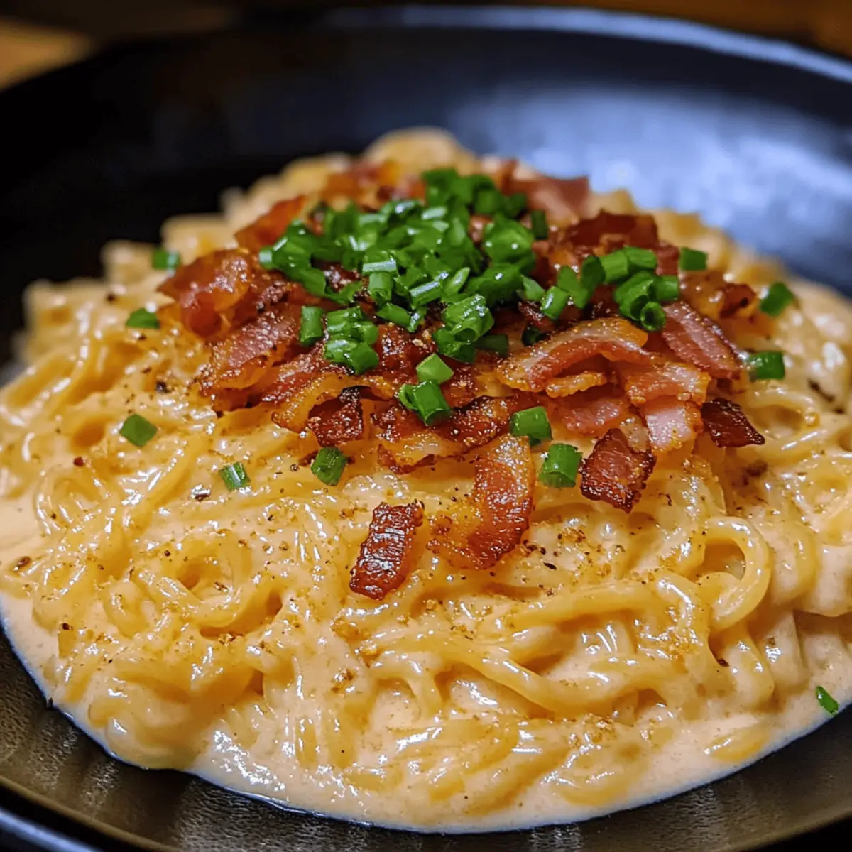 Das Aroma von frisch gekochtem Ramen erfüllt die Küche, während ich mich auf ein ganz besonderes Gericht vorbereite: Ramen Carbonara. Diese köstliche Verschmelzung kombiniert die cremige Fülle der italienischen Carbonara mit den umami-reichen Noten der japanischen Nudelsuppe. In weniger als 20 Minuten zubereitet, ist dieses Rezept nicht nur perfekt für stressige Wochentage, sondern auch eine wunderbare Möglichkeit, euren Dinner-Gästen etwas Einzigartiges zu bieten. Egal, ob ihr Fleischliebhaber seid oder eine vegetarische Variante ausprobieren möchtet, Ramen Carbonara bietet eine Vielzahl von Anpassungsoptionen, die für jeden Geschmack geeignet sind. Seid ihr bereit, die Geschmäcker von zwei Kulturen in einem Teller zu vereinen? Warum ist Ramen Carbonara so besonders? Einzigartige Fusion: Diese Ramen Carbonara vereint das Beste aus zwei Welten und überrascht eure Geschmacksknospen mit einer aufregenden Mischung aus italienischer und japanischer Küche. Schnell und einfach: In weniger als 20 Minuten zaubert ihr ein schmackhaftes Gericht, das perfekt für stressige Abende geeignet ist. Variationsmöglichkeiten: Ob mit Speck oder Pilzen für die vegetarische Version – jeder kann seine persönliche Note hinzufügen. Cremige Textur: Die Kombination aus Eier und Parmesan ergibt eine unvergessliche, cremige Soße, die den Ramen-Nudeln schmeichelt. Umami-Geschmack: Die Zugabe von Gochujang bringt eine würzige Note, die das Gericht spannend und nicht alltäglich macht. Entdeckt auch andere köstliche Rezeptvariationen in unserer Sammlung! Ramen Carbonara Zutaten Für die Ramen: • Ramen-Nudeln – Frisch oder gefroren geben sie die perfekte Basis; Instant-Ramen können verwendet werden, jedoch sollte die Kochzeit angepasst werden. • Eier – Die Hauptzutat für die cremige Sauce; verwende sowohl ganze Eier als auch zusätzliches Eigelb für mehr Reichtum. Für die Sauce: • Parmesan-Käse – Verleiht der Sauce eine cremige Konsistenz und Geschmack; kann durch Pecorino Romano ersetzt werden, wenn du einen intensiveren Geschmack bevorzugst. • Gochujang – Fügt eine würzige Komponente hinzu; passe die Menge nach deinem gewünschten Schärfelevel an oder ersetze sie durch Paprika für eine mildere Variante. • Knoblauch – Intensiviert das Aroma und den Geschmack; frischer Knoblauch ist die beste Wahl für den optimalen Genuss. Für die Beilage: • Speck (oder Pilze für die vegetarische Option) – Sorgt für eine herzhafte Note; frittierter Tofu oder angebratene Champignons sind großartige Alternativen für eine vegetarische Variante. • Frühlingszwiebeln/Sesamkörner (zum Garnieren) – Bringen Frische und Crunch ins Gericht; optional für zusätzlichen Textur- und Geschmacksakkord. Entdecke die köstliche Kombi aus Aromen in dieser Ramen Carbonara! Step-by-Step Instructions for Ramen Carbonara Step 1: Sauce vorbereiten In einer Schüssel die Eier, das Eigelb, den geriebenen Parmesan, das Gochujang und den schwarzen Pfeffer gut verquirlen, bis eine glatte Mischung entsteht. Achte darauf, dass alle Zutaten gleichmäßig vermengt sind. Dies wird die köstliche, cremige Sauce für deine Ramen Carbonara. Step 2: Ramen kochen Setze einen großen Topf mit Wasser auf den Herd und bringe es zum Kochen. Koche die Ramen-Nudeln gemäß den Anweisungen auf der Verpackung (in der Regel 3–5 Minuten). Sobald sie al dente sind, abgießen und eine halbe Tasse vom Kochwasser aufbewahren, um die Sauce später zu verdünnen, falls nötig. Step 3: Speck vorbereiten Erhitze eine große Pfanne bei mittlerer Hitze und füge den geschnittenen Speck hinzu. Brate ihn für etwa 5–7 Minuten, bis er knusprig ist. Füge in den letzten 30 Sekunden den feingehackten Knoblauch hinzu und brate ihn schnell mit, bis er duftet, und nimm die Pfanne dann vom Herd. Step 4: Zutaten kombinieren Gib die abgetropften Ramen-Nudeln in die Pfanne mit dem Speck und dem Knoblauch. Vermische die Nudeln gründlich, damit sie das Aroma aufnehmen können. Gieße dann die Eiermischung darüber und rühre vorsichtig bei schwacher Hitze um. Achte darauf, die Hitze niedrig zu halten, um ein Rührei zu vermeiden, und koche, bis die Sauce cremig ist. Step 5: Servieren und garnieren Sobald die Ramen Carbonara schön cremig ist, richte sie auf Tellern an. Garniere sie großzügig mit zusätzlichem Parmesan, gehackten Frühlingszwiebeln und optionalen Sesamkörnern für einen zusätzlichen Crunch. Für einen besonderen Touch kannst du, je nach Geschmack, einen rohen Eigelb obenauf geben. Lagerungstipps für Ramen Carbonara Raumtemperatur:: Ramen Carbonara sollte nicht länger als 2 Stunden bei Raumtemperatur aufbewahrt werden, um die Frische und Sicherheit der Zutaten zu gewährleisten. Kühlschrank:: Bewahre Ramen Carbonara in einem luftdichten Behälter im Kühlschrank auf, wo sie bis zu 3 Tage haltbar ist. Vor dem Servieren etwas Ramen-Kochwasser oder Brühe hinzufügen, um die Cremigkeit wiederherzustellen. Tiefkühler:: Ramen Carbonara eignet sich nicht sehr gut für das Einfrieren, da die Textur der Eier und der Sahne leiden kann. Es ist jedoch möglich, die Zutaten ohne Eier und Sauce einzufrieren, um später eine frische Kombination zuzubereiten. Wiedererwärmen:: Zum Wiedererwärmen die Ramen Carbonara in einer Pfanne bei niedriger Hitze erwärmen und nach Bedarf etwas Flüssigkeit hinzufügen, um die Konsistenz zu verbessern. Was passt gut zu Ramen Carbonara? Das harmonische Zusammenspiel der Aromen verlangt nach köstlichen Beilagen, die das Geschmackserlebnis perfekt abrunden. Frischer grüner Salat: Ergänzt die cremige Textur und bringt eine knackige Frische ins Gericht. Verwende einen einfachen Vinaigrette-Dressing für einen leichten Kontrast. Knoblauchbrot: Passt wunderbar zu den umami-reichen Aromen der Ramen Carbonara. Die knusprige Textur und der verführerische Duft machen das Brot zu einer idealen Beilage. Gedämpftes Gemüse: Leichte, gesunde Optionen wie Brokkoli oder Erbsen bringen Farben und Nährst