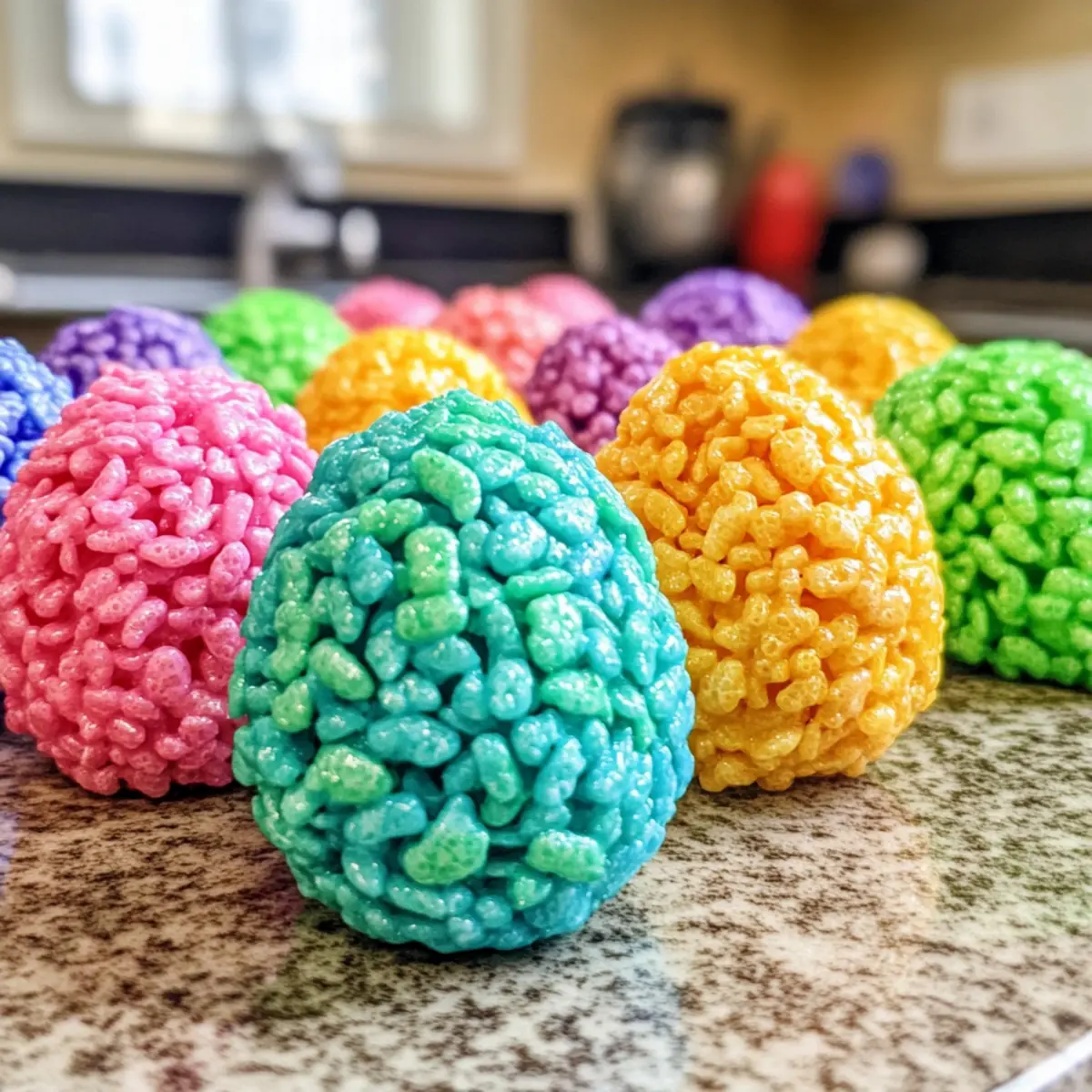 Wenn ich an Ostern denke, schießen mir sofort lebendige Farben und süße Leckereien in den Kopf. Diese bunten Rice Krispie Ostereier sind mehr als nur ein Fest für die Augen; sie sind eine herzliche Umarmung für den Gaumen. Mit ihrem köstlich klebrigen Kern aus geschmolzenen Marshmallows und knusprigen Rice Krispies sind sie nicht nur ein Spaß für die Kleinen, sondern auch für alle, die gerne backen. Das Beste daran? Die Zubereitung ist super einfach und erfordert keinen Ofen, sodass ihr mehr Zeit für die Feierlichkeiten habt. Bereitet euch darauf vor, die Frühlingssaison mit einer bezaubernden Leckerei zu bereichern, die ein Lächeln in jedes Gesicht zaubert. Seid ihr bereit, mit mir in die Welt der farbenfrohen Ostereier einzutauchen? Warum sind diese Ostereier besonders? Lebendige Farben: Diese Rice Krispie Ostereier sind nicht nur schmackhaft, sondern auch ein wahrer Augenschmaus mit ihren strahlenden Farben. Einfache Zubereitung: Dank der kinderleichten Anleitung könnt ihr sie im Handumdrehen zubereiten – perfekt für kreative Nachmittage mit der Familie. Spaß für alle: Ob Kinder oder Erwachsene, alle werden von diesen süßen Köstlichkeiten begeistert sein! Vielfalt gezielt nutzen: Mit fünf Farbvariationen wird es nie langweilig und jeder kann sein persönliches Lieblingsdesign kreieren. Ideale Osternleckerei: Diese bunten Leckereien sind der Hit auf jedem Ostertisch und sorgen für strahlende Gesichter. Lasst euch inspirieren und zaubert mit diesen bunten Ostereiern echte Frühlingsfreude! Rice Krispie Ostereier Zutaten • Für alle, die das Rezept gleich ausprobieren möchten, hier sind die notwendigen Zutaten für die bunten Rice Krispie Ostereier: Für die Mischung Kellogg’s Rice Krispies Cereal – bietet eine knackige Textur und Struktur für die Leckereien. Butter (15 Esslöffel) – sorgt für einen reichen Geschmack und hilft, die Mischung zu verbinden; am besten mit gesalzener Butter arbeiten. Mini Marshmallows (15 Tassen) – die Hauptquelle der Süße, die für die klebrige Konsistenz sorgt; können auch durch normale Marshmallows ersetzt werden. Für die Farben Wilton Color Right Lebensmittelfarbe – gibt den Ostereiern ihre lebhaften Farben; es sind keine Substitutionen nötig, andere Lebensmittelfarben funktionieren jedoch auch. Diese bunten Rice Krispie Ostereier sind perfekt, um Frühlingsfreude zu verbreiten! Schritt-für-Schritt-Anleitung für Bunte Rice Krispie Ostereier Step 1: Butter schmelzen Schmelze 3 Esslöffel Butter in einem mittelgroßen Topf bei niedriger Hitze. Rühre die Butter kontinuierlich, bis sie vollständig geschmolzen ist und eine leicht goldene Farbe annimmt. Dies dauert etwa 2–3 Minuten. Achte darauf, dass die Butter nicht anbrennt, um den besten Geschmack zu erzielen. Step 2: Marshmallows hinzufügen Füge 3 Tassen Mini Marshmallows zur geschmolzenen Butter hinzu und rühre gut um. Lass die Mischung bei niedriger Hitze weiter köcheln, bis die Marshmallows vollständig geschmolzen und die Masse glatt ist. Dies sollte etwa 4–5 Minuten dauern. Halte die Hitze niedrig, damit die Mischung nicht zu heiß wird. Step 3: Lebensmittelfarbe einrühren Ziehe den Topf vom Herd und füge die gewünschte Lebensmittelfarbe hinzu. Rühre die Farbe gründlich ein, bis die Mischung gleichmäßig gefärbt ist. Je nach Intensität der Farbe kannst du die Menge variieren, um deine bunten Rice Krispie Ostereier noch lebendiger zu gestalten. Step 4: Rice Krispies untermischen Gebe nun 3 Tassen Rice Krispies in die farbige Marshmallow-Mischung. Rühre vorsichtig, bis alle Reisflocken gleichmäßig mit der klebrigen Mischung bedeckt sind. Diese Schritte sollten sorgfältig durchgeführt werden, um eine gleichmäßige Verteilung der Farben und Texturen sicherzustellen. Step 5: Abkühlen lassen Lass die Mischung etwa 10 Minuten auf Zimmertemperatur abkühlen, damit sie handhabbar wird, aber nicht vollständig fest ist. Überwache den Abkühlungsprozess, da die Mischung noch formbar sein muss, um sie in die charakteristischen Osterei-Formen zu bringen. Step 6: Eier formen Wenn die Mischung kühl genug ist, nimm eine Handvoll und forme sie vorsichtig zu einer Ei-Form. Du kannst einen Esslöffel oder deine Hände verwenden; benutze gegebenenfalls etwas geschmolzene Butter an deinen Händen, um ein Festkleben zu verhindern. Diese kreative Aufgabe macht nicht nur Spaß, sie hilft auch, die perfekte Form zu erreichen. Step 7: Auskühlen lassen Platziere die geformten Eier auf einem mit Backpapier ausgelegten Teller. Lass sie mindestens 30 Minuten bei Raumtemperatur auskühlen, damit sie fest werden und ihre Form behalten. Achte darauf, dass sie sich nicht berühren, um das Zusammenkleben zu vermeiden. Step 8: Variationen wiederholen Wiederhole den gesamten Prozess für die verbleibenden vier Farben, indem du erneut 3 Esslöffel Butter, 3 Tassen Mini Marshmallows und 3 Tassen Rice Krispies verwendest. Passe die Lebensmittelfarbe an, damit jede Charge eine einzigartige und lebendige Farbvariation für deine bunten Rice Krispie Ostereier ergibt. Lagerungstipps für Rice Krispie Ostereier Raumtemperatur: Bewahre die bunten Rice Krispie Ostereier in einem luftdichten Behälter auf, damit sie bis zu 3-4 Tage frisch bleiben. Achte darauf, dass die Eier nicht zerdrückt werden. Kühlschrank: Wenn du die Ostereier länger aufbewahren möchtest, kannst du sie im Kühlschrank lagern. So bleiben sie bis zu einer Woche haltbar, sollten jedoch vor dem Servieren etwas erwärmt werden, um die Textur zu verbessern. Gefriertruhe: Für eine langfristige Lagerung kannst du die gefüllten Ostereier bis zu 3 Monate einfrieren. Wickele sie gut in Frischhaltefolie und lege sie in einen gefriergeeigneten Behälter. Wiederwärmen: Lasse die gefrorenen Rice Krispie Ostereier über Nacht im Kühlschrank auftauen. Zum Servieren kannst du sie in der Mikrowelle kurz erwärmen, um die ursprüngliche Textur wiederherzustellen. Bereite deine Rice Krispie Ostereier im Voraus vor! M