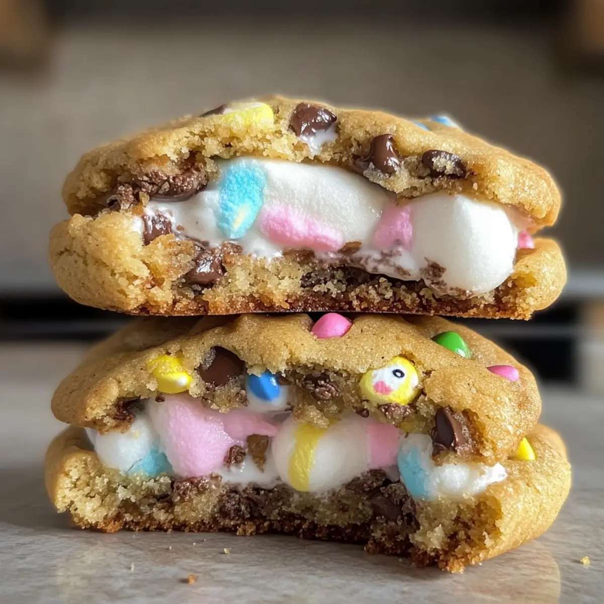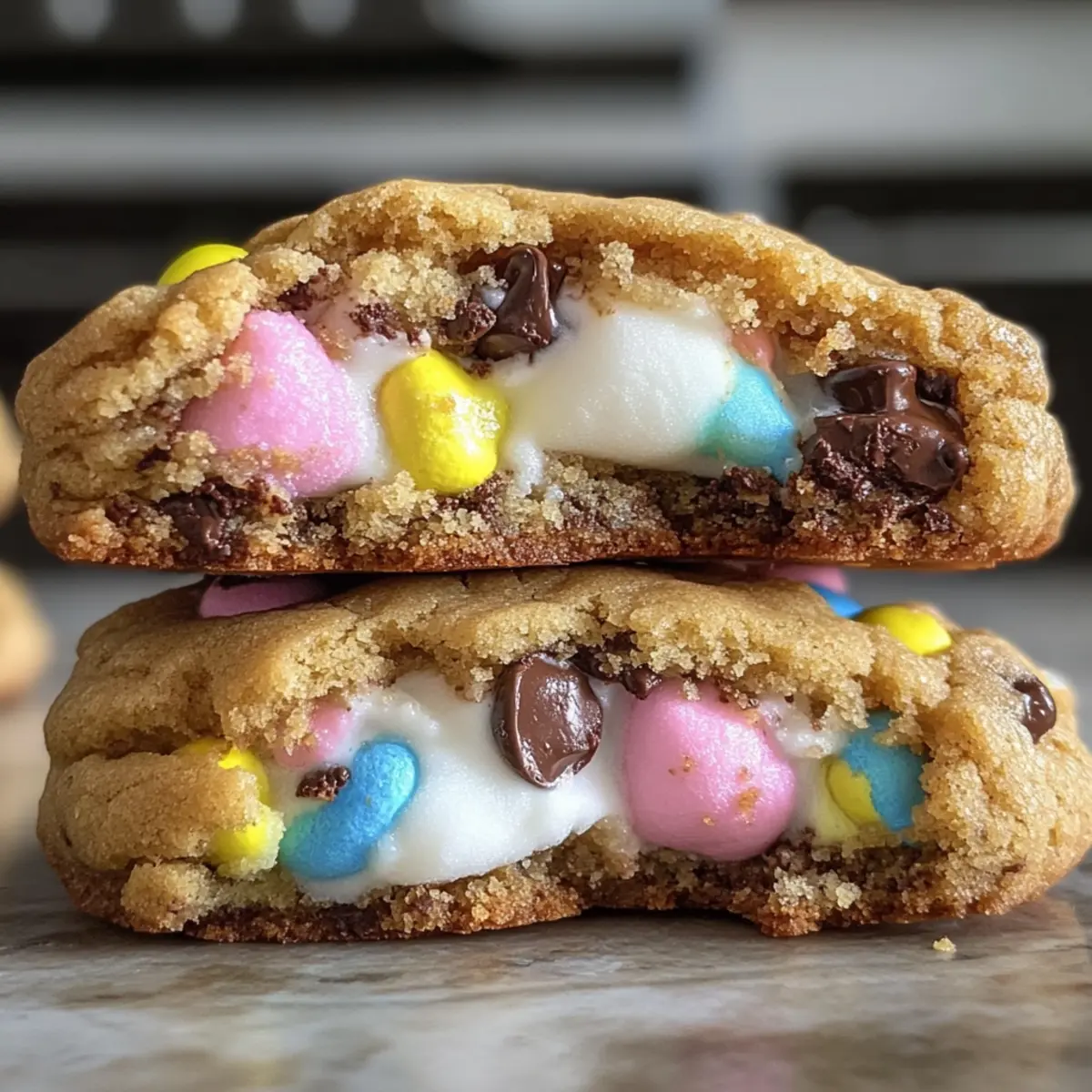 „Stell dir vor, der Duft frisch gebackener Kekse erfüllt die Küche, während die Sonne durch das Fenster scheint. Diese Riesigen Schokoladenstückchen gefüllten Osterkekse bringen den Frühling direkt auf deine Teller! Mit ihrer dicke, buttrigen Außenschicht und dem schmelzenden Marshmallow-Mitte sind sie ein wahrer Gaumenschmaus und perfektionieren das Gefühl von Nostalgie und Spaß. Ob für das Familienfest oder als einzigartige Möglichkeit, übrig gebliebene Ostersüßigkeiten zu verwenden – diese Kekse sind nicht nur schnell und einfach zuzubereiten, sondern auch anpassbar. Hast du vielleicht schon an eine schokoladige Variante gedacht?“ Warum werden diese Kekse deine Favoriten? Einzigartiger Genuss: Diese Riesigen Schokoladenstückchen gefüllten Kekse sind nicht nur optisch beeindruckend, sondern auch ein Geschmackserlebnis voller Überraschungen! Anpassbar: Du kannst verschiedene Schokoladensorten oder sogar alternative Marshmallows verwenden, um dein ganz persönliches Lieblingsrezept zu kreieren. Nostalgisch und lustig: Perfekt für das Backen mit der Familie, bringen sie nicht nur Freude, sondern auch Erinnerungen zurück – ein Hit für jede Altersgruppe! Einfache Zubereitung: Mit nur wenigen Zutaten und einfachen Schritten sind diese Kekse in kürzester Zeit gebacken. Ideal für spontane Backaktionen! Ideal für Feiern: Die fröhlichen Farben der Ostersprinkles machen sie zur perfekten Wahl für festliche Anlässe – ein echter Blickfang, der alle begeistert. Verpasse nicht die Chance, diese leckeren Kekse zu genießen! Du kannst auch andere köstliche Rezepte wie Zitronen Pecorino Rezept oder Zarte Rinderbissen Rezept ausprobieren, um dein Küchenrepertoire zu erweitern. Riesiger Schokoladenstückchen Zutaten Für den Teig • Ungesalzene Butter – Liefert Reichtum und Geschmack; verwende zimmerwarme Butter für eine optimale Belüftung. • Zucker – Sorgt für eine knusprige Kante. • Brauner Zucker – Fügt Feuchtigkeit und Kaugummi hinzu. • Große Eier – Binden die Zutaten und sorgen für Struktur; achte darauf, dass sie zimmerwarm sind, um das Gerinnen der Butter zu vermeiden. • Vanilleextrakt – Verstärkt die Süße und fügt Geschmacksnuancen hinzu. • Backsoda & Backpulver – Lässt die Kekse aufgehen und sorgt für die nötige Struktur. • Maisstärke – Weicht die Keksstruktur auf und hilft, die Dicke zu bewahren. • Salz – Balanciert die Süße und hebt den Gesamtgeschmack hervor. • Allzweckmehl – Gibt Stabilität. • Halbbitterschokolade – Sorgt für einen reichen Schokoladengeschmack und -textur. • Ostersprinkles – Bringt Farbe und festliche Dekoration. • Peep-Marke Oster-Marzmallows – Mittelpunkt des Rezepts, ergibt eine schmelzende Überraschung; selbst ältere Peeps können genutzt werden. Nutze diese Zutaten, um die perfekten Riesigen Schokoladenstückchen gefüllten Kekse zuzubereiten, die sowohl dick als auch köstlich sind! Step-by-Step Instructions für Riesige Schokoladenstückchen gefüllte Osterkekse Step 1: Butter und Zucker cremig rühren In einer Küchenmaschine die zimmerwarme, ungesalzene Butter zusammen mit dem weißen und braunen Zucker auf mittlerer bis hoher Stufe für etwa 5 Minuten schlagen, bis die Mischung leicht und fluffig ist. Achte darauf, dass sich der Zucker gut aufgelöst hat, um die perfekte Basis für deine Riesigen Schokoladenstückchen gefüllten Kekse zu schaffen. Step 2: Eier und Vanille hinzufügen Füge die großen Eier einzeln hinzu und rühre jede Zugabe gründlich ein, bevor du das nächste Ei hinzufügst. Gib anschließend den Vanilleextrakt dazu und schlägt die Mischung für etwa 1 Minute weiter, bis alles gut vermischt ist. Diese Schritte sorgen für eine stabile und geschmackvolle Keksmasse, die deine Kekse wunderbar zart machen wird. Step 3: Trockene Zutaten kombinieren Sichere dir eine große Schüssel und siebe das Allzweckmehl, die Maisstärke, das Salz, das Backpulver und das Backsoda hinein. Mische dann die trockenen Zutaten auf niedriger Stufe mit der feuchten Mischung in der Küchenmaschine, bis alles gerade so miteinander verbunden ist. Achte darauf, nicht zu lange zu rühren, um die perfekte Textur für die Riesigen Schokoladenstückchen gefüllten Kekse zu erhalten. Step 4: Schokoladenstückchen und Sprinkles unterheben Sobald die Teigmischung bereit ist, füge die Halbbitterschokolade und die Ostersprinkles hinzu. Verwende einen Gummispatel, um die Zutaten vorsichtig unterzuheben, bis sie gleichmäßig im Teig verteilt sind. Dies sorgt für einen schönen Farb- und Geschmackskontrast in deinen Keksen. Step 5: Portionieren und füllen Mit einem 4oz-Eisschaufel den Teig portionieren, die Portionen zu einer flachen Runde drücken und jeweils ein Peep in die Mitte legen. Fasse dann den Teig um das Marshmallow, sodass es vollständig eingehüllt ist. Diese Technik garantiert, dass deine leckeren Riesigen Schokoladenstückchen gefüllten Kekse beim Backen nicht auslaufen. Step 6: Den Teig kühlen Legen die gefüllten Teigkugeln auf ein Blech und stelle sie für mindestens 2 Stunden in den Kühlschrank, kann aber bis zu 48 Stunden dauern. Dies ist ein entscheidender Schritt, um ein übermäßiges Ausbreiten der Kekse im Ofen zu verhindern und ihnen die richtige Form zu geben. Step 7: Backen Heize den Ofen auf 190 °C vor und lege Backbleche mit Backpapier aus. Backe die Kekse für 14–16 Minuten, bis die Ränder goldbraun sind und die Mitte noch leicht weich ist. Nach dem Backen die Kekse für 20–30 Minuten auf dem Blech auskühlen lassen, damit sie ihre Form behalten und die Füllung richtig zur Geltung kommt. Vorbereiten der Riesigen Schokoladenstückchen gefüllten Kekse Die Riesigen Schokoladenstückchen gefüllten Kekse sind perfekt für die zubereitende Hausküche! Du kannst den Keksteig bis zu 48 Stunden im Voraus vorbereiten, indem du die Teigkugeln nach dem Portionieren und Füllen mit einem Peep auf ein Blech legst und sie dann für die angegebene Zei