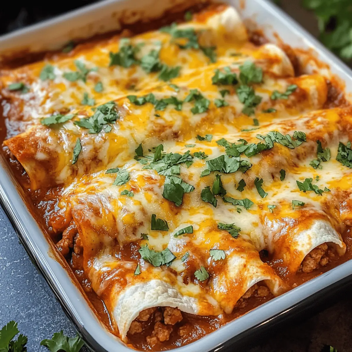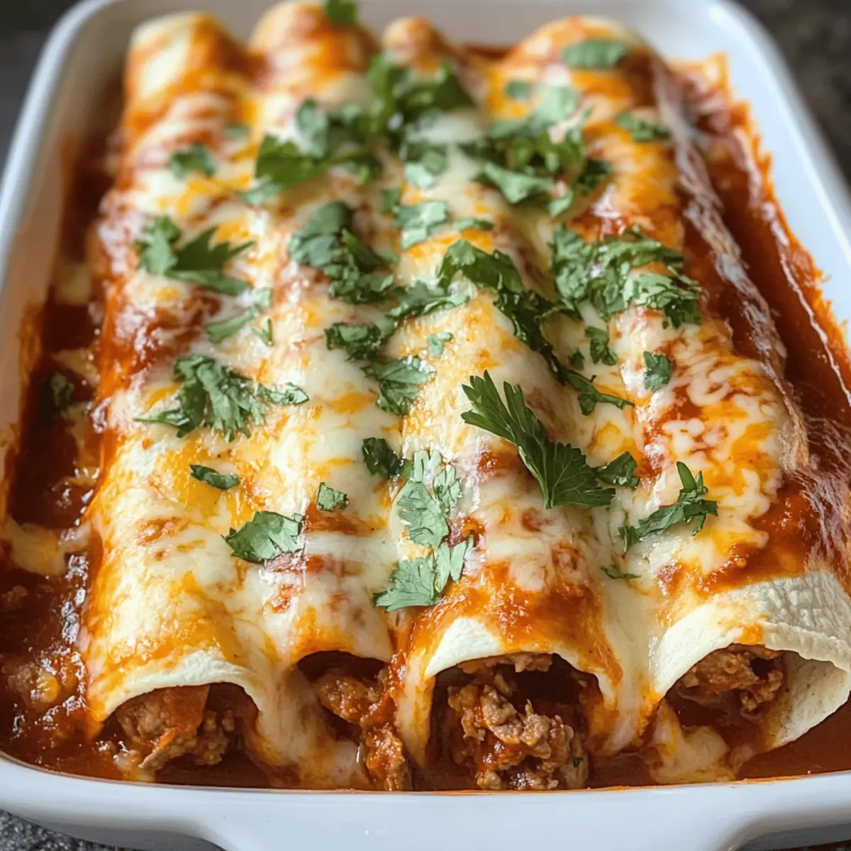 „We haben gerade die besten Enchiladas der Welt zubereitet!“ rief meine Freundin, während der köstliche Duft von frisch gebackenem Rindfleisch durch die Küche zog. Rindfleisch-Enchiladas sind nicht nur ein eindrucksvolles Gericht, sondern auch eine wunderbare Möglichkeit, Familie und Freunde zu bewirten. Diese mexikanische Spezialität vereint zartes Rinderhackfleisch und weiche Tortillas, überzogen mit einer würzigen Tomatensauce und geschmolzenem Käse. Was ich an dieser Rezeptur besonders liebe, ist die Vielseitigkeit: Sie sind nicht nur schnell zubereitet, sondern können auch nach Belieben angepasst werden – sei es mild oder feurig, für jeden Geschmack ist etwas dabei. Ob beim Familientreffen oder internen Feierlichkeiten, diese Enchiladas machen immer Eindruck. Neugierig, wie Ihr diese köstliche Mahlzeit zu Hause zaubern könnt? Lasst uns gemeinsam in die Zubereitung eintauchen! Warum sind Rindfleisch-Enchiladas so beliebt? Familienfreundlich: Diese Rindfleisch-Enchiladas bringen die ganze Familie zusammen und sind perfekt für gemeinsame Mahlzeiten. Einfache Zubereitung: Mit nur wenigen Schritten sind sie im Handumdrehen fertig, ideal für beschäftigte Abende. Vielseitigkeit: Ob scharf oder mild, ihr könnt die Gewürze ganz nach eurem Geschmack anpassen und verschiedene Füllungen ausprobieren. Perfekt für Feiern: Gäste werden begeistert sein – diese Enchiladas sind ein echter Hit! Zeitersparnis: Ihr könnt die Füllung im Voraus zubereiten und sie dann nur noch zusammenstellen und backen. Köstlicher Duft: Der verführerische Geruch, der beim Backen durch die Küche zieht, lässt niemanden widerstehen! Rindfleisch-Enchiladas Zutaten Für die Füllung: Rinderhackfleisch – Die Hauptproteinquelle, die für den herzhaften Geschmack sorgt. Für eine leichtere Variante kann mageres Putenhack oder pflanzliches Fleisch verwendet werden. Zwiebel – Verleiht der Füllung eine süße Note und Tiefe; kann durch Schalotten ersetzt werden. Knoblauch – Für einen intensiven Geschmack; frische Zehen sind ideal, aber Knoblauchpulver funktioniert auch. Für die Tortillas: Tortillas – Sie geben dem Gericht Struktur; wählt zwischen Mais- oder Weizentortillas und greift bei Bedarf zu glutenfreien Varianten. Für die Sauce: Passierte Tomaten – Spenden Feuchtigkeit und Reichtum; können durch Tomatensauce oder zerdrückte Tomaten ersetzt werden. Kreuzkümmel, Chili-Pulver, Salz, Pfeffer – Unerlässliche Gewürze zum Würzen; passt die Menge nach eurem Schärfeempfinden an. Für den Belag: Geriebener Käse – Sorgt für Cremigkeit und Geschmack; Cheddar oder Monterey Jack eignet sich hervorragend. Petersilie – Für eine frische Garnitur, optional, aber empfehlenswert für das Auge. Mit diesen Zutaten könnt ihr wahre Rindfleisch-Enchiladas kreieren, die nicht nur köstlich sind, sondern sich auch leicht an verschiedene Geschmäcker anpassen lassen! Schritt-für-Schritt-Anleitung für Rindfleisch-Enchiladas Step 1: Vorbereitung der Zutaten Zuerst die Zwiebel fein würfeln und den Knoblauch zerdrücken. Währenddessen die Tortillas in einer warmen Pfanne leicht anrösten, bis sie weich sind und sich einfach rollen lassen. Dies dauert etwa 1-2 Minuten pro Seite. Stelle alle anderen Zutaten bereit, damit die Zubereitung der Rindfleisch-Enchiladas reibungslos verläuft. Step 2: Anbraten der Füllung Erhitze in einer großen Pfanne etwas Öl bei mittlerer Hitze. Füge die gewürfelte Zwiebel und den zerdrückten Knoblauch hinzu und brate sie für ca. 3-4 Minuten an, bis sie aromatisch sind und leicht golden werden. Anschließend das Rinderhackfleisch hinzugeben und unter ständigen Rühren für 6-8 Minuten braten, bis es gleichmäßig braun ist. Mit Kreuzkümmel, Chili-Pulver, Salz und Pfeffer würzen und die passierten Tomaten einrühren. Step 3: Füllen der Tortillas Nehme eine Tortilla und lege etwa 2-3 Esslöffel der Fleischfüllung in die Mitte. Klappe die Seiten der Tortilla ein und rolle sie von unten nach oben auf, bis sie gut verschlossen ist. Lege jede gefüllte Tortilla nahtseitig in eine leicht gefettete Auflaufform. Wiederhole diesen Vorgang für die restlichen Tortillas und die Füllung der Rindfleisch-Enchiladas. Step 4: Backen der Enchiladas Heize den Ofen auf 180 °C vor. Gieße die verbliebene Tomatensauce gleichmäßig über die gefüllten Tortillas in der Auflaufform. Streue den geriebenen Käse großzügig darüber und backe die Enchiladas für etwa 25 Minuten, bis die Käseschicht sprudelnd und goldbraun ist. Achte darauf, dass die Rindfleisch-Enchiladas gut durchgeheizt sind. Step 5: Servieren und Garnieren Nehme die Auflaufform aus dem Ofen und lasse die Rindfleisch-Enchiladas für ein paar Minuten ruhen, damit sie sich besser portionieren lassen. Garniere die Enchiladas mit frischer Petersilie für einen frischen Farbkontrast. Serviere sie warm und genieße das köstliche Ergebnis deiner Arbeit mit Familie und Freunden! Lagerung und Einfrieren von Rindfleisch-Enchiladas Zimmertemperatur:: Rindfleisch-Enchiladas sollten nicht länger als 2 Stunden bei Zimmertemperatur stehen, um das Wachstum von Bakterien zu vermeiden. Kühlschrank:: Im Kühlschrank sind die Enchiladas bis zu 3 Tage haltbar. Decke sie gut ab oder stelle sie in einen luftdichten Behälter, um Austrocknen zu verhindern. Einfrieren:: Du kannst Rindfleisch-Enchiladas nach dem Zusammenstellen einfrieren. Wickel sie in Folie ein und lege sie in einen Gefrierbehälter. Sie halten bis zu 3 Monate. Wiederaufwärmen:: Zum Aufwärmen die gefrorenen Enchiladas über Nacht im Kühlschrank auftauen. Danach im Ofen bei 180 °C (350 °F) etwa 25-30 Minuten backen, bis sie durchgewärmt und der Käse geschmolzen ist. Tipps für die besten Rindfleisch-Enchiladas Tortillas richtig vorbereiten: Achte darauf, die Tortillas vor dem Füllen leicht anzurösten. Dadurch werden sie elastischer und lassen sich leichter rollen, was das Risiko des Platzens verringert. Füllung nicht überfüllen: Überlade die To