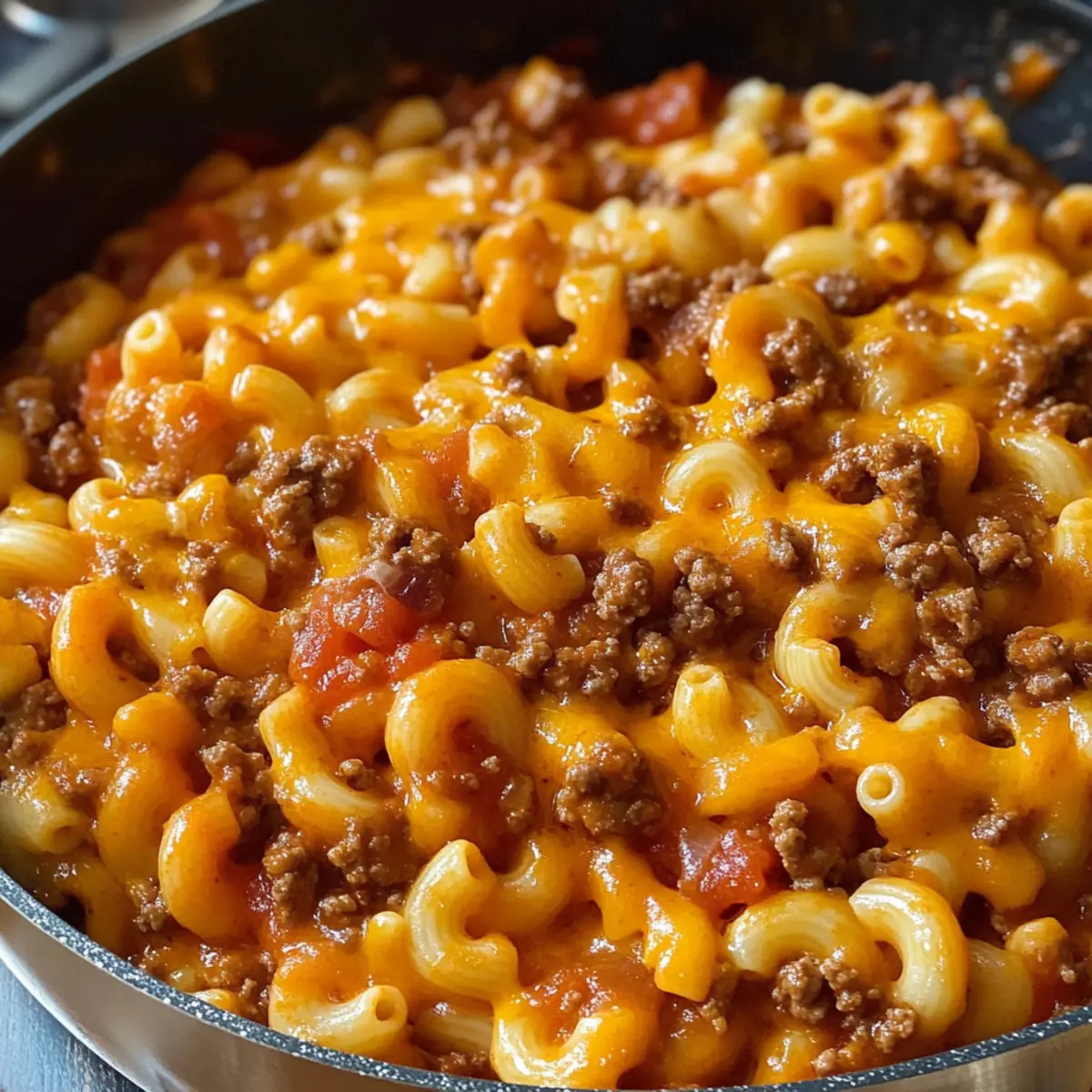 Wie oft habe ich verzweifelt nach einer schnellen, heißen Mahlzeit gesucht, die gleichzeitig die ganze Familie glücklich macht? Rindfleisch und Makkaroni, auch bekannt als Beefaroni, ist genau das Gericht, das alle Bedürfnisse erfüllt. Dieses Rezept kombiniert zartes Hackfleisch, cremige Makkaroni und eine aromatische Tomatensauce in nur 40 Minuten – ideal für hektische Wochentage oder gemütliche Abendessen. Es ist außerdem unglaublich anpassungsfähig: Sie können frisches Gemüse hinzufügen oder sogar die Käsesorten variieren, um neue Geschmackserlebnisse zu entdecken. Diese nostalgische Speise wird nicht nur Kinder, sondern auch Erwachsene begeistern und ist der Inbegriff von Comfort Food. Wer kann da schon widerstehen? Lassen Sie uns gemeinsam in die Welt der Beefaroni eintauchen und die Vorfreude auf eine köstliche Mahlzeit genießen! Warum werden Sie dieses Rezept lieben? Einfachheit: Die Zubereitung ist unkompliziert und erfordert keine speziellen Kochkenntnisse. Schnelle Zubereitung: In nur 40 Minuten haben Sie eine köstliche, warme Mahlzeit auf dem Tisch – perfekt für hektische Wochentage. Vielseitigkeit: Fügen Sie frisches Gemüse oder verschiedene Käsesorten hinzu, um das Gericht nach Ihrem Geschmack anzupassen. Familienfreundlich: Dieses Gericht spricht Kinder und Erwachsene gleichermaßen an und weckt Kindheitserinnerungen. Herzhafter Geschmack: Die perfekte Kombination aus gewürztem Rindfleisch, cremigen Makkaroni und einer reichhaltigen Tomatensauce sorgt für ein unvergessliches Geschmackserlebnis. Freuen Sie sich auf eine schnelle Mahlzeit, die sich ideal für Ihre Familie eignet – Serviervorschläge und Aufbewahrungstipps finden Sie ebenfalls in unserem Artikel! Zutaten für Rindfleisch und Makkaroni Für das Rindfleisch • Rinderhackfleisch – bietet Protein und einen herzhaften Geschmack; alternativ kann mageres Putenhackfleisch verwendet werden. • Zwiebel – verstärkt das Gesamtaroma; kann für einen milderen Geschmack weggelassen werden. • Knoblauch – sorgt für aromatische Tiefe; verwenden Sie Knoblauchpulver, wenn frischer Knoblauch nicht zur Hand ist. Für die Makkaroni • Makkaroni – die Hauptkohlenhydratquelle; glutenfreie Pasta kann je nach Vorliebe verwendet werden. Für die Sauce • Tomatensauce – sorgt für Feuchtigkeit und Säure; verwenden Sie eine natriumarme Sauce für eine gesündere Variante. • Butter – dient zur Herstellung der Sauce und zur Geschmacksverstärkung; Olivenöl kann für eine gesündere Option verwendet werden. • Mehl – hilft, die Sauce zu verdicken; glutenfreies Mehl ist eine gute Alternative. • Gewürze (Salz, Pfeffer, italienische Kräuter) – verbessern den Geschmack; passen Sie sie nach Ihrem Geschmack an. Für den Käse • Cheddar-Käse – verleiht Cremigkeit und reichhaltigen Geschmack; Mozzarella kann für einen anderen Geschmack verwendet werden. Mit dieser harmonischen Mischung wird Ihr Rindfleisch und Makkaroni zu einem köstlichen Familienessen, das schnell zubereitet ist und alle am Tisch begeistert! Schritt-für-Schritt-Anleitung für Rindfleisch und Makkaroni Step 1: Rindfleisch anbraten Erhitzen Sie eine große Pfanne bei mittlerer bis hoher Temperatur und geben Sie das Rinderhackfleisch hinein. Braten Sie es unter gelegentlichem Rühren etwa 3 Minuten an, bis es anfängt zu bräunen. Fügen Sie nun die gewürfelte Zwiebel hinzu und braten Sie beides zusammen für weitere 5-6 Minuten, bis das Fleisch vollständig durchgegart und die Zwiebel weich ist. Step 2: Makkaroni kochen Bringen Sie in einem separaten Topf ausreichend Wasser zum Kochen und fügen Sie eine Prise Salz hinzu. Geben Sie die Makkaroni ins kochende Wasser und kochen Sie sie nach Packungsanweisung, bis sie al dente sind, was normalerweise etwa 8-10 Minuten dauert. Gießen Sie die Makkaroni nach dem Kochen ab und lassen Sie sie kurz im Sieb ruhen. Step 3: Sauce zubereiten In der gleichen Pfanne, in der das Rinderhackfleisch gebraten wurde, schmelzen Sie bei mittlerer Hitze die Butter. Geben Sie den gehackten Knoblauch hinein und rösten Sie ihn 1-2 Minuten, bis er aromatisch ist. Fügen Sie das Mehl und den Tomatenmark hinzu und rühren Sie gründlich, bis alles gut vermischt ist und leicht eingedickt aussieht. Step 4: Tomatensauce hinzufügen Gießen Sie langsam die Tomatensauce in die Pfanne und fügen Sie die italienischen Gewürze, Salz und Pfeffer hinzu. Bringen Sie die Mischung zum Kochen, dann reduzieren Sie die Hitze und lassen Sie die Sauce für etwa 5 Minuten köcheln, damit sich die Aromen entfalten können. Diese würzige Sauce wird die Grundlage für Ihr Rindfleisch und Makkaroni sein. Step 5: Makkaroni und Rindfleisch kombinieren Nachdem die Sauce fertig ist, geben Sie die abgetropften Makkaroni und das gebratene Rindfleisch in die Pfanne zur Sauce. Rühren Sie alles gut um, damit die Makkaroni gleichmäßig mit der aromatischen Sauce überzogen sind. Lassen Sie die Mischung bei niedriger Hitze für 2-3 Minuten gemeinsam ziehen, damit alles gut miteinander verbunden ist. Step 6: Käse hinzufügen Streuen Sie nach Belieben den Cheddar-Käse über die Makkaroni und rühren Sie vorsichtig um, bis der Käse geschmolzen und die Mischung cremig ist. Wenn Sie mehr Käse möchten, können Sie jederzeit noch eine weitere Schicht Käse on top geben, um eine köstliche, goldene Kruste zu bekommen. Step 7: Servieren und genießen Lassen Sie das Rindfleisch und Makkaroni einige Minuten ruhen, bevor Sie es servieren. Dieses herzhafte Gericht ist perfekt für die ganze Familie und bringt allen am Tisch Freude. Servieren Sie es warm, vielleicht mit etwas frischem Brot oder einem knackigen Salat, um das Maß voll zu machen. Variationen & Substitutionen für Rindfleisch und Makkaroni Gestalten Sie dieses köstliche Gericht ganz nach Ihrem Geschmack und genießen Sie die Vielfalt, die es zu bieten hat. Vegetarisch: Ersetzen Sie das Rinderhackfleisch durch Linsen oder schwarze Bohnen für eine herzhaft-würzige, f