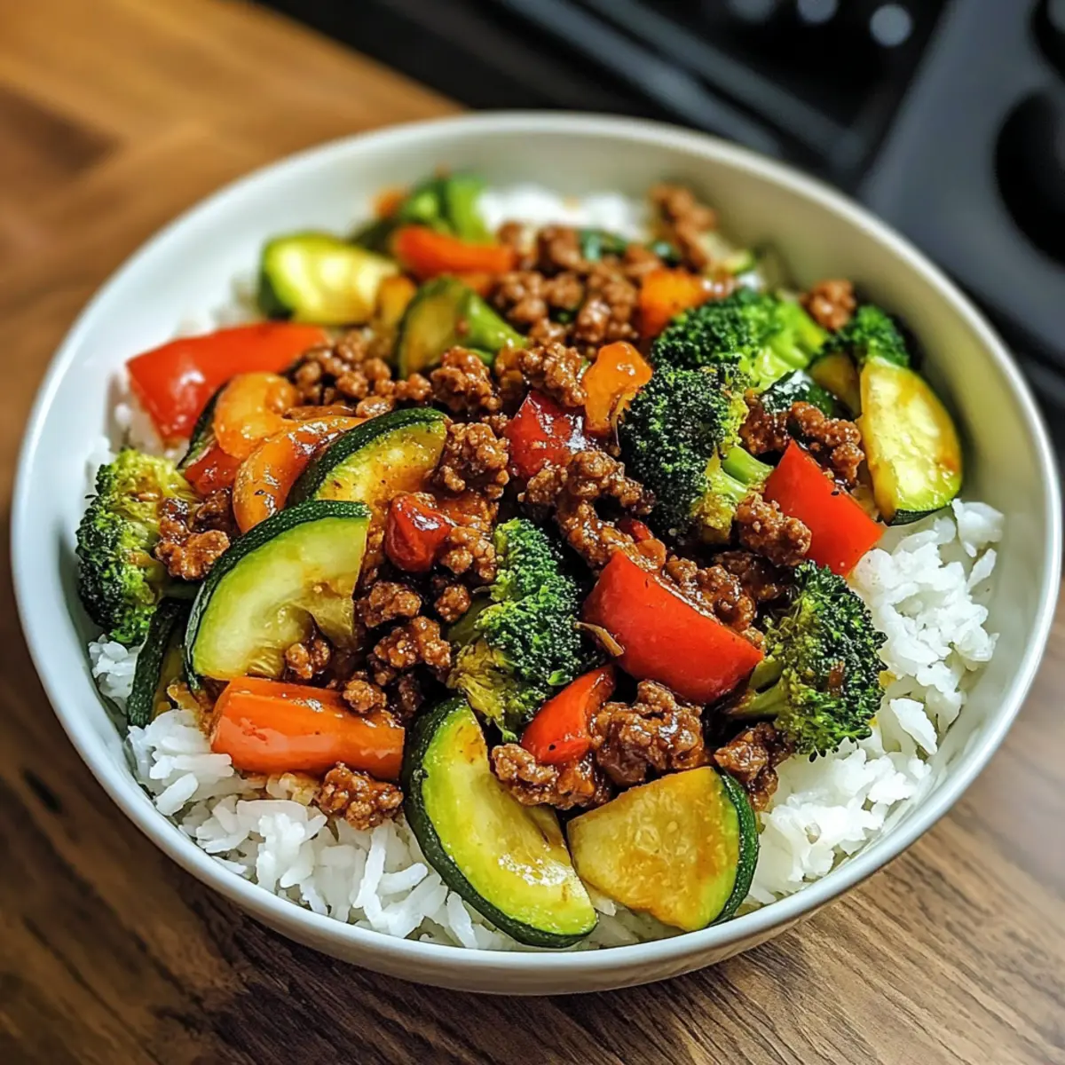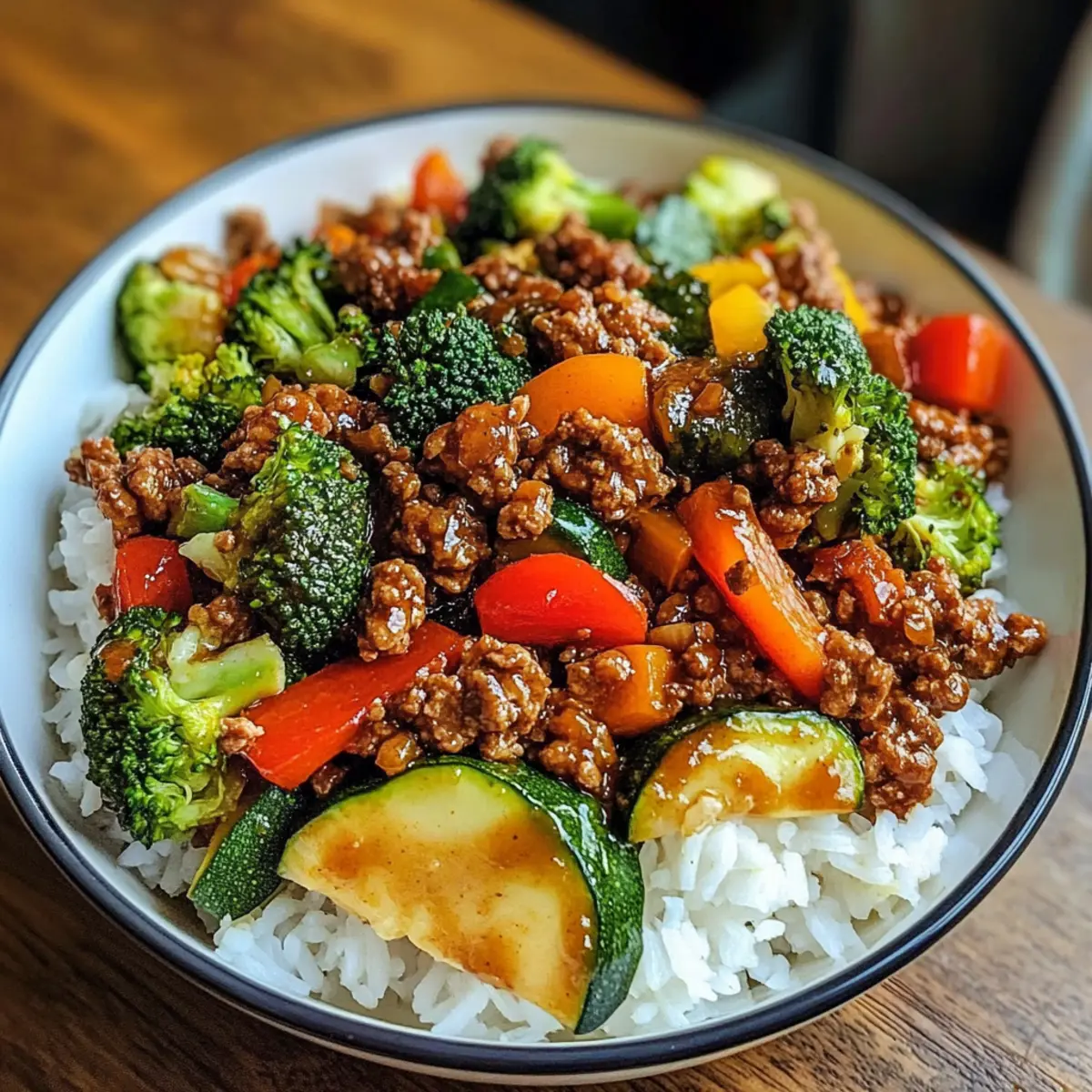 Die Wochentage können manchmal wie eine endlose Schleife erscheinen, in der der tägliche Stress und das Einheitsessen immer gleich wirken. Doch heute möchte ich euch mit meiner Rindfleischpfanne mit Knoblauchgemüse entführen! Dieses köstliche Gericht kommt in nur 30 Minuten auf den Tisch und verwandelt selbst den trübsten Abend in einen kleinen Festschmaus. Die perfekte Mischung aus würzigem Rinderhack und knusprigem Gemüse, serviert auf einem Bett von dampfendem Reis, ist nicht nur unglaublich schmackhaft, sondern auch unglaublich anpassungsfähig. Egal, ob du ein Fan von scharfen Aromen bist oder eine mildere Variante bevorzugst, dieses Rezept lässt sich ganz nach deinem Geschmack gestalten. Neugierig, wie du mit wenigen Zutaten eine große Wirkung erzielen kannst? Lass uns loslegen! Warum wirst du dieses Rezept lieben? Schnelligkeit: In nur 30 Minuten zauberst du ein köstliches Gericht, perfekt für hektische Wochentage. Vielseitigkeit: Dieses Rezept lässt sich leicht anpassen – ob mit Tofu, Garnelen oder deinem Lieblingsgemüse, die Möglichkeiten sind endlos. Geschmacksexplosion: Die Kombination aus würzigem Rinderhack und knusprigem Gemüse sorgt für eine harmonische Geschmackserfahrung in jedem Bissen! Meal-Prep-freundlich: Bereite die Zutaten im Voraus vor und genieße frische, selbstgemachte Mahlzeiten, wann immer du möchtest. Entdecke auch unsere anderen schnellen Rezepte. Familien freundlich: Ein absoluter Genuss, der nicht nur dich, sondern auch deine Liebsten begeistern wird – ein echtes Comfort-Food! Rindfleischpfanne mit Knoblauchgemüse Zutaten • Diese Rindfleischpfanne mit Knoblauchgemüse ist nicht nur schmackhaft, sondern auch blitzschnell zubereitet! Für die Rindfleischbasis Rinderhack – sorgt für reichhaltiges Protein und sag nicht „Nein!“ zu würzigen Aromen. Du kannst auch mageres Hackfleisch oder Hähnchen verwenden. Sojasauce – verleiht Tiefe und salzige Noten. Nutze die natriumarme Variante für eine gesündere Option. Chiliflocken – bringen die nötige Schärfe; passe sie deinem Geschmack an oder ersetze sie durch süßes Paprikapulver für weniger Würze. Brauner Zucker – balanciert die Schärfe aus und sorgt für eine angenehme Süße. Honig oder Agavendicksaft können ebenso verwendet werden. Für das Gemüse Knoblauch – fügt einen intensiven Geschmack hinzu; frisch ist immer am besten. Brokkoli – liefert einen knackigen Biss und viele Nährstoffe; ersetze ihn durch Zuckerschoten oder grüne Bohnen. Paprika – bringt Süße und Farbe; du kannst jede Paprika verwenden oder sie weglassen für eine schlichtere Version. Zucchini – sorgt für eine tolle Textur; Karotten oder Spargel sind ebenfalls gute Substitute. Champignons – bieten Umami und erdige Aromen; jede Art von Pilzen ist möglich. Für die Zubereitung Sesamöl – verstärkt den nussigen Geschmack; kannst es auch durch Pflanzenöl ersetzen. Olivenöl – hervorragend zum Anbraten des Gemüses; kann ebenfalls durch zusätzliches Sesamöl ersetzt werden. Dampfreis – bildet die Basis für die Schüssel; probiere braunen Reis oder Blumenkohlreis für eine gesündere Alternative. Nutze diesen einfachen Einkaufsführer, um schnell deine Rindfleischpfanne mit Knoblauchgemüse zuzubereiten und genieße eine hausgemachte Mahlzeit, die sowohl gaumenfreundlich als auch nahrhaft ist! Schritt-für-Schritt-Anleitung für Rindfleischpfanne mit Knoblauchgemüse Step 1: Zutaten vorbereiten Zuerst die Gemüse wie Brokkoli, Paprika und Zucchini gründlich waschen und in gleichmäßige Stücke schneiden. Den Knoblauch schälen und fein hacken. Diese Vorbereitung dauert etwa 10 Minuten und sorgt dafür, dass alles schnell zur Hand ist, wenn du mit dem Kochen der Rindfleischpfanne mit Knoblauchgemüse beginnst. Step 2: Rinderhack anbraten In einer großen, beschichteten Pfanne etwas Sesamöl auf mittlerer Hitze erhitzen. Den gehackten Knoblauch dazugeben und etwa 1-2 Minuten braten, bis er aromatisch ist. Dann das Rinderhack hinzufügen und unter Rühren etwa 5-7 Minuten braten, bis es gleichmäßig gebräunt ist und keine rosa Stellen mehr zu sehen sind. Step 3: Sauce und Gewürze hinzufügen Sobald das Rinderhack fertig ist, Sojasauce, Chiliflocken und braunen Zucker in die Pfanne geben. Gut umrühren und die Mischung zum Köcheln bringen. Lass die Sauce 2-3 Minuten sämig werden. Achte darauf, dass sie nicht anbrennt, während die Aromen sich entfalten. Step 4: Gemüse anbraten In einer separaten Pfanne Olivenöl erhitzen und den restlichen Knoblauch darin anbraten. Nach 1-2 Minuten die Champignons hinzufügen und weitere 2-3 Minuten braten, bis sie leicht gebräunt sind. Dann Brokkoli, Paprika und Zucchini dazugeben und alles etwa 5 Minuten braten, bis das Gemüse zart, aber noch knackig ist. Step 5: Zusammenstellen der Rindfleischpfanne Die Rindfleischpfanne mit Knoblauchgemüse ist fast fertig! Auf einen Teller zuerst eine großzügige Portion dampfenden Reis geben. Darüber die würzige Rinderhackmischung und das gebratene Gemüse anrichten. Bei Bedarf mit etwas zusätzlicher Soße aus der Pfanne beträufeln, um das Geschmackserlebnis zu verstärken. Meal Prep für die Rindfleischpfanne mit Knoblauchgemüse Die Rindfleischpfanne mit Knoblauchgemüse ist ideal für die Meal Prep, da du viele Komponenten im Voraus vorbereiten kannst. Die geschnittenen Gemüse wie Brokkoli, Paprika und Zucchini lassen sich bis zu 3 Tage im Kühlschrank aufbewahren, ohne ihre Frische zu verlieren. Zudem kannst du das Rinderhack bereits anbraten und in einem luftdichten Behälter bis zu 24 Stunden im Voraus lagern. Wenn es soweit ist, erhitze das Gemüse und das Rinderhack in einer Pfanne, füge die vorbereitete Soße hinzu und serviere alles über frisch zubereitetem Reis. So sparst du Zeit unter der Woche, während du dennoch eine köstliche und nahrhafte Mahlzeit genießt! Variationen & Alternativen zur Rindfleischpfanne mit Knoblauchgemüse Entdecke die zahlreichen Möglichkeiten, dieses