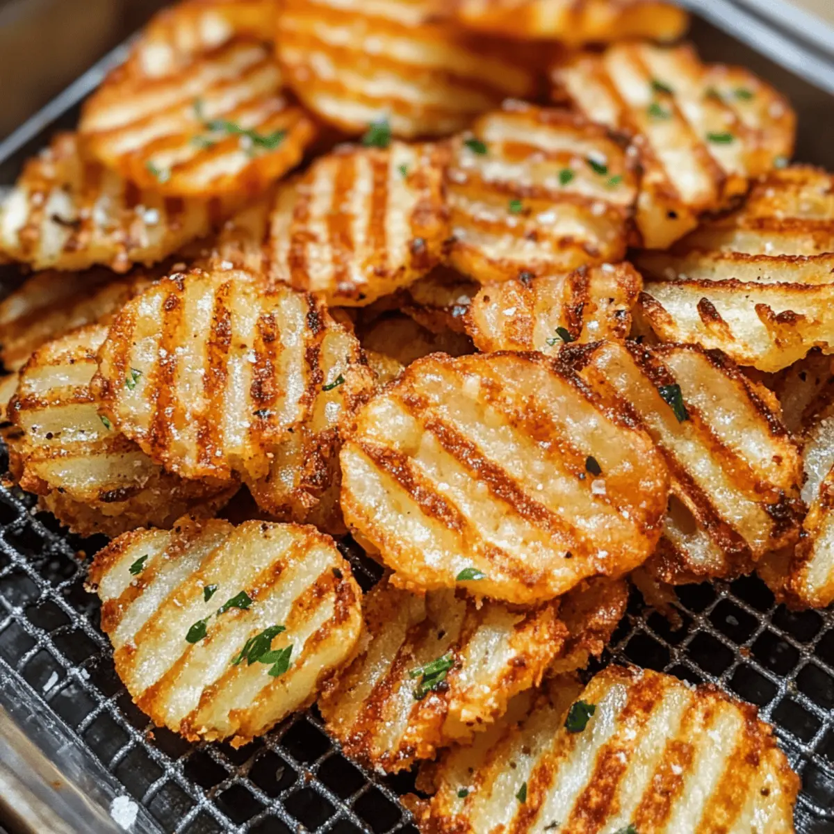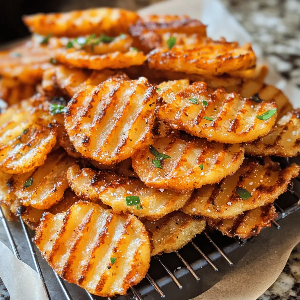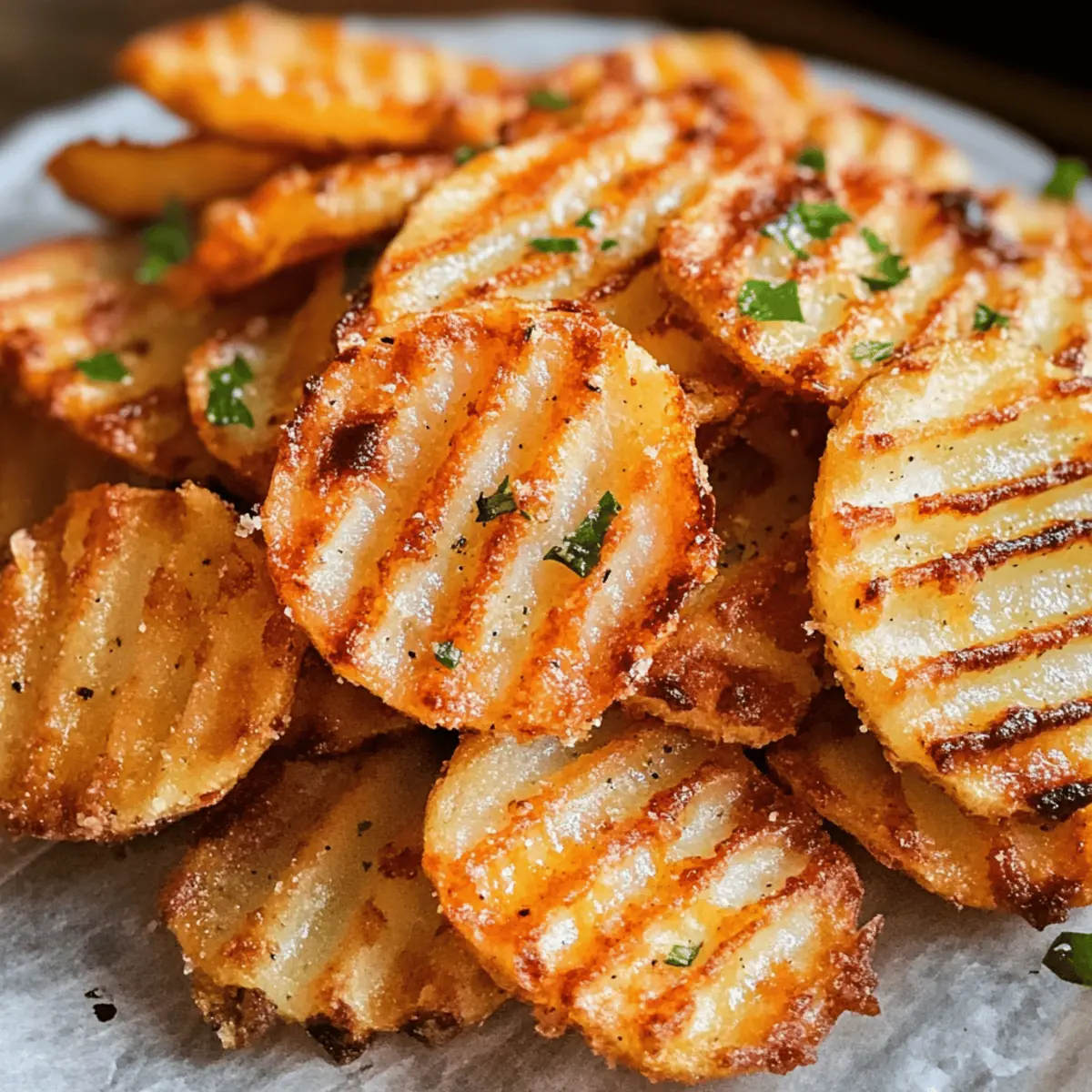 Als ich kürzlich in einer kleinen Küche stand und die besten Wedges zubereiten wollte, fiel mir auf, wie sehr ich die aufregenden Ripple Pommes von Sweetgreen vermisste. Aber anstatt sie zu bestellen, entschied ich mich, meine eigene Version zu kreieren – die Crispy Air Fryer Ripple Fries! Diese Pommes sind nicht nur einfach zuzubereiten, sondern auch perfekt für alle, die sich nach einem gesunden Snack ohne das Fett der traditionellen Frittierei sehnen. Mit dem Air Fryer werden sie außen knusprig und innen fluffig, sodass sie sowohl als Snack als auch als Beilage für jedes Dinner glänzen können. Bist du bereit, deine Geschmacksknospen zu verwöhnen und deine Fritteuse in den Ruhestand zu schicken? Lass uns gemeinsam diese unwiderstehlichen Ripple Pommes zaubern! Warum sind Ripple Pommes so beliebt? Einfachheit: Die Zubereitung dieser Ripple Pommes ist extrem leicht und benötigt keine komplizierten Kochtechniken. Gesundheitsbewusst: Sie verzichtet auf das frittieren, was sie zu einer perfekten, gesunden Snack-Option macht. Vielseitigkeit: Du kannst die Gewürze nach deinem Geschmack anpassen, sei es mit Paprika oder Knoblauchpulver. Wunderbare Textur: Die Kombination aus knuspriger Außenschicht und fluffigem Inneren macht jeden Biss zu einem Erlebnis. Schnelle Zubereitung: In weniger als 30 Minuten hast du eine leckere Beilage oder einen Snack, perfekt zum Teilen oder alleine genießen. Lust auf mehr? Probiere diese köstlichen Sweetgreen-inspirierten Pommes gleich selbst aus und erlebe die Vielfalt! Ripple Pommes Zutaten • Um sicherzustellen, dass deine Ripple Pommes perfekt werden, hier die Zutaten, die du brauchst! Für die Pommes Russet Kartoffeln – 1,5 Pfund sorgen für Fluffigkeit und die perfekte Textur. Avocadoöl – Das sorgt für Feuchtigkeit und eine knusprige Textur; du kannst auch neutrales Öl wie Raps- oder Pflanzenöl verwenden. Maisstärke – Verstärkt die Knusprigkeit ohne Frittieren; optional, aber empfohlen für einen crunchigen Biss. Salz – Balance im Geschmack; nach Belieben anpassen. Schwarzer Pfeffer – Für zusätzliches Würze; ebenfalls nach Geschmack anpassen. Optionale Gewürze (z.B. Paprika, Knoblauchpulver, Zwiebelpulver) – Passen deinen Geschmack nach Wunsch an; ideal für deine eigene Variante der Ripple Pommes. Schritt-für-Schritt-Anleitung für Ripple Pommes – Sweetgreen Nachahmung Step 1: Kartoffeln vorbereiten Wasche die Russet Kartoffeln gründlich und schneide sie mit einem gewellten Schneider in 0,5 cm dicke Ripple-Scheiben. Lege die geschnittenen Kartoffeln auf ein Küchentuch, um überschüssiges Wasser zu entfernen. Diese einfache Vorbereitung ist der erste Schritt zu perfekten Ripple Pommes. Step 2: Kartoffeln einweichen Tauche die geschnittenen Kartoffeln in eine Schüssel mit kaltem Wasser und lasse sie 20 bis 30 Minuten einweichen. Dieses Einweichen entfernt überschüssige Stärke und sorgt dafür, dass die Pommes beim Frittieren knusprig werden. Achte darauf, die Kartoffeln vollständig unter Wasser zu halten. Step 3: Kartoffeln trocknen Nachdem die Kartoffeln eingeweicht sind, schöpfe sie aus dem Wasser und patte sie gründlich mit einem sauberen Küchentuch trocken. Dies ist entscheidend, um zu verhindern, dass die Pommes im Air Fryer dämpfen und nicht knusprig werden. Die richtige Trocknung ist ein Schlüssel zur Zubereitung von Ripple Pommes – Sweetgreen Nachahmung. Step 4: Pommes würzen Gib die getrockneten Kartoffeln in eine große Schüssel und füge Avocadoöl, Maisstärke, Salz und schwarzen Pfeffer hinzu. Vermische alles gut, bis die Kartoffeln gleichmäßig mit der Mischung bedeckt sind. Diese Gewürzmischung sorgt für den perfekten Geschmack und die knusprige Textur deiner Ripple Pommes. Step 5: Air Fryer vorheizen Heize den Air Fryer auf 190°C (375°F) vor. Je nach Modell kann es einige Minuten dauern, bis er die optimale Temperatur erreicht hat. Ein gut vorgeheizter Air Fryer ist entscheidend für die knusprige Konsistenz, die du bei diesen Ripple Pommes erzielen möchtest. Step 6: Pommes frittieren Lege die gewürzten Pommes in den Air Fryer-Korb und achte darauf, sie nicht zu überladen. Frittiere die Pommes etwa 15 bis 20 Minuten, schüttele den Korb zur Halbzeit, um ein gleichmäßiges Garen zu gewährleisten. Achte darauf, dass sie goldbraun und zart werden – das visuelle Zeichen für die perfekte Ripple Pommes. Step 7: Fertigstellen und servieren Wenn die Ripple Pommes fertig sind, nimm sie vorsichtig aus dem Air Fryer und lasse sie auf einem Teller abtropfen. Bestreue sie nach Belieben mit zusätzlichem Salz und garnieren sie mit deinen bevorzugten Dips oder Gewürzen. Serviere die Pommes heiß und genieße sie als perfekten gesunden Snack! Was passt gut zu Ripple Pommes – Sweetgreen Nachahmung? Der perfekte Begleiter zu deinen knusprigen Ripple Pommes sorgt nicht nur für eine geschmackliche Symphonie, sondern ergänzt auch die Textur und das Esserlebnis. Kräuter-Dip: Ein frischer Kräuterquark bringt eine cremige Frische, die die Pommes perfekt ergänzt und für eine ausgewogene Geschmacksnote sorgt. Dieser Dip ist einfach und schnell zubereitet und wird jeden bei deinem Essen begeistern. Chipotle Aioli: Diese rauchige, leicht scharfe Sauce sorgt für ein aufregendes Geschmackserlebnis und bietet eine wunderbare Verbindung zu den knusprigen Pommes. Ideal für alle, die etwas Würze mögen! Knoblauch-Mayonnaise: Eine cremige, würzige Kombination, die jeder Pommes ihren besonderen Kick verleiht. Perfekt zum Dippen und sorgt für eine zusätzliche Geschmackstiefe. Ketchup: Der Klassiker, der nie fehl am Platz ist! Ein süß-saurer Ketchup rundet den herzhaften Geschmack der Ripple Pommes perfekt ab. Coleslaw: Ein knackiger, erfrischender Salat bringt eine schöne Textur und Leichtigkeit, die die Pommes wunderbar ergänzt. Die Kombination ist einfach himmlisch! Selbstgemachter Ehrlich-ere-Salat: Ein herzhaft erfrischender Salat mit frischem Gemüse und einem leichten Dressing, der d