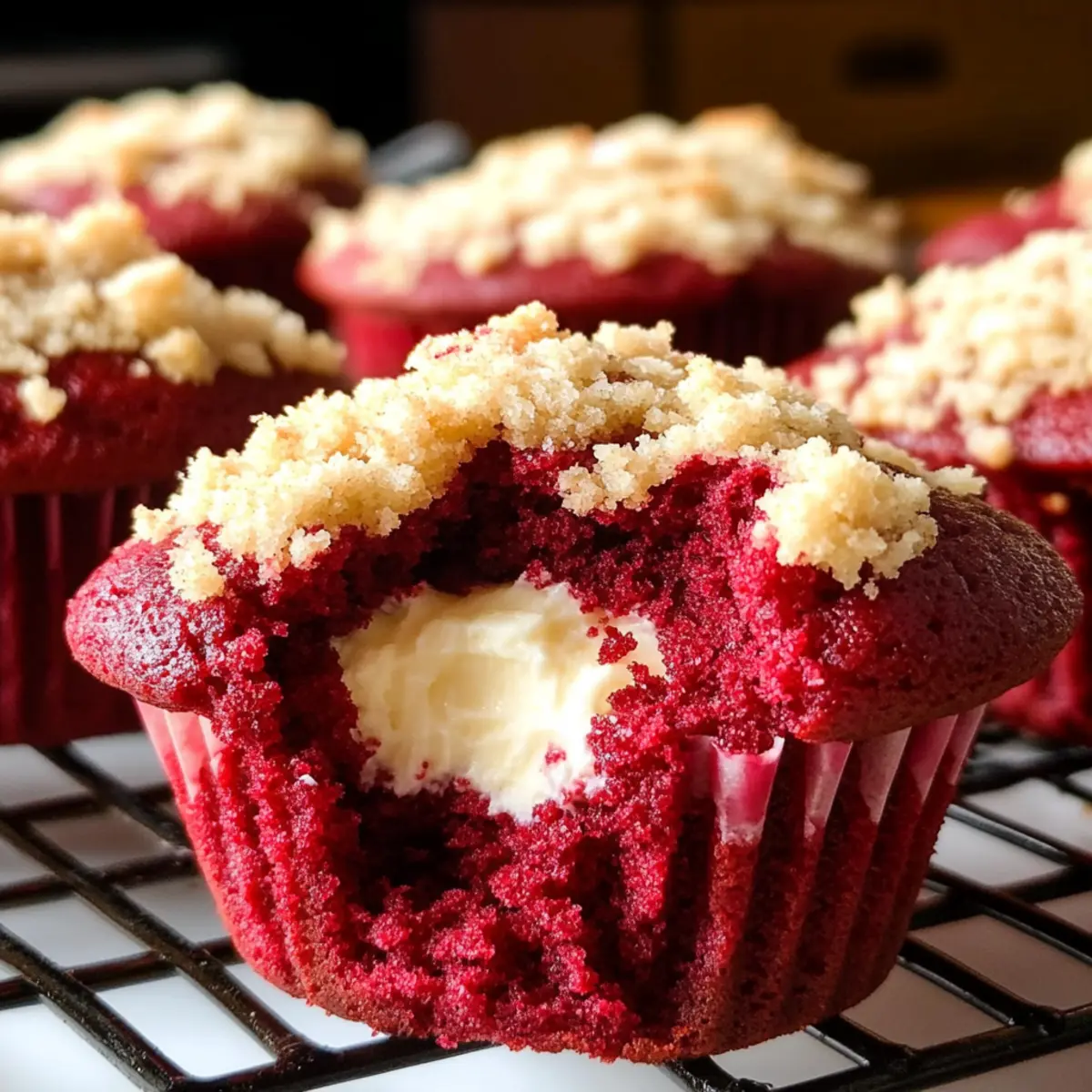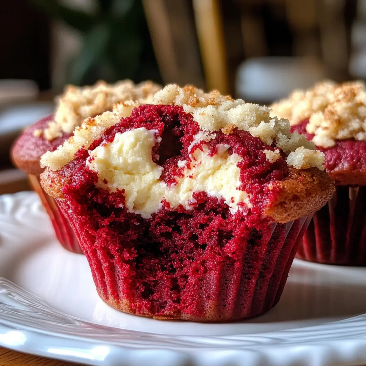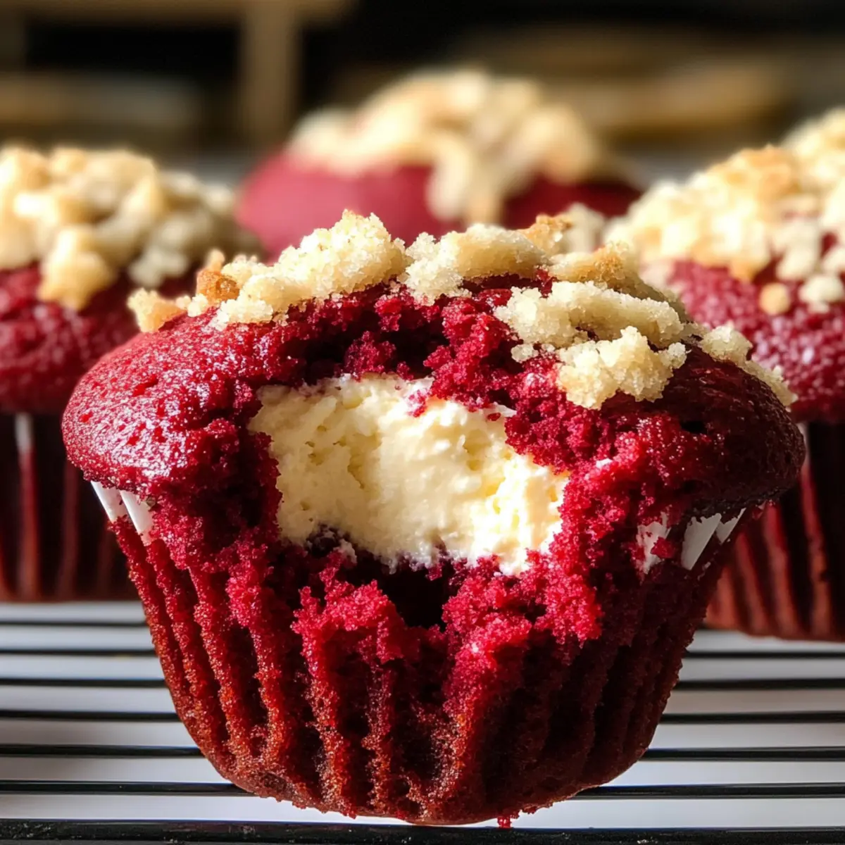 Als ich das erste Mal diese Rote Samtmuffins mit Frischkäsefüllung aus dem Ofen zog, wusste ich sofort, dass sie etwas ganz Besonderes sind. Diese zarten, buttrigen Muffins sind nicht nur leicht und fluffig, sie überraschen auch mit einem cremigen Kern, der an einen köstlichen Käsekuchen erinnert. Die knusprige Butterbrotkruste sorgt dafür, dass jeder Biss ein kleiner Genussmoment ist – perfekt für ein mit Liebe zubereitetes Frühstück oder einen süßen Snack zwischendurch. Und das Beste? Die Zubereitung geht schnell und verursacht keinen großen Aufwand in der Küche! Wer könnte da widerstehen? Neugierig, wie ihr diese unwiderstehlichen Muffins selbst zaubern könnt? Dann bleibt dran! Warum sind diese Muffins unwiderstehlich? Einfachheit: Die Zubereitung dieser Rote Samtmuffins ist kinderleicht und benötigt nur grundlegende Backkenntnisse. Cremiges Erlebnis: Der köstliche Frischkäsefüllung überrascht und sorgt für einen wunderbaren Kontrast zur fluffigen Muffinbasis. Köstlicher Kontrast: Die Kombination aus der knusprigen Butterbrotkruste und dem weichen Kern macht jeden Biss zu einem besonderen Moment. Vielseitigkeit: Variiert die Füllung nach Lust und Laune, zum Beispiel mit Schokoladen-Ganache oder fruchtigen Konfitüren. Schnell zubereitet: Ideal für geplante oder spontane Backaktionen, perfekt für gesellige Frühstücke oder Nachmittagskaffees. Genießt diese Muffins am besten warm mit einer Tasse Kaffee oder verschenkt sie an Freunde! Verpasst nicht auch meine schokoladigen Muffins, die ebenfalls schnell zubereitet sind und jedem schmecken! Zutaten für Rote Samtmuffins mit Frischkäsefüllung • Entdecke die perfekten Ingredienzien für deine unwiderstehlichen Muffins! Für den Muffin-Teig: Kuchenmehl – sorgt für eine zarte Textur. Kein Kuchenmehl? Nutze Allzweckmehl und entferne 2 Esslöffel, während du 2 Esslöffel Maisstärke hinzufügst. Ungesalzene Butter – verleiht den Muffins Reichtum und Feuchtigkeit. Zimmerwarm verwenden für einfaches Vermengen. Pflanzenöl – sorgt für Feuchtigkeit und eine leichte Textur. Kann durch geschmolzenes Kokosnussöl ersetzt werden für einen Hauch von Kokosnussgeschmack. Brauner Zucker – fügt Süße und Feuchtigkeit hinzu und verstärkt den Geschmack. Weißer Zucker kann verwendet werden, verändert jedoch den Geschmack und die Textur. Eiweiß – trägt zur Muffin-Hebung und Textur bei. Eier nicht durch Leinsamen- oder Chia-Eier ersetzen für die besten Ergebnisse. Buttermilch – verbessert den Geschmack und die Zartheit. Kann durch Milch gemischt mit einem Esslöffel Essig ersetzt werden. Rote Samt Emulsion – verstärkt die Farbe und den Geschmack. Gel-Lebensmittelfarbe kann verwendet werden, wenn Emulsion nicht verfügbar ist. Kakaopulver – sorgt für ein dezentes Schokoladennote. Achte darauf, ungesüßtes Kakaopulver zu verwenden. Schlagsahne – hilft, die Muffins luftig zu machen. Nicht durch Milch ersetzen, da sie sich nicht richtig steif schlagen lässt. Für die Frischkäsefüllung: Frischkäse – das Highlight der Füllung für einen cremigen, reichen Kern. Kann mit Vanille oder Zitronenschale für Abwechslung aromatisiert werden. Puderzucker – süßt die Frischkäsefüllung. Kann durch Kristallzucker ersetzt werden, verändert jedoch die Textur. Für die Kruste: Butterkrümel-Mischung – sorgt für eine köstliche, knusprige Kruste. Ein wunderbarer krönender Abschluss für die Muffins! Viel Spaß beim Backen dieser köstlichen Rote Samtmuffins mit Frischkäsefüllung! Schritt-für-Schritt-Anleitung für Rote Samtmuffins mit Frischkäsefüllung Step 1: Frischkäsefüllung zubereiten Den Frischkäse mit dem Eigelb und Puderzucker in einer Schüssel kräftig schlagen, bis eine glatte und cremige Masse entsteht. Anschließend kleine Häufchen der Füllung auf ein mit Backpapier ausgelegtes Blech setzen und für eine Stunde in den Gefrierschrank stellen, damit sie später gut in die Muffins eingearbeitet werden können. Step 2: Krümeltopping vorbereiten In einer Schüssel die Zutaten für das Krümeltopping miteinander vermischen. Die Mischung mit den Fingern so bearbeiten, dass die Butter gut mit dem Mehl vermengt ist und die ganze Mischung krümelig aussieht. Die Krümelmasse beiseitelegen, während du den Muffin-Teig vorbereitest. Step 3: Muffin-Teig herstellen Die ungesalzene Butter und das Pflanzenöl in einer großen Rührschüssel verrühren. Den braunen Zucker hinzufügen und die Mischung mit einem Handmixer auf mittlerer Stufe schlagen, bis sie leicht und cremig aussieht. Nacheinander die Eiweiße hinzufügen und nach jedem Ei gut unterrühren, gefolgt von der buttermilch und der roten Samtemulsion. Step 4: Trockene Zutaten kombinieren In einer separaten Schüssel das Kuchenmehl, Backpulver, Natron, Salz und Kakaopulver zusammen sieben. Dies ermöglicht eine gleichmäßige Verteilung der Zutaten und eine luftige Muffin-Textur. Achte darauf, keine Klumpen zu haben; dies verbessert das Endergebnis der Rote Samtmuffins mit Frischkäsefüllung. Step 5: Zutaten einarbeiten Die trockenen Zutaten im Wechsel mit der Buttermilch nach und nach zur Butter-Zucker-Mischung geben. Mit einem Holzlöffel oder einem Spatel vorsichtig rühren, bis alles gerade so miteinander verbunden ist. Achte darauf, nicht zu lange zu rühren, damit der Teig fluffig bleibt. Step 6: Sahne schlagen Die Schlagsahne in einer separaten Schüssel mit einem Handmixer steif schlagen, bis sich weiche Spitzen bilden. Die geschlagene Sahne zügig und vorsichtig unter den Muffin-Teig heben, um eine luftige Konsistenz zu erreichen. Dies trägt zur leckeren Textur der Rote Samtmuffins bei. Step 7: Muffin-Blech vorbereiten Das Muffinblech einfetten und die Mulden mit Papierförmchen auslegen. Dann den Muffinteig gleichmäßig in die Förmchen füllen, bis sie etwa zur Hälfte gefüllt sind. In die Mitte jedes Muffins eines der gefrorenen Frischkäsehäufchen setzen und dann mit dem restlichen Teig abdecken, sodass die Füllung 