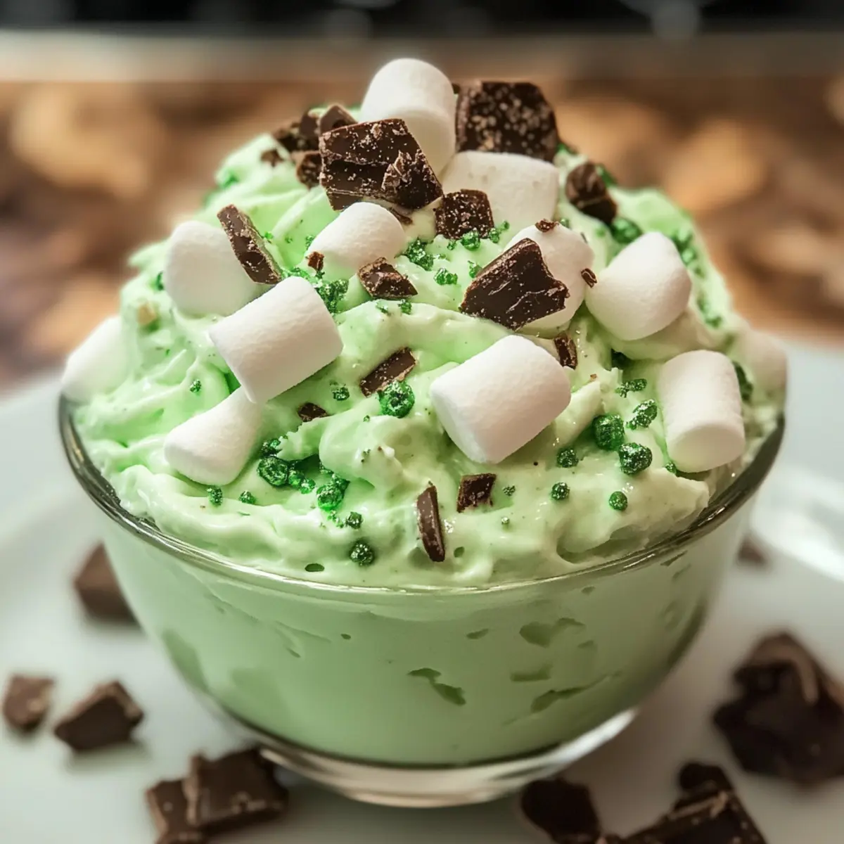Die Luft war erfüllt von einem süßen Aroma, das mich sofort zurück in die Kindheit katapultierte – es erinnerte mich an die fröhlichen Feiern zu St. Patrick’s Day, bei denen der Schamrock Käsekuchen Fluff der Star des Desserts war. Dieses himmlisch leichte, no-bake Dessert vereint die frische Minze mit einer cremigen Textur und strahlt in einem einladenden, festlichen Grün. Egal, ob für eine Feier oder einfach als süßer Abschluss eines Familienessens – dieser einfache Genuss bringt sowohl Kinder als auch Erwachsene zum Schmelzen! Mit minimalem Aufwand bei der Zubereitung verwandelt sich jeder Bissen in einen wahren Geschmackstraum. Neugierig, wie du dieses wunderbare Dessert ins Rampenlicht rücken kannst? Lass uns gemeinsam in die Zubereitung eintauchen! Warum wirst du dieses Dessert lieben? Einfachheit: Die Zubereitung ist kinderleicht und erfordert keine Backkenntnisse, sodass du mehr Zeit für das Feiern hast. Frischer Geschmack: Die erfrischende Minze harmoniert perfekt mit der cremigen Käsebasis und sorgt für ein einzigartiges Geschmackserlebnis. Festliche Optik: Die strahlend grüne Farbe macht den Schamrock Käsekuchen Fluff zum Hingucker auf jeder Feier, besonders an St. Patrick’s Day! Vielfältigkeit: Du kannst die Zutaten ganz nach deinem Geschmack anpassen, zum Beispiel mit verschiedenen Keksen oder Toppings. Familienfreundlich: Dieses Dessert ist bei Groß und Klein beliebt, perfekt für den nächsten Familienabend oder als süßer Abschluss zu einem gemeinsamen Essen. Schamrock Käsekuchen Fluff Zutaten Für die Käsecreme: Frischkäse – sorgt für die cremige Basis; achte darauf, dass er Zimmertemperatur hat für einfaches Mixen. Puderzucker – süßt die Mischung; du kannst ihn durch einen alternativen Süßstoff ersetzen, wenn gewünscht. Vanilleextrakt – verleiht Wärme und intensiviert den Geschmack; verwende bestenfalls reinen Vanilleextrakt. Minzextrakt – bringt den erfrischenden Minzgeschmack; benutze sparsam Pfefferminzextrakt als stärkeren Ersatz, wenn gewünscht. Grüne Lebensmittelfarbe – trägt zur festlichen grünen Farbe bei; optional für eine natürlichere Erscheinung und kann weggelassen werden. Für den fluffigen Teil: Schlagsahne – sorgt für Leichtigkeit und Volumen; ersetze sie durch frisch geschlagene Sahne (2 Tassen) für einen hausgemachten Touch. Mini-Marshmallows – verleihen Süße und Textur; erhöhe die Menge für eine kauigere Konsistenz, wenn gewünscht. Für den Crunch: Zerkleinerte Schokoladenkekse – geben Knusprigkeit und Schokoladengeschmack; kann gegen Graham Cracker oder Vanillewafer getauscht werden für Variation. Schritt-für-Schritt-Anleitung für Schamrock Käsekuchen Fluff Step 1: Käsecreme vorbereiten In einer großen Rührschüssel den zimmertemperierten Frischkäse und Puderzucker mit einem Handmixer auf mittlerer Stufe glatt rühren. Dies sollte etwa 2–3 Minuten dauern, bis die Mischung cremig ist. Anschließend Vanilleextrakt, Minzextrakt und grüne Lebensmittelfarbe hinzufügen und gut vermengen, bis eine einheitliche Farbe erreicht ist. Step 2: Schlagsahne unterheben Nehme eine große Schüssel und fülle sie mit der aufgetauten Schlagsahne. Mit einem großen Spatel die Schlagsahne vorsichtig in die Käsecreme-Füllung unterheben, um die luftige Textur zu bewahren. Dies sollte sanft geschehen, um die Leichtigkeit der Mischung zu erhalten, und dauert etwa 1–2 Minuten. Step 3: Zutaten mischen Füge nun die Mini-Marshmallows und die zerkleinerten Schokoladenkekse zur Mischung hinzu. Gently fold alles zusammen, bis die Marshmallows und Kekse gleichmäßig in der Käsecreme verteilt sind. Überprüfe die Mischung visuell, um sicherzustellen, dass alle Zutaten gut integriert sind, was etwa 1–2 Minuten in Anspruch nimmt. Step 4: Garnieren und Kühlen Die fertige Mischung in eine dekorative Servierschüssel oder mehrere Dessertbecher umfüllen. Für das festliche Aussehen kannst du optional eine weitere Schicht Schlagsahne oder ein paar Schokoladenkekskrümel darüber streuen. Decke die Schüssel mit Frischhaltefolie ab und stelle sie für mindestens 1–2 Stunden in den Kühlschrank, damit der Schamrock Käsekuchen Fluff fest wird und die Aromen sich verbinden. Was passt gut zum Schamrock Käsekuchen Fluff? Lass uns gemeinsam das perfekte Menü kreieren, das diesen festlichen, cremigen Genuss ergänzt und noch mehr Freude auf den Tisch bringt. Frisch gebrühter Kaffee: Der kräftige, warme Geschmack des Kaffees steigert die Aromen des Desserts und sorgt für einen harmonischen Kontrast. Grüne Limonade: Ein sprudelndes Getränk mit Zitrusnoten bringt Lebhaftigkeit und passt exzellent zur frischen Minze des Fluffs. Schokoladenkekse: Diese köstlichen Begleiter bieten einen schokoladigen Crunch und harmonieren perfekt mit der cremigen Textur des Fluffs. Fruchtige Obstplatte: Eine bunten Auswahl an frischen Früchten wie Erdbeeren oder Trauben bringt Frische und eine natürliche Süße. Mini-Cupcakes: Kleine, luftige Cupcakes mit Vanille oder Limette runden das Dessert-Thema ab, ohne zu überwältigen. Eiscreme mit Minzgeschmack: Das Kühle und Cremige der Eiscreme verstärkt das erfrischende Mundgefühl des Schamrock Käsekuchen Fluffs und macht es zum perfekten Finish. Aufbewahrungstipps für Schamrock Käsekuchen Fluff Kühlschrank: Bewahre übrig gebliebenen Schamrock Käsekuchen Fluff in einem luftdichten Behälter im Kühlschrank auf, wo er bis zu 3 Tage frisch bleibt. Gefrierfach: Du kannst den Fluff für bis zu 2 Wochen einfrieren. Achte darauf, ihn gut einzupacken und im Kühlschrank aufzutauen, um die beste Textur zu erhalten. Servieren: Vor dem Servieren nach dem Auftauen sanft umrühren, um die cremige Konsistenz wiederherzustellen. Der Fluff ist am besten, wenn er kalt serviert wird. Schamrock Käsekuchen Fluff Variationen Lass deiner Kreativität freien Lauf und finde heraus, wie du dieses Dessert nach deinem Geschmack anpassen kannst! Dairy-Free: Verwende Pflanzencreme und koko
