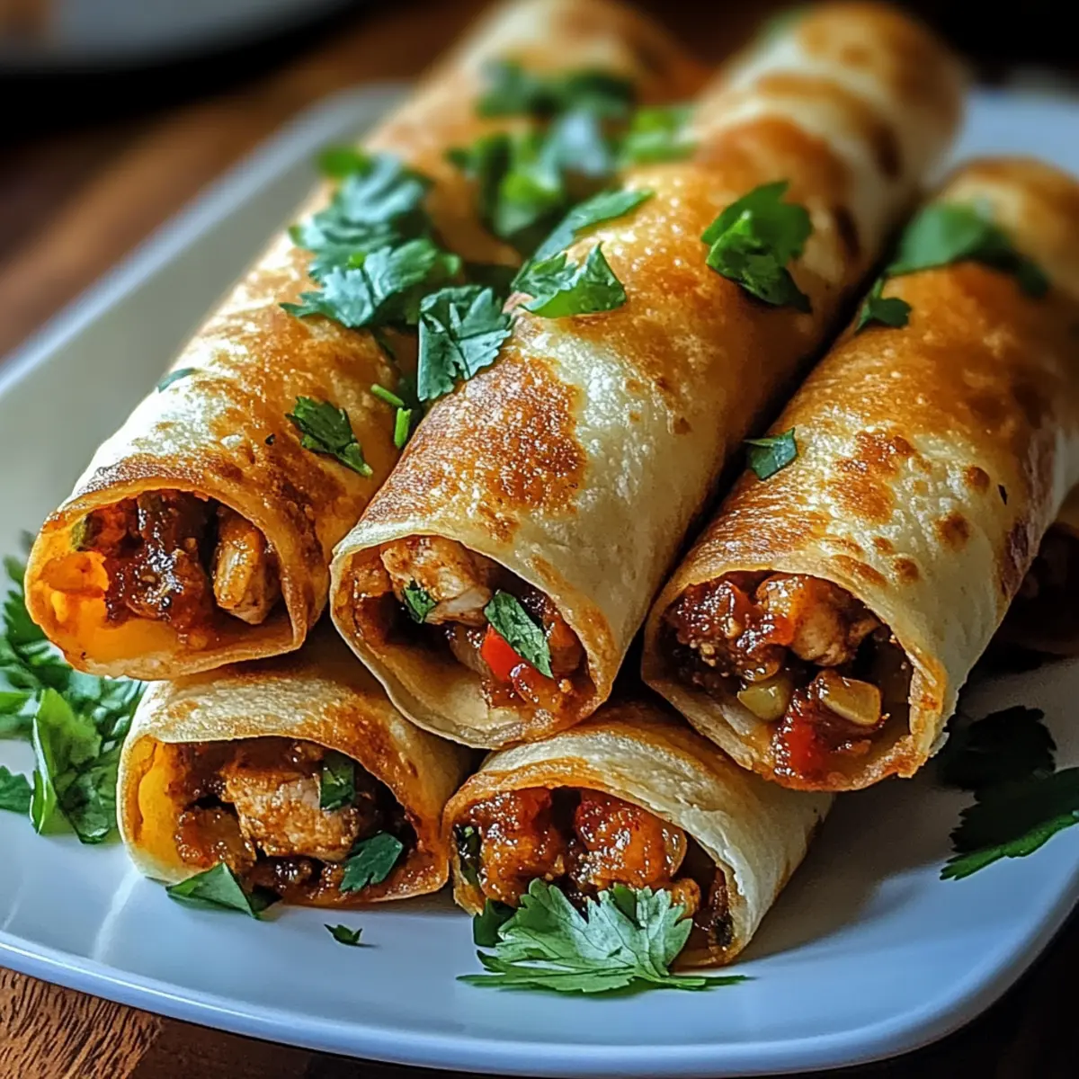 Es gibt diese besonderen Momente in der Küche, wenn das Aroma von gerösteten Chilis die Luft erfüllt und das Wasser im Mund zusammenläuft. Heute teile ich mit euch mein Rezept für Scharfe Hatch-Chili-Hühnchen-Taquito-Rollen, die sich nicht nur für ein schnelles Abendessen eignen, sondern auch als beeindruckender Snack bei jeder Gelegenheit. Mit einer Zubereitungszeit von nur 40 Minuten und einfachen, anpassbaren Zutaten sind diese Taquitos perfekt, um geliebte Mexikanische Aromen direkt nach Hause zu bringen. Egal, ob ihr ein bisschen mehr Würze in euren Alltag bringen oder Freunden etwas Besonderes servieren möchtet – diese knusprigen Rollen sind genau das Richtige! Seid ihr bereit, euren nächsten kulinarischen Triumph zu feiern? Warum lieben alle dieses Rezept? Einfachheit: Die Zubereitung ist unkompliziert und erfordert nur grundlegende Kochfähigkeiten, perfekt für alle, die in der Küche viel Spaß haben möchten. Vielseitigkeit: Diese Taquitos lassen sich ganz leicht anpassen – probiert die vegetarische Option mit schwarzen Bohnen oder variiert die Füllung mit euren Lieblingskäsesorten. Aromatische Intensität: Mit der rauchigen Note der Hatch-Chilis und einer perfekten Gewürzmischung liefern diese Rollen einen unvergesslichen Geschmack, der selbst die anspruchsvollsten Gaumen begeistert. Zeitersparnis: In nur 40 Minuten sind diese Taquitos fertig und bereit, serviert zu werden – ideal für ein schnelles Abendessen unter der Woche oder eine spontane Feier. Geselligkeit: Egal, ob ihr sie beim nächsten Spielabend oder als Vorspeise zu einem besonderen Anlass serviert, diese scharfen Taquitos werden eure Gäste beeindrucken! Holt die besten Aromen Mexikos direkt auf euren Tisch und genießt das Erlebnis. Scharfe Hatch-Chili-Hühnchen-Taquito-Rollen Zutaten • Diese Zutaten sorgen dafür, dass eure Taquitos perfekt gelingen! Für die Füllung Hähnchenbrustfilet – saftiges Fleisch für eine zarte Füllung; für mehr Geschmack könnt ihr auch Hähnchenschenkel verwenden. Hatch-Chilis – für das einzigartige rauchige Aroma; könnt ihr durch Poblano ersetzen, falls nicht erhältlich. Geriebener Käse (Cheddar oder Monterey Jack) – sorgt für Cremigkeit und verbindet die Füllung; experimentiert mit verschiedenen Käsesorten für neue Geschmäcker. Kleinflächige Weizentortillas – ideal zum engen Rollen; Mais-Tortillas benötigen eventuell etwas Wärme, um Risse zu vermeiden. Für die Gewürze Kreuzkümmel, Chilipulver, Knoblauchpulver, geräucherter Paprika – steigern die Geschmacksintensität; passt sie nach eurem persönlichen Geschmack an. Zum Braten oder Backen Öl – zum Bestreichen für das Backen oder zum Braten verwendet; Avocado- oder Pflanzenöl sind gut für hohe Temperaturen geeignet. Für die Garnitur Sauerrahm, Salsa, Guacamole, frischer Koriander – hebt sowohl die Präsentation als auch den Geschmack der Taquitos; serviert sie für ein unvergessliches Geschmackserlebnis. Schritt-für-Schritt-Anleitung für Scharfe Hatch-Chili-Hühnchen-Taquito-Rollen Step 1: Chilis rösten Heizt den Backofen auf 220°C vor. Legt die Hatch-Chilis auf ein Backblech und röstit sie für 15-20 Minuten, bis sie aufblähen und schwarz werden. Lasst sie anschließend etwas abkühlen, bevor ihr die Haut abzieht und die Chilis grob hackt. Step 2: Hähnchen zubereiten In einer großen Pfanne etwas Öl erhitzen. Fügt gewürfeltes Hähnchenbrustfilet hinzu und bratet es für etwa 6-8 Minuten, bis das Fleisch goldbraun und durchgegart ist. Mit Kreuzkümmel, Chilipulver, Knoblauchpulver und geräucherter Paprika würzen und gut vermengen. Step 3: Füllung kombinieren Nehmt eine Schüssel und vermischt das gebratene Hähnchen mit den gehackten Hatch-Chilis und geriebenem Käse. Rührt alles gründlich um und probiert die Füllung, um sie nach Belieben nachzuwürzen. Diese Mischung wird die Basis für eure Scharfen Hatch-Chili-Hühnchen-Taquito-Rollen. Step 4: Taquitos vorbereiten Wärmt die Tortillas leicht auf, um ein Reißen zu vermeiden. Trennt 2-3 Esslöffel der Füllung und platziert sie auf der unteren Seite jeder Tortilla. Rollt die Tortilla straff auf und sichert sie gegebenenfalls mit einem Zahnstochers, um die Füllung im Inneren zu halten. Step 5: Backen oder Frittieren Um die Taquitos zu backen, heizt den Ofen auf 200°C vor und bestreicht die Rollen leicht mit Öl. Backt sie auf einem Backblech für 15-20 Minuten, bis sie goldbraun und knusprig sind. Für die Frittier-Option, erhitzt Öl in einer Pfanne und frittiert die Taquitos für 2-3 Minuten auf jeder Seite, bis sie knusprig sind. Step 6: Servieren Serviert die Scharfen Hatch-Chili-Hühnchen-Taquito-Rollen heiß mit euren Lieblings-Dips wie Sauerrahm, Salsa oder Guacamole. Damit sorgt ihr nicht nur für einen knusprigen, sondern auch für einen geschmackvollen Genuss, der eure Gäste begeistern wird! Expertentipps für Scharfe Hatch-Chili-Hühnchen-Taquito-Rollen Tortillas warm halten: Wärmt die Tortillas vor dem Füllen leicht auf, um Rissbildung beim Rollen zu vermeiden. Richtig backen: Nutzt Backpapier oder ein Gitterrost für gleichmäßiges Backen und extra Knusprigkeit der Taquitos. Käsewahl: Experimentiert mit verschiedenen Käsesorten – zum Beispiel Pepper Jack für extra Schärfe oder Feta für eine frische Note. Füllung anpassen: Vermeidet ein Überfüllen der Tortillas, um ein Auslaufen der Füllung während des Kochens zu verhindern. Crispy Reheat: Beim Aufwärmen der Reste verwendet den Ofen oder eine Heißluftfritteuse, um die Knusprigkeit der Scharfen Hatch-Chili-Hühnchen-Taquito-Rollen zu erhalten. Scharfe Hatch-Chili-Hühnchen-Taquito-Rollen Variationen Gestaltet die Scharfen Hatch-Chili-Hühnchen-Taquito-Rollen ganz nach eurem Geschmack und entdeckt neue Möglichkeiten! Vegetarisch: Tauscht das Hähnchen gegen schwarze Bohnen, Mais und geröstete Paprika für eine köstliche Füllung. Extra Käse: Probiert anstelle von Cheddar oder Monterey Jack würzigen Pepper Jack oder krüme