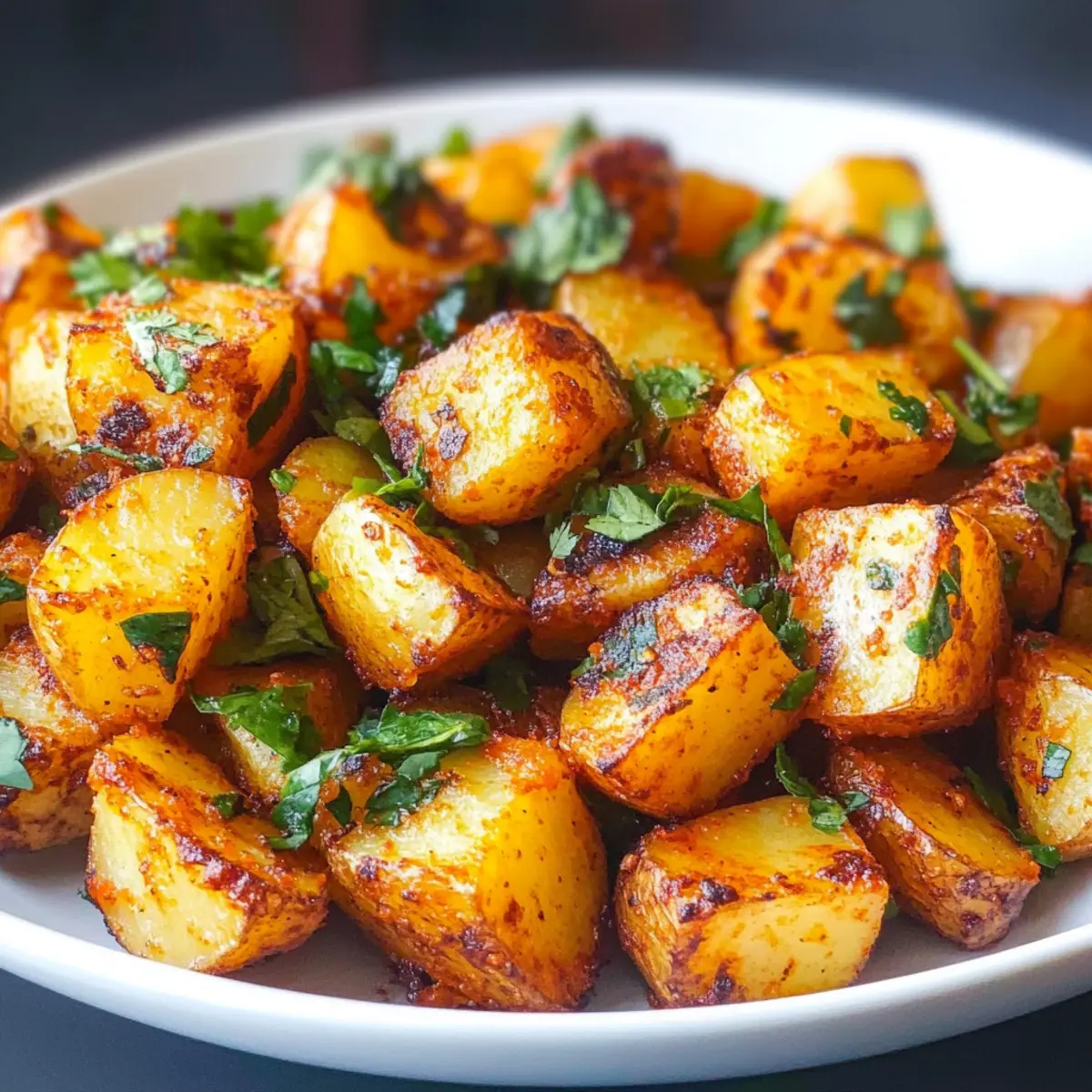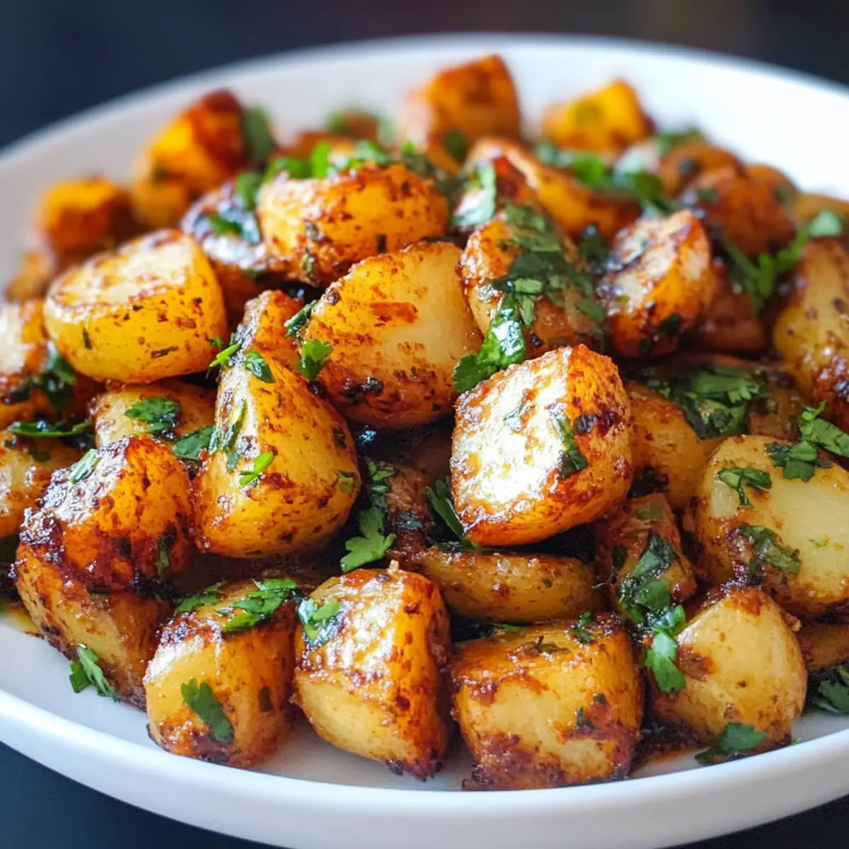 Ich saß am Tisch, als ich plötzlich das unverkennbare Knistern frisch gebratener Kartoffeln hörte. Es war der perfekte Moment, um meine Liebe zu köstlichen, hausgemachten Gerichten zu feiern. Diese scharfen libanesischen Kartoffeln, auch bekannt als Batata Harra, sind ein absolutes Must-Try! Ihre Kombination aus knusprigen, goldenen Kartoffeln und einer würzigen Mischung aus Knoblauch, Chili und frischem Koriander wird deine Geschmacksknospen verzaubern. Das Beste daran? Die Zubereitung ist schnell und einfach, egal ob aus der Heißluftfritteuse oder dem Ofen. Damit sind sie der ideale Begleiter für jeden Anlass und ein wahrer Publikumsliebling, der deine Gäste ins Schwärmen bringen wird. Bist du bereit, das Geheimnis dieser köstlichen Beilage zu entdecken? Warum sind scharfe libanesische Kartoffeln so beliebt? Einzigartiger Geschmack: Die Kombination aus Knoblauch, Chili und frischem Koriander verleiht den Kartoffeln eine geschmackliche Explosion, die zum Schlem-men einlädt. Einfachheit: Mit minimalem Aufwand zauberst du ein Rezept, das selbst an hektischen Tagen schnell gelingt. Vielseitigkeit: Ob als Snack, Vorspeise oder Beilage, diese Kartoffeln passen perfekt zu Gerichten wie Hähnchen Mit Rezept oder Ofenkartoffeln Mit Gruenem. Geselligkeit: Sie eignen sich ideal für gemeinsames Essen und bringen Freunde und Familie zusammen. Gesundheitsbewusst: Low-Fat und glutenfrei, sind sie eine köstliche Ergänzung zu jeder ausgewogenen Ernährung. Lass dich von diesen unwiderstehlichen scharfen Kartoffeln verführen! Scharfe libanesische Kartoffeln Zutaten • Die wichtigsten Zutaten für die Zubereitung von scharfen libanesischen Kartoffeln. Für die Kartoffeln Kartoffeln – Vorzugsweise Yukon Gold oder kleine Kartoffeln für die beste Textur. Zwiebelpulver – Fügt eine tiefere Geschmacksnote hinzu. Knoblauchpulver – Verstärkt die herzhaften Aromen. Salz – Essenziell für den Geschmack. Schwarzer Pfeffer – Sorgt für eine subtile Wärme. Paprika – Gibt Farbe und einen milden Pfeffergeschmack. Olivenöl – Wichtig für das Knusprigwerden der Kartoffeln und zum Mischen der Gewürze; zusätzlich für die Sauce verwenden. Gehackter Knoblauch – Frische Geschmacksnote für die Sauce. Cayennepfeffer – Für zusätzlichen Schärfegrad, nach Belieben mehr verwenden. Koriander – Frisches Kraut, das das Gericht aufhellt; Petersilie kann auch verwendet werden, verändert jedoch den Geschmack. Zitronensaft – Sorgt für Säure, die die Aromen ausbalanciert; nach Geschmack anpassen. Für die Sauce Gehackter Knoblauch – Für einen intensiven, frischen Geschmack in der Sauce. Olivenöl – Damit die Sauce geschmeidig und aromatisch wird. Cayennepfeffer – Noch mehr Würze für die Sauce. Koriander – Verleiht der Sauce seine frische Note. Paprika – Für zusätzliche Farbgebung und Geschmack. Zitronensaft – Erhöht die Säure und Frische des Geschmacks. Diese köstlichen scharfen libanesischen Kartoffeln sind nicht nur ein Genuss, sondern auch einfach und schnell zuzubereiten! Schritt-für-Schritt-Anleitung für Scharfe libanesische Kartoffeln Step 1: Kartoffeln vorbereiten Wasche die Yukon Gold oder kleinen Kartoffeln gründlich und tupfe sie mit einem Küchentuch trocken. Es ist wichtig, dass die Kartoffeln vollständig trocken sind, damit sie beim Kochen knusprig werden. Dies dauert etwa 5 Minuten. Step 2: Gewürzmischung herstellen Vermische in einer Schüssel Zwiebelpulver, Knoblauchpulver, Salz, schwarzen Pfeffer, Paprika und Olivenöl zu einer cremigen Paste. Rühre die Zutaten gründlich zusammen, bis eine homogene Mischung entsteht. Diese Schritte verbessern den Geschmack deiner scharfen libanesischen Kartoffeln und sorgen für ein gleichmäßiges Würzen. Step 3: Kartoffeln würzen Gib die vorbereiteten Kartoffeln in die Gewürzmischung und vermenge alles gut, bis die Kartoffeln gleichmäßig mit der Paste bedeckt sind. Dies sollte etwa 2-3 Minuten dauern. Verwende deine Hände oder einen großen Löffel für das beste Ergebnis, um sicherzustellen, dass jede Kartoffel ausreichend gewürzt ist. Step 4: Heißluftfritteuse vorbereiten Heize die Heißluftfritteuse auf 200°C (400°F) vor und sprühe den Korb leicht mit Olivenöl ein, um ein Ankleben der Kartoffeln zu vermeiden. Diese Vorbereitungen sorgen dafür, dass die Kartoffeln beim Frittieren gleichmäßig garen und knusprig werden. Step 5: Kartoffeln frittieren Lege die gewürzten Kartoffeln in einer einzigen Schicht in den Korb der Heißluftfritteuse und frittiere sie 18 Minuten lang. Schüttle den Korb nach der Hälfte der Zeit, um sicherzustellen, dass die Kartoffeln gleichmäßig gebräunt werden. Prüfe die Knusprigkeit und füge bei Bedarf weitere 2 Minuten hinzu, um die perfekte Textur zu erreichen. Step 6: Ofenalternative Wenn du lieber den Ofen verwenden möchtest, heize ihn auf 220°C (425°F) vor. Lege ein Backblech mit Alufolie aus, öle es leicht und verteile die gewürzten Kartoffeln darauf. Backe sie 25-30 Minuten lang, bis sie goldbraun und zart sind. Achte darauf, die Kartoffeln während des Backens einmal umzudrehen. Step 7: Sauce zubereiten In einer Pfanne erhitzt du etwas Olivenöl und sautierst den gehackten Knoblauch bei mittlerer Hitze, bis er duftet. Füge Cayennepfeffer, frischen Koriander, Paprika und Zitronensaft hinzu. Rühre alles gut durch und lasse die Sauce 2-3 Minuten köcheln, um die Aromen miteinander zu verbinden. Step 8: Servieren Vermische die fertig gebratenen oder gebackenen scharfen libanesischen Kartoffeln mit der aromatischen Sauce und serviere sie warm. Diese Kartoffeln sind eine perfekte Beilage zu einem geselligen Essen oder als Snack für zwischendurch. Was passt zu scharfen libanesischen Kartoffeln? Die perfekte Begleitung zu diesen köstlichen Kartoffeln bringt noch mehr Geschmack und Vielfalt auf den Tisch. Frischer Salat: Ein knackiger Gemüsesalat mit Gurken, Tomaten und Zitronendressing ergänzt die Schärfe der Kartoffeln wunderbar und sorgt für eine e
