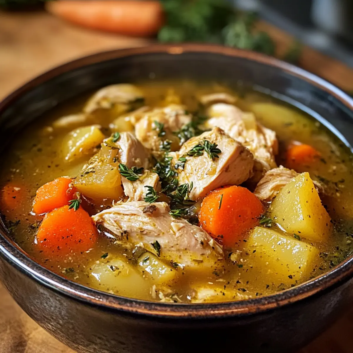 Es gibt nichts Besseres, als nach einem langen Tag in die warme Heimat zurückzukehren und den herzlichen Duft von Schmortopf Hähncheneintopf in der Luft zu riechen. Dieses klassische Gericht, gefüllt mit zarten Hähnchenstücken und aromatischen Gemüse, ist die perfekte Umarmung für die Seele. Mit einer cremigen, krautigen Brühe und einer Zubereitungszeit, die Raum für Entspannung lässt, ist dieser Eintopf nicht nur ein Genuss für die ganze Familie, sondern auch ideal für die Mittagspause im Büro. Er verwandelt alltagstaugliche Zutaten in ein unwiderstehliches Komfortessen, das in jeder Schüssel Trost spendet. Neugierig auf die einfachen Schritte, wie du diesen köstlichen Eintopf zubereiten kannst? Lass uns direkt loslegen! Warum ist dieser Eintopf so besonders? Einfachheit, Dieser Schmortopf Hähncheneintopf lässt sich mit minimalem Aufwand zubereiten und bietet dennoch ein Maximum an Geschmack – perfekt für alle Kochniveaus. Herzhafter Geschmack, Die harmonische Mischung aus zarten Hähnchenstücken und erdigem Gemüse sorgt für ein unvergleichliches Geschmackserlebnis, das alle begeistert. Vielseitigkeit, Egal, ob du ihn als Hauptgericht oder für eine Mittagspause benötigst, dieser Eintopf passt sich deinen Bedürfnissen an – serviere ihn mit frischem Brot oder über Reis. Zeitersparnis, Dank der Slow-Cooker-Methode kannst du die Arbeit erledigen und dich entspannen, während dein Eintopf köchelt. Genauso empfehlenswert sind unsere anderen Rezepte wie der Kartoffel Wurst Eintopf oder Bang Hähnchen Bowl, die auch schnell und einfach zubereitet sind. Zutaten für Schmortopf Hähncheneintopf • Ein einfaches, aber köstliches Rezept! Für den Eintopf Hähnchenschenkel – sorgen für reichhaltigen Geschmack und Saftigkeit; Hühnchenbrust kann bei Bedarf verwendet werden, achte jedoch darauf, sie nicht zu überkochen. Olivenöl – dient zum Anbraten des Hähnchens und schafft eine geschmackvolle Grundlage; kein direkter Ersatz nötig. Glutenfreies Mehl – hilft dabei, den Eintopf zu binden; kann auch durch normale Mehlalternative ersetzt werden. Salz – hebt die Aromen des Gerichts hervor; nach Geschmack anpassen. Getrockneter Thymian & Rosmarin – verleihen dem Eintopf kräuterliche Noten; frische Kräuter können in größeren Mengen verwendet werden. Zwiebel – bringt Süße und Tiefe in das Gericht; kann durch Schalotten oder Lauch ersetzt werden. Knoblauch – sorgt für aromatischen Geschmack; frischer Knoblauch wird bevorzugt, kann aber durch Knoblauchpulver ersetzt werden. Karotten – tragen zur Süße und Textur bei; ähnliche Wurzelgemüse sind ebenfalls geeignet. Kartoffeln – verleihen dem Eintopf eine herzliche Note; auch Süßkartoffeln oder Steckrüben sind möglich. Hühnchenbrühe – bildet die Basis des Eintopfs, die Feuchtigkeit und Geschmack liefert; kann durch Gemüsebrühe ersetzt werden. Lorbeerblatt – fügt einen subtilen erdigen Geschmack hinzu; vor dem Servieren entfernen. Milch – sorgt für Cremigkeit; pflanzliche Alternativen können verwendet werden. Gefrorene Erbsen – bringen eine frische Note und eine Farbstrahlung; frische Erbsen können in der Saison verwendet werden. Für die Garnitur (optional) Frische Petersilie – gibt einen zusätzlichen Farb- und Geschmacksakzent; kann nach Belieben bestreut werden. Sauerrahm oder Crème fraîche – tolles Topping, das die Cremigkeit verstärkt und dem Eintopf einen würzigen Schub verleiht. Schritt-für-Schritt-Anleitung für Schmortopf Hähncheneintopf Schritt 1: Öl erhitzen Erhitze in einer großen Pfanne bei mittlerer bis hoher Hitze etwas Olivenöl. Achte darauf, dass das Öl heiß genug ist, bevor du das Hähnchen hinzufügst. Dies geschieht normalerweise nach etwa 1-2 Minuten. Das Öl sollte leicht schimmern, um eine schöne Kruste beim Anbraten zu erzielen. Schritt 2: Hähnchen anbraten Würze die Hähnchenschenkel mit glutenfreiem Mehl, Salz, Thymian und Rosmarin. Lege die gewürzten Stücke in die heiße Pfanne und brate sie etwa 4-5 Minuten pro Seite, bis sie goldbraun sind. Das Hähnchen sollte eine ansprechende Farbe annehmen und anfangen, in der Pfanne zu sizzeln. Schritt 3: Hähnchen in den Slow Cooker geben Übertrage die goldbraun gebratenen Hähnchenschenkel vorsichtig in den Slow Cooker. Achte darauf, die Pfanne nicht zu überfüllen, damit die Hitze gleichmäßig zirkulieren kann. Lass dabei die Röststoffe in der Pfanne, die eine geschmackvolle Basis für deinen Schmortopf Hähncheneintopf bieten. Schritt 4: Gemüse schichten Füge Zwiebel, Knoblauch, Karotten und Kartoffeln schichtweise über das Hähnchen im Slow Cooker hinzu. Diese Schichtung sorgt dafür, dass das Gemüse gleichmäßig gart und die Aromen optimal entfalten können. Achte darauf, die Zutaten gleichmäßig zu verteilen, um eine gute Bratengrundlage zu schaffen. Schritt 5: Brühe und Gewürze hinzufügen Gieße die Hühnchenbrühe über die geschichteten Zutaten im Slow Cooker und füge das Lorbeerblatt hinzu. Rühre vorsichtig mit einem Löffel um, damit sich die Gewürze gut verteilen. Achte darauf, dass die Brühe alle Zutaten gut bedeckt ist, um Geschmack und Feuchtigkeit zu gewährleisten. Schritt 6: Langsam kochen Setze den Deckel auf den Slow Cooker und lasse den Schmortopf Hähncheneintopf 6-8 Stunden auf niedriger Stufe oder 3-4 Stunden auf hoher Stufe köcheln. Die Grenze für die Garzeit ist erreicht, wenn das Hähnchen zart ist und sich leicht vom Knochen löst. Schritt 7: Milch und Erbsen hinzufügen Etwa 30 Minuten vor Ende der Garzeit die Milch und die gefrorenen Erbsen in den Slow Cooker geben. Rühre die Mischung sanft um, damit die Zutaten gut kombinierten. Koche den Eintopf offen, damit die Brühe etwas eindickt und eine cremige Konsistenz entsteht. Schritt 8: Abschmecken und servieren Entferne das Lorbeerblatt, schmecke den Eintopf eventuell mit zusätzlichem Salz ab und passe die Gewürze nach deinem Geschmack an. Serviere deinen Schmortopf Hähncheneintopf heiß in 