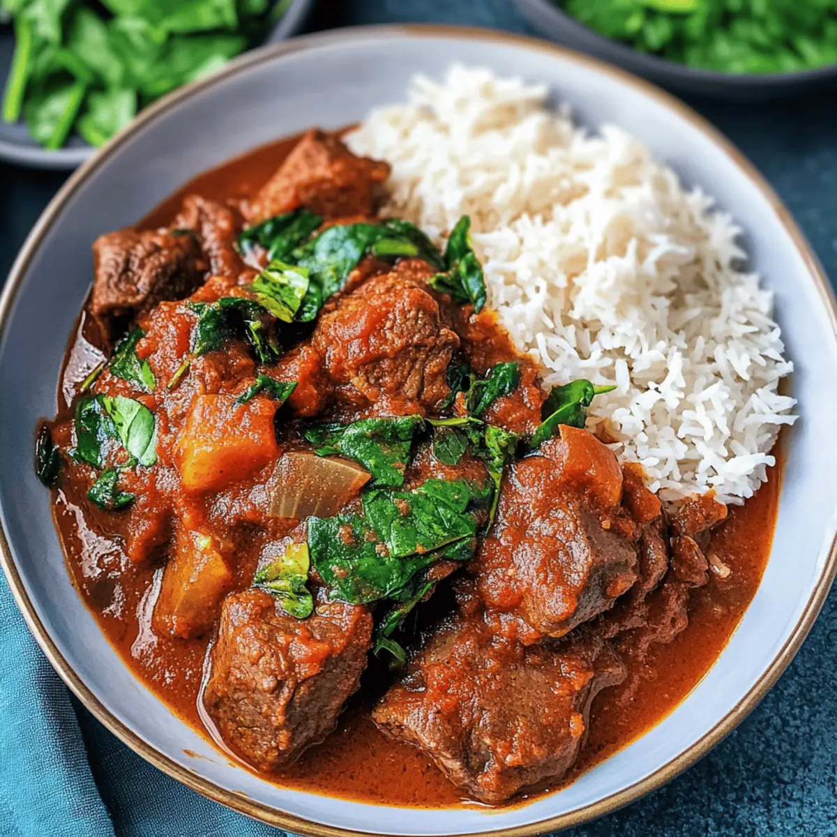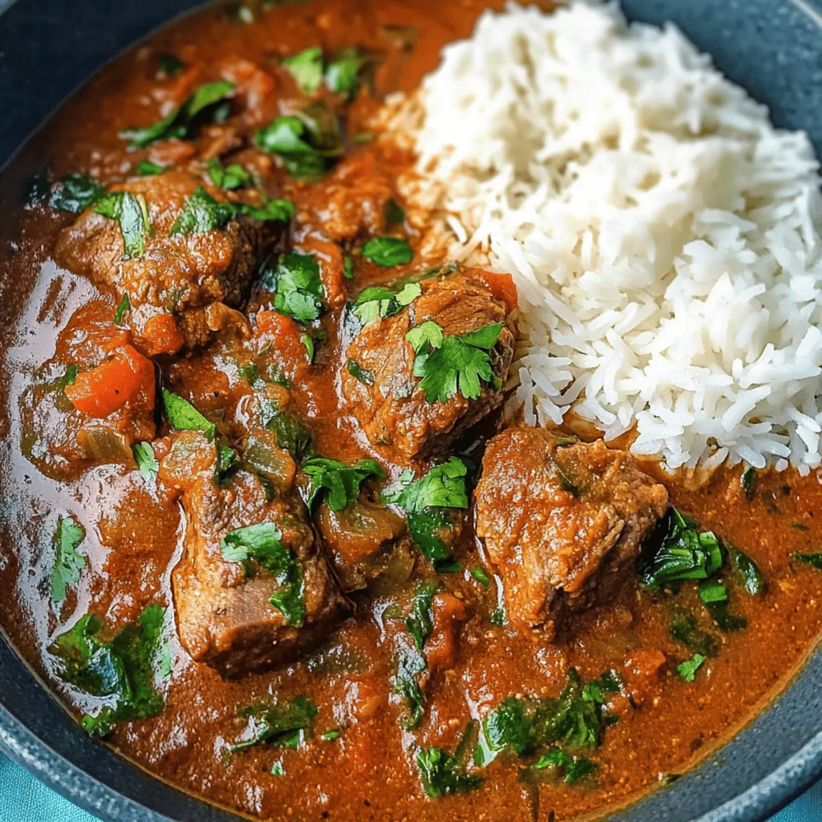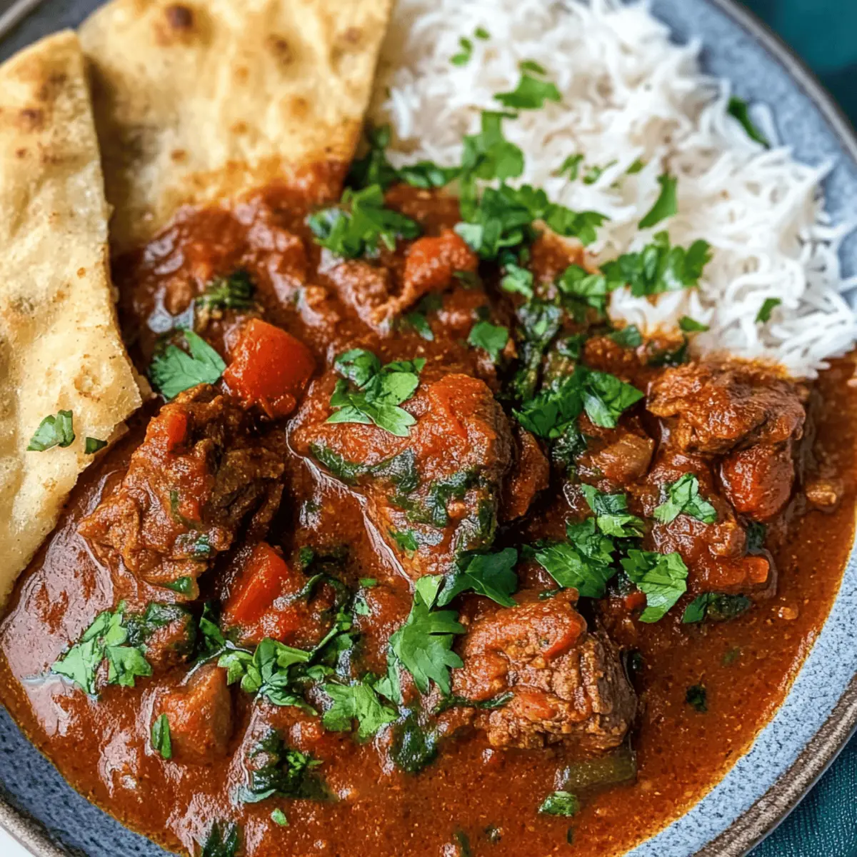 Die Vorfreude auf ein köstliches Abendessen ist unverkennbar, wenn der Duft von meinem Schmortopf Rindfleisch Curry durch die Küche zieht. Während die zarten Rindfleischstücke in einer aromatischen Tomatensauce vor sich hin köcheln, kann ich es kaum erwarten, das Ergebnis zu genießen. Dieser Slow Cooker-Klassiker ist nicht nur ein echter Publikumsliebling, sondern auch erstaunlich anpassungsfähig — von mild bis scharf, genau nach Ihrem Geschmack. Und das Beste daran? Es ist eine unkomplizierte Wahl für geschäftige Wochentage oder entspannte Familienessen, die man im Voraus zubereiten kann. Fühlen Sie sich bereit für ein wärmendes Gericht, das sowohl Herz als auch Gaumen erfreut? Schauen Sie weiter, um das Rezept zu entdecken! Warum werden Sie dieses Gericht lieben? Vielseitigkeit: Dieses Schmortopf Rindfleisch Curry bietet zahlreiche Anpassungsmöglichkeiten, von der Schärfe bis hin zu zusätzlichen Gemüsesorten, sodass es perfekt für jede Vorliebe ist. Einfachheit: Die Zubereitung ist kinderleicht und benötigt keine speziellen Kochkünste – einfach alle Zutaten in den Slow Cooker geben und entspannen! Aromatische Aromen: Der würzige Duft, der durch Ihre Küche zieht, ist unwiderstehlich und lässt alle Decke auf die köstliche Überraschung in Ihrem Schmortopf warten. Familienfreundlich: Egal, ob Sie es scharf oder mild mögen, dieses Gericht ist ein Hit bei Groß und Klein und ideal für gemeinsame Mahlzeiten. Zeitersparnis: Perfekt für hektische Wochentage, können Sie es am Morgen vorbereiten und dann nach Hause kommen, um mit einem fertigen, herzhaften Essen empfangen zu werden. Fühlen Sie sich inspiriert? Dann sehen Sie sich auch unser Rezept für leckeres Naan oder einfachen Reis an, die perfekt zu diesem Curry passen! Schmortopf Rindfleisch Curry Zutaten Für das Curry • Olivenöl – Fügt Reichtum hinzu und hilft, das Fleisch anzubraten. Ersetzen Sie es durch Pflanzenöl, wenn Sie möchten. • Rindfleisch (Braising Steak) – Garantiert zartes, geschmackvolles Fleisch beim langsamen Kochen. Kann durch Schmor- oder vegetarische Alternativen ersetzt werden. • Schalotten – Sorgt für subtile Süße und Tiefe; Zwiebeln sind ein geeigneter Ersatz. • Knoblauch – Verbessert den Geschmack; frisch ist ideal, jedoch kann auch Knoblauchpulver verwendet werden. • Frischer Ingwer – Bringt eine wärmere Würze; gemahlener Ingwer kann ebenfalls verwendet werden. • Chili-Flocken – Fügen Schärfe hinzu; reduzieren oder weglassen für eine mildere Variante. • Garam Masala und Currypulver – Schlüsselgewürze für authentischen Geschmack; können durch eine einzige Curry-Mischung ersetzt werden. • Meersalz und schwarzer Pfeffer – Unverzichtbar für die Würze; nach Geschmack anpassen. • Chopped Tomatoes (Dose) – Basis der Sauce für reichhaltigen Geschmack; frische Tomaten sind möglich, benötigen aber längere Kochzeit. • Tomatenmark – Verdickt die Sauce; kann durch zusätzliche Tomaten ersetzt oder weggelassen werden für eine dünnere Konsistenz. • Rinderbrühe (Brühe/Paste) – Intensiviert den Geschmack; als Abkürzung kann gekaufte Brühe verwendet werden. • Frischer Koriander – Bringt Frische; kann weggelassen werden, wenn nicht gewünscht. • Spinat – Fügt Nährstoffe und Farbe hinzu; Alternativen sind Grünkohl oder Mangold. Fühlen Sie sich bereit, sich in die Zubereitung Ihres eigenen Schmortopf Rindfleisch Currys zu wagen? Genießen Sie es, kreativ zu sein und die Aromen zu entdecken! Step-by-Step Instructions für Schmortopf Rindfleisch Curry Step 1: Slow Cooker vorbereiten Zuerst den Slow Cooker auf niedrige Temperatur vorheizen, damit Ihr Schmortopf Rindfleisch Curry gleichmäßig gekocht wird. Dies dauert etwa 10 Minuten. Bereiten Sie alle Zutaten vor, damit die Zubereitung später schnell vonstattengeht. Step 2: Rindfleisch anbraten In einer Pfanne etwas Olivenöl bei mittlerer Hitze erhitzen. Das Braising Steak für ungefähr 3 Minuten von allen Seiten anbraten, bis es goldbraun ist. Danach das Fleisch in den vorgeheizten Slow Cooker transferieren. Step 3: Aromatische Zutaten anbraten Im verbleibenden Öl in der Pfanne Schalotten, Knoblauch, Ingwer, Chili-Flocken, Garam Masala und Currypulver für 2 Minuten anbraten, bis die Schalotten glasig und duftend sind. Diese Mischung dann direkt über das Rindfleisch im Slow Cooker geben. Step 4: Sauce zubereiten Nun die gehackten Tomaten, das Tomatenmark und die Rinderbrühe in den Slow Cooker hinzufügen. Alles gut vermengen, damit sich die Aromen gleichmäßig verteilen und ein köstliches Schmortopf Rindfleisch Curry entsteht. Step 5: Kochen lassen Den Slow Cooker auf hoher Stufe für 4 Stunden oder auf niedriger Stufe für 8 Stunden einstellen. Während dieser Zeit wird das Rindfleisch zart und die Aromen vermischen sich wunderbar. Step 6: Spinat hinzufügen Vor dem Servieren den frischen Spinat in das Curry einrühren und kurz warten, bis er verwelkt. Dies dauert etwa 2-3 Minuten und verleiht dem Gericht zusätzliche Nährstoffe sowie Farbe. Step 7: Servieren Das fertige Schmortopf Rindfleisch Curry kann jetzt serviert werden. Genießen Sie es mit Beilagen wie Reis oder Naan, um ein rundum herzhaftes Mahl zu kreieren, das Ihre Familie begeistern wird. Expertentipps für Schmortopf Rindfleisch Curry • Fleisch anbraten: Durch das Anbraten des Rindfleischs erhält das Schmortopf Rindfleisch Curry eine tiefere Geschmacksnote, kann aber auch weggelassen werden, um Zeit zu sparen. • Würze anpassen: Variieren Sie die Schärfe, indem Sie mehr oder weniger Chili-Flocken hinzufügen. Probieren Sie frische Chilis für einen intensiveren Geschmack! • Für dickere Sauce: Um die Sauce zu verdicken, können Sie die letzten 45 Minuten den Deckel abnehmen oder eine Mischung aus Wasser und Maisstärke einrühren. • Hochwertige Tomaten: Wählen Sie gute Qualität bei den gehackten Tomaten, um zu verhindern, dass die Sauce wässrig wird – das sorgt für ein herzhaftes Er