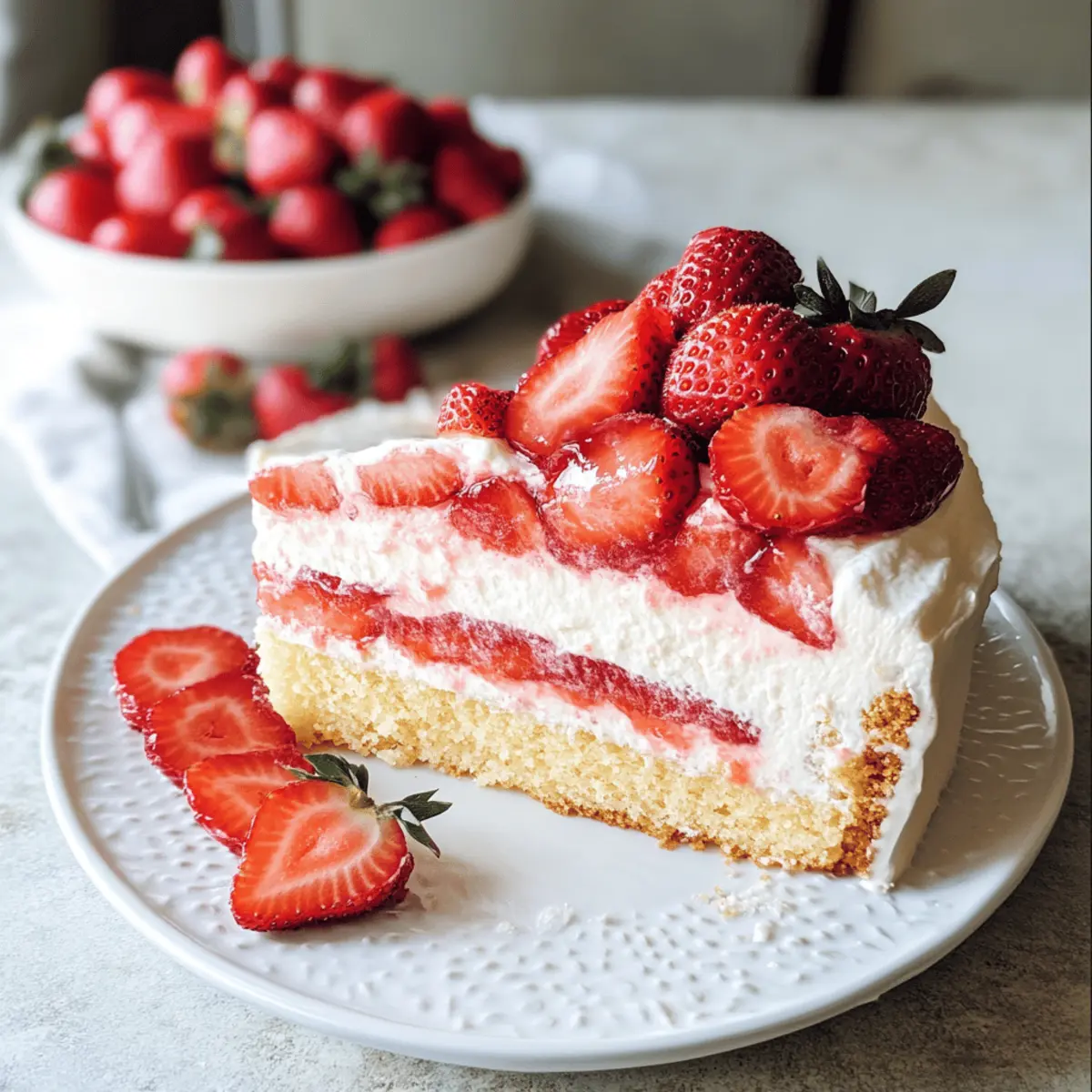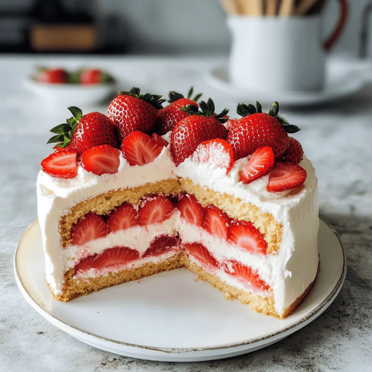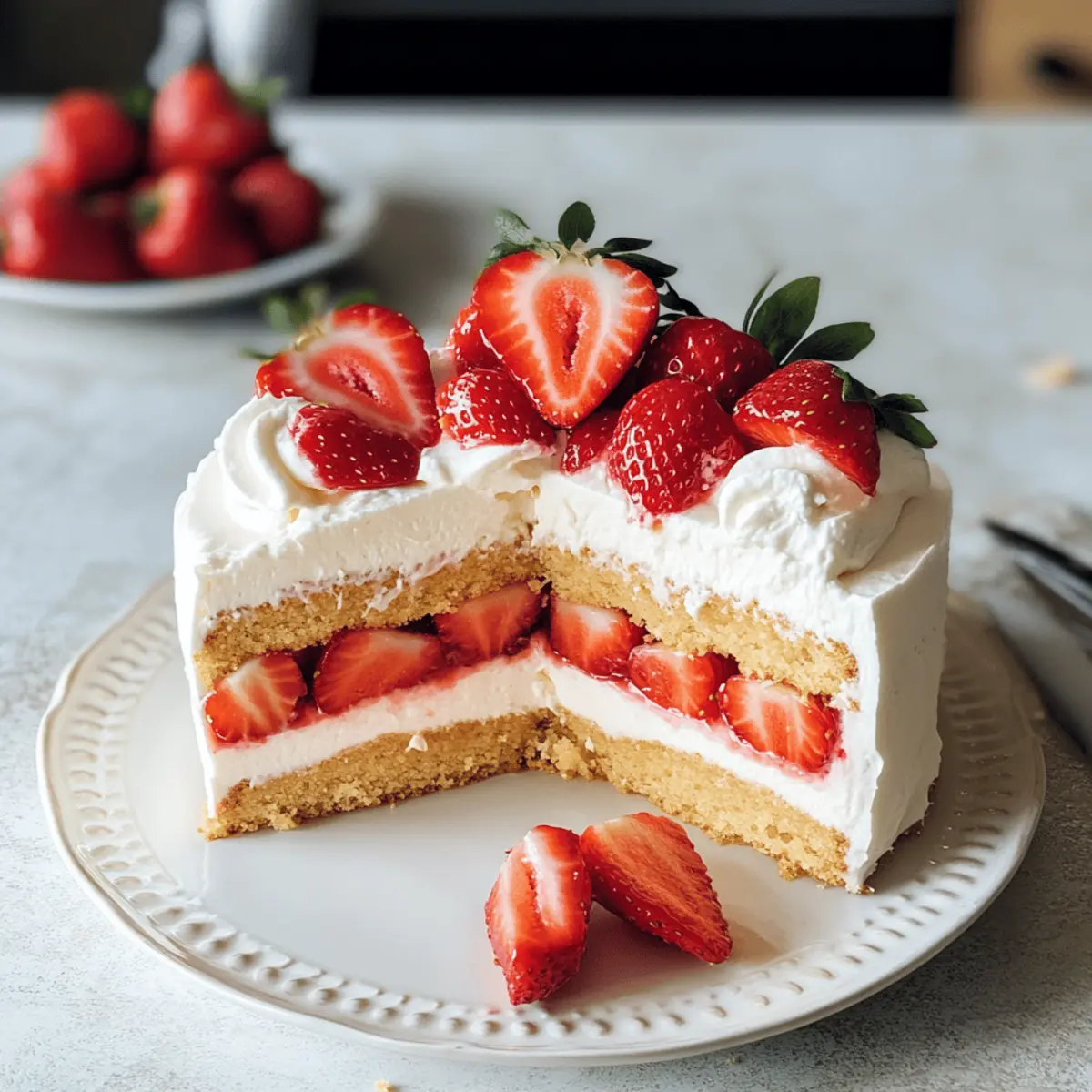 Die Sommerzeit bringt nicht nur strahlenden Sonnenschein, sondern auch das köstliche Aroma reifer Erdbeeren mit sich, das uns dazu einlädt, in die Küche zu gehen. Mein Rezept für den Quick Strawberry Cake with Sour Cream ist die perfekte Möglichkeit, diese süßen Früchte zur Geltung zu bringen. Mit einem unkomplizierten, saftigen Teig und einer cremigen Schmand-Toppingschicht ist dieser Erdbeerkuchen nicht nur ein wahrer Hingucker, sondern auch schnell zubereitet und ideal für jeden Anlass. Ob als erfrischendes Dessert beim Gartenfest oder als süßer Abschluss eines gemütlichen Abendessens, dieses Rezept wird sicher allen Gästen ein Lächeln ins Gesicht zaubern. Neugierig, wie einfach du diesen fruchtigen Genuss nach Hause holen kannst? Warum wirst du diesen Erdbeerkuchen lieben? Einfachheit pur: Die Zubereitung ist kinderleicht und benötigt nur wenige basale Backfähigkeiten, ideal auch für Koch-Neulinge. Fruchtige Frische: Die Kombination aus saftigen Erdbeeren und cremigem Schmand sorgt für einen erfrischenden Geschmack, der perfekt zu warmen Sommertagen passt. Schnelle Zubereitung: In nur etwa 25 Minuten ist der Kuchen im Ofen, was ihn zum perfekten Dessert für spontane Einladungen macht. Vielseitigkeit: Du kannst verschiedene Beeren verwenden oder eine Schicht Zitronencreme für einen zusätzlichen Kick hinzufügen. Crowd-Pleaser: Jeder liebt Erdbeeren, und dieser Kuchen ist ein garantierter Hit auf jeder Feier oder beim Kaffeeklatsch. Hol dir noch mehr leckere Ideen mit anderen frischen Obstkuchen auf unserem Blog! Schneller Erdbeerkuchen mit Schmand Zutaten Für den Teig Butter – sorgt für Reichtum und Feuchtigkeit; du kannst Margarine als milchfreie Option verwenden. Zucker – verleiht dem Kuchen Süße; ein Zuckeraustauschmittel kann für eine kalorienärmere Version benutzt werden. Eier – essenziell für Struktur und Feuchtigkeit; ersetze sie durch Flax-Eier (1 Esslöffel Leinsamen + 2,5 Esslöffel Wasser) für eine vegane Alternative. Mehl – bildet die Basis des Kuchens; verwende Allzweckmehl oder eine glutenfreie Mehlmischung für eine glutenfreie Version. Backpulver – hilft beim Aufgehen und sorgt für Leichtigkeit; stelle sicher, dass es frisch ist für beste Ergebnisse. Salz – hebt den Gesamteindruck des Geschmacks. Für das Topping Schlagsahne – gibt der Glasur Leichtigkeit und Reichhaltigkeit; verwende Kokoscreme für eine milchfreie Option. Schmand – sorgt für Cremigkeit und einen Hauch von Säure; kann durch griechischen Joghurt ersetzt werden, wenn nötig. Vanillezucker – bringt Geschmack in die Creme; ersetze ihn durch Vanilleextrakt (1 Teelöffel), falls nicht verfügbar. Frische Erdbeeren – bieten einen fruchtigen Belag; saisonale Beeren wie Himbeeren oder Heidelbeeren können ebenfalls verwendet werden. Roter Tortenguss – verleiht den Erdbeeren einen glänzenden Abschluss; für eine natürlichere Option kannst du einen hausgemachten Guss verwenden. Schritt-für-Schritt-Anleitung für Schneller Erdbeerkuchen mit Schmand Step 1: Ofen vorheizen und Backform vorbereiten Heize deinen Ofen auf 180 °C (Umluft) vor und fette eine Springform gründlich ein. Achte darauf, dass du die Form gleichmäßig einfettest, damit der Kuchen später gut herauskommt. Während der Ofen aufheizt, sammle alle Zutaten für den Schnellen Erdbeerkuchen mit Schmand, um den Zubereitungsprozess reibungslos zu gestalten. Step 2: Butter und Zucker cremig rühren In einer großen Rührschüssel die Zimmertemperatur-Butter und den Zucker zusammengeben. Schlage die Mischung mit einem Handmixer, bis sie leicht und fluffig ist. Dies dauert etwa 2-3 Minuten. Achte darauf, die Seiten der Schüssel abzukratzen, damit alles gut vermischt wird und du eine harmonische Creme erhältst. Step 3: Eier hinzufügen und gut vermischen Füge nun die Eier nacheinander zur Buttermischung hinzu. Schlage nach jedem Ei etwa 30 Sekunden, bis sie gut eingearbeitet sind. Dies sorgt für eine lockere und luftige Textur im Kuchen. Halte die Schüssel während des Mixens gut im Blick, um sicherzustellen, dass sich keine Klümpchen bilden. Step 4: Trockene Zutaten vermengen In einer separaten Schüssel Mehl, Backpulver und Salz gut vermengen. Diese Mischung ist wichtig für den perfekten Schnellen Erdbeerkuchen mit Schmand. Siebe die trockenen Zutaten langsam in die feuchten Zutaten und falte sie vorsichtig mit einem Teigschaber unter, bis alles gerade so vermischt ist. Vermeide Übermixen, damit der Kuchen schön zart bleibt. Step 5: Teig in die Backform füllen und backen Gieße den Teig gleichmäßig in die vorbereitete Springform und stelle ihn sofort in den vorgeheizten Ofen. Backe den Kuchen für etwa 25 Minuten oder bis ein Zahnstocher sauber herauskommt. Während der Kuchen backt, wird dein Küchenraum mit einem herrlichen Aroma erfüllt, das die Vorfreude steigert. Step 6: Kuchen abkühlen lassen Sobald der Kuchen fertig gebacken ist, nimm ihn aus dem Ofen und lasse ihn in der Form für etwa 10-15 Minuten abkühlen. Danach vorsichtig aus der Form lösen und auf ein Kuchengitter legen, um vollständig abzukühlen. Dies ist ein wichtiger Schritt, damit das Schmand-Topping nicht schmilzt, wenn es auf den warmen Kuchen gegeben wird. Step 7: Schmand-Topping zubereiten In einer sauberen Schüssel die Schlagsahne aufschlagen, bis steife Spitzen entstehen. In einer separaten Schüssel Schmand mit Vanillezucker glatt rühren. Füge die geschlagene Sahne langsam unter die Schmand-Mischung, bis alles gut vermischt ist. Das Topping sollte leicht und luftig sein, ideal für deinen Schnellen Erdbeerkuchen mit Schmand. Step 8: Topping auf den Kuchen auftragen Verteile das Schmand-Topping gleichmäßig auf dem abgekühlten Kuchen. Verwende einen Spatel oder einen Löffel, um die Creme bis an den Rand zu bringen und eine glatte Oberfläche zu schaffen. Achte darauf, dass die Schicht dick genug ist, um den Geschmack der Erdbeeren perfekt zu ergänzen. Step 9: Erdbeeren vorbereiten und anrichten Wa