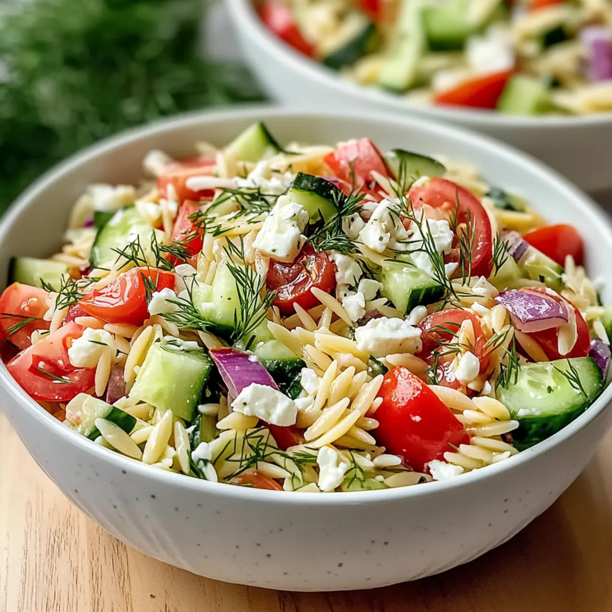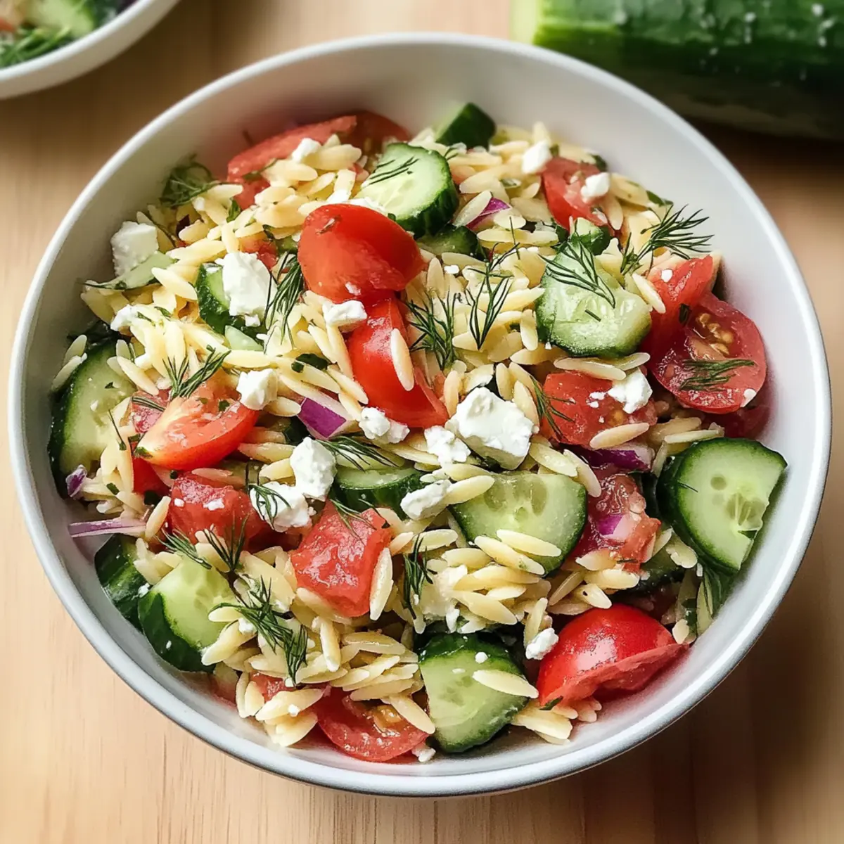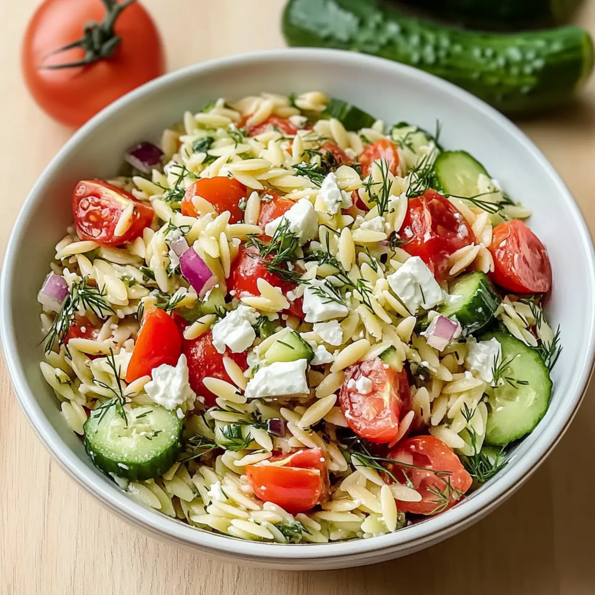 Die Farben des Mittelmeers sind nicht nur ein Fest für die Augen, sondern auch für die Geschmacksnerven! Mit einem schnellen mediterranen Orzo-Pastasalat holst du dir die Leichtigkeit des Sommers auf den Teller. Dieses Rezept ist perfekt für all jene, die unter Zeitdruck stehen, aber dennoch ein frisch zubereitetes Gericht genießen möchten. Er besteht aus al dente gekochtem Orzo, knackigen Tomaten, erfrischenden Gurken und würzigen Oliven, alles umhüllt von einer spritzigen Zitronenvinaigrette. Es ist nicht nur eine genussvolle Beilage für Grillfeste und Picknicks, sondern auch eine großartige Option für gesunde Mahlzeiten im Voraus. Welche Variationen wirst du ausprobieren? Warum wirst du dieses Rezept lieben? Einfachheit im Mittelpunkt: Dieser schnelle mediterrane Orzo-Pastasalat lässt sich mit minimalem Aufwand zubereiten und ist perfekt für Kochanfänger oder vielbeschäftigte Gourmets. Frische Zutaten: Mit sonnengereiften Tomaten, knackigen Gurken und herzhaften Oliven vereint der Salat das Beste der mediterranen Küche, um deine Sinne zu erfreuen. Vielseitig anpassbar: Experimentiere mit verschiedenen Zutaten wie Feta oder zarten Kichererbsen, um deinen ganz persönlichen Twist hinzuzufügen! Vielleicht möchtest du auch zusätzliche Gemüsesorten einfügen oder die Dressing-Zutaten aufpeppen. Einfache Vorbereitung: Ideal zum Vorbereiten und für spontane Grillabende – dieser Salat bleibt im Kühlschrank bis zu vier Tage frisch und die Aromen können wunderbar ziehen. Köstliche Sommerbeilage: Perfekt zu gegrilltem Fleisch oder als leichter Snack – dieser Salat sorgt garantiert für Begeisterung bei deinen Freunden und deiner Familie! Schneller mediterraner Orzo-Pastasalat Zutaten • Ideal für frische Sommergerichte! Für den Salat Orzo – die Basis des Salates, sorgt für Struktur; kann durch Vollkorn- oder Tri-Color-Orzo ersetzt werden, um mehr Faserstoffe oder visuelle Anziehungskraft zu bieten. Tomaten – bringen süße Saftigkeit und Frische; in 1,25 cm große Stücke gewürfelt für gleichmäßige Verteilung. Gurken – bieten knackigen Biss und Hydration; ebenso in gleichmäßige Stücke wie die Tomaten schneiden. Rote Zwiebel – verleiht Schärfe und Tiefe; fein gehackt (ca. 0,5 cm), um den Salat nicht zu überlagern. Oliven – bringen salzige und reichhaltige Noten; wähle kalamata oder grüne Oliven nach Belieben. Feta-Käse – sorgt für Cremigkeit und einen würzigen Geschmack; am besten frisch kurz vor dem Servieren hinzufügen, um die Textur zu bewahren. Frischer Dill – bringt aromatische kräuterige Noten; kann durch Petersilie ersetzt werden, wenn nicht verfügbar. Für das Dressing Olivenöl – dient als Basis für das Dressing und verstärkt den Geschmack; hochqualitatives, extra natives Olivenöl ist empfohlen. Zitronensaft – sorgt für Säure und balanciert die Aromen; frischer Saft ist gegenüber dem abgefüllten vorzuziehen, um mehr Frische zu erzielen. Oregano – verleiht eine mediterrane Kräuteressenz; getrockneter Oregano reicht aus, frischer kann jedoch ebenfalls verwendet werden. Knoblauchpulver – gibt eine subtile Würze, ohne die Intensität von frischem Knoblauch; kann nach Wunsch weggelassen werden. Salz/Pfeffer – essenziell zur Geschmacksverstärkung; nach Geschmack anpassen. Schritt-für-Schritt-Anleitung für Schneller mediterraner Orzo-Pastasalat Step 1: Gemüse vorbereiten Die Tomaten und Gurken in gleichmäßige Stücke von etwa 1,25 cm würfeln und die rote Zwiebel fein hacken (ca. 0,5 cm). Die Oliven, den Feta und den frischen Dill in separate Schalen abmessen. Dies sorgt für eine einfache und schnelle Zubereitung des Schnellen mediterranen Orzo-Pastasalats, während du das Gemüse später kombinierst. Step 2: Orzo kochen Einen großen Topf mit ausreichend gesalzenem Wasser zum Kochen bringen. Den Orzo hinzufügen und für etwa 8-10 Minuten kochen, bis er al dente ist. Regelmäßig umrühren, damit der Orzo nicht kleben bleibt. Nach dem Kochen ist die Pasta perfekt für den Salat. Step 3: Dressing zubereiten In einer Schüssel das Olivenöl, den frisch gepressten Zitronensaft, Oregano, Knoblauchpulver, Salz und Pfeffer gut vermischen. Mit einem Schneebesen kräftig umrühren, bis alle Zutaten gut verbunden sind. Dieses Dressing wird dem Schnellen mediterranen Orzo-Pastasalat eine spritzige Note verleihen und die Aromen perfekt harmonisieren. Step 4: Orzo abkühlen lassen Nach dem Kochen den Orzo in ein Sieb abgießen und ihn unter kaltem Wasser abspülen, um den Garprozess zu stoppen. Den abgekühlten Orzo in eine große Schüssel umfüllen und darauf achten, dass er vollständig abgekühlt ist, bevor die restlichen Zutaten hinzugefügt werden. Step 5: Salat kombinieren Die gewürfelten Tomaten, Gurken, rote Zwiebel, Oliven und den Feta-Käse zum abgekühlten Orzo in die große Schüssel geben. Den Dill ebenfalls hinzufügen und das vorbereitete Dressing darüberträufeln. Alles vorsichtig vermengen, bis die Zutaten gleichmäßig verteilt sind und gut mit dem Dressing überzogen sind. Step 6: Kühlen Den Schnellen mediterranen Orzo-Pastasalat für mindestens 30 Minuten in den Kühlschrank stellen, damit die Aromen gut durchziehen und der Salat schön kühl serviert werden kann. Dies verbessert den Geschmack und sorgt für ein erfrischendes Genusserlebnis. Was passt zu Schnellem mediterranen Orzo-Pastasalat? Egal, ob du ein BBQ planst oder einfach nur ein leichtes Abendessen zubereiten möchtest – diese Kombinationen machen jede Mahlzeit unvergesslich. Gegrillte Hähnchenbrust: Dazu passt wunderbar, da das zarte Fleisch dem erfrischenden Salat eine herzhafte Note verleiht. Die Kombination aus zarten Aromen wird deine Gäste beeindrucken. Zitronen-Tzatziki: Dieses cremige Joghurt-Dressing mit Minze und Knoblauch bietet einen tollen Kontrast zur Frische des Salats und sorgt für eine erfrischende Abkühlung an heißen Tagen. Kühle Mandelblätter könnten ebenfalls hineingestreut werden! Gebackene Falafel: Die