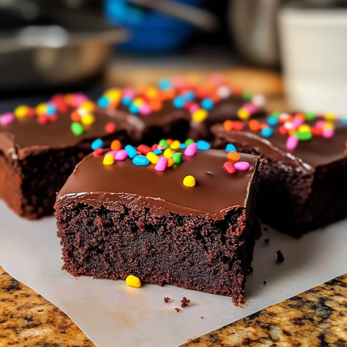 Es gibt Momente, in denen der Duft von frisch gebackenem Kuchen uns in Erinnerungen schwelgen lässt. Ich erinnere mich an die bunten Original Cosmic Brownies von Little Debbie – diese kleinen Schätze mit ihrer herrlichen Schokoladenglasur. Diese homemade Schokoladen-Ganache-Brownies sind meine Neuinterpretation dieses Klassikers. Fudgy und unwiderstehlich, mit einer glänzenden Schokoladenglasur darüber, sind sie perfekt für jede Gartenparty oder gemütliche Nachmittage mit Freunden. Sie lassen sich schnell zubereiten und du kannst sie ganz nach deinem Geschmack verfeinern – vielleicht mit ein paar Mini-Schokoladenstückchen oder knackigen Nüssen? Bist du bereit, diese nostalgische Leckerei selbst zu zaubern? Warum werden Sie diese Brownies lieben? Nostalgischer Genuss: Dank ihrer inspirierenden Wurzeln in den berühmten Cosmic Brownies bringen diese Schokoladen-Ganache-Brownies unweigerlich Kindheitserinnerungen zurück. Einfach zu machen: Mit nur wenigen Zutaten und ohne komplizierte Schritte sind sie perfekt für Backanfänger und Profis gleichermaßen. Fudgy Perfektion: Der dichte, fudgy Teig kombiniert mit der glänzenden Ganache sorgt für ein sinnliches Geschmackserlebnis. Vielseitigkeit: Ob mit Mini-Schokoladenstückchen oder Nüssen – jede Variante bringt eine persönliche Note ein. Crowd-Pleaser: Egal ob auf der nächsten Gartenparty oder beim Familiennachmittag, diese Brownies ziehen alle Blicke auf sich. Schnell zubereitet: Mit nur 25-30 Minuten Backzeit sind diese Leckerbissen im Handumdrehen bereit. Schokoladen-Ganache-Zutaten • Bereite dich darauf vor, in die Welt der fudgy Brownies einzutauchen! Für den Brownieteig: Ungesalzene Butter – sorgt für Reichtum und Feuchtigkeit. Verwende gesalzene Butter, wenn du keine ungesalzene zur Hand hast; reduziere dann das zusätzliche Salz. Zucker – bringt Süße und Struktur. Brauner Zucker kann die Feuchtigkeit und den Geschmack intensivieren. Brauner Zucker – sorgt für eine chewy Textur und zusätzliche Geschmacksnuancen. Kann durch mehr weißen Zucker ersetzt werden, verändert jedoch den Geschmack. Große Eier – binden die Zutaten und geben Struktur. Verwende Eier in Zimmertemperatur für das beste Ergebnis. Vanille-Extrakt – verleiht einen reichen Vanillegeschmack. Kann durch reinen Vanilleextrakt ersetzt werden. Kakaopulver (Dutch-Processed) – verstärkt den Schokoladengeschmack und sorgt für eine dunkle Farbe. Reguläres Kakaopulver ist ein Ersatz, ändert aber den Geschmack. Salz – balanciert die Süße und intensiviert den Schokoladengeschmack. Kann weggelassen werden, wenn gesalzene Butter verwendet wird. Allzweckmehl – liefert die Struktur der Brownies. Glutenfreies Mehl kann für eine glutenfreie Variante verwendet werden. Für die Schokoladenganache: Halb-gesüßte Schokolade – ist entscheidend für die Ganache und sorgt für ein reichhaltiges Schokoladenaroma. Verwende Zartbitterschokolade für einen stärkeren Geschmack. Schlagsahne – kreiert eine glatte Schokoladenganache. Kokoscreme kann für eine milchfreie Option verwendet werden. Für die Dekoration: Regenbogen-Schokoladenstückchen – fügen Farbe und Spaß hinzu. Kann durch Mini-M&Ms ersetzt oder ganz weggelassen werden. Mit diesen Zutaten in der Hand bist du bereit, deine eigenen Schokoladen-Ganache-Brownies zu backen und das fudgy Glück zu genießen! Schritt-für-Schritt-Anleitung für Schokoladen-Ganache-Brownies Step 1: Backform vorbereiten Heize deinen Ofen auf 175 °C vor. Fette eine 23×23 cm große Backform ein und lege den Boden mit Backpapier aus, damit die Brownies später leicht herausgenommen werden können. Achte darauf, genügend Überhang zu lassen, um das Herausheben zu erleichtern. Step 2: Butter schmelzen Schmelze die ungesalzene Butter in einem kleinen Topf bei niedriger Hitze. Rühre gelegentlich um, bis die Butter vollständig geschmolzen ist. Nimm den Topf vom Herd und lasse die Mischung etwas abkühlen, damit sie nicht die Eier kocht, wenn diese später hinzugefügt werden. Step 3: Butter und Zucker vermengen Gibt die geschmolzene Butter in eine große Rührschüssel und füge den weißen und braunen Zucker hinzu. Verrühre die Mischung mit einem Schneebesen, bis sie eine homogene, glatte Konsistenz erreicht. Dies sollte etwa 1-2 Minuten dauern, damit die Zucker gut in die Butter eingearbeitet werden. Step 4: Eier und Vanille hinzufügen Schlage die großen Eier nacheinander in die Zuckermischung ein und rühre nach jedem Ei gut um. Füge anschließend den Vanille-Extrakt hinzu und verrühre alles, bis die Masse cremig und gut kombiniert ist. Achte darauf, dass keine Klümpchen mehr sichtbar sind. Step 5: Trockene Zutaten einarbeiten Siebe das Kakaopulver, das Allzweckmehl und das Salz direkt in die Schüssel mit der feuchten Mischung. Verwende einen Spatel, um die trockenen Zutaten vorsichtig unterzuheben, bis sie gerade so verbunden sind. Übermische die Masse nicht, um die fudgy Textur der Schokoladen-Ganache-Brownies zu gewährleisten. Step 6: Teig in die Form geben Gib den fertigen Brownieteig gleichmäßig in die vorbereitete Backform. Verteile den Teig mit einem Spatel in die Ecken und glätte die Oberfläche, um sicherzustellen, dass die Brownies während des Backens gleichmäßig aufgehen. Step 7: Backen Backe die Brownies im vorgeheizten Ofen für 25-30 Minuten. Die Brownies sind fertig, wenn ein Zahnstocher in der Mitte herauskommt und dabei noch ein paar feuchte Krümel hat. Dies sorgt für die perfekte fudgy Textur. Step 8: Abkühlen lassen Lasse die frisch gebackenen Brownies in der Form auf einem Rost vollständig abkühlen. Dies dauert etwa 1 bis 2 Stunden. Wenn sie zu warm sind, kann die Schokoladenganache später nicht richtig haften. Step 9: Ganache zubereiten In der Zwischenzeit erhitze die Schlagsahne in einem kleinen Topf, bis sie dampft, aber nicht kocht. Gieße die heiße Sahne über die in kleine Stücke geschnittene halbgesüßte Schokolade in einer Schüssel. Rühre die Misc