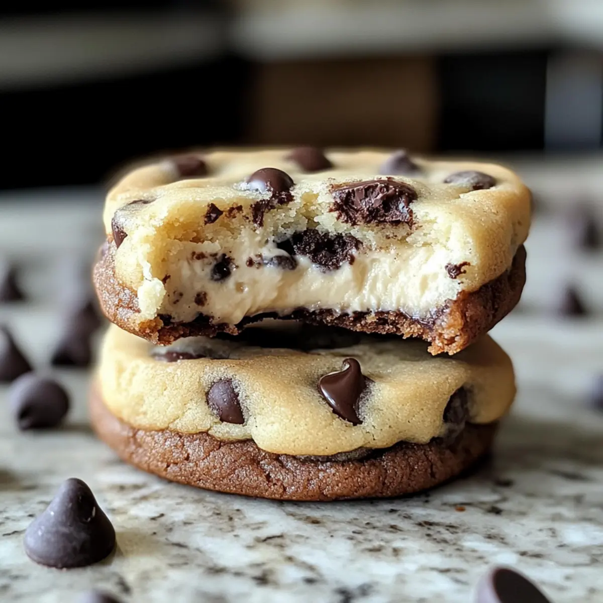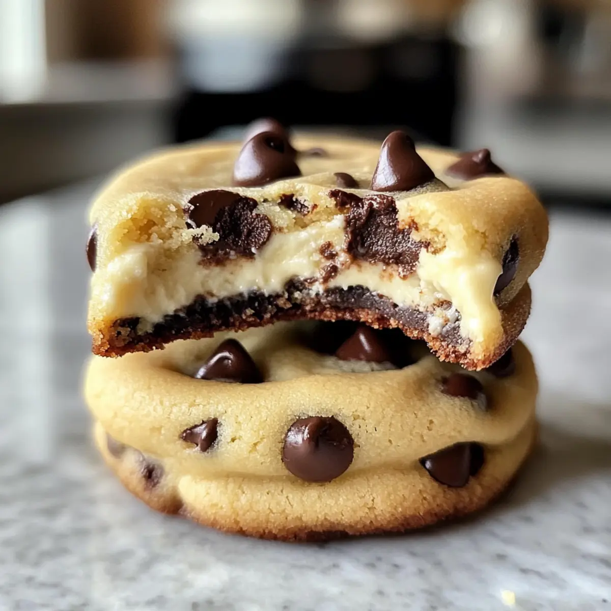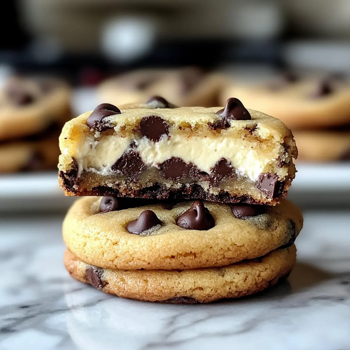 Während ich meine Schublade mit Backutensilien durchstöberte, stieß ich auf einen alten Zettel mit meiner Lieblingsrezeptur für Schokoladenstückchen-Käsekuchen-Kekse. Diese kleinen Leckerbissen sind eine wahre Geschmacksexplosion, die die cremige Textur eines Käsekuchens mit dem süßen, schokoladigen Genuss klassischer Kekse vereint. Was ich an diesem Rezept wirklich liebe: Es ist nicht nur einfach zuzubereiten, sondern auch perfekt für alle Gelegenheiten – sei es ein entspanntes Kaffeekränzchen oder eine gemütliche Feier mit Freunden. Zudem werden sie in der Heißluftfritteuse zum hypnotisierenden Genuss, der mit einem Hauch von Komfort neu interpretiert wird. Bereit, meine köstlichen Kekse nachzubacken? Lasst uns gemeinsam einen Blick auf das Rezept werfen! Warum wirst du diese Kekse lieben? Unschlagbare Kombination: Die Mischung aus cremigem Käsekuchen und Schokoladenstückchen macht jeden Biss zu einem Erlebnis! Einfachheit pur: Mit nur wenigen grundlegenden Zutaten ist die Zubereitung dieser Kekse ein Kinderspiel, sogar für Backanfänger. Vielseitigkeit: Ob als Snack für unterwegs oder als süßes Geschenk für Freunde, diese Kekse passen einfach immer! Du kannst sie auch mit einer anderen Füllung oder zusätzlichen Zutaten wie Nüssen variieren. Zeitersparnis: Dank der Heißluftfritteuse sind sie schnell gemacht und in weniger als 15 Minuten verzehrbereit! Beliebte Wahl: Diese Kekse sind ein Hit bei Kindern und Erwachsenen, perfekt, um bei jeder Feier für Begeisterung zu sorgen! Schokoladenstückchen-Käsekuchen-Kekse Zutaten • Entdecke die köstlichen Zutaten für diese himmlischen Kekse! Für den Teig Ungesalzene Butter – sorgt für Reichtum und Feuchtigkeit. Hinweis: Verwende weiche Butter bei Zimmertemperatur für die besten Ergebnisse; Margarine sollte vermieden werden. Brauner Zucker – fügt Tiefe und Kauen hinzu. Hinweis: Heller brauner Zucker wird bevorzugt, dunkler gibt einen stärkeren Geschmack. Zucker – sorgt für eine ausgewogene Süße und hilft, eine goldene Kruste zu erzielen. Ei – bindet die Zutaten und hilft den Keksen beim Backen, zu puffen. Vanilleextrakt – verbessert den Geschmack; ein hochwertiger Extrakt wird empfohlen. Allzweckmehl – stellt sicher, dass die Kekse weich und nicht kuchenartig bleiben. Hinweis: Mit einem Löffel und einer Ebene abmessen fürpräzise Ergebnisse. Backsoda – sorgt für Auftrieb und balanciert die Säure der Füllung. Salz – verstärkt die Süße; ein entscheidendes Element für die Geschmacksbalance. Mini-Schokoladenstückchen – sorgt für ein ausgewogenes Schokoladenerlebnis in jedem Biss. Für die Füllung Frischkäse – dient als cremige Füllung mit einem Hauch von Säure; verwende ihn weich für einfacheres Mischen. Puderzucker – Süße für die Käsekuchenfüllung; lässt sich gut für eine glatte Textur vermengen. Schritt-für-Schritt-Anleitung für Schokoladenstückchen-Käsekuchen-Kekse Step 1: Ofen vorheizen Heize die Heißluftfritteuse auf 180 °C vor. Dies dauert normalerweise etwa 5 Minuten. Wenn du keinen Heißluftfritteusen hast, stelle den Ofen auf 350°F ein. Ein vorgeheizter Ofen sorgt dafür, dass die Schokoladenstückchen-Käsekuchen-Kekse gleichmäßig gebacken werden und die perfekte Konsistenz erreichen. Step 2: Butter und Zucker cremig schlagen In einer großen Schüssel die weiche ungesalzene Butter mit dem braunen Zucker und dem weißen Zucker vermengen. Mit einem Handmixer oder einem Holzlöffel 2–3 Minuten lang schlagen, bis die Mischung fluffig, aber nicht zu schaumig ist. Diese cremige Basis ist der Schlüssel zu den köstlichen Schokoladenstückchen-Käsekuchen-Keksen. Step 3: Ei und Vanille hinzufügen Incorporiere das Ei und den Vanilleextrakt in die cremige Butter-Zucker-Mischung. Rühre, bis alles nur gerade so vermischt ist, damit die Keksmasse nicht übermixiert wird. Dieser Schritt verbindet die Aromen und sorgt für eine gelungene Textur in den Keksen. Step 4: Trockenzutaten vermengen In einer separaten Schüssel das Allzweckmehl, Backnatron und Salz vermischen. Diese trockenen Zutaten mit einem Schneebesen gut durchmischen, um Klumpen zu entfernen. Danach die Mischung nach und nach in die feuchten Zutaten einarbeiten, bis sie gerade gut vermengt sind. So bereitest du die perfekte Grundlage für die Schokoladenstückchen-Käsekuchen-Kekse. Step 5: Schokoladenstückchen unterheben Falte die Mini-Schokoladenstückchen vorsichtig unter den Teig, bis sie gleichmäßig verteilt sind. Dieser Schritt ist essentiell, damit du in jedem Biss die köstlichen, schokoladigen Aromen genießen kannst. Achte darauf, den Teig nicht zu überarbeiten, um zähe Kekse zu vermeiden. Step 6: Käsekuchenfüllung zubereiten In einer kleinen Schüssel den weichen Frischkäse mit dem Puderzucker verrühren, bis die Mischung glatt und cremig ist. Dies kann 2–3 Minuten dauern. Die Käsekuchenfüllung sollte eine angenehme, gleichmäßige Konsistenz haben, damit sie in den Keksen gut in Kombination mit dem Teig funktioniert. Step 7: Kekse formen und füllen Nehme einen Esslöffel Keks-Teig, forme ihn zu einer flachen Scheibe und gib einen Löffel der Käsekuchenfüllung in die Mitte. Decke die Füllung mit etwas mehr Teig ab und forme einen Keks. Achte darauf, dass die Füllung vollständig eingeschlossen ist, um ein Auslaufen während des Backens zu vermeiden. Step 8: Backen der Kekse Lege die Kekse in die Heißluftfritteuse oder auf das Backblech und backe sie 10–12 Minuten lang. Achte darauf, dass die Ränder der Kekse fest sind, während die Mitte noch hell bleibt. Auf diese Weise erhalten die Schokoladenstückchen-Käsekuchen-Kekse die perfekt weiche Konsistenz, die sie so unwiderstehlich macht. Step 9: Abkühlen lassen Nehme die Kekse aus der Heißluftfritteuse und lasse sie auf einem Kuchengitter etwa 5 Minuten abkühlen. Dies hilft den Keksen, ihre Form zu behalten und die Aromen zu festigen. Vor dem Servieren lasse sie weiter auskühlen, damit sich die Aromen richti