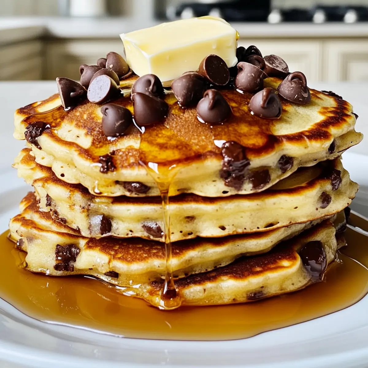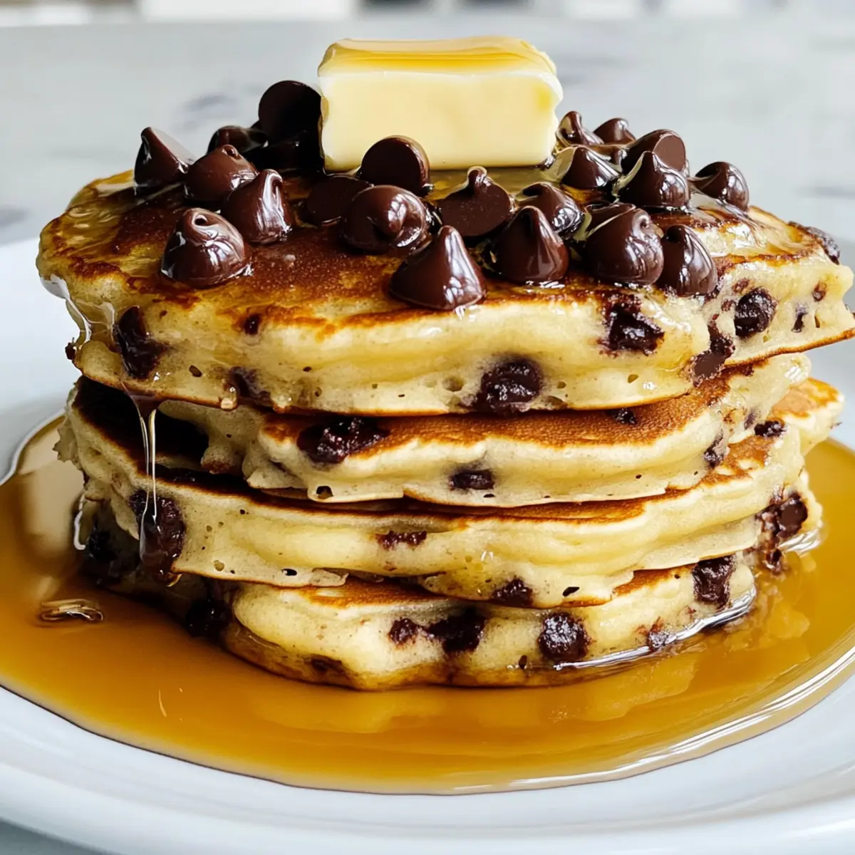Es gibt Momente, die man mit einem köstlichen Frühstücksgenuss beginnen sollte. Stellen Sie sich vor, ein Teller voller fluffiger Schokoladenstückchen-Pfannkuchen wird vor Ihnen serviert, die warm und einladend duften. Dieses Rezept für Schokoladenstückchen-Pfannkuchen verwandelt jedes Wochenende in ein wahres Diner-Erlebnis und zaubert Ihnen ein Lächeln ins Gesicht. Ganz gleich, ob Sie ein schnelles Frühstück für die Familie zubereiten oder einen besonderen Anlass feiern möchten, diese Pfannkuchen sind nicht nur einfach zuzubereiten, sondern auch ein wahrhaftiger Genuss für die Sinne. Der zarte Biss und die schmelzenden Schokoladenstückchen machen diese Leckerei unwiderstehlich. Sind Sie bereit, Ihr Frühstück auf die nächste Stufe zu heben? Lassen Sie uns gemeinsam in die Welt der Schokoladenstückchen-Pfannkuchen eintauchen! Warum lieben alle Schokoladenstückchen-Pfannkuchen? Verführung auf dem Teller: Diese Pfannkuchen sind nicht nur fluffig, sondern auch unglaublich köstlich, dank der schmelzenden Schokoladenstückchen, die jedes Biss zu einem Erlebnis machen. Einfache Zubereitung: Mit nur wenigen Zutaten und praktischen Tipps, wie dem Ruhenlassen des Teigs, gelingen sie mühelos. Familienfreundlich: Ideal für ein geselliges Frühstück mit der Familie, das garantiert für strahlende Gesichter sorgt. Vielseitig: Sie können das Rezept ganz nach Ihrem Geschmack anpassen, zum Beispiel mit frischen Früchten oder Nüssen. Zeitersparnis: Perfekt, um auch an hektischen Morgen etwas Besonderes zu zaubern. Werden Sie kreativ und verwöhnen Sie Ihre Liebsten mit diesen unwiderstehlichen Schokoladenstückchen-Pfannkuchen! Schokoladenstückchen-Pfannkuchen Zutaten • Für den Teig: Ungesalzene Butter – sorgt für Reichhaltigkeit und Feuchtigkeit; verwenden Sie geklärte Butter für einen nussigen Geschmack. Eier (groß, Zimmertemperatur) – verleihen dem Teig Struktur und Stabilität; achten Sie darauf, dass sie Zimmertemperatur haben, um gut eingearbeitet zu werden. Vollmilch – bietet Feuchtigkeit und eine cremige Textur; ersetzen Sie die Milch durch Mandelmilch für eine milchfreie Variante. Weißmehl (240 g) – ist die Hauptstrukturkomponente; Vollkornmehl kann für eine herzhaftere Pfannkuchen-Variante verwendet werden. Zucker (2 EL + 2 TL) – süßt die Pfannkuchen; brauner Zucker kann einen leichten Karamellgeschmack hinzufügen. Backpulver (1 1/4 TL) – sorgt für die fluffige Konsistenz; Achten Sie auf Frische für einen optimalen Auftrieb. Küchensalz (3/4 TL) – verstärkt den Geschmack; feines Salz kann bei Bedarf substituiert werden. Halbdunkle Schokoladenstückchen (170 g) – bietet Süße und bringt den schmelzenden Genuss; probieren Sie Stücke oder Vollmilch-Schokolade für unterschiedliche Geschmacksrichtungen. • Für das Servieren: Ahornsirup – um die Pfannkuchen zu servieren und zusätzliche Süße und Feuchtigkeit hinzuzufügen. Entdecken Sie, wie diese Schokoladenstückchen-Pfannkuchen Zuhause zum Lieblingsrezept für das Frühstück werden können! Schritt-für-Schritt-Anleitung für Schokoladenstückchen-Pfannkuchen Step 1: Butter schmelzen Zuerst schmelzen Sie 6 Esslöffel ungesalzene Butter in einem kleinen Topf bei niedriger Hitze. Lassen Sie die geschmolzene Butter anschließend leicht abkühlen, während Sie die nächsten Schritte vorbereiten. Achten Sie darauf, dass die Butter nicht bräunt, damit der Geschmack der Schokoladenstückchen-Pfannkuchen bewahrt bleibt. Step 2: Nasse Zutaten vorbereiten In einer großen Schüssel verquirlen Sie die Zimmertemperatur Eier mit der ganzen Milch und der leicht abgekühlten geschmolzenen Butter. Rühren Sie gründlich, bis alles gut vermischt ist und eine homogene Mischung entsteht. Diese nassen Zutaten bilden die Grundlage für Ihren luftigen Pfannkuchenteig. Step 3: Trockene Zutaten mischen In einer separaten Schüssel kombinieren Sie das Mehl, den Zucker, das Backpulver und das Küchensalz. Mischen Sie die trockenen Zutaten gründlich, um sicherzustellen, dass das Backpulver gleichmäßig verteilt ist. Diese Mischung sorgt dafür, dass Ihre Schokoladenstückchen-Pfannkuchen schön hoch und fluffig werden. Step 4: Teig verbinden Gießen Sie die nassen Zutaten in die Schüssel mit den trockenen Zutaten. Rühren Sie vorsichtig, bis sich die Zutaten gerade so vermischen; ein paar Klumpen sind in Ordnung, um die Pfannkuchen leicht und locker zu halten. Lassen Sie den Teig 5-10 Minuten ruhen, um die Aromen zu entfalten und die Textur zu verbessern. Step 5: Pfanne vorbereiten Erhitzen Sie eine antihaftbeschichtete Pfanne bei mittlerer Hitze. Fügen Sie eine kleine Menge Butter hinzu, um die Pfanne leicht zu beschichten, und warten Sie, bis sie geschmolzen ist. Die Hitze sollte so eingestellt sein, dass Sie die perfekte goldbraune Kruste auf Ihren Schokoladenstückchen-Pfannkuchen erzielen können. Step 6: Pfannkuchen backen Spoon Sie 1/4 Tasse des Teigs in die heiße Pfanne und streuen Sie eine Handvoll Schokoladenstückchen auf die Oberfläche. Kochen Sie die Pfannkuchen etwa 2 Minuten lang, bis Bläschen an der Oberfläche erscheinen. Achten Sie darauf, dass die Ränder fest sind, bevor Sie die Pfannkuchen vorsichtig wenden. Step 7: Wenden und fertigstellen Wenden Sie die Pfannkuchen und kochen Sie sie für weitere 1-2 Minuten auf der anderen Seite, bis sie goldbraun sind. Die Pfannkuchen sollten fluffig und perfekt durchgegart sein. Nehmen Sie sie aus der Pfanne und legen Sie sie auf einen Teller, während Sie den Rest des Teigs backen. Step 8: Servieren Servieren Sie Ihre köstlichen Schokoladenstückchen-Pfannkuchen warm, angehäuft auf einem Teller, und garnieren Sie sie mit einem Stück Butter und einem großzügigen Spritzer Ahornsirup. Fügen Sie bei Bedarf frische Beeren oder einen Hauch von Puderzucker hinzu. Genießen Sie Ihr luxuriöses Frühstück! Schokoladenstückchen-Pfannkuchen Variationen Entdecken Sie die zahlreichen Möglichkeiten, Ihre Schokoladenstückchen-Pfannkuchen nach 