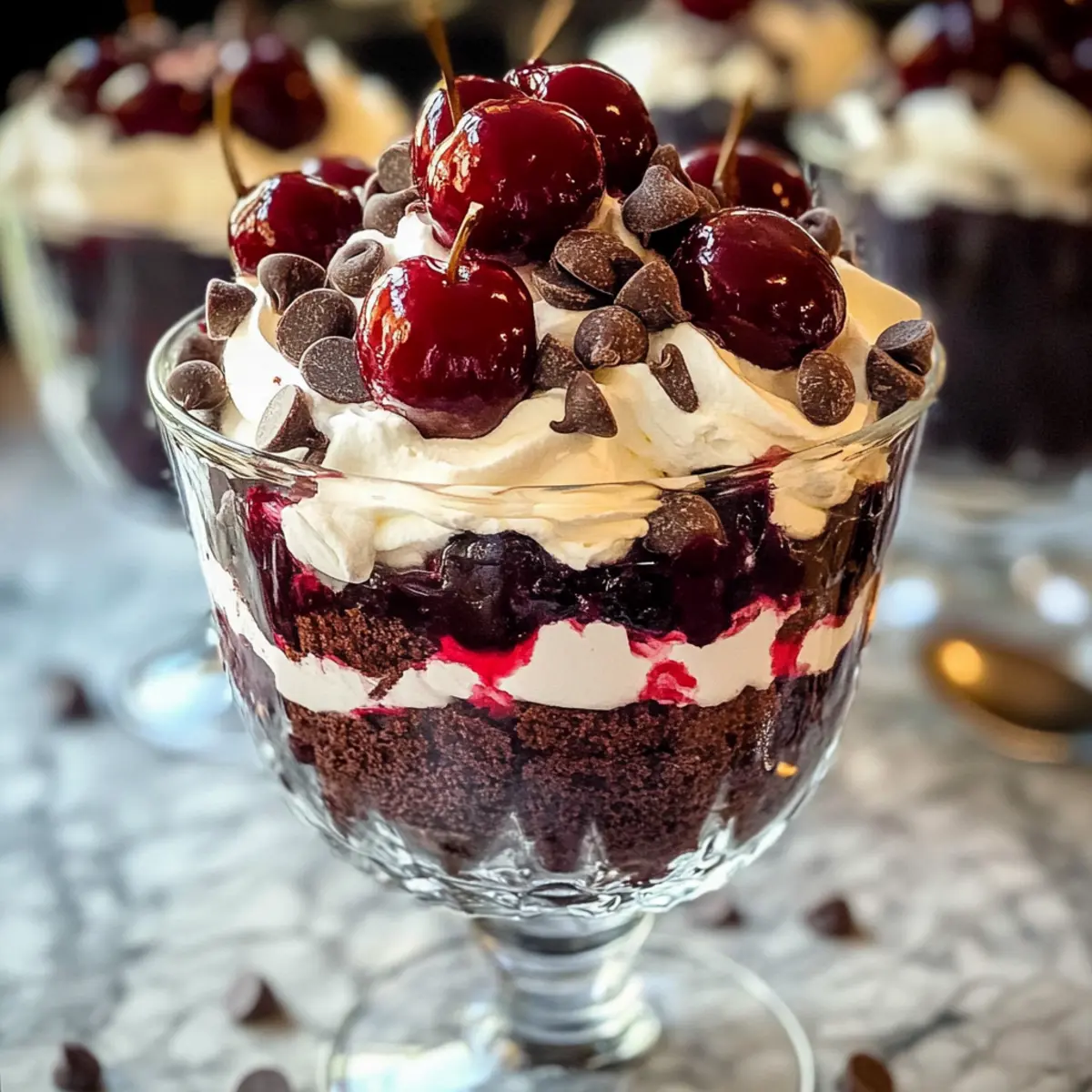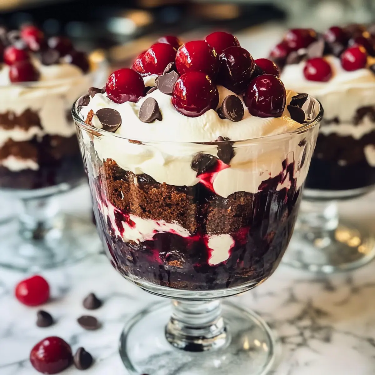 Ich kann es fast schmecken – die süße Vorfreude auf die Feiertage! Dieses Jahr habe ich etwas ganz Besonderes für euch: eine verführerische Schwarzwälder Trifle für Weihnachten. Sie vereint den klassischen, reichhaltigen Schokoladenkuchen mit saftigen dunklen Kirschen und leichtem, fluffigem Vanille-Sahne-Topping. Einfach zuzubereiten, ist dieses Dessert der perfekte Eyecatcher für eure Festtafel und sorgt garantiert für Begeisterung bei Familie und Freunden. Darüber hinaus ist es eine wunderbare Möglichkeit, überreife Kirschen zu verwerten und gleichzeitig ein Stückchen Heimat nach Hause zu bringen. Seid ihr bereit, euch in Schichten aus Genuss zu stürzen? Warum ist dieses Rezept so besonders? Leichtigkeit: Die Zubereitung dieser Schwarzwälder Trifle ist kinderleicht und erfordert keine besonderen Backkünste. Vielseitige Anpassungsmöglichkeiten: Ihr könnt die Kirschen durch saisonale Beeren ersetzen oder mit Schokoladenspänen für eine edlere Note abschmecken. Harmonischer Geschmack: Die Kombination aus reichhaltigem Schokoladenkuchen, süßen Kirschen und leichter Vanille-Sahne sorgt für ein Geschmackserlebnis der Extraklasse. Schöne Präsentation: Diese Trifle macht sich hervorragend auf jedem Tisch und zieht garantiert alle Blicke auf sich. Zeitersparnis: Ideal, um Zeit in der Weihnachtsvorbereitung zu sparen! Sie kann bis zu vier Tage im Kühlschrank aufbewahrt werden und schmeckt immer frisch. Genießt dazu unseren Cremige Ricotta Abendessen für ein gelungenes Menü! Schwarzwälder Trifle Zutaten • Ein Genuss für die Feiertage! Für den Schokoladenkuchen: Schokoladenkuchenteigmischung – Sie bildet die Grundlage der Trifle und sorgt für einen reichen Geschmack; frisch gebackener Kuchen kann auch verwendet werden. Mini-Schokoladenstückchen – Fügt einen schokoladigen Crunch hinzu; dunkle Schokoladenstückchen bieten einen intensiveren Geschmack. Für die Kirschkompote: Dunkle Kirschen – Die Hauptzutat für die Kompote, bringt Süße und leichte Säure; frische oder gefrorene Kirschen sind beide gut geeignet. Wasser – Hilft, die Kompote zu erstellen; kann durch Kirschsaft ersetzt werden, um den Kirschgeschmack zu verstärken. Maisstärke – Verdickt die Kompote für eine perfekte Textur; Arrowroot-Pulver kann als glutenfreier Ersatz dienen. Zitronensaft – Hebt den Kirschgeschmack hervor; Essig kann in einem Notfall als saure Alternative verwendet werden. Zucker – Süßt die Kompote; Honig oder Ahornsirup sind gesunde Alternativen. Almondextrakt – Verleiht der Kompote eine besondere Note; Vanilleextrakt kann auch verwendet werden. Vanilleextrakt – Intensiviert die Aromen der Gesamtkomposition. Für die Sahne: Kaltes Wasser – Wird benötigt, um die Gelatine für die Stabilisierung der Sahne aufzulösen. Unaromatisierte Gelatine – Stabilisiert die Sahne und hält sie fest; Agar-Agar kann für eine vegetarische Option verwendet werden. Schlagsahne – Schafft eine cremige Schicht im Trifle; leichte Sahne ist eine kalorienärmere Alternative. Puderzucker – Süßt die Sahne und hilft, sie zu stabilisieren; Zucker kann alternativ verwendet werden, hat aber eine andere Konsistenz. Schritt-für-Schritt-Anleitung für die Schwarzwälder Trifle für Weihnachten Schritt 1: Schokoladenkuchen zubereiten Bereitet zunächst den Schokoladenkuchen gemäß den Anweisungen auf der Verpackung vor. Backt ihn bei 180 Grad Celsius für etwa 25-30 Minuten, bis ein Zahnstocher sauber herauskommt. Lasst den Kuchen anschließend vollständig auskühlen und schneidet ihn in kleine Würfel oder Quadrate, um die Schichten für die Schwarzwälder Trifle vorzubereiten. Schritt 2: Kirschkompote herstellen In einem mittelgroßen Topf die dunklen Kirschen, Wasser, Maisstärke, Zucker und Zitronensaft vermengen. Erhitzt die Mischung bei mittlerer Hitze und rührt ständig, bis die Kirschen anfangen zu platzen und die Kompote eindickt. Dies dauert etwa 10 Minuten. Zerdrückt die Kirschen leicht mit einem Löffel, fügt den Mandel- und Vanilleextrakt hinzu und lasst die Kompote vollständig auskühlen. Schritt 3: Sahne stabilisieren Um die Sahne zu stabilisieren, gebt das kalte Wasser in eine kleine Schüssel und fügt die unaromatisierte Gelatine hinzu, um sie aufquellen zu lassen. Erhitzt dann bei niedriger Temperatur, bis sich die Gelatine vollständig aufgelöst hat. Währenddessen schlagt die Schlagsahne mit dem Puderzucker in einer Rührschüssel, bis sie weiche Spitzen bildet. Gebt langsam die Gelatine-Mischung dazu und schlagt weiter, bis ihr steife Spitzen erreicht. Schritt 4: Trifle schichten Jetzt könnt ihr die Schwarzwälder Trifle zusammenstellen! Beginnt mit einer Schicht Schokoladenkuchenwürfel in einer großen Trifle-Schüssel oder in einzelnen Gläsern. Darauf folgt eine Schicht der Kirschkompote und dann eine Schicht der stabilisierten Schlagsahne. Wiederholt die Schichten, bis die Schüssel voll ist, und endet mit einer letzten Sahneschicht und einer großzügigen Portion Mini-Schokoladenstückchen darüber. Schritt 5: Kühlen Deckt die Schwarzwälder Trifle ab und stellt sie für mindestens 2 Stunden oder bis zu 24 Stunden in den Kühlschrank. Dies ermöglicht es den Aromen, sich zu vermischen und die Trifle fester zu werden. Vor dem Servieren sicherstellen, dass die Trifle gut gekühlt ist – das sorgt für einen besonders frischen Genuss und eine schöne Präsentation auf eurer Weihnachtstafel. Expertentipps für die Schwarzwälder Trifle Perfekte Stabilität: Verwenden Sie Gelatine, um die Sahne zu stabilisieren, und schlagen Sie nicht zu lange, um sie zu Butter zu vermeiden. Schichten für Optik: Seien Sie vorsichtig beim Schichten der Zutaten; drücken Sie sanft auf die Kuchenschicht, um alles gleichmäßig zu packen. Kühlen nicht vergessen: Lassen Sie die Trifle gut gekühlt, um den besten Geschmack und die perfekte Textur zu genießen; die Aromen können sich so harmonisch entfalten. Variationen ausprobieren: Experimentieren Sie mit verschied