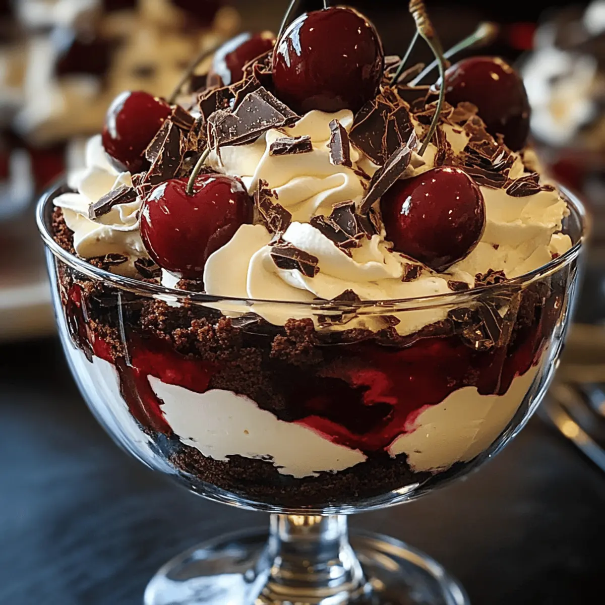 Einen Hauch von festlicher Magie auf den Tisch zu bringen, muss nicht kompliziert sein! Mein Rezept für die Schwarzwälder Trifle für Weihnachten kombiniert saftigen Schokoladenkuchen, leichte Sahne und süße Kirschen zu einem kunstreichen Dessert, das Ihre Gäste begeistern wird. Das Beste daran? Diese schichtweise Köstlichkeit lässt sich ganz bequem im Voraus zubereiten, sodass Sie am Feiertag mehr Zeit für die Familie und Freunde haben. Mit der Möglichkeit, kreativ mit verschiedenen Früchten zu variieren, bieten sich unzählige Anpassungen, um den Geschmack Ihrer Gäste zu treffen. Neugierig, wie einfach es ist, solche Festlichkeiten selbst zu kreieren? Warum werden Sie diese Trifle lieben? Einfachheit: Die Zubereitung dieser Schwarzwälder Trifle erfordert nur grundlegende Backkenntnisse und ist schnell erledigt. Festliche Farben: Die leuchtenden Kirschen und Schokoladenschichten machen jede Schicht zu einem Augenschmaus, ideal für Weihnachtsfeiern. Vielseitigkeit: Experimentieren Sie mit verschiedenen Früchten oder sogar mit einer Schicht Vanillepudding – die Möglichkeiten sind endlos! Praktisch: Perfekt zum Vorbereiten, sodass Sie die Feiertage stressfreier genießen können. Diese Trifle wird selbst die anspruchsvollsten Gäste beeindrucken und die Herzen Ihrer Lieben erwärmen. Probieren Sie auch unsere leckeren Rezepte wie die Knoblauchcremesauce Gegrillte Hähnchenstücke für eine vollmundige Hauptspeise! Schwarzwälder Trifle Zutaten • Dieses Rezept lässt sich mit den folgenden Zutaten leicht umsetzen und sorgt für ein unvergessliches Geschmackserlebnis! Schokoladenkuchen – Der saftige Grundbaustein für die Trifle; verwenden Sie entweder selbst gebacken oder gekauften Kuchen; ein Schuss Kaffee kann den Geschmack intensivieren. Kirschen – Egal, ob frisch, aus der Dose oder tiefgekühlt; sie verleihen Süße und eine ansprechende Optik. Tipp: Ersetzen Sie Kirschen durch Himbeeren für mehr Farbvielfalt. Schlagsahne – Für eine leichte, luftige Textur; schlagen Sie die Sahne, bis sie steife Spitzen bildet, damit sie gut hält. Kirsch (Kirschenlikör) – Gibt dem Dessert eine authentische Geschmacksnote; kann für eine alkoholfreie Variante weggelassen werden. Schokoladenraspel – Zum Dekorieren und für zusätzlichen Schokoladengeschmack; verwenden Sie dunkle Schokolade für einen intensiveren Genuss. Schritt-für-Schritt-Anleitung für die Schwarzwälder Trifle für Weihnachten Step 1: Schokoladenkuchen vorbereiten Backen Sie den Schokoladenkuchen gemäß den Anweisungen oder verwenden Sie einen gekauften Kuchen. Lassen Sie ihn vollständig abkühlen, bevor Sie mit dem Schichten beginnen. Ein vollständig abgekühlter Kuchen sorgt dafür, dass er die Schichten nicht durchweicht und eine stabile Basis für Ihre Schwarzwälder Trifle bietet. Step 2: Schlagsahne zubereiten Schlagen Sie die schwere Sahne in einer großen Rührschüssel, bis sich steife Spitzen bilden. Dies dauert etwa 3-5 Minuten mit einem elektrischen Handmixer bei mittlerer Geschwindigkeit. Fügen Sie nach Belieben einen Esslöffel Zucker hinzu, um eine leicht süße Schlagsahne zu erhalten, die eine luftige Textur bietet und wunderbar mit dem Schokoladenkuchen harmoniert. Step 3: Zutaten schichten In einem großen Trifle- oder Dessertglas beginnen Sie mit einer Schicht des Schokoladenkuchens. Darauf kommt eine Schicht Kirschen und anschließend eine großzügige Schicht der schaumigen Schlagsahne. Wiederholen Sie diesen Vorgang, bis alle Zutaten aufgebraucht sind, und beenden Sie die letzte Schicht mit einer dicken Schicht Schlagsahne, um eine eye-catching Präsentation für Ihre Schwarzwälder Trifle zu schaffen. Step 4: Kühlen Decken Sie die Trifle mit Frischhaltefolie ab und stellen Sie sie für mindestens 4 Stunden oder über Nacht in den Kühlschrank. Dieser Schritt ist wichtig, damit sich die Aromen gut verbinden und die Texturen der Cremes und Kuchenlagen perfekt miteinander harmonieren. Step 5: Garnitur hinzufügen Vor dem Servieren dekorieren Sie die Oberseite der Schwarzwälder Trifle mit Schokoladenraspeln und frischen Kirschen. Dies verleiht Ihrer Trifle nicht nur eine wunderschöne Optik, sondern intensiviert auch den köstlichen Schokoladengeschmack und das fruchtige Aroma. Präsentieren Sie die Trifle kühl und genießen Sie die bewundernden Blicke Ihrer Gäste. Expertentipps für die Schwarzwälder Trifle Frische Zutaten wählen: Verwenden Sie frische Kirschen oder hochwertige Dosenkirschen, um den besten Geschmack und die optimale Präsentation Ihrer Schwarzwälder Trifle zu gewährleisten. Schlagsahne perfect machen: Achten Sie darauf, die Sahne bis zu steifen Spitzen zu schlagen; das sorgt für Stabilität und ein luftiges Mundgefühl in den Schichten. Variationen ausprobieren: Experimentieren Sie mit anderen Früchten wie Himbeeren oder Erdbeeren, um unterschiedliche Geschmacksrichtungen zu entdecken und den Dessertgenuss zu diversifizieren. Längere Kühlzeit: Lassen Sie die Trifle für mindestens 4 Stunden oder über Nacht im Kühlschrank ruhen, damit sich die Aromen gut entfalten können. Dekorative Garnitur: Für eine ansprechende Optik und zusätzlichen Schokoladengeschmack, verwenden Sie dunkle Schokoladenraspeln und frische Kirschen zur Dekoration. Aufbewahrungstipps für Schwarzwälder Trifle Kühlschrank: Bewahren Sie die Trifle abgedeckt im Kühlschrank auf, wo sie bis zu 2 Tage frisch bleibt. Dies ist ideal, um sicherzustellen, dass die Aromen gut durchziehen. Vorbereitung im Voraus: Die Schwarzwälder Trifle kann bis 1 Tag im Voraus zubereitet werden, was sie perfekt für stressfreie Feiertage macht. Einfrieren: Vermeiden Sie das Einfrieren, da die Textur der Sahne und der Schichten beim Auftauen beeinträchtigt werden kann. Servieren: Servieren Sie die Trifle direkt aus dem Kühlschrank. Genießen Sie sie kalt, um die Frische und die köstlichen Aromen des Desserts voll zu entfalten. Schwarzwälder Trifle für Weihnachten einfach vorbereiten Die Schwarz