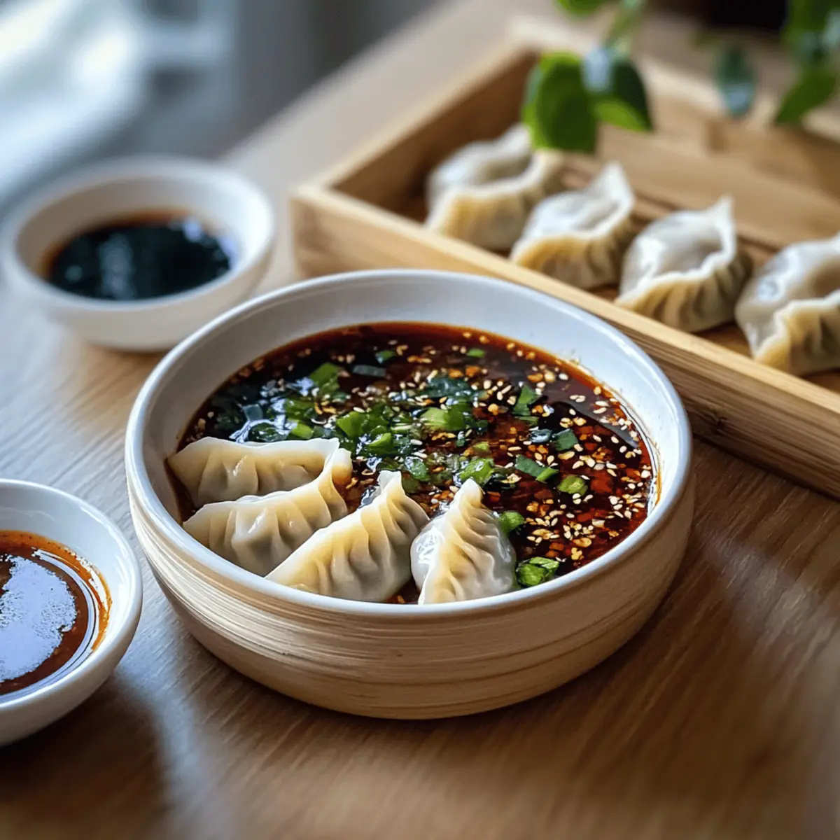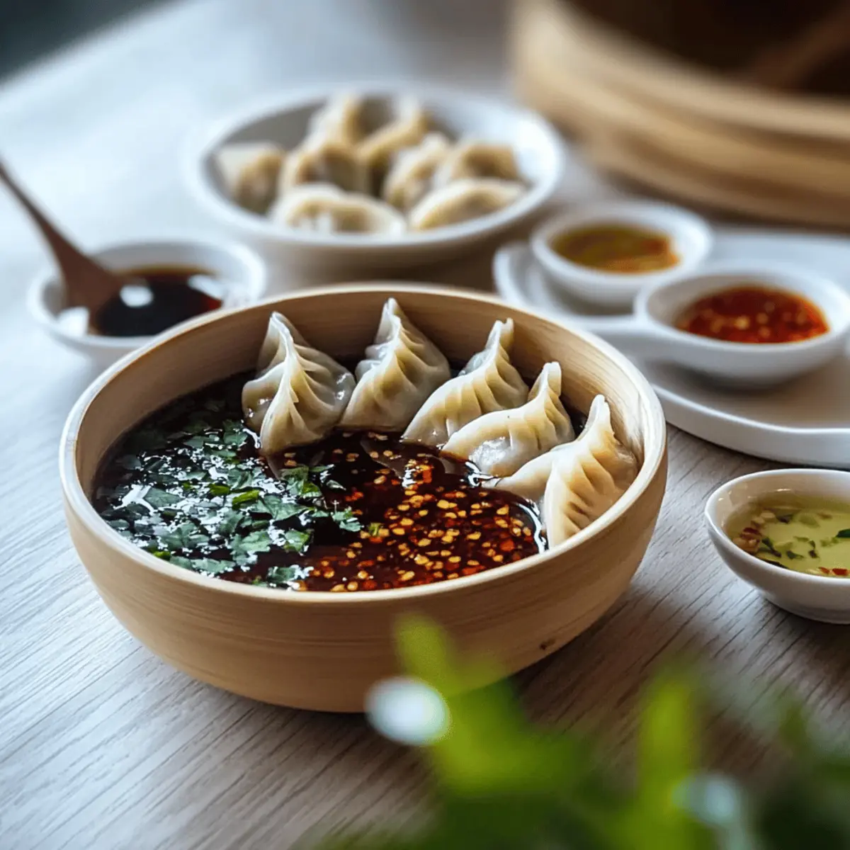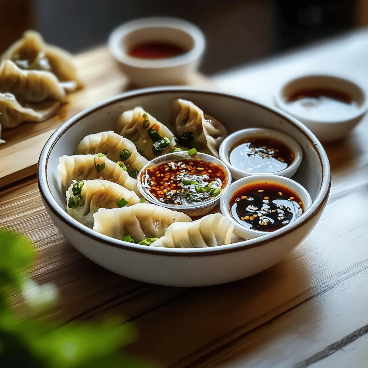 Sich in die Welt der Aromen zu wagen, kann gleichbedeutend sein mit einem aufregenden Abenteuer! Heute lade ich euch ein, die „Sechs Teigtaschen-Saucen“ auszuprobieren, die jede0eur Mahlzeit veredeln. Mit einem Mix aus faszinierenden, frischen Zutaten und einer Vielzahl von Geschmäckern bereiten wir euch nicht nur einen Genuss auf dem Teller, sondern auch pure Freude bei jedem Bissen. Diese leckeren Saucen lassen sich im Handumdrehen – innerhalb von nur 30 Minuten – zubereiten und sind perfekt für spontane Zusammenkünfte oder gemütliche Dinnerabende. Zudem bieten sie optionale Variationen für glutenfreie und vegane Ernährung, sodass jeder auf seine Kosten kommt. Wer kann da schon widerstehen? Welche dieser köstlichen Saucen wird euer neuer Favorit? Warum sind diese Saucen unverzichtbar? Vielseitigkeit: Diese Sechs Teigtaschen-Saucen sind perfekt für jede Gelegenheit – sei es ein schnelles Abendessen oder eine gesellige Feier mit Freunden. Einfache Zubereitung: In nur 30 Minuten sind die Saucen bereit, sodass ihr mehr Zeit mit euren Gästen verbringen könnt! Gesunde Optionen: Mit glutenfreien und veganen Varianten ist für jeden Geschmack und jede Diät etwas dabei. Aromenvielfalt: Jede Sauce bietet ein einzigartiges Geschmackserlebnis, das eure Teigtaschen geschmacklich auf ein neues Niveau hebt. Kreative Anpassungen: Ihr könnt die Rezepte ganz leicht anpassen, um neue, aufregende Geschmäcker zu entdecken – ideal für Küchenexperimente! Werft auch einen Blick auf unsere einfachen Rezepte für glutenfreie Teigtaschen und lasst euch inspirieren! Zutaten für Sechs Teigtaschen-Saucen • Für die Zubereitung der köstlichen Sechs Teigtaschen-Saucen benötigt ihr die folgenden Zutaten. Für die Basis Sojasauce – bildet die geschmackliche Grundlage für alle Saucen und sorgt für einen herzhafter Umami-Geschmack. Essig (Reis- oder Weinessig) – fügt Säure hinzu, um die Aromen perfekt auszubalancieren; für eine zitronig-frische Note kann man auch Zitronensaft verwenden. Sesamöl – verleiht den Saucen einen reichen, nussigen Unterton; für weniger Intensität kann man leichtes Sesamöl verwenden oder es ganz weglassen. Für die Aromastoffe Knoblauch – bietet eine aromatische Tiefe; frischer Knoblauch ist ideal, während Knoblauchpulver auch als Alternative dienen kann. Ingwer – sorgt für einen frischen, würzigen Geschmack; bei Bedarf kann er durch gemahlenen Ingwer ersetzt werden. Für den Pepp Chiliöl – bringt Schärfe und Tiefe; die Menge kann je nach individuellem Schärfewunsch angepasst werden. Jede dieser Sechs Teigtaschen-Saucen ist einfach zuzubereiten und begeistert mit einzigartigen Geschmacksrichtungen! Schritt-für-Schritt-Anleitung für Sechs Teigtaschen-Saucen Step 1: Basis vorbereiten In einer großen Rührschüssel kombiniert ihr 100 ml Sojasauce mit 30 ml Essig und 15 ml Sesamöl. Diese Basis legt das Fundament für alle Sechs Teigtaschen-Saucen. Rührt die Zutaten gut um, bis sie vollständig vermischt sind und eine einheitliche Flüssigkeit entsteht. Diese Mischung sollte klar und dunkel erscheinen. Step 2: Aromastoffe hinzufügen Fügt jetzt 2-3 Knoblauchzehen, fein gehackt, und 1 Teelöffel frisch geriebenen Ingwer zur Mischung hinzu. Rührt alles gründlich durch, bis die Aromastoffe gut verteilt sind. Der kräftige Duft von Knoblauch und Ingwer ist ein gutes Zeichen dafür, dass eure Sauce auf dem richtigen Weg ist. Step 3: Schärfe anpassen Gießt nach und nach 1-2 Esslöffel Chiliöl in die Mischung und schmeckt sie zwischendurch ab. Hier könnt ihr die Schärfe genau nach eurem Geschmack anpassen, während ihr weiter rührt. Die Sauce sollte jetzt leicht glänzen und eine harmonische Balance zwischen Schärfe und Umami bieten. Step 4: Aromen variieren Um jede der Sechs Teigtaschen-Saucen einzigartig zu machen, könnt ihr nun weitere entsprechende Zutaten hinzufügen, wie 1 Teelöffel Fischsauce für einen herzhaften Kick oder den Saft einer halben Limette für Frische. Rührt die neuen Zutaten gut ein und überprüft den Geschmack; vielleicht benötigt ihr noch etwas mehr Salz oder Säure. Step 5: Saucen abfüllen Übertragt die fertigen Saucen in luftdichte Behälter. Achtet darauf, dass die Behälter gut verschlossen sind, um Aromaverlust zu vermeiden. Diese Saucen können optimal im Kühlschrank aufbewahrt werden und halten sich bis zu zwei Wochen. Seid rappeler, dass eine längere Ruhezeit die Aromen vertiefen kann. Step 6: Servieren und genießen Jetzt sind eure Sechs Teigtaschen-Saucen bereit zum Servieren! Stellt sie zusammen mit frisch gedämpften Teigtaschen auf den Tisch und lasst eure Gäste die Saucen nach Belieben ausprobieren. So entsteht ein interaktives Esserlebnis, das sicher jedem gefallen wird. Guten Appetit! Sechs Teigtaschen-Saucen Variationen Entdeckt die Freude, eure Saucen ganz nach euren Wünschen zu gestalten und neue Geschmackserlebnisse zu kreieren! Vegan: Ersetzt die Fischsauce durch Sojasauce oder ein paar Tropfen Liquid Aminos für einen herzhaften Umami-Geschmack. Glutenfrei: Nutzt Tamari anstelle von Sojasauce, um ein glutenfreies Erlebnis zu schaffen, das genauso lecker ist. Süß-sauer: Fügt einen Esslöffel Honig oder Agavendicksaft hinzu, um die perfekte süß-saure Balance in eurer Sauce zu erzielen. Frisch: Experimentiert mit frischen Kräutern wie Koriander oder Minze, die eine erfrischende Note in die Saucen bringen können. Scharf: Verwendet scharfe Chili-Flocken oder frische rote Chili für einen zusätzlichen scharfen Kick, wenn ihr es feuriger mögt. Kreolisch: Gebt etwas Worcestershire-Sauce und einen Spritzer Tabasco hinzu, um einen einzigartigen, würzigen Kreol-Geschmack zu erzeugen. Thailändisch: Für einen besonderen Twist fügt Kokosmilch hinzu und genießt die cremige Konsistenz, die hervorragend zu asiatischen Gerichten passt. Denkt daran, eure Saucen mit euren Lieblingsgerichten wie frisch gedämpften Teigtaschen oder als Dip für Frühlingsrollen zu kombinieren und genie