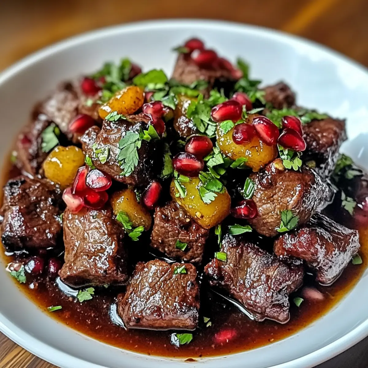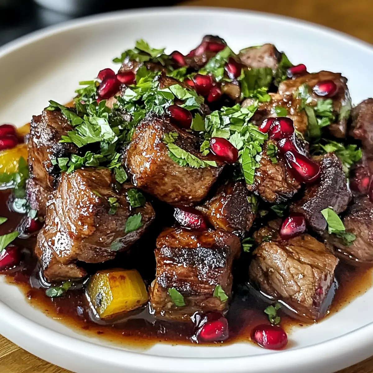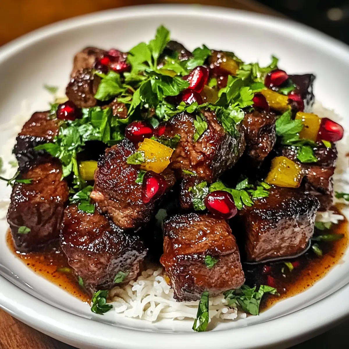Das Aroma von frisch gekochtem Essen ist wie eine Umarmung für die Seele. Heute lade ich euch ein, die exquisiten Aromen des persischen Shish Andaz zu entdecken – einem herzhaften Eintopf mit feinem, mariniertem Lamm oder Rind, der in einer reichhaltigen Granatapfelsauce köchelt. Mit seinen einfachen Zubereitungsschritten ist dieses Rezept nicht nur ein Fest für eure Geschmacksknospen, sondern auch ideal, um Familie und Freunde zu beeindrucken. Die perfekte Mischung aus süß-säuerlichen und herzhaften Noten macht den Shish Andaz zu einem absoluten Genuss, der auch in hektischen Zeiten schnell zubereitet werden kann. Bereitet euch auf eine Gaumenfreude vor, die eure Herzen erwärmen wird. Seid ihr bereit, in die Welt der persischen Küche einzutauchen und diesen köstlichen Eintopf nachzukochen? Warum ist Shish Andaz so besonders? Aromatischer Genuss: Shish Andaz ist mehr als nur ein Gericht; es ist ein Erlebnis für die Sinne. Einfache Zubereitung: Die unkomplizierten Schritte machen es zum perfekten Rezept für jeden Koch, unabhängig von den Fähigkeiten. Vielseitige Variationen: Ob Lamm, Rind, Hühnchen oder vegetarische Option – jeder kann seine persönliche Note hinzufügen. Herzliche Aromen: Die Kombination aus Granatapfelsauce und Gewürzen verleiht diesem Eintopf einen einzigartigen Geschmack. Gemeinschaftsgericht: Ideal für festliche Anlässe oder ein gemütliches Abendessen, es bringt Familie und Freunde zusammen. Bereit, eure Gäste zu beeindrucken? Lasst euch von diesem Rezept inspirieren und genießt die köstlichen Aromen der persischen Küche! Shish Andaz Zutaten • Taucht ein in die Welt des Shish Andaz mit diesen köstlichen Zutaten! Für das Fleisch Lamm oder Rind – Wählt zarte Stücke mit etwas Fett für zusätzliche Saftigkeit. Pflanzenöl – Wichtig zum Braten und Karamellisieren der Zwiebeln. Für die Gewürze Zwiebeln – Karamellisiert als geschmackliche Basis des Gerichts. Knoblauch – Fein gehackt, verleiht aromatische Tiefe. Kurkuma – Sorgt für Wärme und eine leuchtende Farbe. Zimt – Fügt süß-warme Noten hinzu. Kreuzkümmel – Bringt erdige Aromen und Tiefe. Koriander – Liefert ein erfrischendes Geschmacksprofil. Salz – Verstärkt den gesamten Geschmack. Schwarzer Pfeffer – Sorgt für milde Schärfe. Für die besondere Note Granatapfelsirup – Entscheidend für Süße und einen leicht säuerlichen Geschmack; bei Bedarf mit Honig und Zitronensaft ersetzen. Zitronensaft – Hellt den Geschmack auf. Hühnchen- oder Rinderbrühe – Bringt Feuchtigkeit und Tiefe in die Sauce. Für die Garnitur Frische Petersilie & Minze – Gehackt, sorgt für einen bunten und aromatischen Abschluss. Beilagen Gedämpfter Reis oder Fladenbrot – Ideal, um die reichhaltige Sauce aufzusaugen. Bereitet euch vor, das exquisite Shish Andaz zu genießen – ein aromatischer Genuss aus Persien! Step-by-Step Instructions for Shish Andaz Step 1: Fleisch marinieren Vermischt das Lamm oder Rind mit den Gewürzen und lasst es für 30 Minuten bis zu 1 Stunde marinieren. Deckt die Schüssel mit Frischhaltefolie ab, damit die Aromen gut einziehen können. Diese Marinierzeit sorgt dafür, dass der Shish Andaz intensiv und geschmackvoll wird. Step 2: Zwiebeln karamellisieren Erhitzt etwas Pflanzenöl in einem großen Topf bei mittlerer Hitze. Gebt die geschnittenen Zwiebeln hinzu und bratet sie etwa 10 Minuten lang, bis sie goldbraun und weich sind. Diese Karamellisierung bringt eine süße Tiefe in die Sauce des Shish Andaz. Step 3: Knoblauch hinzufügen Fügen Sie den fein gehackten Knoblauch zu den Zwiebeln hinzu und braten Sie alles für weitere 1-2 Minuten an, bis der Knoblauch duftet. Achten Sie darauf, den Knoblauch nicht zu verbrennen, da er sonst bitter werden kann und das Aroma des Shish Andaz beeinträchtigt. Step 4: Fleisch anbraten Erhöht die Hitze und fügt das marinierte Fleisch hinzu. Bratet es für 5-7 Minuten an, bis es von allen Seiten gut gebräunt ist. Das Anbraten versiegelt die Säfte und sorgt dafür, dass das Fleisch im Shish Andaz zart bleibt. Step 5: Aromen hinzufügen Gießen Sie den Granatapfelsirup und den Zitronensaft über das Fleisch und rühren Sie um. Lasst die Mischung für 2 Minuten köcheln, damit sich die Aromen verbinden und das Gericht noch köstlicher wird. Diese süß-säuerliche Note ist charakteristisch für den Shish Andaz. Step 6: Simmern lassen Fügen Sie die Brühe hinzu, decken Sie den Topf ab und reduzieren Sie die Hitze auf niedrig. Lassen Sie den Shish Andaz 1 bis 1,5 Stunden sanft köcheln, bis das Fleisch gabelzart ist. Überprüfen Sie regelmäßig den Garstand und rühren Sie gelegentlich um, um ein Anbrennen zu vermeiden. Step 7: Mit Kräutern verfeinern Rühren Sie kurz vor dem Servieren die gehackte Petersilie und Minze unter den Shish Andaz. Diese frischen Kräuter bringen nicht nur Farbe ins Gericht, sondern auch einen aromatischen Geschmack, der das Gericht perfekt abrundet. Step 8: Servieren Servieren Sie den heißen Shish Andaz zusammen mit gedämpftem Reis oder warmem Fladenbrot. Garnieren Sie das Gericht bei Bedarf mit frischen Kräutern, um ein ansprechendes und einladendes Gericht zu präsentieren. Was passt gut zu Shish Andaz? Das Aroma frisch zubereiteter Beilagen wird euren feinen Eintopf perfekt ergänzen und zu einem unvergesslichen Erlebnis machen. Gedämpfter Reis: Der fluffige Reis nimmt die reichhaltige Sauce auf und harmoniert wunderbar mit den Aromen des Eintopfs. Für zusätzlichen Geschmack solltet ihr den Reis mit einer Prise Salz und etwas Zitronensaft kochen. Frischer Gurkensalat: Eine knackige und erfrischende Ergänzung, die die Würze des Shish Andaz balanceiert. Mit Joghurt, frischen Kräutern und einem Spritzer Zitrone wird er zum Hit auf jedem Tisch. Warmes Fladenbrot: Ideal, um die köstliche Granatapfelsauce aufzutunken. Serviert es warm und frisch, damit es zu einem softes Begleiter für die sämige Konsistenz des Eintopfs wird. Cremefraiche oder Joghurt: Ein Klecks tangy 