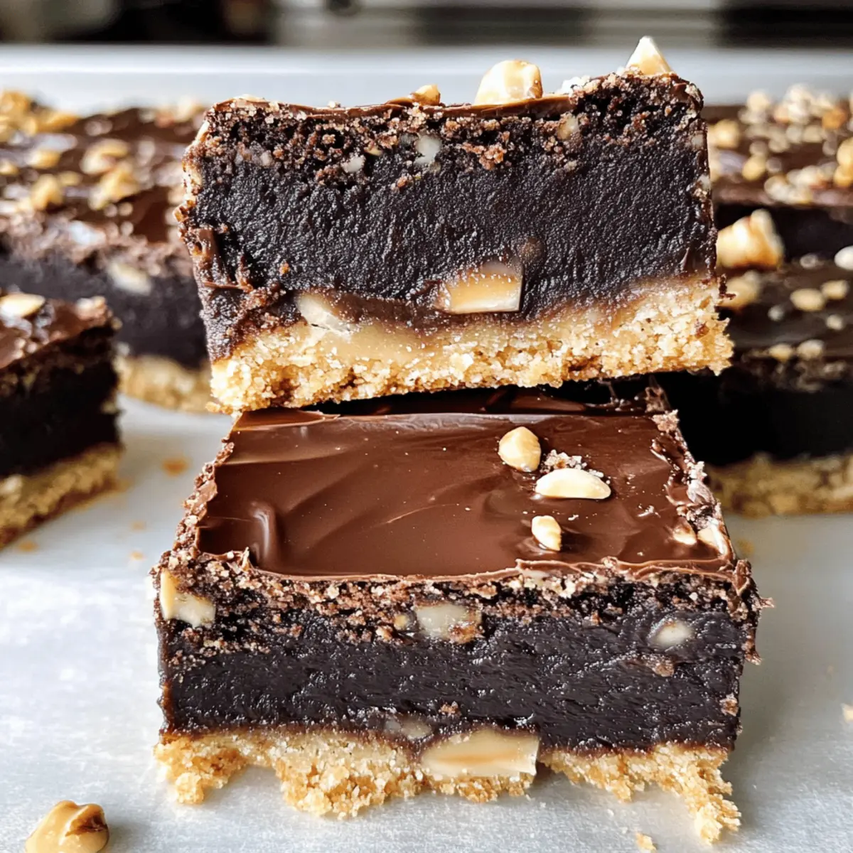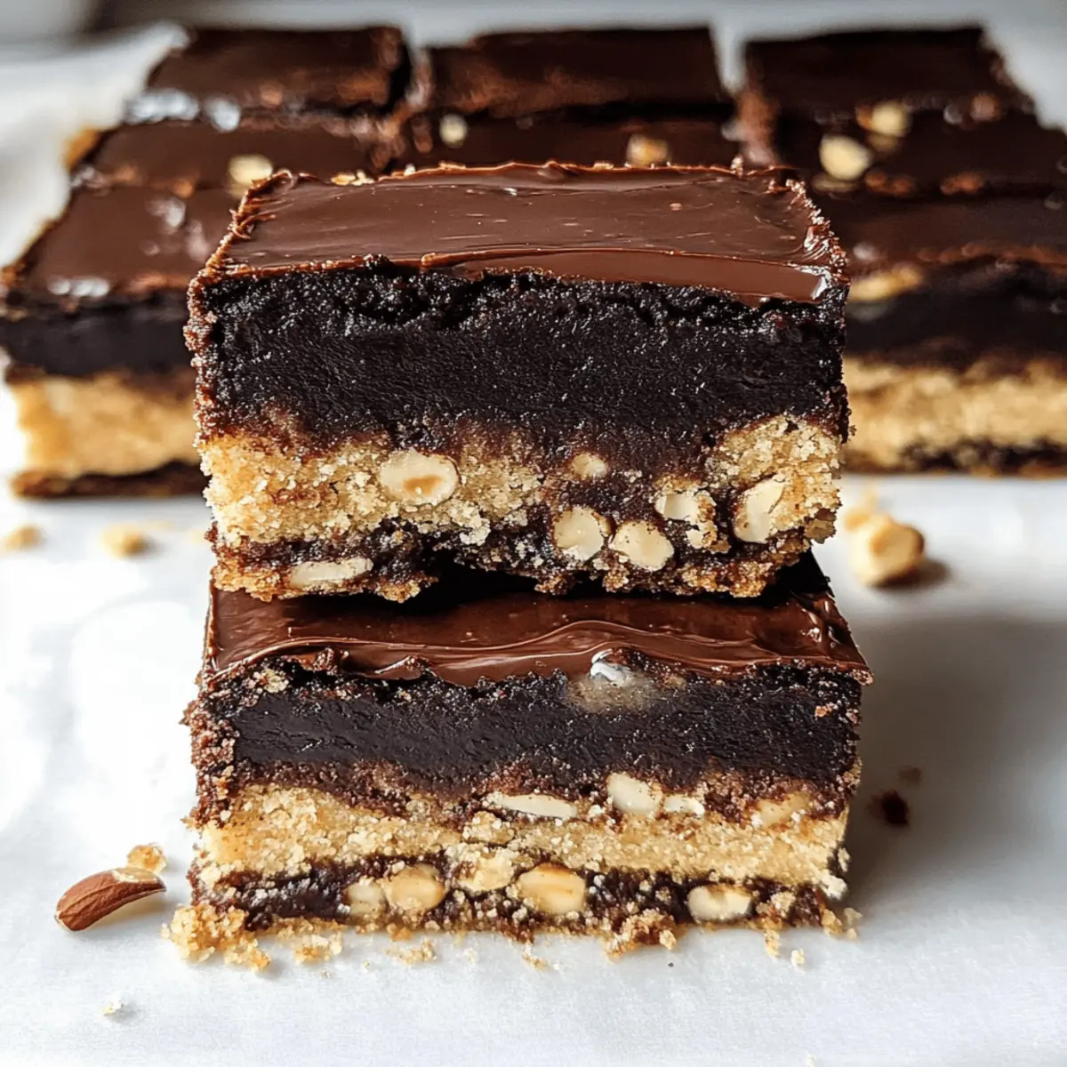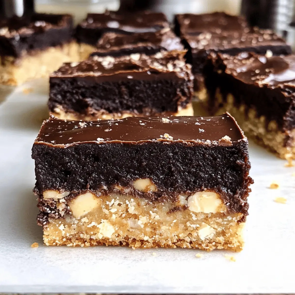 Es war ein regnerischer Sonntag, und ich fand mich selbst in der Küche wieder, um etwas zu zaubern, das die düstere Stimmung vertreiben könnte. So entstand das Rezept für die unwiderstehlichen Shortbread Brownies! Diese köstlichen Nutty Brownie Shortbread Bars vereinen einen krümeligen Shortbread-Boden mit einer fudgy Brownieschicht und einem reichen Schokoladen-Ganache-Topping. Das Beste daran? Sie sind ganz ohne Butter zubereitet und setzen auf das gesunde Avocadoöl für einen besonderen Twist – ideal für alle, die auf Komfort, aber auch auf etwas Leichteres Wert legen. Diese Bars sind nicht nur schnell und einfach zuzubereiten, sondern auch ein echtes Highlight für jede Kaffeetafel. Bist du bereit, diese Geschmacksexplosion zu entdecken? Warum wirst du diese Shortbread Brownies lieben? Vielfältiger Genuss: Mit nutty Brownies bringst du Abwechslung in die Küche, ganz gleich, ob du die klassische Variante liebst oder die Nussvariation mit Haselnüssen oder Pekannüssen ausprobieren möchtest. Schnelle Zubereitung: In nur einer Schüssel gezaubert, sind diese Brownies im Handumdrehen fertig – perfekt für unerwartete Gäste oder eine süße Belohnung nach einem langen Tag! Gesunde Zutaten: Durch die Verwendung von Avocadoöl statt Butter erhältst du nicht nur einen einzigartigen Geschmack, sondern verzichtest auch auf unnötige Fette, was sie zu einer leichteren Option macht. Luxuriöse Textur: Die Kombination aus einer krümeligen Shortbread-Basis, einer fudgy Brownieschicht und einer samtigen Schokoladenganache verspricht ein Geschmackserlebnis, das alle begeistern wird. Perfekt für jede Gelegenheit: Diese Bars sind ein echtes Highlight auf deiner Kaffeetafel oder einfach zum Genießen – ein echtes Must-Try! Und wenn du auf der Suche nach weiteren ähnlichen Rezepten bist, schau dir auch meine Schokoladige Brownies Mit an! Shortbread Brownies Zutaten • Entdecke die köstlichen Zutaten für diese unwiderstehlichen Shortbread Brownies! Für den Shortbread-Boden • Weißes Mehl – sorgt für die Struktur; verwende 2 Esslöffel mehr, wenn der Teig zu feucht ist. • Zucker – sorgt für eine angenehme Süße; stelle sicher, dass du genau misst, um das perfekte Gleichgewicht zu erreichen. • Feines Meersalz – verstärkt den Geschmack; Meersalz ist beliebt aufgrund seiner feinen Textur und dem besseren Geschmack. • Avocadoöl – sorgt für Feuchtigkeit und Reichtum; kann gegen Olivenöl getauscht werden, aber Avocadoöl bietet einen besonders leckeren Geschmack. • Hacken Haselnüsse oder Pekannüsse – bringt Textur und zusätzlichen Geschmack; kann durch deine Lieblingsnüsse ersetzt oder für eine nussfreie Version weggelassen werden. Für die Brownieschicht • Dutch Process Kakao – für intensiven Schokoladengeschmack; wähle eine hochwertige Marke für die besten Ergebnisse. • Echte Vanille-Extrakt – ein Geschmacksträger für maximale Aromen; dies solltest du auf keinen Fall weglassen. • Große Eier – geben Bindung und Feuchtigkeit; stelle sicher, dass sie Zimmertemperatur haben für eine bessere Verarbeitung. Für die Ganache • Dunkle Schokolade – die Basis für die Ganache; fein hacken, um das Schmelzen zu erleichtern und eine glatte Textur zu erreichen. • Sahne – sorgt für die flüssige Konsistenz der Ganache; kann durch Kokosmilch für eine milchfreie Option ersetzt werden. • Schokoladen-Hazelnuss-Aufstrich – für reichhaltigen Geschmack in der Ganache; Nutella ist ideal, aber du kannst auch andere Aufstriche verwenden. Mit diesen köstlichen Zutaten zauberst du im Nu deine eigenen fantastischen Shortbread Brownies! Schritt-für-Schritt-Anleitung für Shortbread Brownies mit Nuss-Geschmack Step 1: Ofen vorheizen und Backform vorbereiten Heize deinen Ofen auf 175 °C (350 °F) vor. Lege eine 20×20 cm große Backform mit Backpapier aus, sodass es an den Seiten übersteht. Dies erleichtert später das Herausnehmen der Shortbread Brownies. Achte darauf, dass dein Ofen vollständig aufgeheizt ist, bevor du mit dem Teig beginnst. Step 2: Shortbread-Boden zubereiten In einer großen Schüssel vermengst du das Mehl, den Zucker und das Meersalz gründlich miteinander. Füge das Avocadoöl und die gehackten Nüsse hinzu und verrühre alles zu einem geschmeidigen Teig. Sollte der Teig zu feucht erscheinen, gib nach Bedarf noch 2 Esslöffel Mehl hinzu. Drücke den Teig gleichmäßig in den Boden der vorbereiteten Backform und backe ihn für 12 Minuten im vorgeheizten Ofen. Step 3: Brownie-Schicht vorbereiten Während der Shortbread-Boden backt, vermische in einer separaten Schüssel das Avocadoöl, den Zucker, das Meersalz und den Vanilleextrakt gut miteinander. Füge die Eier nacheinander hinzu und schlage jede Zugabe gut durch, bis die Mischung homogen ist. Mische nun das Kakaopulver und das Mehl unter, bis du einen glatten Teig für die Brownie-Schicht erhältst. Step 4: Brownies backen Gieße den Brownie-Teig über den vorgebackenen Shortbread-Boden. Stelle die Backform wieder in den Ofen und backe die Mischung für 25 bis 30 Minuten. Prüfe den Garzustand, indem du einen Zahnstocher in die Mitte steckst; er sollte mit ein paar feuchten Krümeln herauskommen, um die fudgy Konsistenz der Shortbread Brownies zu gewährleisten. Step 5: Abkühlen lassen und Ganache vorbereiten Lass die Brownies in der Form vollständig abkühlen. In der Zwischenzeit erhitze die Sahne in einem kleinen Topf, bis sie dampfend ist, aber noch nicht kocht. Gieße die heiße Sahne über die fein gehackte dunkle Schokolade in einer Schüssel und lasse sie einige Minuten stehen. Rühre dann, bis die Mischung glatt und glänzend ist und füge den Schokoladen-Hazelnuss-Aufstrich hinzu. Step 6: Ganache auftragen und kühlen Gieße die geschmeidige Ganache über die abgekühlten Shortbread Brownies und verstreiche sie gleichmäßig mit einem Spatel. Stelle die Backform für mindestens eine Stunde in den Kühlschrank, damit die Ganache fest wird. Am besten wickelst du