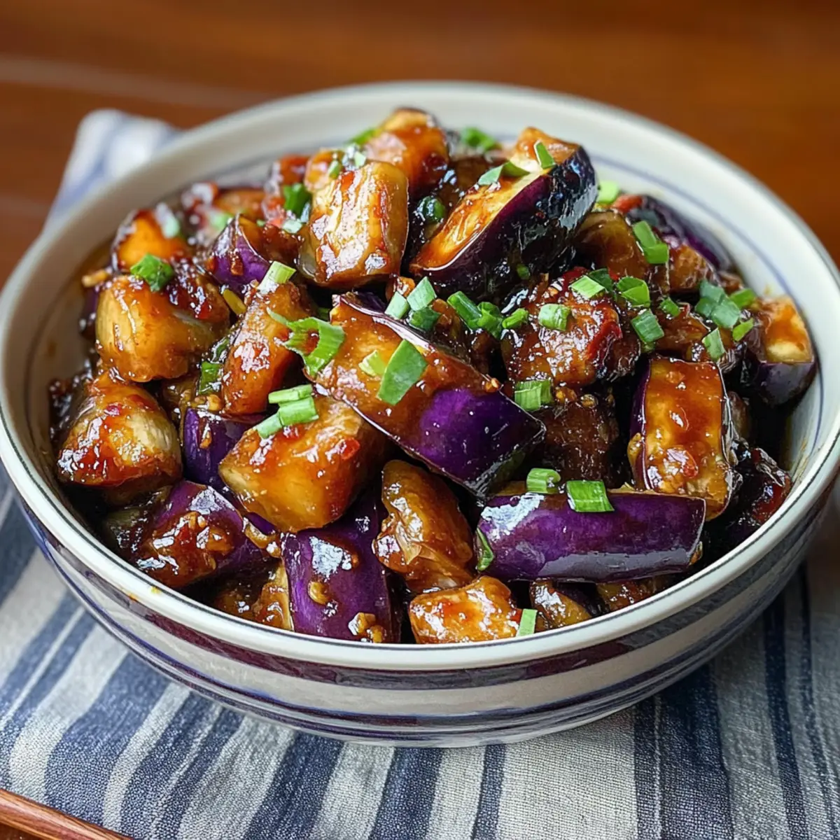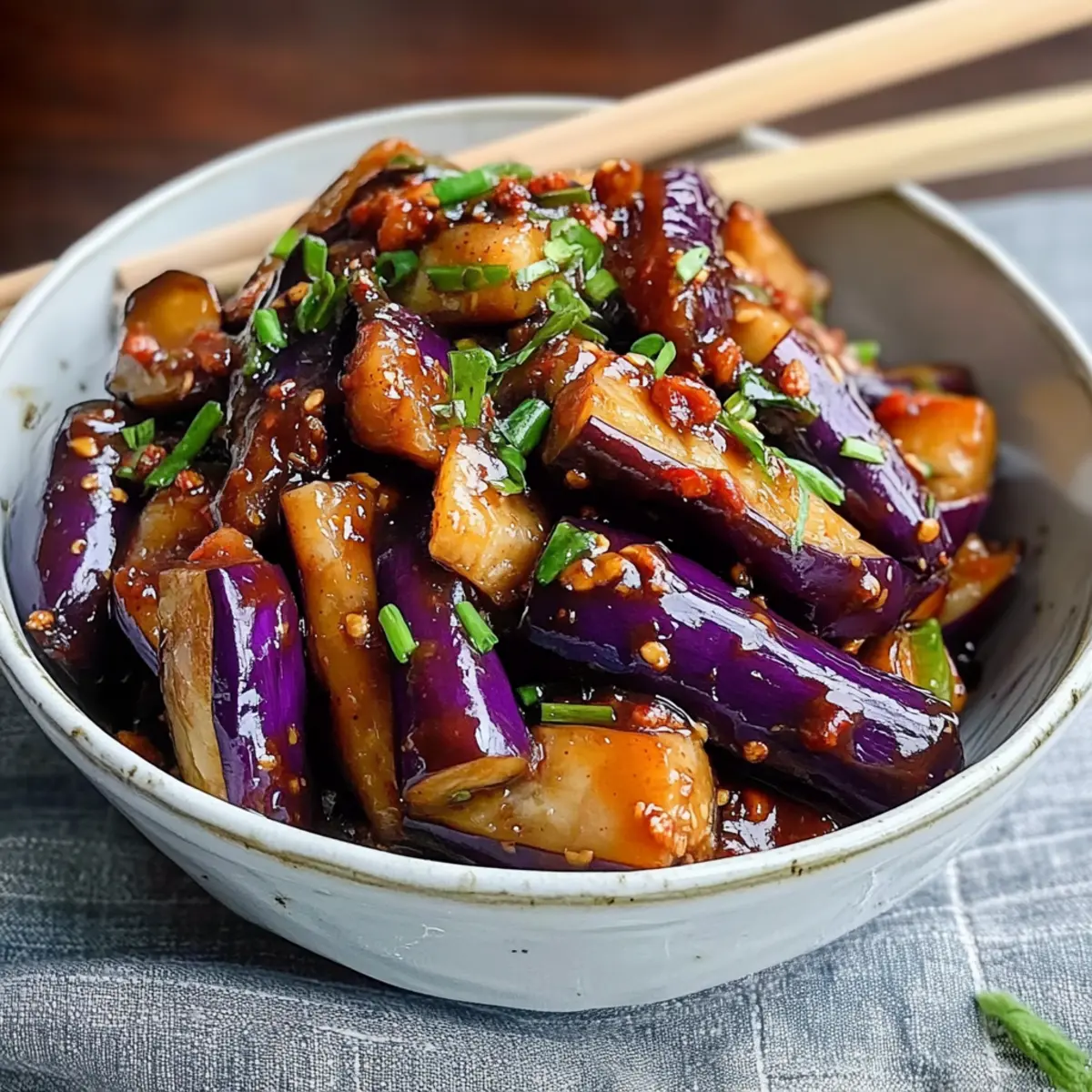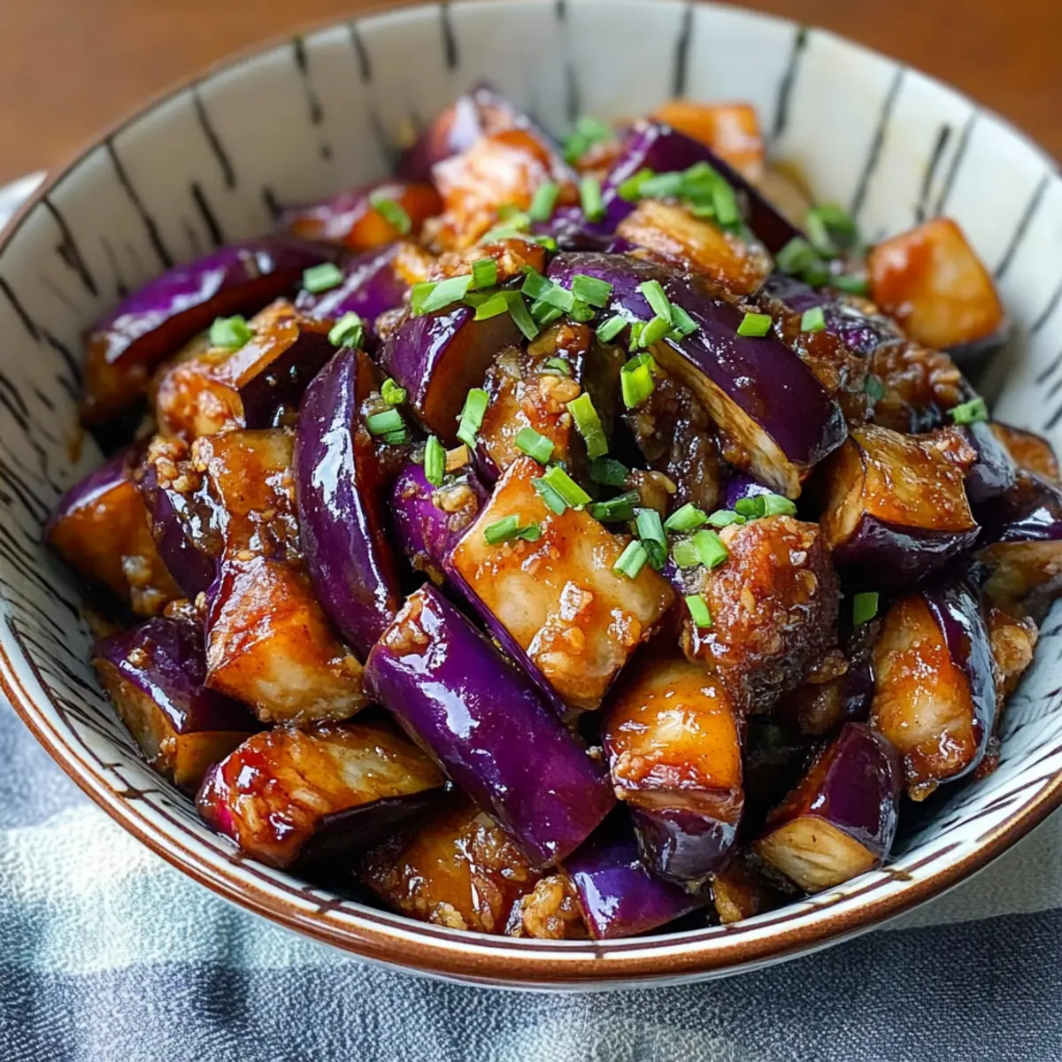 Als ich das erste Mal die lebhaften Aromen der Sichuan-Küche entdeckte, war ich sofort begeistert. Mein Rezept für Sichuan-Aubergine, auch bekannt als Fischduft-Aubergine, hat sich schnell zu einem meiner absoluten Lieblingsgerichte entwickelt. Die perfekte Balance aus scharfen, sauren, salzigen und süßen Geschmäckern macht diese vegetarische Delikatesse zu einer wahren Gaumenfreude. Die Zubereitung ist dabei so einfach, dass sie selbst skeptische Auberginenliebhaber überzeugt. Dieses Rezept bietet nicht nur eine schnelle und gesunde Möglichkeit, deine Familie oder Freunde zu beeindrucken, sondern es ist auch hervorragend für Meal Prep geeignet. Wirst du bereit sein, deine Küche mit den verlockenden Düften dieses köstlichen Gerichts zu füllen? Warum ist dieses Rezept so besonders? Einzigartiger Geschmack: Diese Sichuan-Aubergine vereint doch harmonisch die Aromen von scharf, süß und sauer zu einem Geschmackserlebnis, das unvergleichlich ist. Einfach zuzubereiten: Selbst Anfänger in der Küche können mit diesem Rezept punkten und blitzschnell ein köstliches Gericht zaubern. Vielfältig & anpassbar: Du kannst ganz nach Belieben Zutaten wie Zucchini oder Tofu hinzufügen, um das Gericht zu variieren. Gesund & nährend: Diese Auberginen sind nicht nur lecker, sondern auch kalorienarm und reich an Ballaststoffen – perfekt für ein gesundes Abendessen. Längst ist der Genuss von Sichuan-Küche nicht nur für asiatische Restaurants reserviert; entdecke die Welt der Aromen in deiner eigenen Küche mit diesem einfachen Rezept für Sichuan-Aubergine. Sichuan-Auberginen Zutaten • Entdecke die köstlichen Zutaten für dein Gericht! Für die Auberginen Auberginen – Hauptzutat, die die Aromen perfekt aufnimmt; wähle asiatische Auberginen für eine zarte Textur. Sichuan-Pfeffer – Verleiht den einzigartigen blumigen und betäubenden Geschmack; kann durch eine Prise Cayennepfeffer ersetzt werden. Für die Sauce Chilibohnpaste – Sorgt für die würzige Tiefe der Sauce; ersetze sie durch Doubanjiang, falls nicht verfügbar. Sojasauce – Bringt Umami und Salzigkeit; verwende natriumarme Sojasauce für eine leichtere Variante. Schwarzessig – Fügt Säure und Komplexität hinzu; kann durch Reisessig oder Apfelessig ersetzt werden. Zucker – Balanciert die Schärfe und die Säure; passe die Menge nach deinem Geschmack an – Honig oder Agavendicksaft sind gute Alternativen. Für das Braten Öl – Zum Anbraten; verwende ein neutrales Öl oder Sesamöl für zusätzlichen Geschmack. Optionale Zutat Hackfleisch (optional) – Kann für eine fleischige Textur hinzugefügt werden; weglassen für die vegetarische/vegane Version. Schritt-für-Schritt-Anleitung für Sichuan-Aubergine Step 1: Auberginen vorbereiten Schneide die Auberginen in lange, dünne Streifen und lege sie in eine Schüssel. Bestreue die Auberginenstreifen großzügig mit Salz und lasse sie 30 Minuten ziehen. Dies entzieht der Aubergine überschüssige Feuchtigkeit und sorgt dafür, dass sie beim Kochen die Aromen besser aufnimmt und zarter wird. Step 2: Auberginen braten Erhitze in einer großen Pfanne bei mittelhoher Hitze 2 Esslöffel neutrales Öl. Füge die vorbereiteten Auberginen hinzu und brate sie 7-10 Minuten lang an, bis sie goldbraun und zart sind. Rühre regelmäßig um, damit die Auberginen gleichmäßig garen und leicht karamellisieren, was die Geschmackstiefe des Gerichts erhöht. Step 3: Aromatische Basis zubereiten In einer separaten Pfanne erhitze einen weiteren Esslöffel Öl bei mittlerer Hitze. Füge 2 gehackte Knoblauchzehen und ein Stück Ingwer (ca. 1 Zoll, fein gehackt) hinzu und brate sie 1-2 Minuten lang an, bis sie aromatisch sind. Achte darauf, dass der Knoblauch nicht verbrennt, damit er seinen feineren Geschmack behält. Step 4: Sauce anrühren Gib 1 Teelöffel Sichuan-Pfeffer und 2 Esslöffel Chilibohnpaste in die Pfanne mit dem Knoblauch und Ingwer. Brate diese Mischung weitere 1-2 Minuten, bis sich die Aromen entfalten. Die Mischung sollte intensiv und angenehm duftend sein, was den Grundstein für die Soße der Sichuan-Aubergine legt. Step 5: Zutaten kombinieren Nun gib die gebratenen Auberginen in die Pfanne mit der aromatischen Mischung. Füge 3 Esslöffel Sojasauce, 1 Esslöffel schwarzen Essig und 1 Teelöffel Zucker hinzu. Rühre alles gut um und lasse es 2-3 Minuten bei mittlerer Hitze köcheln, um sicherzustellen, dass die Aromen sich vermischen und die Auberginen gut überzogen sind. Step 6: Abschluss und Servieren Schmecke die Mischung ab und passe die Gewürze nach deinem Geschmack an. Die Sichuan-Aubergine sollte eine harmonische Balance aus Schärfe, Süße und Säure haben. Wenn alles gut vermischt ist, serviere das Gericht sofort warm, idealerweise mit gedämpftem Reis oder Quinoa, um die köstliche Sauce aufzusaugen. Was passt zu Sichuan-Aubergine? Erlebe, wie vielseitig und spannend eine komplette Mahlzeit mit der köstlichen Sichuan-Aubergine werden kann. Gedämpfter Reis: Ein klassischer Begleiter, der die würzige Sauce perfekt aufnimmt und für ein harmonisches Geschmackserlebnis sorgt. Er sorgt für ein ausgewogenes Zusammenspiel der Aromen. Quinoa: Diese proteinreiche Alternative passt wunderbar und bringt eine nussige Note, die sich ideal mit der Schärfe der Aubergine ergänzt. Frischer Gurkensalat: Der erfrischende Crunch der Gurken sorgt für einen angenehmen Kontrast zur weichen Textur des Gerichts. Mit etwas Essig und Sesamöl wird der Salat leicht und lecker. Knusprige Frühlingsrollen: Diese bieten eine herrlich knusprige Textur und sind perfekt, um die umami-reiche Sauce der Sichuan-Aubergine aufzunehmen. Tofu-Satay: Neben der Aubergine wird auch gegrillter Tofu in Erdnusssoße zu einem genussvollen Duett. Der nussige Geschmack harmoniert ausgezeichnet mit den intensiven Aromen der Aubergine. Jasmintee: Ein leichter, duftender Tee hilft, die kräftigen Gewürze zu harmonisieren und bringt Ruhe zu einer geschmacklich intensiven Mahlzeit. Experten-Tipps