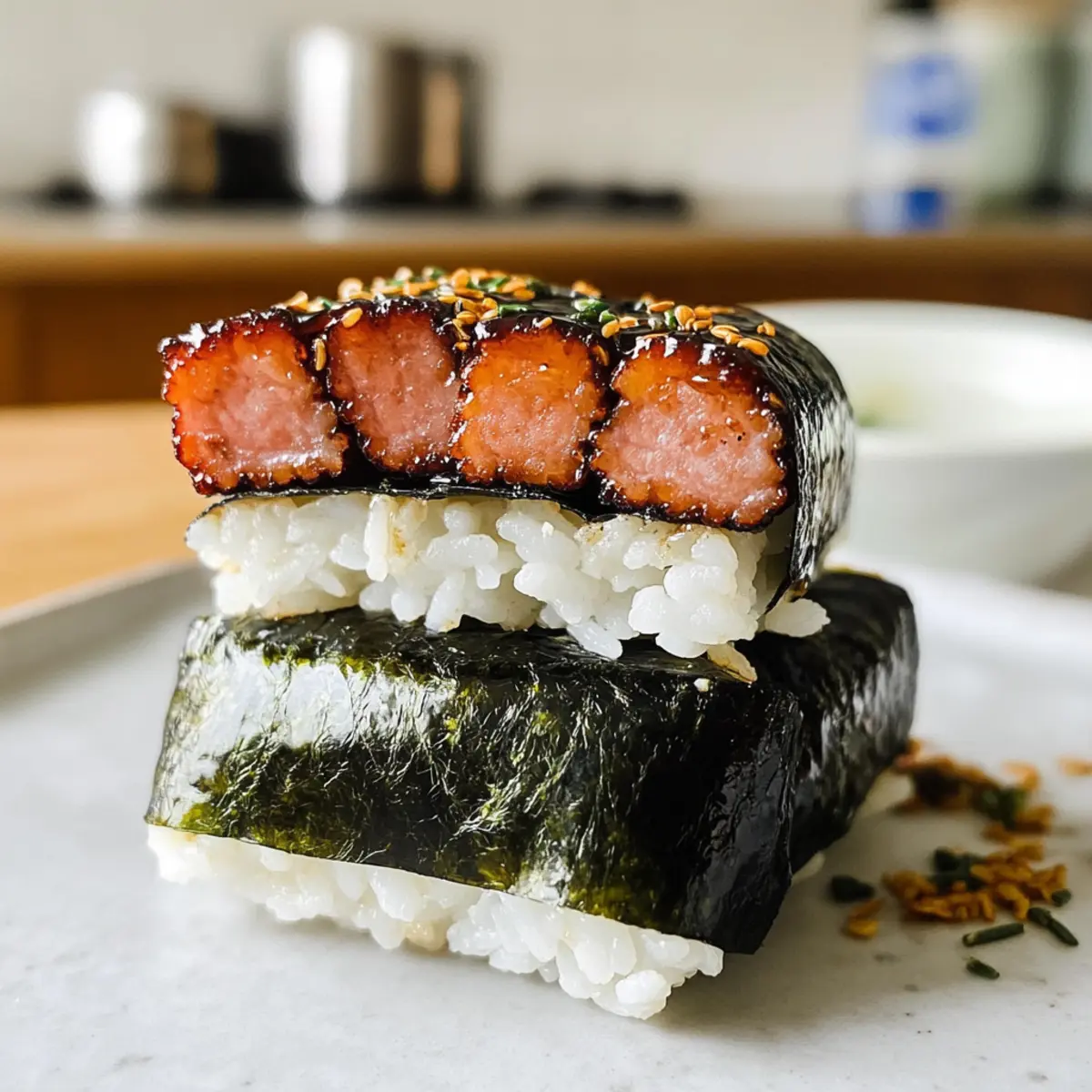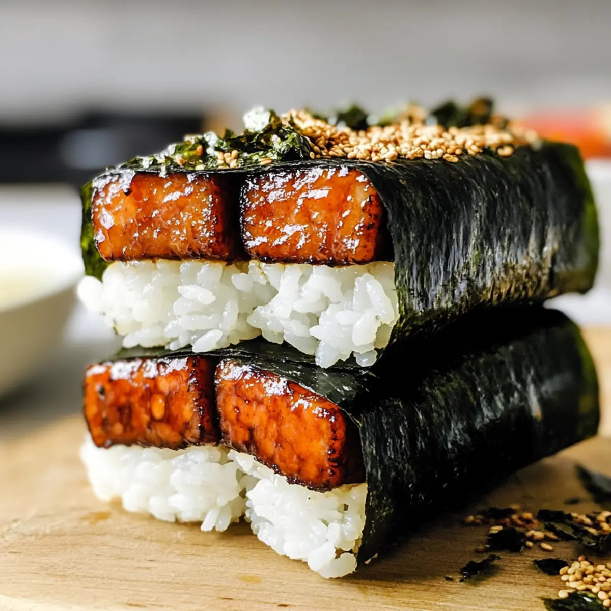 „Hast du schon mal so einen Snack probiert, der einfach alles vereint – von der Südsee bis zu deiner Küche?“ Genau das bietet dir unser Best-Ever Spam Musubi! Diese köstliche Kreation verbindet die Aromen Hawaiis mit einer einfachen, aber genialen Zubereitung. Egal, ob du ein schnelles Mittagessen für unterwegs brauchst oder eine gesellige Snackoption suchst, diese handlichen Leckerbissen sind die perfekte Wahl. Im Handumdrehen zubereitet, zaubert dir unsere Rezeptur eine gute Portion Glück mit knusprigem, teriyaki-glasiertem Spam, das zartem Reis und umami-reichem Furikake umschlungen ist. Bereite dich darauf vor, auf diese köstliche Reise in die hawaiianische Küche mitzunehmen! Bist du bereit, dein neues Lieblingssnack-Rezept zu entdecken? Warum ist Spam Musubi so besonders? Köstlicher Genuss: Die Kombination aus crispy, teriyaki-glasiertem Spam und fluffigem Reis schafft ein unvergleichliches Geschmackserlebnis. Einfache Zubereitung: Mit nur wenigen Zutaten und Schritten sind diese Snacks nahezu im Handumdrehen fertig. Vielseitig: Du kannst das Rezept leicht anpassen, indem du z.B. tofu oder Hühnchen verwendest. Perfekt für unterwegs: Ob für Picknicks oder das Mittagessen, Spam Musubi ist der ideale Begleiter. Authentischer Geschmack: Erfahre mehr über die kulinarischen Wurzeln dieses hawaiianischen Klassikers und bring ein Stück Hawaii in deine Küche! Spam Musubi Zutaten • Entdecke die grundlegenden Zutaten für dein köstliches Spam Musubi! Für den Reis: Calrose Reis – sorgt für die perfekte, klebrige Konsistenz, die sich wunderbar formen lässt. Alternativ kann auch anderer kurzkörniger Reis verwendet werden. Für die Teriyaki-Sauce: Dunkler Brauner Zucker – gibt der Sauce die nötige Süße, um den herzhaften Spam auszubalancieren. Sojasauce – verstärkt den salzigen Geschmack der Sauce. Für eine gesündere Variante kann auch natriumarme Sojasauce genutzt werden. Mirin – fügt einen milden Süßgeschmack und Tiefe hinzu. Sesamöl – bringt eine nussige Note ins Spiel, die das Gericht wunderbar ergänzt. Für den Hauptbestandteil: Spam (1 Dose) – das geschmackvolle Protein, das für den herzhaften Charakter sorgt. Eine kalorienärmere Option ist der Verzicht auf normalen Spam zugunsten von natriumarmer Variante. Für die Umhüllung: Sushi Nori (3,5 Blätter) – gibt Geschmack und sorgt dafür, dass alles zusammenhält. Für den besonderen Geschmack: Furikake (⅓ Tasse) – diese japanische Gewürzmischung sorgt für zusätzlichen Geschmack und Textur, und ist unerlässlich für den authentischen Musubi-Geschmack. Kann bei Bedarf weggelassen oder durch eine andere Gewürzmischung ersetzt werden. Step-by-Step Instructions for Spam Musubi Step 1: Reis Kochen Wasche den Calrose Reis unter warmem Wasser, bis das Wasser klar ist. Koche den Reis in einem Reiskocher gemäß den Anweisungen, normalerweise etwa 20 Minuten. Lass den Reis nach dem Kochen 5-10 Minuten dampfen, damit er die perfekte, klebrige Konsistenz erhält, die sich ideal für Spam Musubi eignet. Step 2: Teriyaki-Sauce Zubereiten Vermische in einer Schüssel den dunklen Braunen Zucker, die Sojasauce, das Mirin und das Sesamöl. Erhitze die Mischung in der Mikrowelle oder auf dem Herd, bis der Zucker vollständig aufgelöst ist, was etwa 1-2 Minuten dauert. Diese süß-salzige Teriyaki-Sauce wird später das Spam für dein Spam Musubi aromatisieren. Step 3: Spam Anbraten Erhitze eine beschichtete Pfanne bei mittlerer Temperatur und sprühe leicht mit Kochspray ein. Schneide die Spam-Dosen in etwa 1 cm dicke Scheiben und brate diese goldbraun, was etwa 3-4 Minuten pro Seite dauert. Glasiere die Spam-Scheiben während des Bratens mit der Teriyaki-Sauce, sodass sie gut überzogen sind. Step 4: Nori und Form Vorbereiten Lege ein Blatt Nori auf Frischhaltefolie, wobei die glänzende Seite nach unten zeigt. Positioniere die Musubi-Form in der Mitte des Nori. Diese Vorbereitung erleichtert das Formen der Spam Musubi und sorgt dafür, dass die Zutaten gut zusammenhalten. Step 5: Musubi Bauen Fülle die Musubi-Form mit einer Schicht des gekochten Reises und patte ihn leicht fest, sodass er gut zusammenhält. Streue eine großzügige Prise Furikake über den Reis, um zusätzlichen Geschmack anzubringen. Lege dann die glasierten Spam-Scheiben direkt auf die Reis-Schicht. Step 6: Musubi Wickeln Drücke den Deckel der Musubi-Form fest nach unten, um die Zutaten zusammenzupressen. Ziehe das Nori straff um den Reis und das Spam. Verwende etwas Wasser, um die Kanten des Nori zu versiegeln, damit alles gut zusammenhält und eine schöne Form hat. Step 7: Schneiden und Servieren Nimm ein sauberes, nasses Messer zur Hand und schneide das fertig gewickelte Spam Musubi in zwei Hälften quer. Achte darauf, dass die Schnittfläche ordentlich ist – das servierte Musubi sieht nicht nur appetitlich aus, sondern ist auch leichter zu essen. Was passt gut zu Spam Musubi? Gönn dir ein kulinarisches Erlebnis, das die exotischen Aromen Hawaiis perfekt ergänzt und jeden Bissen deiner Musubi zu einem Fest macht. Leichte Edamame: Diese zarten, leicht gesalzenen Bohnen bieten einen frischen, knackigen Kontrast und sind eine großartige, proteinreiche Ergänzung. Frischer Gurkensalat: Ein einfacher Salat aus Gurken mit Sojasauce und Sesamöl bringt gekühlte Frische in die warme Musubi-Welt, ideal für einen ausgewogenen Biss. Tropische Ananasstückchen: Die süße, saftige Ananas bringt einen Hauch von Karibik in jede Mahlzeit und harmoniert wunderbar mit dem salzigen Spam. Mango Lassi: Dieses cremige Getränk bietet mit seiner Fruchtigkeit und Sanftheit eine köstliche Balance zur herzhaften Note des Spam Musubi. Süßes Mochi: Als Dessert, das die Geschmäcker Japans spiegelt, rundet ein zarter Mochi die Mahlzeit perfekt ab und sorgt für eine süße Überraschung. Kokosnusswasser: Erfrischend und leicht, bietet dieses Getränk eine angenehme Süße, die nicht mit dem Auge auf die Musubi ablenkt, sondern einfach nur