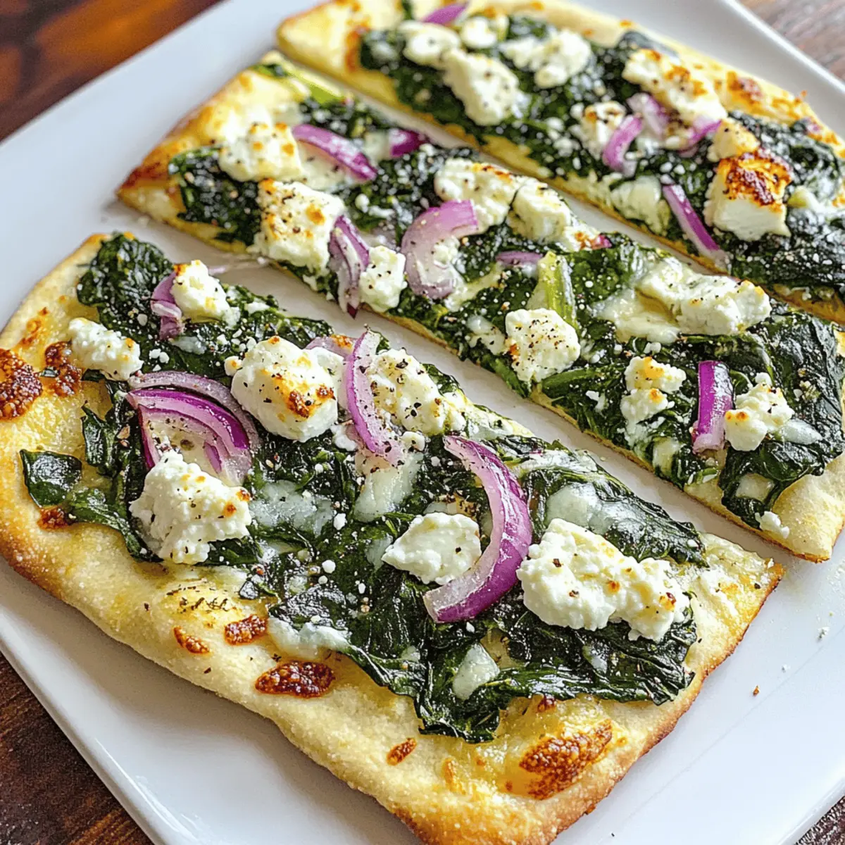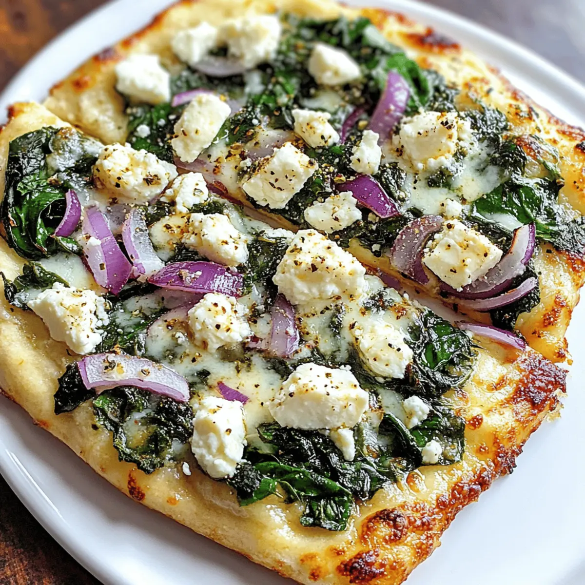 Eines der besten Dinge beim Kochen ist es, mit frischen Zutaten zu experimentieren. Ich erinnere mich an einen unbeschwerten Abend, als ich spontan eine Spinat und Feta Fladenbrot Pizza zubereitete, die sich schnell zu einem meiner Lieblingsgerichte entwickelte. Diese köstliche Pizza ist nicht nur blitzschnell zubereitet – in weniger als 20 Minuten bist du bereit zum Genießen – sondern sie ist auch perfekt für jedes Familienessen oder als Snack für deine Gäste. Die Kombination aus cremigem Feta und frischem Spinat sorgt für einen Geschmack, der überrascht und begeistert, während du ganz nach Belieben mit saisonalem Gemüse oder zusätzlichen Zutaten variieren kannst. Bist du bereit, deine eigenen Variationen auszuprobieren? Warum wirst du dieses Rezept lieben? Einfachheit: Die Zubereitung dieser Pizza ist kinderleicht und benötigt nur grundlegende Kochfähigkeiten. Schnell zubereitet: In weniger als 20 Minuten kannst du eine köstliche Mahlzeit auf den Tisch bringen. Gesunde Zutaten: Frischer Spinat und cremiger Feta machen diese Fladenbrot Pizza nicht nur lecker, sondern auch nahrhaft. Vielseitigkeit: Du kannst sie ganz nach deinem Geschmack anpassen – probiere Haehnchen Caesar Pasta oder füge saisonales Gemüse hinzu! Familienfreundlich: Diese Pizza kommt bei Groß und Klein gut an und eignet sich perfekt für ein entspanntes Abendessen. Wenig Aufwand: Perfekte Lösung für alle, die Abwechslung von Fast Food suchen! Spinat und Feta Fladenbrot Pizza Zutaten • Hier sind die Zutaten, die du für deine köstliche Spinat und Feta Fladenbrot Pizza benötigst: Für den Pizzaboden Fladenbrot – Wähle frisches Naan oder Pita für einen stabilen Boden, der die Zutaten gut hält. Mozzarella Käse – Sorgt für eine cremige, schmelzende Textur, die die Beläge zusammenhält. Für die Beläge Frischer Spinat – Bringt eine gesunde grüne Schicht; kurz anbraten, um die Feuchtigkeit zu reduzieren. Rote Zwiebeln – Fügen beim Backen einen süßen Crunch hinzu; auch roh für extra Biss möglich. Knoblauch – Frisch gehackter Knoblauch verstärkt das Geschmacksprofil der Pizza. Feta Käse – Bröckelt hervorragend darüber und verleiht der Pizza eine würzige Note. Für das Finish Olivenöl – Leicht darüberträufeln vor dem Backen, um den Geschmack zu bereichern, ohne dass es fettig wird. Schwarzer Pfeffer – Für die Würze, die den Gesamtschmack verbessert. Knoblauchpulver – Optionale Würze, um den Geschmack noch intensiver zu machen. Schritt-für-Schritt-Anleitung für Spinat und Feta Fladenbrot Pizza Step 1: Ofen vorheizen Heize deinen Ofen auf 230°C vor, oder stelle deinen Airfryer auf 200°C. Es ist wichtig, dass der Ofen gut vorgeheizt ist, damit die Fladenbrot Pizza von Anfang an knusprig wird. Bereite währenddessen ein Backblech mit Backpapier vor. Step 2: Fladenbrot vorbacken Lege das Fladenbrot auf das vorbereitete Backblech und backe es für etwa 3-4 Minuten. Dies hilft, eine feste Basis zu schaffen, bevor du die Beläge hinzufügst. Achte darauf, dass das Brot leicht goldbraun wird, bevor du fortfährst. Step 3: Käse verteilen Nimm das vorgebackene Fladenbrot aus dem Ofen und verteile gleichmäßig den Mozzarella-Käse darüber. Dieser Käse sorgt für eine cremige, schmelzende Textur, die optimal zu dem Spinat und Feta harmoniert. Step 4: Würzen Streue schwarzen Pfeffer und optional Knoblauchpulver über den Käse, um dem Geschmack der Spinat und Feta Fladenbrot Pizza eine angenehme Würze zu verleihen. Achte darauf, dass die Gewürze gleichmäßig verteilt sind, damit jeder Biss köstlich wird. Step 5: Beläge verteilen Verteile die vorbereiteten frischen Spinatblätter, die roten Zwiebeln, den gehackten Knoblauch und den zerbröckelten Feta gleichmäßig über dem Käse. Diese Zutaten sorgen für eine frische und aromatische Note in deiner Pizza. Step 6: Backen Schiebe das Blech in den vorgeheizten Ofen und backe die Pizza für 10-12 Minuten, bis der Käse blubbert und die Ränder goldbraun und knusprig sind. Du kannst auch den Airfryer verwenden und die Pizza für 4-5 Minuten backen, um ein ähnliches Ergebnis zu erzielen. Step 7: Fertigstellen und Servieren Nimm die Fladenbrot Pizza aus dem Ofen und träufele leicht Olivenöl darüber. Streue etwas Meersalz für den letzten Schliff und serviere die Pizza sofort, nachdem du sie in Stücke geschnitten hast. Genieße den köstlichen Geschmack von Spinat und Feta! Tipps für die beste Spinat und Feta Fladenbrot Pizza Mindestfeuchtigkeit: Vor dem Belegen den Spinat kurz anbraten, um überschüssige Flüssigkeit zu vermeiden. So bleibt der Pizzaboden knusprig. Simpler Käse: Verwende frischen Mozzarella für die beste Schmelzqualität. Achte darauf, nicht zu viel Käse zu verwenden, um eine Sumpf-Pizza zu verhindern. Goldene Ränder: Die Fladenbrot Pizza sollte goldbraun und knusprig gebacken werden. Überprüfe regelmäßig, um ein Verbrennen zu vermeiden. Variationen einfügen: Probiere andere saisonale Gemüsesorten wie Zucchini oder Paprika, um deine Spinat und Feta Fladenbrot Pizza zu variieren. Wärme erhalten: Zum Aufwärmen die Pizza im Ofen bei 175°C 5-7 Minuten heiß machen, statt in der Mikrowelle für mehr Knusprigkeit. Was zu Spinat und Feta Fladenbrot Pizza servieren? Genieße ein harmonisches Menü, das deine Geschmacksknospen verwöhnt und jeden Bissen zu einem Erlebnis macht. Leichter Rucolasalat: Frisch und knackig, dieser Salat mit Zitrone und Olivenöl bringt eine einfache, erfrischende Note, die die Aromen der Pizza ergänzt. Gegrillte Zucchini: Die zarte Süße der Zucchini in Kombination mit dem rauchigen Aroma schält die Geschmäcker des Spinats und Fetas in einen neuen Kontext. Hummus mit Pitabrot: Diese cremige Sauce bietet einen zusätzlichen, proteinhaltigen Snack, ideal als Beilage oder für den kleinen Hunger zwischendurch. Rotwein: Ein leichter, fruchtiger Rotwein sorgt für eine angenehme Begleitung, die die herzhaften Elemente der Pizza unterstreicht. Zitronensorbet: Ei