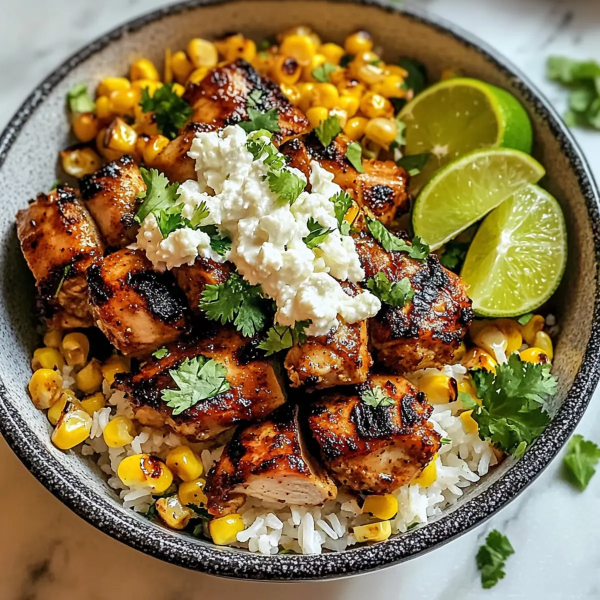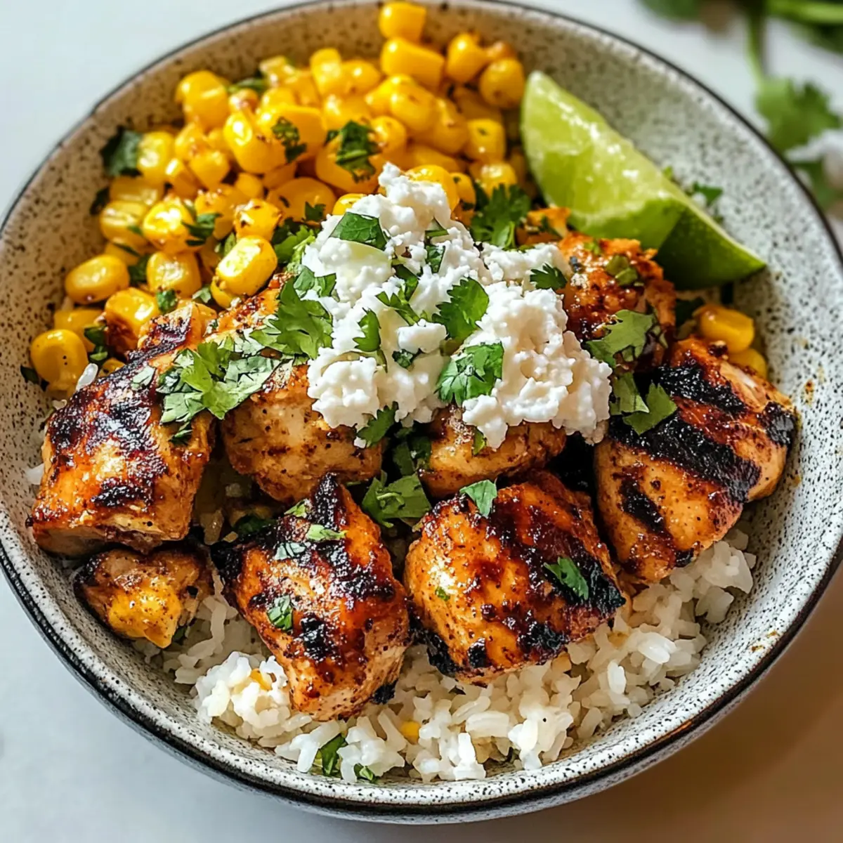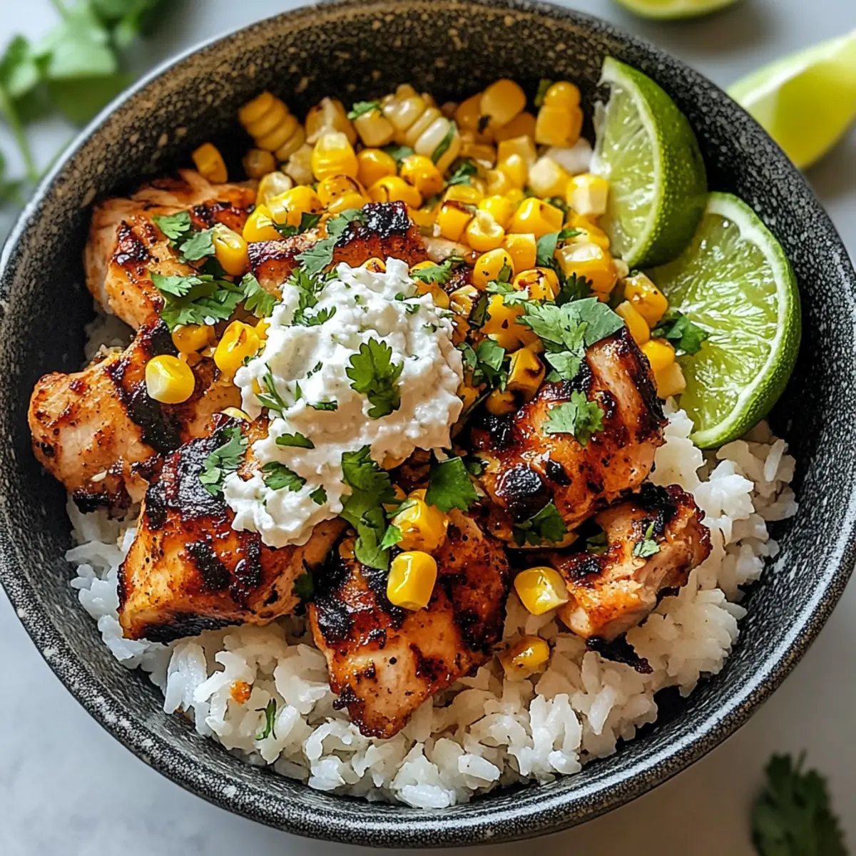 Es gibt Momente in der Küche, die den ganzen Tag erhellen – und einer dieser magischen Augenblicke ist, wenn das Aroma von frisch gegrilltem Mais und würzigen Hühnchenbruststücken durch den Raum zieht. Diese Straßenmais-Hühnchen-Reis-Bowl ist mehr als nur ein Gericht; sie ist ein Fest aus intensiven Aromen und herzhaften Texturen, die euch direkt in die Straßen Mexikos versetzen. Mit zarten, marinierten Hühnchenflügeln und dem süßen Crunch von geröstetem Mais ist dieses Rezept nicht nur schnell und einfach zuzubereiten, sondern auch ein echter Publikumsmagnet bei jedem Essen. Außerdem könnt ihr es nach Herzenslust anpassen, um alle Geschmäcker in eurer Familie oder euren Freunden zu erfreuen. Wer kann einem solch bunten, gesunden Gericht widerstehen? Lasst uns gemeinsam entdecken, wie wir diese köstliche Bowl zubereiten können! Warum ist dieses Rezept ein Hit? Vielfalt: Egal ob Fleischliebhaber oder Pflanzenfreund, die Straßenmais-Hühnchen-Reis-Bowl lässt sich ganz nach euren Vorlieben anpassen. Füge einfach abwechslungsreiche Toppings wie Jalapeños oder Avocado hinzu! Gesunder Genuss: Diese Bowl kombiniert nahrhafte Zutaten und bringt frische, gesunde Aromen auf den Tisch – ideal für jeden, der bewusster essen möchte. Einfachheit: Mit nur wenigen Schritten und Zutaten zaubert ihr ein köstliches Gericht, das perfekt für hektische Abende ist. Verführerischer Geschmack: Die Kombination aus gegrilltem Mais, würzigem Hühnchen und einer spritzigen Limetten-Sauce sorgt für ein volles Geschmackserlebnis, das eure Geschmacksknospen zum Tanzen bringt. Gemeinsames Essen: Serve die Bowls in Gesellschaft und genießt das fröhliche Miteinander, während ihr eure Kreationen zusammenstellt – ideal für weniger formelle Abende! Suchst du nach weiteren leckeren Rezeptideen? Probiere die Taco Reis Suppe oder die Hähnchen Reis Bowl mit cremiger Knoblauchsauce. Zutaten für die Straßenmais-Hühnchen-Reis-Bowl Für das Hühnchen • Hühnchenbrustfilets – Hauptprotein, zart und voller Geschmack; kann durch Hähnchenschenkel ersetzt werden für noch mehr Saftigkeit. • Limettensaft – Bringt Säure und Frische in die Marinade; frischer Saft sorgt für das beste Aroma. • Avocadoöl – Ideal für Marinieren und Braten, fügt reichhaltigen Geschmack hinzu; kann auch mit Olivenöl ersetzt werden. • Chili-Pulver – Gibt eine angenehme Schärfe; Menge je nach gewünschtem Schärfegrad anpassen. • Knoblauchpulver – Verstärkt die Geschmacksintensität; frischer Knoblauch kann alternativ verwendet werden. • Salz und schwarzer Pfeffer – Essentielle Gewürze für den Geschmack; nach Belieben anpassen. Für das Straßenmaistopping • Süßer Mais – Schlüsselzutat für den Street-Corn-Geschmack, gut geröstet für das rauchige Aroma; gefrorenen Mais nutzen und grillen für den besten Geschmack. • Rotzwiebel, dünn geschnitten – Bringt Schärfe und Farbe ins Topping. • Sauerrahm – Fügt Cremigkeit zum Topping hinzu; für eine milchfreie Variante, verwendete milchfreie Sauerrahm. • Mayonnaise – Erhöht die Cremigkeit und wirkt als Bindemittel im Topping. • Cotija-Käse – Fügt eine salzige, cremige Note hinzu; geriebener Parmesan kann als Ersatz dienen. Für die Bowl • Gekochter Reis – Basis für die Bowl, bietet Füllung und Struktur; kann mit Quinoa oder Blumenkohlreis für eine gesündere Option ersetzt werden. • Frischer Koriander – Für die Garnierung, bringt Frische und Farbe. • Limettenschnitze – Dienen als Garnierung und zusätzlichen Geschmacksträger. Genau diese Zutaten machen die Straßenmais-Hühnchen-Reis-Bowl zu einem köstlichen, anpassbaren Gericht, das der ganzen Familie schmeckt! Step-by-Step Instructions für die Straßenmais-Hühnchen-Reis-Bowl Step 1: Hühnchen marinieren Mische in einer Schüssel den Limettensaft, das Avocadoöl, Chili-Pulver, Knoblauchpulver, Salz und Pfeffer. Lege die Hühnchenbrustfilets in die Marinade und stelle sicher, dass sie gleichmäßig bedeckt sind. Lass das Hühnchen für 15 bis 30 Minuten ruhen, damit die Aromen gut einziehen können. Währenddessen kannst du die anderen Zutaten bereitstellen. Step 2: Hühnchen braten Erhitze eine große Pfanne auf mittlerer bis hoher Hitze. Lege die marinierten Hühnchenbrustfilets in die heiße Pfanne und brate sie für etwa 8 bis 10 Minuten pro Seite, bis sie goldbraun sind und eine Kerntemperatur von 75 °C erreicht haben. Lass das Hühnchen nach dem Braten einige Minuten ruhen und schneide es dann in dünne Scheiben. Step 3: Straßenmaistopping zubereiten Grille den süßen Mais, bis er leicht verbrannt ist, um einen rauchigen Geschmack zu erzielen. In einer Schüssel kombiniere die gegrillten Maiskörner mit der dünn geschnittenen Rotzwiebel, Sauerrahm, Mayonnaise, Cotija-Käse und Chili-Pulver. Vermische alles gründlich und schmecke das Topping mit Salz, Pfeffer und etwas Limettensaft ab, um die Aromen zu harmonisieren. Step 4: Reis aufwärmen Gib den gekochten Reis in einen kleinen Topf und füge einen Spritzer Wasser hinzu, um ihn beim Erwärmen feucht zu halten. Erhitze den Reis bei mittlerer Hitze für etwa 5 Minuten, bis er warm und locker ist. Achte darauf, ihn regelmäßig umzurühren, damit er gleichmäßig erwärmt wird. Step 5: Bowls anrichten Teile den warmen Reis gleichmäßig auf Schalen auf. Lege die in Scheiben geschnittenen Hühnchenbrustfilets darauf und füge dann großzügig das Straßenmaistopping hinzu. Garniere die Bowls mit zusätzlichem Cotija-Käse, frischem Koriander und Limettenschnitzen für einen zusätzlichen Geschmackskick. Serviere die Straßenmais-Hühnchen-Reis-Bowls sofort und genieße die Aromen! Was passt zur Straßenmais-Hühnchen-Reis-Bowl? Diese köstliche Bowl ist nicht nur ein Genuss für den Gaumen, sondern bietet auch unzählige Möglichkeiten zur Ergänzung eines vollwertigen, geselligen Essens. Cremige Guacamole: Diese frische, cremige Avocado-Mischung bringt eine perfekte Kombination mit dem w