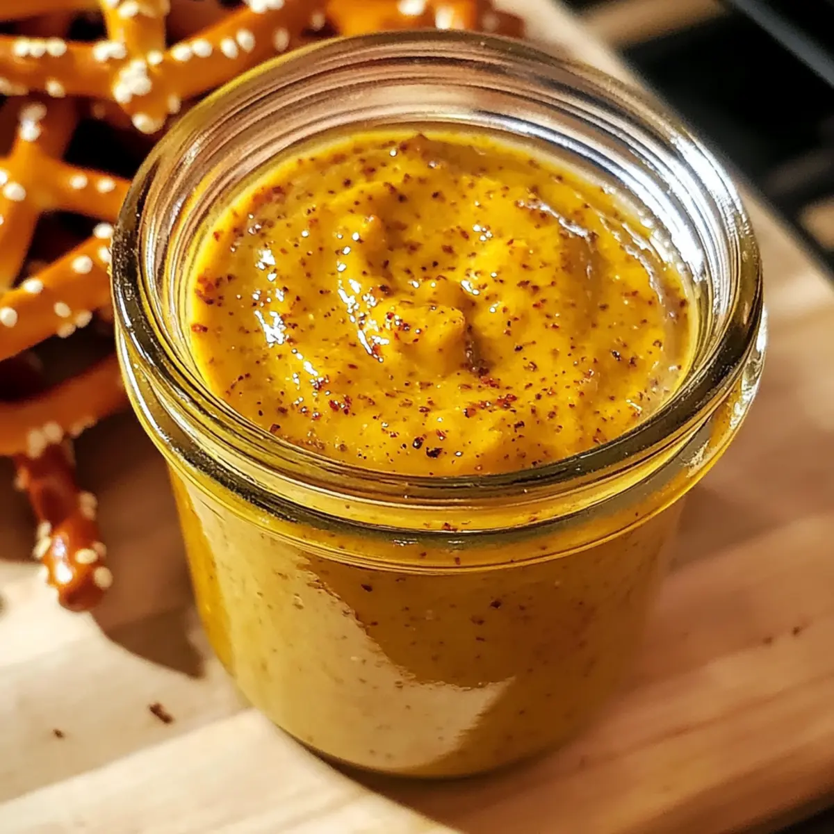 Wusstest du, dass ein einfacher Senf deine Küche in eine lebhafte Mardi Gras-Feier verwandeln kann? Mit diesem Rezept für süßen und würzigen Mardi Gras Senf bringst du den unverwechselbaren Geschmack dieses Festes direkt auf deinen Tisch. Dieser hausgemachte Senf vereint eine harmonische Mischung aus süßer, scharfer und tangy Note und ist dabei blitzschnell zubereitet – in nur 25 Minuten! Er lässt sich einfach aus pantryfreundlichen Zutaten herstellen und ist perfekt für alle, die schnelle und köstliche Beilagen lieben, ohne auf die Qualität zu verzichten. Egal, ob du ihn zu Sandwiches, Brezeln oder als besondere Zutat für Dressings kombinierst, dieser Senf bringt frischen Schwung in deine Alltagsgerichte. Bist du bereit, deine Geschmacksnerven zu überraschen? Warum ist dieser Senf so besonders? Einzigartiger Geschmack: Die Kombination aus süßem Honig, würzigem Cayenne und tangigem Apfelessig sorgt für ein Geschmackserlebnis, das begeistert. Einfach zubereitet: In nur 25 Minuten kannst du diesen Senf selbst machen – mehr braucht es nicht, um etwas Außergewöhnliches zu kreieren. Vielseitig einsetzbar: Ob als Dip für Brezeln, Aufstrich auf Sandwiches oder als Kick in Salatdressings, dieser Senf lässt sich in vielen Gerichte integrieren. Gesund und hausgemacht: Mit natürlichen, glutenfreien Zutaten beweist du, dass gesundes Essen auch sehr lecker sein kann. Perfekt für Feiern: Bring die lebendige Atmosphäre von Mardi Gras in deine Küche und beeindrucke deine Gäste mit diesem besonderen Condiment! Probiere auch unsere Gnocchi mit grünem Spargel und Parmesan für eine vollständige festliche Mahlzeit. Süßer und würziger Mardi Gras Senf Zutaten • Hier sind die Zutaten, die du für deinen eigenen süßen und würzigen Mardi Gras Senf benötigst: Für die Senf Basis Senfkörner – Sie bringen Biss und Textur; verwenden gleichmäßig gelbe und braune Senfkörner für ein ausgewogenes Ergebnis. Apfelessig – Er sorgt für eine lebhafte Säure; kann bei Bedarf durch weißen Essig ersetzt werden. Honig oder brauner Zucker – Diese Zutaten geben die nötige Süße, um die Schärfe des Senfs auszugleichen; passe die Menge nach deinem Geschmack an, oder nutze Ahornsirup als Alternative. Für die Gewürzmischung Paprika – Sie fügt Wärme und eine schöne Farbe hinzu; für einen rauchigen Geschmack, verwende geräucherte Paprika. Cayenne-Pfeffer – Er verleiht dem Senf die nötige Schärfe; reduziere die Menge nach Geschmack oder lasse sie weg für eine mildere Variante. Kurkuma – Dieses Gewürz sorgt für einen kräftigen Gelbton und zusätzlichen Geschmack; ist jedoch optional. Salz – Es verstärkt das gesamte Aroma; verwende koscheres oder Meersalz für den besten Geschmack. Schritt-für-Schritt-Anleitung für Süßer und würziger Mardi Gras Senf Step 1: Senfkörner einweichen Gib die Senfkörner in eine Schüssel und füge genügend Wasser und den Apfelessig hinzu, um sie vollständig zu bedecken. Lasse die Mischung 12 bis 24 Stunden einweichen, damit sich die Aromen entfalten und die Körner weicher werden. Du erkennst, dass die Senfkörner bereit sind, wenn sie aufgequollen und leicht transparent erscheinen. Step 2: Gewürzmischung vorbereiten Während die Senfkörner einweichen, vermische in einer kleinen Schüssel die Paprika, den Cayenne-Pfeffer, den Kurkuma und das Salz. Dieser Schritt ist wichtig, um eine gleichmäßige Verteilung der Gewürze zu gewährleisten. Achte darauf, die Mischung gut zu kombinieren, damit die Aromen harmonisch zusammenwirken, während der Senf entsteht. Step 3: Mischung kochen Nimm einen kleinen Topf und füge die eingeweichten Senfkörner, den verbleibenden Apfelessig und den Honig (oder braunen Zucker) hinzu. Erhitze die Mischung bei mittlerer bis niedriger Hitze und rühre ständig um, bis sie anfängt zu köcheln. Die Mischung sollte etwa 5-7 Minuten kochen, bis sie leicht eindickt und aromatisch duftet. Step 4: Senf pürieren Sobald die Mischung die richtige Konsistenz erreicht hat, gieße sie in einen Standmixer oder benutze einen Stabmixer, um den Senf zu pürieren. Mixe die Zutaten, bis der Senf die gewünschte Cremigkeit hat – je länger du pürierst, desto glatter wird die Textur. Halte Ausschau nach einer leicht körnigen, aber geschmeidigen Konsistenz. Step 5: Abkühlen und aufbewahren Lasse den frisch zubereiteten Süßen und würzigen Mardi Gras Senf auf Raumtemperatur abkühlen. Anschließend fülle ihn in ein sauberes, luftdichtes Glas. Bewahre den Senf im Kühlschrank auf; die Aromen entwickeln sich im Laufe der Zeit und verbessern den Geschmack. Beachte, dass er bis zu 4-6 Wochen haltbar ist. Was passt gut zu süßem und würzigem Mardi Gras Senf? Dieser Senf bringt einen Hauch von Karneval auf deinen Tisch und lässt sich perfekt in eine Vielzahl von Gerichten integrieren. Knusprige Brezeln: Diese Kombination bietet den perfekten Kontrast zwischen der salzigen, knusprigen Textur der Brezeln und der süß-würzigen Cremigkeit des Senfs. Saftige Bratwürste: Der Senf verleiht den Bratwürsten eine pikante Note, die das herzhaftes Aroma perfekt ergänzt und das Geschmackserlebnis intensifiziert. Gegrilltes Gemüse: Ein toller Partner für geröstetes Gemüse, der mit seiner süß-scharfen Note den natürlichen Geschmack abrundet und in der Grillzeit überzeugt. Burgersaucen: Mische den Senf mit Joghurt oder Mayonnaise für eine aufregende, hausgemachte Sauce, die deinen Burger abhebt. Frischer Garten-Salat: Verleihe deinem Salat mit einem Esslöffel Senf ein aufregendes Dressing – perfekt für den frischen Kick! Abendliches Käsebrett: Serviere ihn als Dip zu einer Vielzahl von Käsesorten; die Süße des Senfs harmoniert wunderbar mit herzhaften Käsesorten. Fruchtige Desserts: Verwende den Senf als ungewöhnliche Begleitung zu Käsekuchen oder ähnlichen Desserts, um die süßen Aromen zu intensivieren. Mit diesen Ideen wird dein süßer und würziger Mardi Gras Senf zum Star deiner nächsten Mahlze