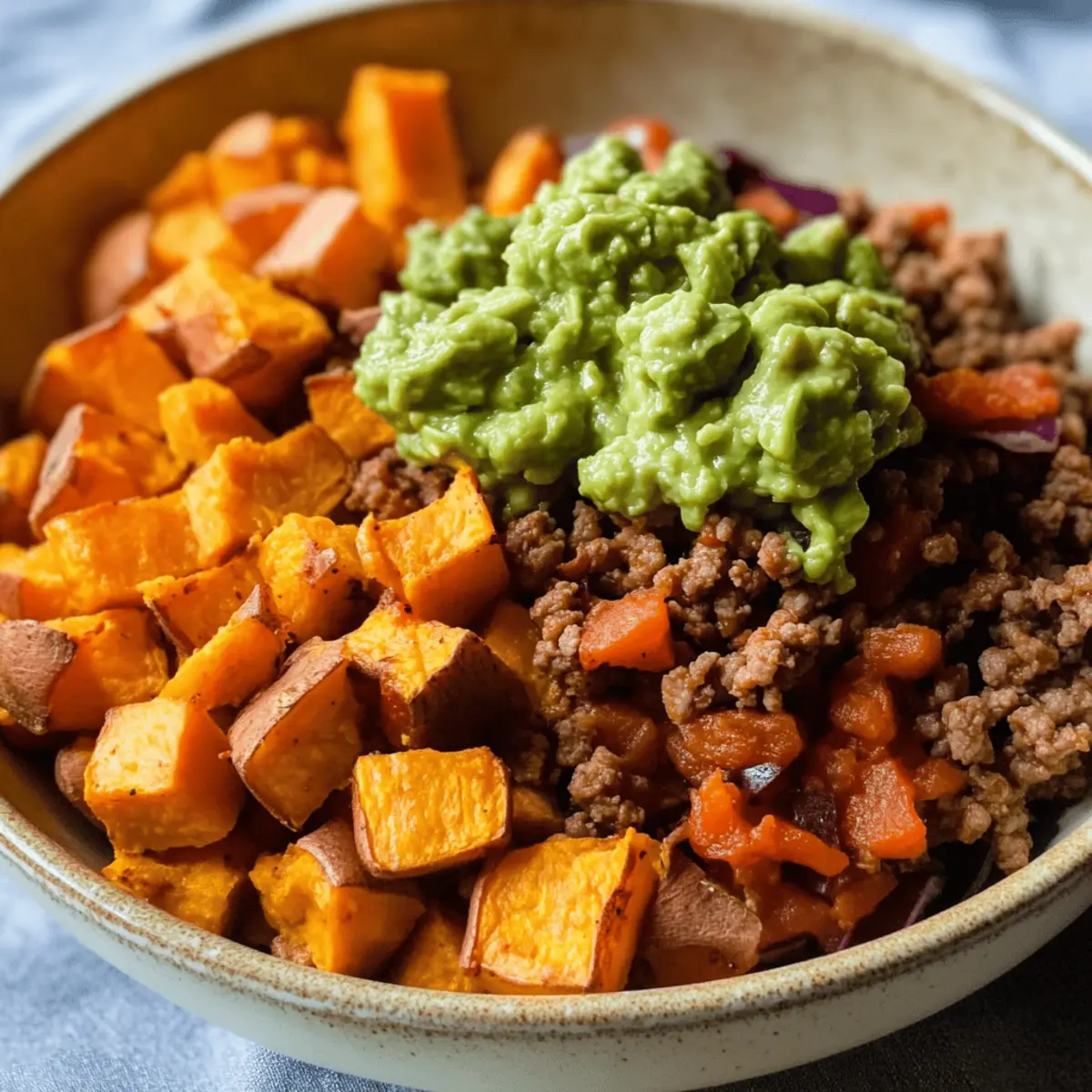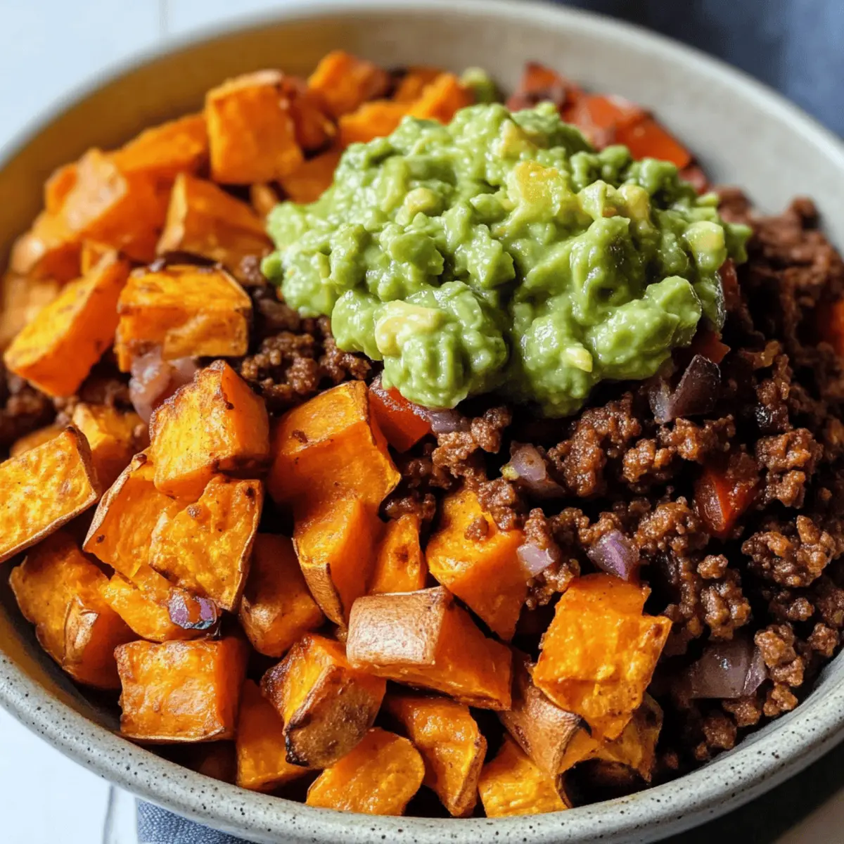 Stell dir vor, du kommst nach einem langen Tag nach Hause und der köstliche Duft frisch gerösteter Süßkartoffeln erfüllt die Luft. Genau das erwartet dich bei dieser fantastischen Süßkartoffel Burrito Schüssel! Diese gesunde und vielseitige Bowl kombiniert knusprige Süßkartoffeln mit würzigem Hackfleisch und cremiger Guacamole – alles in einem bunten Gericht, das deinen Gaumen erfreuen wird. Das Beste? Du kannst sie ganz nach deinen Wünschen anpassen – ob mit veganem Hack oder zusätzlichen Toppings wie Salsa und Koriander. Diese Schüssel ist nicht nur ein Genuss für die Sinne, sondern sorgt auch dafür, dass du schnell ein zufriedenstellendes Abendessen zubereiten kannst. Bist du bereit, deine eigene süße Geschmacksexplosion zu kreieren? Warum wirst du diese Burrito Schüssel lieben? Gesund und Nahrhaft: Mit Süßkartoffeln als Hauptzutat erhältst du eine Vielzahl an Nährstoffen und natürlichen Süße. Einfache Zubereitung: Dieses Rezept erfordert nur grundlegende Kochkenntnisse und ist in weniger als einer Stunde fertig. Vielseitig und Anpassbar: Ob vegan, vegetarisch oder mit Fleisch – du kannst die Zutaten ganz nach deinem Geschmack variieren. Perfekte Balance: Jeder Biss kombiniert die Aromen von knusprigen Süßkartoffeln, herzhaftem Fleisch und cremiger Guacamole für ein unvergessliches Geschmackserlebnis. Großartig für jeden Anlass: Ideal für ein schnelles Abendessen oder ein gemütliches Treffen mit Freunden! Probiere auch unsere Gemuesegefuellte Puten Rollen oder die Suesskartoffel Pfanne aus – beide sind ebenso köstlich und einfach zuzubereiten! Süßkartoffel Burrito Schüssel Zutaten Für die Bowl Süßkartoffel – Sie bildet die Basis der Bowl und liefert natürliche Süße sowie Ballaststoffe. Mageres Hackfleisch – Fügt Protein hinzu; kann durch veganes Hack oder Tofu ersetzt werden. Zwiebel – Für zusätzlichen Geschmack und Süße; kann durch Schalotten ersetzt werden, um den Geschmack abzumildern. Tomatenmark – Verleiht Tiefe und Umami-Geschmack; frische Tomaten können in der Not verwendet werden. Mais – sorgt für Süße und Textur; kann auch durch schwarze Bohnen für einen anderen Geschmack ersetzt werden. Kidneybohnen – Fügt Protein und Ballaststoffe hinzu; jede Bohnensorte kann verwendet werden. Ölspray – Zum Anbraten verwendet; Olivenöl kann bei Bedarf auch genutzt werden. Paprikapulver – Verleiht Würze und Farbe; geräuchertes Paprikapulver kann den Geschmack ausbauen. Salz – Grundlegend für die Würze; nach Geschmack anpassen. Oregano – Fügt einen kräuterigen Geschmack hinzu; kann durch italienische Gewürzmischung ersetzt werden. Für die Guacamole Avocado – Hauptzutat für die Guacamole; frisch ist am besten, aber es kann auch fertige verwendet werden. Tomate (für Guacamole) – Sorgt für Frische; verschiedene Sorten können für Geschmacksvariationen verwendet werden. Schalotte – Mild im Geschmack für die Guacamole; rote Zwiebel kann für einen schärferen Geschmack verwendet werden. Zitronensaft – Bringt Frische in die Guacamole; Limettensaft kann alternativ verwendet werden. Tipp: Diese Süßkartoffel Burrito Schüssel ist nicht nur gesund, sondern auch ein Genuss für alle, die sich eine individuelle Geschmacksexplosion wünschen! Schritt-für-Schritt-Anleitung für die Süßkartoffel Burrito Schüssel Step 1: Ofen Vorheizen Heize den Ofen auf 180°C vor. Schäle und schneide die Süßkartoffeln in gleichmäßige Würfel von etwa 2 cm. Würze sie mit Salz und Paprikapulver, um einen intensiven Geschmack zu erzielen. Bereite ein Backblech mit Backpapier vor, damit die Süßkartoffeln beim Rösten nicht ankleben. Step 2: Süßkartoffeln Rösten Verteile die gewürzten Süßkartoffelwürfel gleichmäßig auf dem Backblech. Röste sie im vorgeheizten Ofen für etwa 25 Minuten, oder bis sie goldbraun und knusprig sind. Achte darauf, sie nach der Hälfte der Backzeit einmal umzudrehen, um eine gleichmäßige Bräunung zu erreichen. Step 3: Zwiebel Anbraten Während die Süßkartoffeln im Ofen sind, schäle und hacke die Zwiebel fein. Erhitze eine Pfanne bei mittlerer Hitze und spraye etwas Ölspray hinein. Gib die Zwiebel in die Pfanne und brate sie für etwa 3-4 Minuten an, bis sie weich und leicht durchscheinend ist. Step 4: Hackfleisch und Tomatenmark Hinzufügen Füge das mageres Hackfleisch sowie das Tomatenmark zur Zwiebel in der Pfanne hinzu. Brate die Mischung unter gelegentlichem Rühren für etwa 5-7 Minuten, bis das Fleisch braun und krümelig wird. Achte darauf, dass das Hackfleisch gut durchgegart ist, aber nicht austrocknet. Step 5: Bohnen und Mais Hinzufügen Spüle den Mais und die Kidneybohnen gründlich ab, um überschüssiges Natrium zu entfernen. Füge die Bohnen und den Mais zur Hackfleischmischung in der Pfanne hinzu und würze alles mit etwas Salz und Oregano. Koche das Ganze für weitere 2-3 Minuten, damit sich die Aromen gut verbinden. Step 6: Guacamole Zubereiten Während die Füllung kocht, bereitest du die Guacamole vor. Halbiere die Avocado, entferne den Kern und püriere das Fruchtfleisch in einer Schüssel. Mische dazu die gewürfelte Tomate, die gehackte Schalotte, den Zitronensaft und eine Prise Salz, um eine cremige Textur zu erhalten. Step 7: Anrichten und Servieren Wenn die Süßkartoffeln schön gebräunt und knusprig sind, nimm sie aus dem Ofen. Um die Süßkartoffel Burrito Schüssel zusammenzustellen, schichte die knusprigen Süßkartoffeln, die würzige Hackfleischmischung und die frische Guacamole in Schalen. Diese Schüssel ist nicht nur ein Genuss, sondern auch eine perfekte Mahlzeit! Tipps für die beste Süßkartoffel Burrito Schüssel Ideale Backzeit: Achte darauf, die Süßkartoffeln 25 Minuten zu rösten, bis sie goldbraun sind. So erhältst du eine perfekte Konsistenz. Fleisch nicht übergaren: Stelle sicher, dass das Hackfleisch vollständig durchgegart ist, aber achte darauf, es nicht auszutrocknen. Das sorgt für optimalen Geschmack. Guacamol