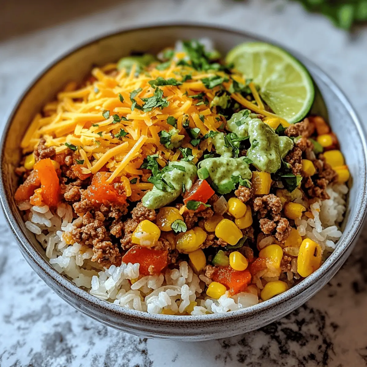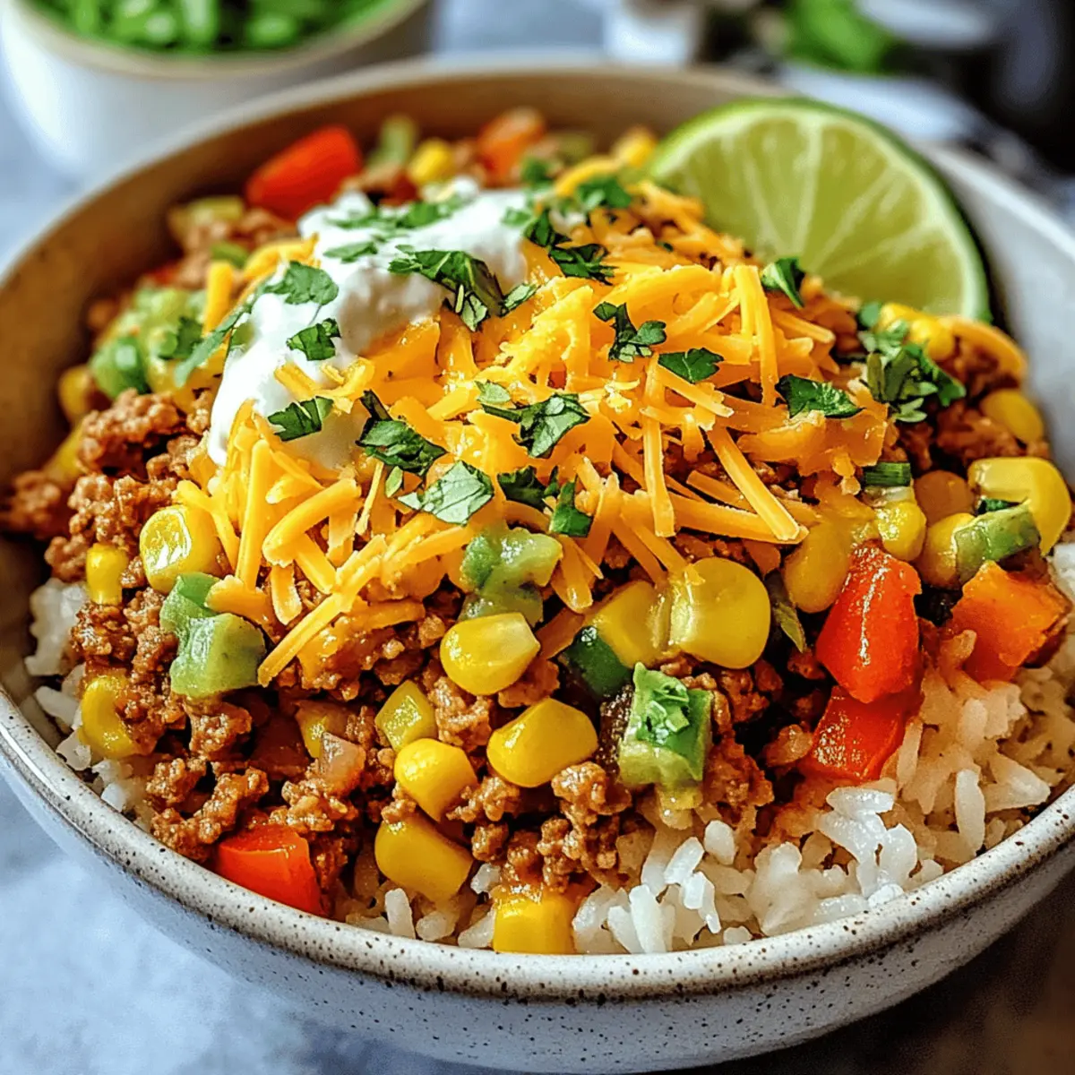 Eines Abends saß ich mit Freunden zusammen und wir fragten uns, was wir zaubern könnten, das sowohl lecker als auch schnell zubereitet ist. Genau in diesem Moment fiel mir die Taco-Reis-Bowl ein! Diese vielseitige und nahrhafte mexikanische Speise vereint die lebhaften Aromen der mexikanischen Küche in einer Schüssel. Sie ist perfekt für schnelle Abendessen oder als festliches Gericht und kann ganz nach deinem persönlichen Geschmack abgewandelt werden. Ob mit Rindfleisch, Hähnchen oder einer vegetarischen Variante, diese Bowl bietet nicht nur eine gesunde Portion Protein, sondern ist auch glutenfrei anpassbar. Und das Beste daran? Du kannst sie easy für die Woche vorbereiten oder als Buffet-Highlight servieren. Neugierig, wie du diese köstliche Bowl für deine nächste Mahlzeit kreieren kannst? Lass uns direkt in das Rezept eintauchen! Warum ist die Taco-Reis-Bowl so beliebt? Vielseitigkeit: Die Taco-Reis-Bowl lässt sich ganz nach deinem Geschmack anpassen – ob mit verschiedenen Proteinquellen oder Gemüse! Gesundheit: Mit einer Mischung aus frischen Zutaten und Gewürzen erhältst du eine nahrhafte und proteinreiche Mahlzeit. Einfache Zubereitung: In nur 30 Minuten bereit, ist sie der perfekte Begleiter für hektische Abende oder lockere Zusammenkünfte. Crowd-Pleaser: Egal ob Familie oder Freunde, diese Bowl begeistert jeden, da sie individuell gestaltet werden kann. Schneller Genuss: Ideal für Meal Prep – bereite die Zutaten vor und genieße die Bowl wann immer du Hunger hast! Damit du noch mehr Inspiration bekommst, schau dir auch unsere Meal Prep Tipps und Tricks an! Taco-Reis-Bowl Zutaten • Entdecke die frischen und gesunden Zutaten für deine Taco-Reis-Bowl! Für den Reis Reis – Die Basis deiner Bowl; sorgt für eine sättigende Grundlage. Substitution: Quinoa oder Blumenkohlreis für eine glutenfreie Variante. Für das Gemüse Öl – Zum Anbraten deines Gemüses und zur Aromatisierung. Substitution: Verwende Pflanzenöl oder Butter für einen anderen Geschmack. Zwiebel – Füge Geschmack und eine süße Note hinzu; am besten fein gehackt verwenden. Knoblauch – Sorgt für zusätzlichen, herzhaften Geschmack – ebenfalls fein hacken. Paprika – Bringt nicht nur Farbe, sondern auch Crunch in deine Bowl; du kannst auch Zucchini oder Karotten nutzen. Mais – Für eine süße, zarte Textur in jedem Bissen; als Alternative könnten auch schwarze Bohnen fungieren. Für das Protein Hackfleisch (Rind oder Geflügel) – Hauptquelle für Protein in dieser Bowl; für die vegetarische Variante sind Soja- oder Linsenhack ideal. Für die Gewürze Gewürze (Kreuzkümmel, Paprikapulver, Chili-Pulver) – Diese verleihen deiner Taco-Reis-Bowl den typischen Geschmack; nach Lust und Laune anpassen! Salz/Pfeffer – Für die essentielle Würze, um die Aromen zu unterstreichen. Für das Topping Käse – Gibt deiner Bowl eine cremige Note; verwende geriebenen Käse oder vegane Alternativen und lass ihn ganz weg, wenn du möchtest. Koriander und Limette – Frische Garnitur, die Aromen aufpeppt und für einen zusätzlichen Kick sorgt! Jetzt bist du bereit, deine eigene köstliche Taco-Reis-Bowl zuzubereiten! Schritt-für-Schritt-Anleitung für die Taco-Reis-Bowl Step 1: Reis kochen Spüle den Reis unter kaltem Wasser ab, um überschüssige Stärke zu entfernen. Koche ihn anschließend in einem großen Topf mit leicht gesalzenem Wasser bei mittlerer Hitze für etwa 10-15 Minuten, bis der Reis zart und das Wasser vollständig aufgesogen ist. Sobald er fertig ist, nimm ihn vom Herd und lass ihn kurz ruhen, während du die anderen Zutaten vorbereitest. Step 2: Zwiebeln und Knoblauch anbraten Erhitze in einer großen Pfanne bei mittlerer Hitze einen Esslöffel Öl. Füge die fein gehackte Zwiebel und den Knoblauch hinzu und brate sie für etwa 3-4 Minuten an, bis sie glasig und aromatisch sind. Achte darauf, dass der Knoblauch nicht anbrennt, da er sonst bitter wird. Diese Basis verleiht deiner Taco-Reis-Bowl einen köstlichen Geschmack. Step 3: Hackfleisch anbraten Gib das gewählte Hackfleisch – ob Rind oder Geflügel – in die Pfanne und brate es bei mittlerer Hitze für ungefähr 5-7 Minuten an, bis es durchgegart und schön gebräunt ist. Rühre regelmäßig um, damit es gleichmäßig gart. Wenn du eine vegetarische Option bevorzugst, verwende Soja- oder Linsenhack anstelle von Fleisch. Step 4: Gemüse hinzufügen Sobald das Hackfleisch gar ist, füge die gewürfelte Paprika und den Mais in die Pfanne hinzu. Rühre alles gut um und lasse es für etwa 2-3 Minuten mitbraten, bis das Gemüse leicht weich, aber noch knackig ist. Dieses frische Gemüse sorgt für Farbe und Textur in deiner Taco-Reis-Bowl. Step 5: Gewürze einarbeiten Streue die Gewürze – Kreuzkümmel, Paprikapulver und Chili-Pulver – über die Gemüsemischung und würze alles mit Salz und Pfeffer nach Geschmack. Rühre die Gewürze gründlich ein, damit sich die Aromen gut entfalten können. Lass das Ganze für eine weitere Minute auf der Hitze, damit die Gewürze ihre volle Kraft entfalten. Step 6: Reis untermischen Füge nun den gekochten Reis in die Pfanne und vermenge alles gut miteinander. Lasse die Mischung für 2-3 Minuten bei niedriger Hitze ziehen, damit sich die Aromen perfekt verbinden. Achte darauf, den Reis sanft unterzumischen, damit er nicht zerfällt und die Taco-Reis-Bowl ihre köstliche Textur behält. Step 7: Servieren und garnieren Sobald alles gut vermischt und erhitzt ist, serviere die Taco-Reis-Bowl in Schüsseln. Garniere sie nach Belieben mit geriebenem Käse, frischem Koriander und einem Spritzer Limettensaft. Diese frischen Zutaten heben die Aromen hervor und machen deine Taco-Reis-Bowl zu einem echten Genuss. Meal Prep für die Taco-Reis-Bowl Die Taco-Reis-Bowl ist ideal für eine Vorausplanung, besonders für vielbeschäftigte Köche! Du kannst den Reis bis zu 3 Tage im Voraus kochen und im Kühlschrank aufbewahren, um bei Bedarf Zeit zu sparen. Das Hackfleisch kann ebenfalls vo
