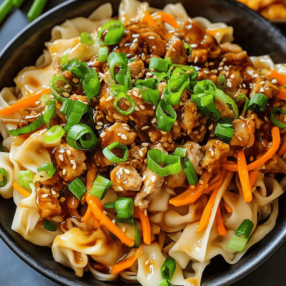 Ich kann mich noch gut an die Tage erinnern, als ich versuchte, die perfekten Teigtaschen zu falten und am Ende in einer massiven Sauerei landete. Solche Herausforderungen gehören der Vergangenheit an! Mit den Teigtaschen in einer Schüssel entfaltet sich endlich der unverwechselbare Geschmack dieser beliebten asiatischen Spezialität – ohne die aufwendigen Falttechniken. Diese schnelle und einfache Rezeptur vereint die köstlichen Aromen von Ingwer, Knoblauch, Sesam und Soja in einer wärmenden Schüssel, vollgepackt mit würzigem Hackfleisch, knackigem Gemüse und zarten Nudeln, die in weniger als 30 Minuten zubereitet werden können. Perfekt für stressige Wochentage, bietet dieses Gericht nicht nur eine schnelle Lösung, sondern lässt sich auch anpassen, um jeder Vorliebe gerecht zu werden. Neugierig, wie dieser neue Klassiker auf deinem Esstisch glänzen kann? Warum sind Teigtaschen in einer Schüssel genial? Genuss ohne Aufwand: Die Zubereitung ist einfach und spare dir das Falten von Teigtaschen! Aromen vereint: Die Kombination aus Ingwer, Knoblauch, und Sojasauce macht jede Schüssel zu einem Geschmackserlebnis. Familienfreundlich: Dieses Rezept ist perfekt für die ganze Familie und lässt sich leicht anpassen. Schnell zubereitet: In weniger als 30 Minuten kannst du ein köstliches Gericht genießen. Vielseitigkeit pur: Ob mit Hackfleisch, Tofu oder noch mehr Gemüse – hier kannst du kreativ sein! Probiere auch einmal die Gemuesegefuellte Puten Machen für eine weitere zur Abwechslung. Teigtasche in einer Schüssel Zutaten • Entdecke die besten Zutaten für dein köstliches Gericht! Für das Hackfleisch Hackfleisch – Die Hauptquelle für Protein, die für einen herzhaften Geschmack sorgt. Ändere es zu Hähnchen, Pute oder zerbröckeltem Tofu für eine leichtere Variante. Für die Aromastoffe Sesamöl – Verleiht ein nussiges Aroma und Geschmack. Bei Bedarf kannst du auch andere Öle verwenden. Gehackter Knoblauch – Intensiviert den Geschmack mit seinem aromatischen Profil. Frischer Knoblauch ist hier am stärksten. Frisch geriebener Ingwer – Sorgt für einen würzigen Kick. In der Not kannst du auch gemahlenen Ingwer nutzen, jedoch ist frisch besser für den Geschmack. Sojasauce – Fügt umami und Salz hinzu. Wähle eine natriumarme Version für weniger Salzgehalt. Hoisin-Sauce – Eine süß-savory Ergänzung. Lasse sie weg oder ersetze sie durch eine Mischung aus Sojasauce und Zucker, wenn sie nicht verfügbar ist. Reisessig – Für die Säure, die die Aromen ausbalanciert. Jede milde Essigsort kann als Ersatz dienen. Sriracha oder Chilisauce – Optional für eine scharfe Note. Passe die Menge je nach persönlicher Vorliebe an. Für die Gemüse Geraspelter Kohl oder Coleslaw-Mix – Verleiht Knusprigkeit und Textur. Ähnliches Gemüse wie Pak Choi kann ebenfalls verwendet werden. Geraspelte Karotten – Sorgt für Süße und Farbe. Du kannst auch andere bevorzugte Gemüse wie Paprika verwenden. Frühlingszwiebeln – Frische Garnitur, die den Geschmack hebt. Ersetze sie durch Schnittlauch, wenn gewünscht. Für die Basis Nudeln (Reis- oder Lo-Mien-Nudeln) – Der Grundbaustein des Gerichts. Ramen oder sogar Spaghetti können als Alternativen dienen. Optionales Topping Sesamkörner – Für einen zusätzlichen crunchigen Biss. Zusätzliche Frühlingszwiebeln – Für extra Frische und Farbe. Chiliflocken – Für eine scharfe, würzige Note. Diese Teigtasche in einer Schüssel ist eine köstliche und anpassbare Mahlzeit, die den unverwechselbaren Geschmack von traditionellen Teigtaschen in einem schnellen Rezept vereint! Schritt-für-Schritt-Anleitung für Teigtasche in einer Schüssel Step 1: Nudeln kochen Bringe einen großen Topf mit Wasser zum Kochen. Füge die Reis- oder Lo-Mien-Nudeln hinzu und koche sie nach Packungsanleitung. Rühre gelegentlich um, damit sie nicht zusammenkleben. Nach etwa 4–6 Minuten sollten die Nudeln al dente sein. Gieße sie ab und spüle sie kurz unter kaltem Wasser, um den Garprozess zu stoppen. Stelle die Nudeln beiseite, während du den Rest des Gerichts zubereitest. Step 2: Hackfleisch anbraten Erhitze in einer großen Pfanne bei mittelhoher Temperatur 1 Esslöffel Sesamöl. Gib das Hackfleisch hinein und zerbrich es mit einem Holzlöffel, während es anbrät. Brate das Fleisch für etwa 5-7 Minuten, bis es gleichmäßig gebräunt und durchgegart ist. Achte darauf, dass es nicht mehr rosa ist. Lasse überschüssiges Fett abtropfen und halte das gebratene Fleisch warm. Step 3: Aromastoffe und Soße hinzufügen Reduziere die Hitze auf mittel. Füge den gehackten Knoblauch und den frisch geriebenen Ingwer zum Hackfleisch in der Pfanne hinzu. Rühre alles gut um und lasse es 2–3 Minuten anschwitzen, bis die Aromen freigesetzt werden. Danach gibst du Sojasauce, Hoisinsauce (falls verwendet), Reisessig und Sriracha hinzu. Rühre alles gut um, bis die Soße gleichmäßig verteilt ist und die Mischung köchelt. Step 4: Gemüse einarbeiten Füge den geraspelten Kohl und die Karotten zur Hackfleischmischung in der Pfanne hinzu. Sauté diese für etwa 3–4 Minuten, bis das Gemüse leicht verwelkt, aber noch knackig bleibt. Rühre alles gut um, damit sich die Aromen verbinden und das Gemüse gleichmäßig garen kann. Step 5: Mit Nudeln kombinieren Streue die vorbereiteten Nudeln in die Pfanne zu der weiteren Mischung. Füge die gehackten Frühlingszwiebeln hinzu und tossiere alles gut, damit sich die Soße gleichmäßig verteilt und die Nudeln gut beschichtet sind. Erhitze die Mischung für weitere 2 Minuten, bis alles heiß ist und gut kombiniert. Step 6: Servieren und garnieren Verteile die heiße Teigtasche in einer Schüssel auf Teller. Garniere sie mit Sesamkörnern, zusätzlichen Frühlingszwiebeln oder Chiliflocken nach Belieben. Serviere das Gericht sofort, damit die Aromen frisch und die Texturen angenehm sind. Diese einfache und köstliche Teigtasche in einer Schüssel wird deiner Familie sicher gefallen! Lagerungstipps f