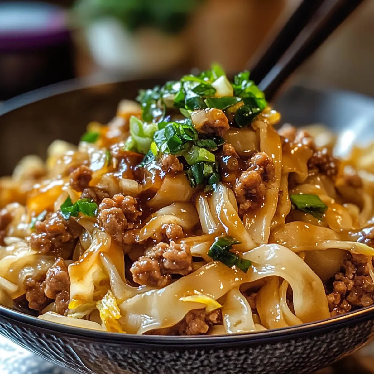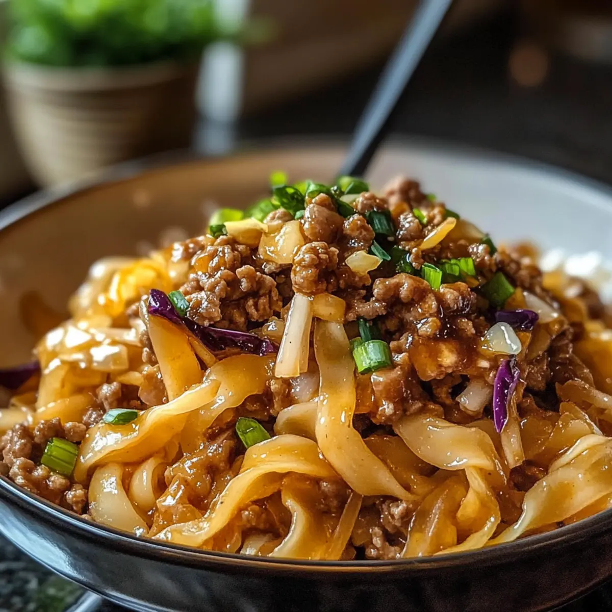 Ich stand neulich in meiner Küche und stellte fest, wie oft ich Sehnungen nach den leckeren Aromen von Teigtaschen hatte, ohne jedoch stundenlang in der Küche verbringen zu wollen. Daher habe ich die perfekte Lösung gefunden: die Teigtaschen-Nudelschüssel! Diese schnelle und einfache Version vereint würziges Hackfleisch, knackigen Coleslaw und breite LoMein-Nudeln, die alle zu einem umami-gefüllten Erlebnis verschmelzen. In nur 30 Minuten zubereitet, ist dieses Gericht ideal für hektische Wochentage und wird selbst die wählerischsten Esser begeistern. Plus, es lässt sich ganz nach Ihrem Geschmack anpassen – möchten Sie etwas mehr Gemüse hinzufügen oder die Schärfe anpassen? Lassen Sie uns herausfinden, wie wir dieses köstliche Rezept gestalten können! Warum werden Sie dieses Rezept lieben? Einfachheit: Die Zubereitung ist kinderleicht und erfordert nur grundlegende Kochkenntnisse – ideal für alle, die gerne schnell essen. Vielseitigkeit: Passen Sie die Zutaten nach Ihrem Geschmack an – versuchen Sie eine vegetarische Variante mit Tofu oder fügen Sie Ihr Lieblingsgemüse hinzu! Schnell zubereitet: In nur 30 Minuten auf dem Tisch und perfekt für hektische Wochentage. Umami-Potpourri: Die Kombination aus würzigem Hackfleisch, knackigem Coleslaw und glossy Sauce sorgt für ein Geschmackserlebnis, das an klassische Teigtaschen erinnert. Gesellige Freude: Dieses Gericht wird sicher Ihre Familie und Freunde begeistern – perfekt für gemeinsamen Genuss! Probieren Sie auch unsere Tipps für die optimale Aufbewahrung und genießen Sie die Reste bei Ihren Mittagessen zur Arbeit. Teigtaschen-Nudelschüssel Zutaten Für die Nudeln • LoMein-Nudeln – Bieten eine breite, zähe Textur, die perfekt die Sauce aufnimmt. Ersatz: Spaghetti oder Udon können im Notfall verwendet werden. Für die Füllung • Hackfleisch – Fügt Saftigkeit und Geschmack hinzu; kocht schnell mit Gewürzen. • Coleslaw-Mix – Bunte Mischung aus grünem und rotem Kohl mit Karotten für zusätzliche Knusprigkeit. Ersatz: Verwenden Sie dünn geschnittenen frischen Kohl (ca. 4 Tassen). Für die Sauce • Mirin – Ein süßer japanischer Reiswein, der die Aromen ausgleicht. Ersatz: Reisessig mit einer Prise Zucker vermischen, wenn Mirin nicht erhältlich ist. • Dunkle Sojasauce – Bietet eine reichere Farbe und Tiefe als normale Sojasauce. Hinweis: Kann durch normale Sojasauce und einen Spritzer Melasse ersetzt werden. • Knoblauch & Ingwer – Wesentliche Aromastoffe, die den charakteristischen Geschmack der Teigtaschen verleihen. • Sriracha – Fügt optionale Schärfe hinzu; je nach Vorliebe anpassen. Zum Anbraten • Erdnussöl – Ideal zum Sautieren; kann durch Pflanzen- oder Rapsöl ersetzt werden. Für die Brühe • Hühnerbrühe – Basis für die Sauce, die Feuchtigkeit und Geschmack liefert. Genießen Sie diese köstliche Teigtaschen-Nudelschüssel, die sich ganz nach Ihrem Geschmack anpassen lässt! Schritt-für-Schritt-Anleitungen für die Teigtaschen-Nudelschüssel Step 1: Nudeln kochen Kochen Sie die LoMein-Nudeln gemäß der Verpackungsanweisung in einem großen Topf mit kochendem Wasser für etwa 4-6 Minuten, bis sie al dente sind. Gießen Sie die Nudeln ab und spülen Sie sie unter kaltem Wasser ab, um das Kleben zu verhindern. Stellen Sie die Nudeln beiseite, während Sie die Füllung und die Sauce zubereiten. Step 2: Hackfleisch anbraten Erhitzen Sie in einer großen Pfanne bei mittlerer bis hoher Hitze 2 Esslöffel Erdnussöl. Fügen Sie das gehackte Schweinefleisch und ¼ Tasse geschnittene Frühlingszwiebeln hinzu. Braten Sie alles 5-6 Minuten lang, bis das Fleisch gut durchgebraten und leicht gebräunt ist. Achten Sie darauf, das Fleisch mit einem Spatel zu zerteilen, sodass es gleichmäßig gart. Step 3: Sauce zubereiten In einer kleinen Schüssel vermengen Sie 1 Tasse Hühnerbrühe, 2 Esslöffel Mirin, 2 Esslöffel dunkle Sojasauce, 2 gehackte Knoblauchzehen, 1 Esslöffel geriebenen Ingwer und 1 Teelöffel Sriracha. Verquirlen Sie die Zutaten gut, bis sie gut kombiniert sind. Diese Sauce wird Ihre Teigtaschen-Nudelschüssel würzig und aromatisch machen. Step 4: Alles kombinieren Fügen Sie die gekochten LoMein-Nudeln und den Coleslaw-Mix zu der Pfanne mit dem gebratenen Hackfleisch hinzu. Gießen Sie die vorbereitete Sauce darüber und werfen Sie alles gut um, sodass die Nudeln und das Gemüse gleichmäßig mit der würzigen Sauce bedeckt sind. Kochen Sie alles zusammen für etwa 2 Minuten, damit sich die Aromen vereinen. Step 5: Toss & Finish Reduzieren Sie die Hitze und kochen Sie die Mischung für weitere 2-3 Minuten, bis alles gut durchgewärmt ist und die Sauce die Zutaten glänzend umhüllt. Schmecken Sie die Teigtaschen-Nudelschüssel ab und fügen Sie bei Bedarf mehr Sriracha für zusätzliche Schärfe hinzu. Garnieren Sie das Gericht mit den restlichen geschnittenen Frühlingszwiebeln bevor Sie servieren. Teigtaschen-Nudelschüssel im Voraus zubereiten Die Teigtaschen-Nudelschüssel eignet sich hervorragend für die Vorabzubereitung und spart Ihnen viel Zeit an hektischen Wochentagen! Sie können die LoMein-Nudeln bis zu 3 Tage im Voraus kochen und dann in einem luftdichten Behälter im Kühlschrank aufbewahren. Auch die Sauce lässt sich bequem 24 Stunden vor der Zubereitung zubereiten – einfach alles vermengen und im Kühlschrank lagern, um die Aromen zu intensivieren. Wenn Sie bereit sind, das Gericht zuzubereiten, braten Sie das Hackfleisch wie gewohnt an, fügen Sie die vorbereiteten Nudeln und die kalte Sauce hinzu und erhitzen Sie alles in der Pfanne. Durch das Vorbereiten der einzelnen Komponenten bleibt die Qualität gleichbleibend hoch und der Genuss der Teigtaschen-Nudelschüssel bleibt einfach köstlich! Aufbewahrungstipps für Teigtaschen-Nudelschüssel Zimmertemperatur: Diese Schüssel sollte nicht bei Zimmertemperatur aufbewahrt werden, da die frischen Zutaten verderben können. Kühlschrank: Bewahren Sie die Teigtaschen-Nudelschüssel in e