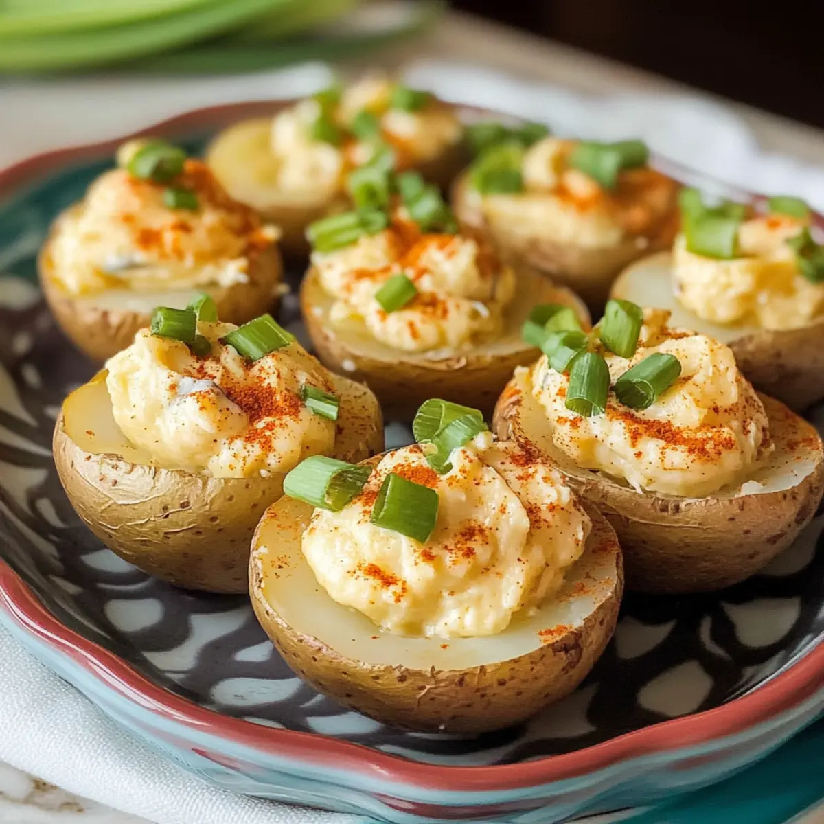 Als ich das erste Mal diese teufelischen Kartoffeln zubereitet habe, hätte ich nie gedacht, dass sie so schnell zum Gesprächsthema bei meinem Abendessen werden würden. Diese kleinen, cremigen Häppchen sind nicht nur eine kostengünstige Alternative zu klassischen deviled eggs, sondern auch eine perfekte Idee für gesellige Zusammenkünfte. Mit einer würzigen Füllung und zartem Kartoffelgeschmack bringen sie jeden Genussliebhaber zum Schmunzeln. Diese budgetfreundlichen und freezerfreundlichen Snacks sind im Handumdrehen zubereitet und lassen sich hervorragend im Voraus vorbereiten. Wartet nur, bis ihr hört, wie sie die Herzen eurer Gäste erobern werden! Seid ihr bereit, in die Welt der Teufelischen Kartoffeln einzutauchen? Warum sind teuflische Kartoffeln so unwiderstehlich? Einfache Zubereitung: Die Herstellung dieser teuflischen Kartoffeln erfordert nur grundlegende Kochkenntnisse und wenig Zeit. Köstlicher Geschmack: Die Kombination aus cremiger Füllung und zarter Kartoffel sorgt für ein geschmackliches Erlebnis, das selbst die wählerischsten Gaumen begeistert. Budgetfreundlich: Mit einfachen Zutaten ist dieses Rezept ideal für jeden Geldbeutel und bietet ein köstliches Erlebnis ohne große Ausgaben. Vielseitig einsetzbar: Ob als Fingerfood zu einer Party oder als Teil eines Buffets – diese Snacks passen einfach überall. Einfach vorzubereiten: Ihr könnt die gefüllten Kartoffeln im Voraus zubereiten und sie vor dem Servieren einfach kaltstellen. So habt ihr mehr Zeit für eure Gäste! Kreativ garnieren: Spielt mit verschiedenen Toppings wie Paprika oder Frühlingszwiebeln, um den perfekten Look zu kreieren. Teufelische Kartoffeln Zutaten • Für alle, die sich nach einem köstlichen Snack sehnen, sind hier die Zutaten für die teufelischen Kartoffeln, die jeden Gaumen erfreuen werden. Für die Kartoffeln Baby-Kartoffeln – Diese zarten Klöße bilden die Basis; 12 Stück für 12 Portionen sind ideal. Salz – Verwende 2 Teelöffel, um das Wasser beim Kochen zu würzen. Wasser – 8 Tassen sind erforderlich, um die Kartoffeln perfekt zu kochen. Für die Füllung Mayonnaise oder Sauerrahm – Diese sorgen für die cremige Textur; bei Bedarf kann Joghurt als leichtere Option verwendet werden. Gelber Senf – Fügt einen würzigen Kick hinzu; passe die Menge auf 1-2 Teelöffel nach deinem Geschmack an. Dill- Gurkenwasser – Gibt einen spritzigen Geschmack; alternativ kann auch Essig verwendet werden. Knoblauchpulver – Verleiht eine subtile, köstliche Note. Zwiebelpulver –Für zusätzlichen herzhaften Geschmack. Gemahlener Pfeffer – Rundet die Gewürze ab. Für die Garnitur (optional) Frühlingszwiebeln – Fein gehackt, um Frische und Farbe hinzuzufügen. Paprika – Für einen farbenfrohen, ansprechenden Look. Diese teufelischen Kartoffeln sind nicht nur budgetfreundlich, sondern auch freezerfreundlich. Ihr werdet begeistert sein, wie einfach und schnell sie zubereitet sind! Step-by-Step Instructions für Teufelische Kartoffeln Step 1: Kartoffeln vorbereiten Wasche die Baby-Kartoffeln gründlich und schneide sie der Länge nach in zwei Hälften. Lege die vorbereiteten Kartoffeln beiseite, während du einen großen Topf mit 8 Tassen Wasser füllst und 2 Teelöffel Salz hinzufügst. Bringe das Wasser zum Kochen. Step 2: Kartoffeln kochen Sobald das Wasser sprudelnd kocht, füge die Kartoffelhälften hinzu. Koche diese für 15-20 Minuten auf mittlerer Hitze, bis sie zart sind und sich leicht mit einer Gabel durchstechen lassen. Achte darauf, dass sie nicht zu weich werden, da sie später gefüllt werden müssen. Step 3: Abkühlen lassen Entferne die gekochten Kartoffeln vorsichtig mit einem Schaumlöffel und lege sie in eine Schüssel mit kaltem Wasser. Lasse sie einige Minuten abkühlen, damit sie sich leichter handhaben lassen. Diese Abkühlphase ist wichtig, damit du dich nicht verbrennst, wenn es darum geht, die Füllung vorzubereiten. Step 4: Kartoffelinnenteile entnehmen Sobald die Kartoffeln kühl genug sind, nimm eine kleine Löffel oder einen Melonenausstecher und schöpf die Innenteile der Kartoffeln heraus. Achte darauf, genügend Fruchtfleisch zu entnehmen, um eine cremige Füllung zu ermöglichen. Die Schalen sollten dabei stabil bleiben, damit sie später gefüllt werden können. Step 5: Füllung zubereiten In einer großen Schüssel vermische die entnommenen Kartoffelinnenteile mit Mayonnaise oder Sauerrahm, Gelbem Senf, Dill-Gurkenwasser, Knoblauchpulver, Zwiebelpulver, Salz und Pfeffer. Verwende einen Handmixer oder einen Löffel, um die Mischung glatt und cremig zu rühren. Diese cremige Füllung ist das Herzstück deiner teufelischen Kartoffeln. Step 6: Kartoffeln füllen Fülle die zuvor ausgehöhlten Kartoffelhälften mit der cremigen Füllung. Du kannst dies mit einem Spritzbeutel für eine schöne Präsentation tun oder einfach einen Löffel verwenden. Achte darauf, dass die Füllung großzügig aufgetürmt wird, um den besten Geschmack zu erzielen. Step 7: Garnieren und kühlen Bestreue die gefüllten Kartoffeln nach Belieben mit Paprika und gehackten Frühlingszwiebeln für einen farbenfrohen Abschluss. Lege die gefüllten Teufelischen Kartoffeln auf eine Servierplatte und lasse sie mindestens 30 Minuten im Kühlschrank kühlen, bevor du sie servierst. Dies verbessert nicht nur den Geschmack, sondern sorgt auch dafür, dass die Füllung gut zusammenhält. Tipps zur Vorbereitung der teufelischen Kartoffeln Die teufelischen Kartoffeln sind ideal für die Vorbereitung und sparen euch viel Zeit! Ihr könnt die Kartoffeln bis zu 24 Stunden im Voraus kochen und die Füllung zubereiten. Lasst die gefüllten Kartoffeln einfach mindestens 30 Minuten im Kühlschrank ruhen, damit sie gut durchziehen. Um die Qualität zu erhalten, lagert die gefüllten Kartoffeln in einem luftdichten Behälter und verzehrt sie innerhalb von 4-5 Tagen. Bei Bedarf können die gefüllten Kartoffeln sogar eingefroren werden, sodass ihr sie bis zu 3 Monate aufbewahren kö