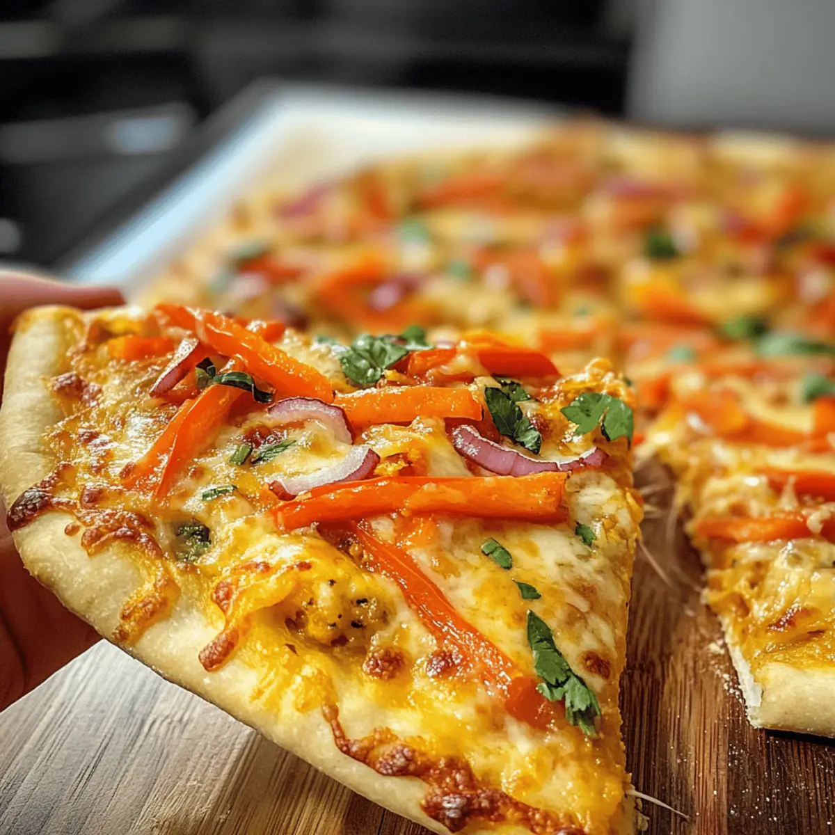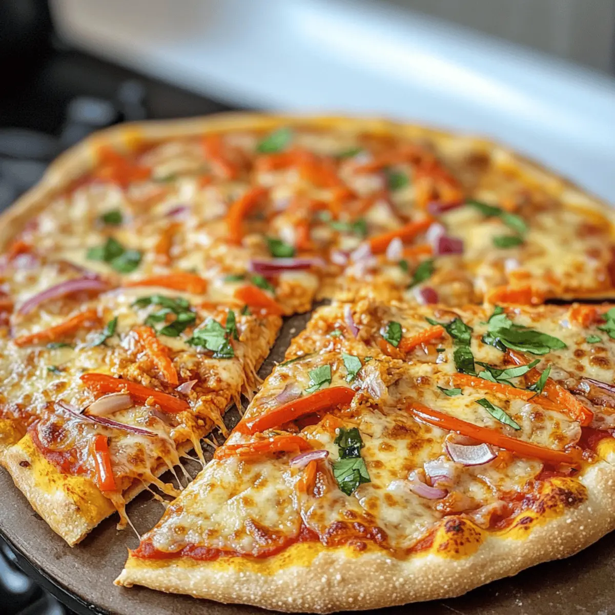 • Herzhafter Belag: Kombiniere die Gemüse mit gegrilltem Hähnchen oder mariniertem Tofu für eine proteinreiche Option. Das hebt die Thai-Curry-Pizza auf die nächste Ebene.