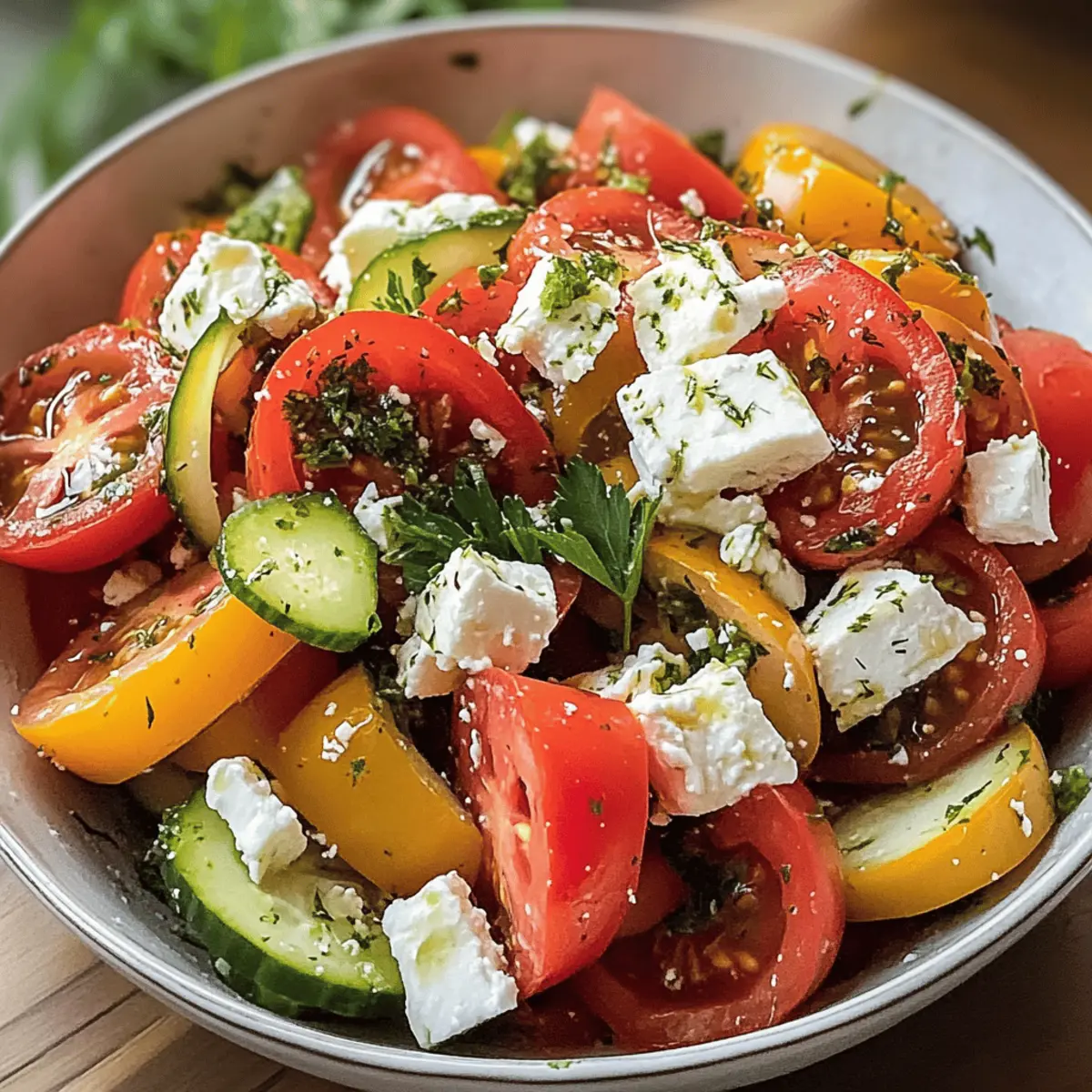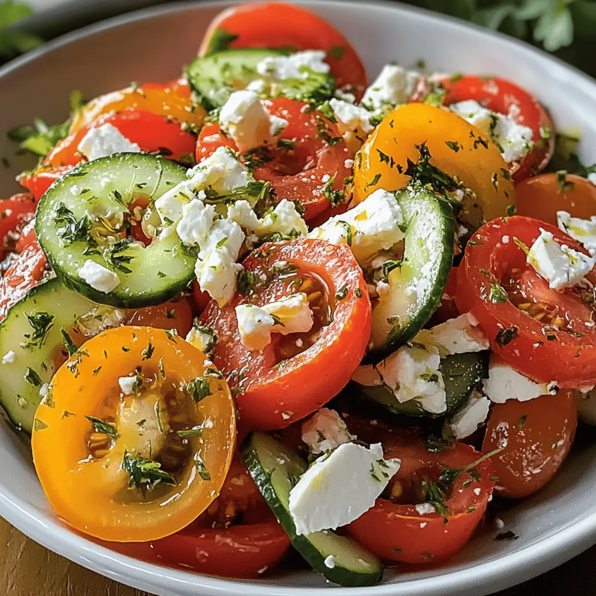 Als ich letztens in einem kleinen mediterranen Restaurant speiste, entdeckte ich eine köstliche Kombination, die mich sofort begeisterte: ein Tomatensalat mit Feta Käse! Dieser erfrischende Salat strahlt nicht nur Farbenpracht aus, sondern begeistert auch durch die süße Frische reifer Tomaten, die perfekt mit der cremigen, salzigen Note des Fetas harmoniert. Das Beste daran? Er ist super schnell zubereitet und eignet sich sowohl als belebende Beilage zu Gegrilltem als auch als leichtes Hauptgericht an heißen Tagen. Und für alle, die nach einer pflanzlichen Alternative suchen, habe ich sogar eine vegane Variante im Gepäck! Bereit, deinen Gaumen zu überraschen? Lass uns gemeinsam in die Welt dieses köstlichen Tomatensalats eintauchen! Warum wirst du diesen Salat lieben? Frische Geschmacksexplosion: Der Tomatensalat mit Feta Käse bietet eine harmonische Balance zwischen süßen, reifen Tomaten und der cremigen Salzigkeit des Fetas. Einfache Zubereitung: In nur wenigen Minuten hast du diesen köstlichen Salat auf dem Tisch – ideal für spontane Grillabende oder ein leichtes Mittagessen. Flexibel und anpassbar: Experimentiere mit Variationen wie einer mediterranen Note durch Oliven oder einer veganen Option mit pflanzlichem Käse, um jedem Geschmack gerecht zu werden. Perfekte Optik: Die bunten Zutaten machen jede Portion zu einem Fest für die Augen und werden auf jede Veranstaltung ein Hit. Gesund und leicht: Ein gesunder Genuss mit wenig Kalorien, der außerdem nährstoffreich ist und dir hilft, dich fit zu fühlen. Tomatensalat mit Feta Käse Zutaten Für den Salat Frische Tomaten – Sie bilden die Basis des Salats und liefern Süße und Farbe; eine Mischung aus Sorten sorgt für mehr Textur. Feta Käse – Fügt Cremigkeit und Salzigkeit hinzu; du kannst auch Ziegenkäse oder Mozzarella als Alternative verwenden. Gurke – Trägt eine erfrischende Knackigkeit bei; bell peppers können für eine andere Textur verwendet werden. Rote Zwiebel – Introduziert einen scharfen Biss, der die Süße der Tomaten ausgleicht; gelbe oder süße Zwiebeln sind ebenfalls möglich. Frisches Basilikum – Verleiht dem Salat aromatische Noten; ersetze es durch Petersilie oder Oregano, wenn es nicht verfügbar ist. Für das Dressing Olivenöl – Serviert als Basis für das Dressing und fügt Reichtum hinzu; extra vergine wird für den besten Geschmack empfohlen. Balsamico-Essig – Sorgt für Säure, die die Reichhaltigkeit des Fetas ausgleicht; Apfelessig kann als Alternative verwendet werden. Salz & Pfeffer – Unverzichtbar zur Geschmacksverstärkung; passe die Menge nach deinem Geschmack an. Honig/Senf (optional) – Fügt dem Dressing eine süße oder tiefere Note hinzu, wenn gewünscht. Genieße die frische Kombination aus Tomatensalat mit Feta Käse und entdecke, wie einfach es ist, ein gesundes und leckeres Gericht zuzubereiten! Schritt-für-Schritt-Anleitung für Tomatensalat mit Feta Käse Step 1: Zutaten vorbereiten Wasche die frischen Tomaten gründlich, entferne die Stiele und schneide sie in gleichmäßige Stücke. Schäle die Gurke und schneide sie in kleine Würfel. Schneide die rote Zwiebel in dünne Ringe. Achte darauf, die Farben der Zutaten zu genießen – sie werden deinem Tomatensalat mit Feta Käse gleich einen lebhaften Look verleihen. Step 2: Dressing zubereiten Gib in eine Schüssel etwa 5 Esslöffel Olivenöl und 2 Esslöffel Balsamico-Essig. Würze das Dressing mit einer Prise Salz und Pfeffer und erhitze es leicht, falls gewünscht, um den Geschmack zu intensivieren. Verquirle die Zutaten gut miteinander, bis eine homogene Mischung entsteht. Optional kannst du einen Teelöffel Honig oder Senf hinzufügen, um extra Tiefe zu erreichen. Step 3: Zutaten kombinieren Nimm eine große Schüssel und füge die vorbereiteten Tomaten, die Gurkenwürfel, die roten Zwiebelringe und den zerbröckelten Feta hinzu. Mische die Zutaten sorgfältig, damit sich die Aromen gleichmäßig verteilen. Der Tomatensalat mit Feta Käse beginnt jetzt, seine Farben und Aromen sanft zu entfalten. Step 4: Salat anrichten Gieße das frisch zubereitete Dressing über die Salatzutaten und mische es sanft, damit alles gut bedeckt ist. Vermeide zu kräftiges Rühren, um die zerbrechlichen Feta-Stücke nicht zu zerdrücken. Der Salat sollte leicht glänzen und gut durchzogen aussehen. Step 5: Garnieren und ruhen lassen Füge frisches, gehacktes Basilikum hinzu und falte es vorsichtig unter den Salat. Lasse den Tomatensalat mit Feta Käse etwa 10 Minuten ruhen, sodass sich die Aromen verbinden können. Das Wartezeit ist wichtig, um die Geschmäcker zu intensivieren und die Frische des Gerichts zu unterstreichen. Tomatensalat mit Feta Käse Variationen Lass deiner Kreativität freien Lauf und passe diesen köstlichen Salat ganz nach deinem Geschmack an! Mediterrane Note: Füge Oliven oder Kapern hinzu, um dem Salat einen würzigen, herzhaften Touch zu verleihen. Diese Zutaten bringen das Aroma des Mittelmeers direkt auf deinen Tisch. Vegan: Verwende pflanzlichen Feta-Käse oder lasse den Käse ganz weg, um eine leichte, vegane Version zu kreieren, die dennoch frisch und lecker ist. Vegetarier und Veganer kommen hier gleichermaßen auf ihre Kosten! Herzhafter Zusatz: Integriere gegrilltes Hähnchen oder Kichererbsen für mehr Protein und eine sättigende Mahlzeit. Diese Variationen machen den Salat perfekt für ein vollwertiges Mittagessen. Scharfe Akzente: Füge ein paar rote Paprikaflocken oder frische Chilis hinzu, um dem Salat eine angenehme Schärfe zu verleihen. So wird dein Tomatensalat zum aufregenden Geschmackserlebnis! Nüsse für Crunch: Streue gehackte Mandeln oder Pinienkerne über den Salat für zusätzlichen Biss und eine nussige Note. Das sorgt für einen interessanten Kontrast zur Cremigkeit des Fetas. Zitrusfrische: Ein Spritzer frischer Zitronen- oder Limettensaft im Dressing hebt das Aroma und das Geschmackserlebnis noch weiter an. Diese Zitrusnote erfrischt und belebt. Exotische Zuta