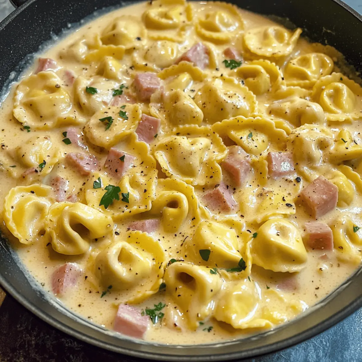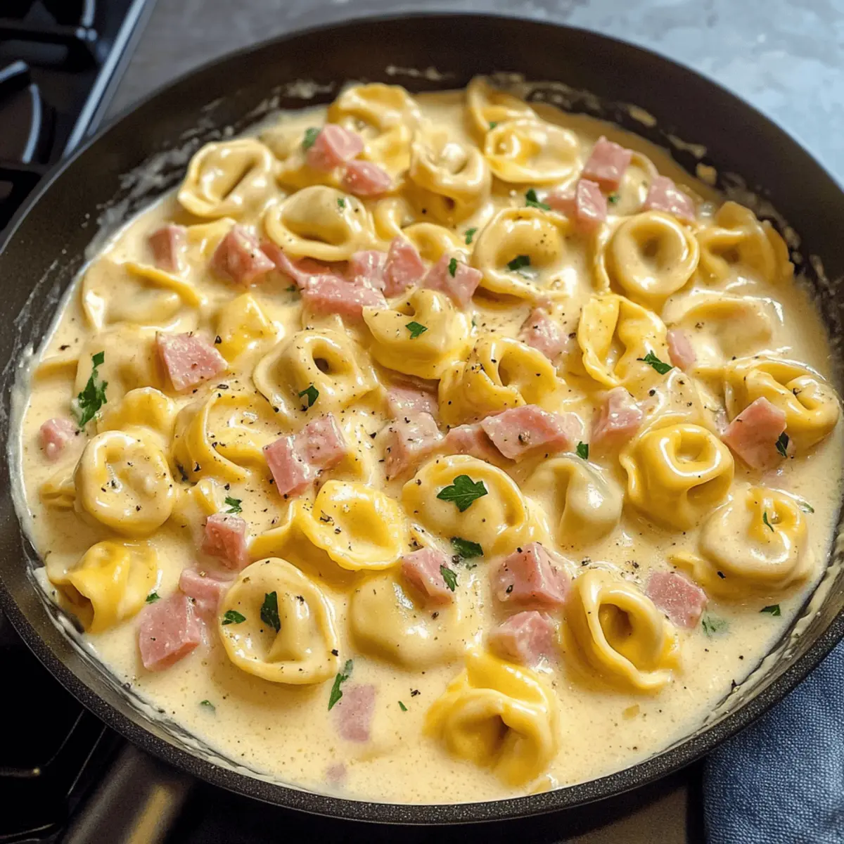 Die Küche verwandelt sich in ein geschäftiges Zentrum, während der köstliche Duft von frisch gekochten Tortellini in Schinken-Sahne-Soße in der Luft liegt. In nur 25 Minuten zaubern wir dieses cremige Pasta-Gericht auf den Tisch – perfekt für stressige Wochentage, an denen man dennoch nicht auf Geschmack verzichten will. Mit ihrem herzhaften Schinken und der reichhaltigen, cremigen Sauce ist dieses einfache Pasta-Gericht nicht nur schnell zubereitet, sondern bietet auch einen beeindruckenden Proteinschub von 35 Gramm pro Portion. Ideal für Familien, die eine gesunde und schmackhafte Alternative zu Fast Food suchen! Bist du bereit, deine Lieben mit dieser köstlichen Kombination zu überraschen? Warum ist dieses Rezept so besonders? Einfachheit pur: In nur 25 Minuten zubereitet, ist dieses Rezept perfekt für hektische Wochentage. Herzhafter Schinken und cremige Soße vereinen sich zu einem Geschmackserlebnis, das jeder liebt. Proteinreich mit 35 Gramm pro Portion, ist es eine gesunde Wahl für die Familie. Vielfältig anpassbar: Verwende gefüllte Tortellini oder tausche den Schinken gegen Geflügel! Für noch mehr Ideen schau dir unsere anderen leckeren Pasta-Rezepte an. Echter Genuss: Jeder Biss vermittelt das Gefühl von Gemütlichkeit und Zufriedenheit, ideal für ein schnelles Abendessen! Tortellini in Schinken-Sahne-Soße Zutaten • Hier sind die Zutaten für unser schnelles und cremiges Pasta-Gericht: Für die Tortellini Frische Tortellini – Verwende frische Tortellini für die beste Textur und Genuss. Kochschinken – Diced für eine gleichmäßige Verteilung und herzhaften Geschmack. Für die cremige Sauce Kochsahne – Kreiert eine leckere cremige Basis; du kannst auch eine leichtere Sahne verwenden. Schmelzkäse – Macht die Soße besonders cremig; andere Käsesorten sind ebenfalls gut geeignet. Butter – Zum Anbraten der Zwiebeln für einen reichhaltigen Geschmack; kann auch durch Olivenöl ersetzt werden. Für das Finish Geriebener Gouda – Gibt der Speise eine köstliche Käseschicht; auch andere Hartkäsesorten sind möglich. Frische Petersilie – Dekoriert das Gericht und sorgt für eine frische Note; kann durch getrocknete Kräuter ersetzt werden. Salz & Pfeffer – Würze nach Geschmack, um den gesamten Aromenreichtum zu betonen. Jetzt bist du bereit, deine leckeren Tortellini in Schinken-Sahne-Soße zuzubereiten! Schritt-für-Schritt-Anleitung für Tortellini in Schinken-Sahne-Soße Step 1: Zwiebeln anbraten Erhitze in einer großen Pfanne bei mittlerer Hitze einen Esslöffel Butter. Gebe die gewürfelten Zwiebeln hinzu und brate sie an, bis sie etwa 3-5 Minuten lang glasig und weich sind. Diese Schritte verleiht der Basis ein reichhaltiges Aroma und bereitet die Grundlage für die cremige Sauce. Step 2: Sahne und Käse hinzufügen Füge die Kochsahne hinzu und bringe sie kurz zum Köcheln. Rühre den Schmelzkäse ein, bis er vollständig geschmolzen und die Soße cremig ist. Achte darauf, dass die Soße nicht zu stark kocht, damit sie nicht eindickt; reduziere gegebenenfalls die Hitze. Step 3: Schinken und Gewürze einarbeiten Nun kommen die gewürfelten Kochschinkenstücke in die Pfanne. Gut umrühren und mit Salz und Pfeffer abschmecken. Lass die Mischung für weitere 2-3 Minuten sanft köcheln, damit der Schinken etwas von seinem Aroma abgibt und die Soße gut durchzieht. Step 4: Tortellini hinzufügen und kochen Nun kannst du die frischen Tortellini in die Pfanne geben. Rühre sanft um, damit sie gleichmäßig von der Sauce umhüllt sind. Lasse die Tortellini bei niedriger Hitze für etwa 5 Minuten köcheln, bis sie weich und durchgegart sind. Achte darauf, während des Kochens gelegentlich umzurühren. Step 5: Mit Käse bestreuen Kurz vor dem Servieren streue den geriebenen Gouda über die Tortellini in Schinken-Sahne-Soße. Lass den Käse für 1-2 Minuten schmelzen, solange die Pfanne noch warm ist. Dies verleiht dem Gericht eine leckere, geschmolzene Käsekruste, die das Geschmackserlebnis abrundet. Step 6: Anrichten und garnieren Serviere die Tortellini heiß auf Tellern und garniere sie mit frischer, gehackter Petersilie. Die Petersilie sorgt nicht nur für eine schöne Farbe, sondern auch für einen frischen Kontrast zur cremigen Soße. Genießen kannst du diese köstlichen Tortellini in Schinken-Sahne-Soße direkt nach der Zubereitung! Tortellini in Schinken-Sahne-Soße Variationen Entdecke die vielfältigen Möglichkeiten, dieses köstliche Gericht ganz nach deinem Geschmack anzupassen! Lass deiner Kreativität freien Lauf und genieße jede Variation auf ihre eigene Art. Vegetarisch: Ersetze den Schinken durch gebratene Zucchini und Paprika für ein leichtes, fleischfreies Gericht. So kannst du das Rezept super anpassen und dennoch einen großartigen Geschmack genießen. Extra cremig: Füge einen Schuss Vollmilch oder mehr Schmelzkäse hinzu für eine besonders reichhaltige Sauce. Das verwandelt die Tortellini in ein wahres Comfort Food, das alle begeistern wird. Scharf: Streue etwas rote Peperoniflocken oder frische Chili ein, um dem Gericht eine würzige Note zu verleihen. Der zusätzliche Kick macht jede Biss zu einem aufregenden Erlebnis! Käsevielfalt: Probiere eine Mischung aus Ricotta und Parmesan anstelle von Schmelzkäse für einen anderen Käsegeschmack. Diese Kombination verleiht deinem Gericht eine cremige Textur und einen einzigartigen Aroma. Pasta-Twist: Nutze gefüllte Tortellini wie Spinat-Ricotta für einen frischen Geschmackswechsel. Egal, ob du Geflügel- oder Gemüsefüllungen wählst, die Variationen sind endlos und köstlich! Frische Kräuter: Ergänze die Petersilie mit Basilikum oder Thymian für einen zusätzlichen Hauch von Frische. Diese Kräuter geben dem Gericht eine aromatische Tiefe und passen hervorragend zur Sahnesauce. Nussiger Geschmack: Werfe ein paar geröstete Pinienkerne oder Walnüsse vor dem Servieren über das Gericht. Das bringt nicht nur Textur, sondern auch ein wunderbares Aroma, das Eindruck hin
